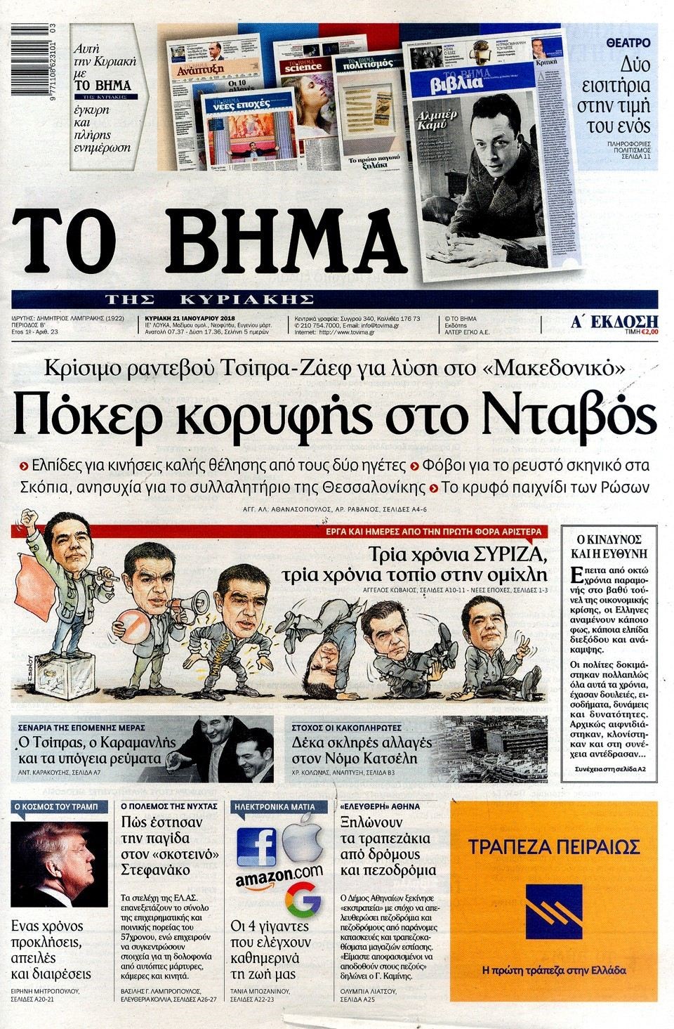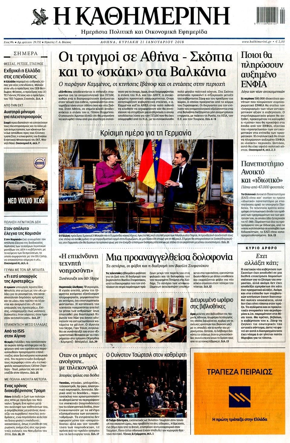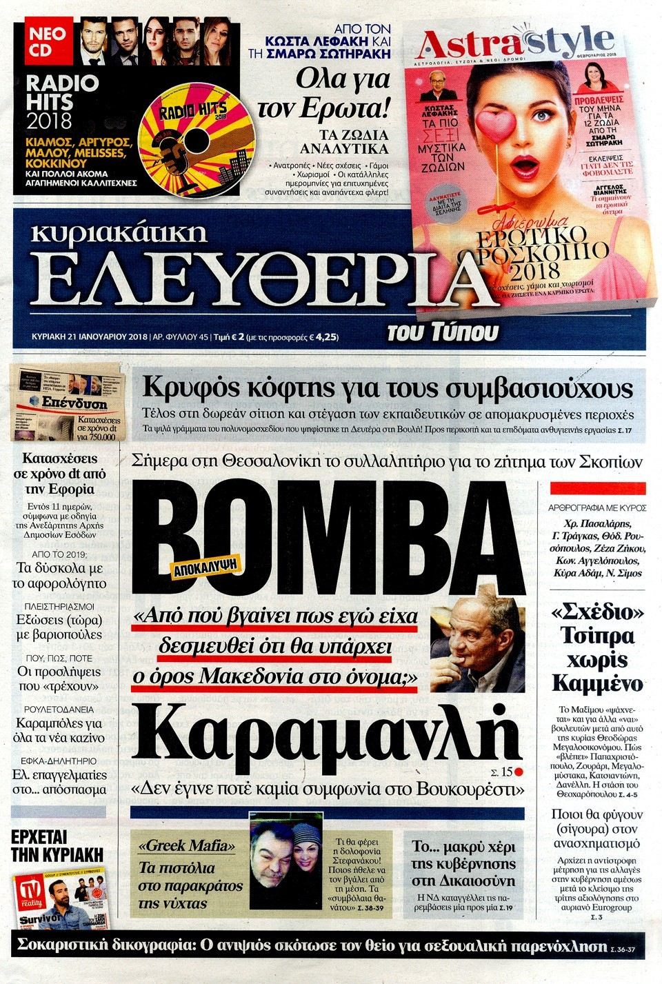 Οι πολιτικές εφημερίδες 21/1/2018 Κώστας Τεό 06:55, Κυριακή 21 Ιανουαρίου 2018 Media Διαβάστε τα σημερινά πρωτοσέλιδα των πολιτικών εφημερίδων: ΠΟΛΙΤΙΚΕΣ ΕΦΗΜΕΡΙΔΕΣ ΠΡΩΤΟΣΕΛΙΔΑ Μοιράσου το: σχολίασε κι εσύ (0 σχόλια) Ακολουθήστε το enikos.gr στο Google News και μάθετε πρώτοι όλες τις ειδήσεις Δείτε όλες τις τελευταίες ειδήσεις από την Ελλάδα και τον Κόσμο στο enikos.gr Ειδήσεις Ροή Ειδήσεων 8 ώρες πριν Χριστούγεννα στα μπλόκα: Επιμένουν στις κινητοποιήσεις τους οι αγρότες – Ανοίγουν τα διόδια το Σαββατοκύριακο 9 ώρες πριν Ουκρανία: Η άνευ προηγουμένου επίθεση σε ρωσικό τάνκερ στη Μεσόγειο και το μήνυμα προς στον Πούτιν – Το «μακρύ χέρι» του Κιέβου 8 ώρες πριν Πούτιν: Τα μηνύματα σε Ευρώπη και ΝΑΤΟ από το μαραθώνιο «σόου» του – Η απαίτηση για «σεβασμό» και η ειρήνη «με τους όρους» της Μόσχας 7 ώρες πριν ΗΠΑ: Η κυβέρνηση του Ντόναλντ Τραμπ άρχισε να δημοσιοποιεί τα αρχεία Έπσταϊν 7 ώρες πριν Άνω Λιόσια: Πυροβολισμοί σε επιχείρηση με χαλιά – Εντοπίστηκαν 10 κάλυκες 57 λεπτά πριν Αυγά: Πόσα μπορείτε να τρώτε την ημέρα με ασφάλεια για μέγιστη πρόσληψη πρωτεΐνης 1 ώρα πριν Τα ζώδια σήμερα, Σάββατο 20 Δεκεμβρίου: Παρθένοι, το σύμπαν σας δίνει το κλειδί 8 ώρες πριν Ανακαλύφθηκαν αρχαία χρυσά νομίσματα 2.200 ετών που απεικονίζουν τον θεό Απόλλωνα – Η άγνωστη σύνδεση με τον Φίλιππο Β΄ της Μακεδονίας 9 ώρες πριν Ύπνος: Μια κρυφή κατάσταση του εγκεφάλου πριν από τον ύπνο μπορεί να είναι το “κλειδί” για υψηλή ευφυΐα και δημιουργικότητα 3 λεπτά πριν Αναβολή συμφωνίας ΕΕ-Mercosur: Ο χρόνος «δεν είναι απεριόριστος» προειδοποιεί η Παραγουάη 18 λεπτά πριν Κίριλ Ντμίτριεφ: Στις ΗΠΑ ο απεσταλμένος της Ρωσίας για συνομιλίες με τους ομολόγους του, Γουίτκοφ και Κούσνερ 25 λεπτά πριν ΔΕΔΔΗΕ: Διακοπές ρεύματος σήμερα (20/12) στην Αθήνα και σε άλλες 7 περιοχές της Αττικής 34 λεπτά πριν Κολομβία: Είκοσι χρόνια κάθειρξη σε πρώην ανώτερο αξιωματικό για 72 εκτελέσεις αμάχων 41 λεπτά πριν Οπτική ψευδαίσθηση: Μόνο αν είσαι ο Σέρλοκ Χολμς θα βρεις τον αριθμό «87» σε 7 δευτερόλεπτα ENIKOS NETWORK Πρέπει να αποδέχεστε ή να απορρίπτετε όλα τα cookies; Ένας ειδικός εξηγεί Η αγαπημένη λιχουδιά των πόνι που μπορεί να ενισχύσει όραση, εγκέφαλο και ανοσοποιητικό Αναστολή μέτρων αναγκαστικής εκτέλεσης για κτηνοτρόφους που πλήττονται από την ευλογιά των αιγοπροβάτων Πλήρης επάρκεια προϊόντων στις λαϊκές της Αττικής, παρά τις αγροτικές κινητοποιήσεις – Τι απαντούν οι πωλητές Χαρτογραφώντας το «σημείο χωρίς επιστροφή»: Για πρώτη φορά αποκαλύπτεται με λεπτομέρεια το ακανθώδες όριο της ατμόσφαιρας τ... Η Google καταργεί τη λειτουργία «dark web report» – Πώς θα μπορούν οι χρήστες να διαγράφουν τα δεδομένα τους περισσότερα 05:48 , Σάββατο 20 Δεκεμβρίου 2025 Οι οικονομικές εφημερίδες 20/12/2025 Διαβάστε τα πρωτοσέλιδα από τις οικονομικές εφημερίδες, σήμερα 20/12/2025. 05:43 , Σάββατο 20 Δεκεμβρίου 2025 Οι αθλητικές εφημερίδες 20/12/2025 Διαβάστε τα πρωτοσέλιδα από τις αθλητικές εφημερίδες, σήμερα 20/12/2025. 05:38 , Σάββατο 20 Δεκεμβρίου 2025 Οι πολιτικές εφημερίδες 20/12/2025 Διαβάστε τα πρωτοσέλιδα από τις πολιτικές εφημερίδες, σήμερα 20/12/2025. 04:20 , Σάββατο 20 Δεκεμβρίου 2025 Αγγελική Νικολούλη: Τα συλλυπητήρια για την απώλεια της Ειρήνης Μαρινάκη Τα συλληπητήρια στον πρόεδρο του Mega, τον Βαγγέλη Μαρινάκη, για την απώλεια της μητέρας του Ε... ΤΕΛΕΥΤΑΙΕΣ ΕΙΔΗΣΕΙΣ 18 λεπτά πριν Κίριλ Ντμίτριεφ: Στις ΗΠΑ ο απεσταλμένος της Ρωσίας... 25 λεπτά πριν ΔΕΔΔΗΕ: Διακοπές ρεύματος σήμερα (20/12) στην Αθή