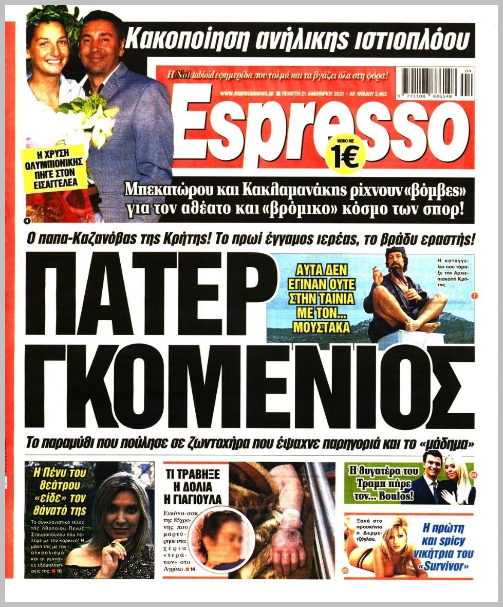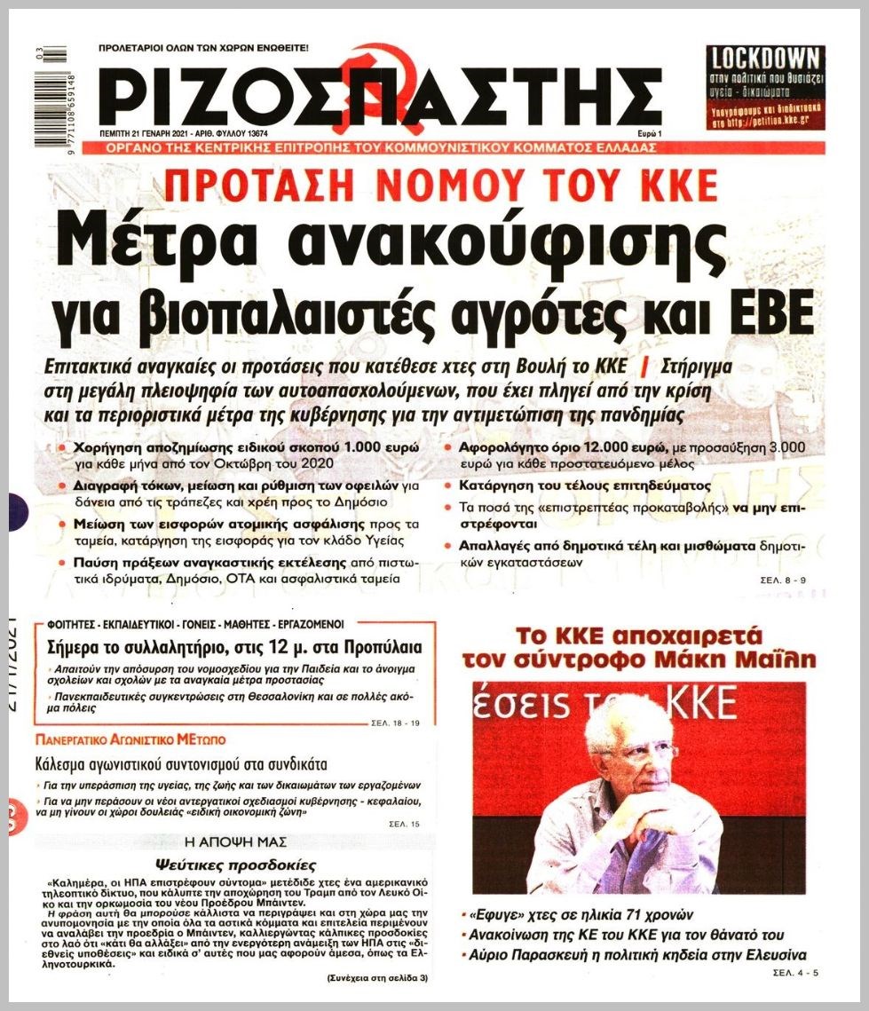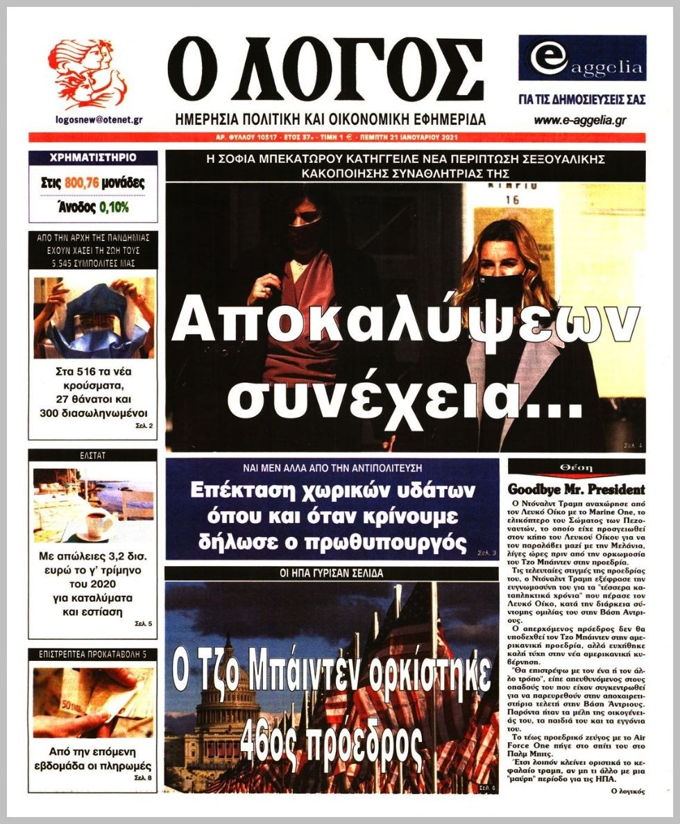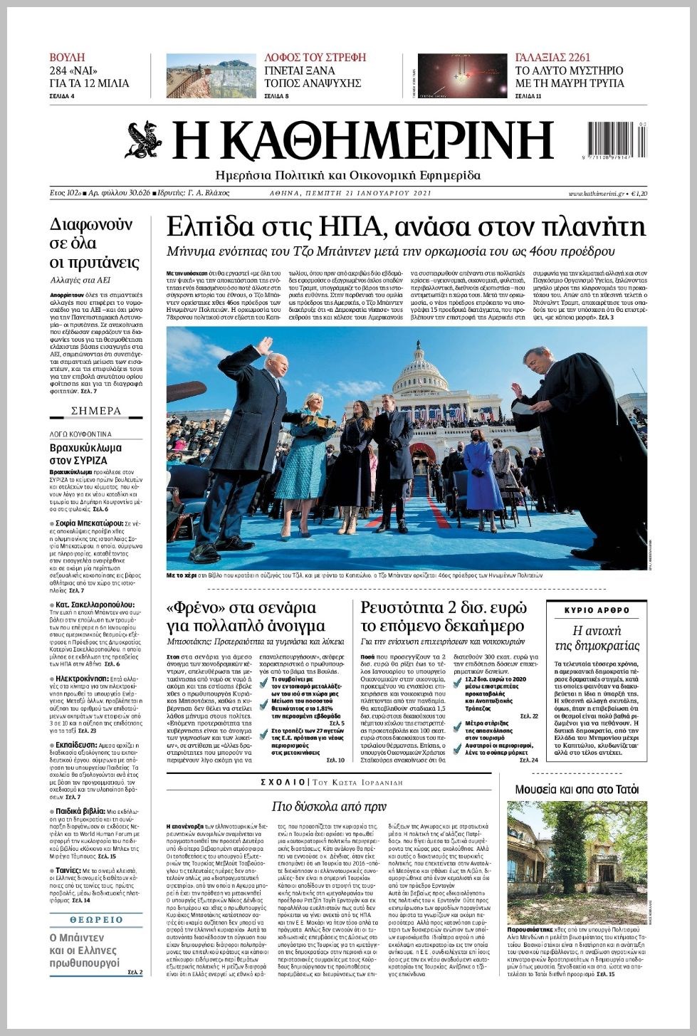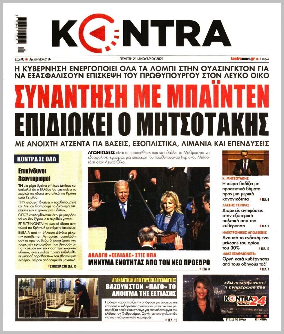 Οι πολιτικές εφημερίδες 21/1/2021 Διονύσης Νίκκας 06:12, Πέμπτη 21 Ιανουαρίου 2021 Media Διαβάστε τα πρωτοσέλιδα των πολιτικών εφημερίδων… ΕΦΗΜΕΡΙΔΕΣ ΠΟΛΙΤΙΚΕΣ ΕΦΗΜΕΡΙΔΕΣ ΠΡΩΤΟΣΕΛΙΔΑ Μοιράσου το: σχολίασε κι εσύ (0 σχόλια) Ακολουθήστε το enikos.gr στο Google News και μάθετε πρώτοι όλες τις ειδήσεις Δείτε όλες τις τελευταίες ειδήσεις από την Ελλάδα και τον Κόσμο στο enikos.gr Ειδήσεις Ροή Ειδήσεων 3 ώρες πριν Υπόθεση Έπσταϊν: Το Υπουργείο Δικαιοσύνης δημοσιοποίησε μια σειρά από εξαιρετικά επεξεργασμένα αρχεία – «Λείπουν τα πιο σημαντικά έγγραφα», λένε οι Δημοκρατικοί 22 λεπτά πριν Γιορτές με μπλόκα για τους αγρότες: Ανοίγουν διόδια και μοιράζουν προϊόντα στους ταξιδιώτες 55 λεπτά πριν Εξαφάνιση 33χρονου γιατρού στην Κρήτη: «Άναψα τα φώτα, τρόμαξε και άρχισε να τρέχει στα χωράφια» – Η τελευταία διαδρομή και η μαρτυρία «κλειδί» 2 ώρες πριν Ο «χάρτης» με τις αυξήσεις και τις φοροελαφρύνσεις του 2026 – Ποιοι και πόσα κερδίζουν 38 λεπτά πριν Τα αρχεία του Έπσταϊν αποκαλύπτουν φωτογραφία του έκπτωτου πρίγκιπα Άντριου – Είναι ξαπλωμένος στην αγκαλιά 5 γυναικών 45 λεπτά πριν Μία νέα «χρυσή» περίοδος αρχίζει για 3 ζώδια από σήμερα – «Μία αναπάντεχη ευκαιρία οδηγεί στην επιτυχία» 5 ώρες πριν Αυγά: Πόσα μπορείτε να τρώτε την ημέρα με ασφάλεια για μέγιστη πρόσληψη πρωτεΐνης 3 ώρες πριν Αρχαιολόγοι ανακάλυψαν σε χωράφι απεικόνιση 600 ετών ενός Αγίου – Τα στοιχεία που δείχνουν ότι μαρτύρησε 2 ώρες πριν Αγχώνεται για το χριστουγεννιάτικο δώρο που πήρε στην πλούσια σύντροφό του – «Φοβάμαι πως θα το βρει φθηνιάρικο, φοράει βραχιόλια Cartier» 6 λεπτά πριν Πώς η κλιματική αλλαγή επηρεάζει εγκύους και βρέφη – Οι επιπτώσεις των υψηλών θερμοκρασιών 14 λεπτά πριν e-ΕΦΚΑ και ΔΥΠΑ: Οι πληρωμές από 22 έως 24 Δεκεμβρίου – Ποιοι θα δουν χρήματα στους λογαριασμούς τους 22 λεπτά πριν Συνελήφθη οδηγός μηχανής που έτρεχε με 161 χλμ στη Συγγρού – Τον έπιασε το ραντάρ της Τροχαίας 22 λεπτά πριν Γιορτές με μπλόκα για τους αγρότες: Ανοίγουν διόδια και μοιράζουν προϊόντα στους ταξιδιώτες 30 λεπτά πριν Τηλεθέαση (19/12): Κυριάρχησε η σειρά «Το σόι σου» – Τι νούμερα έκανε ο τελικός του GNTM ENIKOS NETWORK Είστε μόνιμα απρόσεκτοι; 3 σημάδια που δείχνουν ότι μπορεί να είναι σύμπτωμα πάθησης Πόσα κιλά παίρνουμε πραγματικά τα Χριστούγεννα, σύμφωνα με την επιστήμη – Πώς να το αποτρέψουμε; Επίδομα παιδιού: Τι αλλάζει από το 2026 – Το όφελος από τις φορολογικές ελαφρύνσεις Mega χριστουγεννιάτικη φορολοταρία: «Κλείδωσε» η ημερομηνία για την κλήρωση – Ερωτήσεις και απαντήσεις Χαρτογραφώντας το «σημείο χωρίς επιστροφή»: Για πρώτη φορά αποκαλύπτεται με λεπτομέρεια το ακανθώδες όριο της ατμόσφαιρας τ... Η Google καταργεί τη λειτουργία «dark web report» – Πώς θα μπορούν οι χρήστες να διαγράφουν τα δεδομένα τους περισσότερα 09:30 , Σάββατο 20 Δεκεμβρίου 2025 «Porto Leone: Στη γειτονιά με τα κόκκινα φανάρια» – Ο Χρόνης αποκαλύπτει στην Αλεξάνδρα το μυστικό για το παιδί της Λένας Η μεγάλη δραματική σειρά του Apha «Porto Leone: Στη γειτονιά με τα κόκκινα φανάρια» μας μεταφέ... 08:14 , Σάββατο 20 Δεκεμβρίου 2025 Τρομεροί γονείς: Η Μαρία Καβογιάννη εισβάλλει στο σπίτι της οικογένειας Στεφανίδη Όσα θα δούμε στο νέο διπλό επεισόδιο της σειράς «Τρομεροί γονείς», σήμερα Σάββατο 20 Δεκεμβρίο... 05:48 , Σάββατο 20 Δεκεμβρίου 2025 Οι οικονομικές εφημερίδες 20/12/2025 Διαβάστε τα πρωτοσέλιδα από τις οικονομικές εφημερίδες, σήμερα 20/12/2025. 05:43 , Σάββατο 20 Δεκεμβρίου 2025 Οι αθλητικές εφημερίδες 20/12
