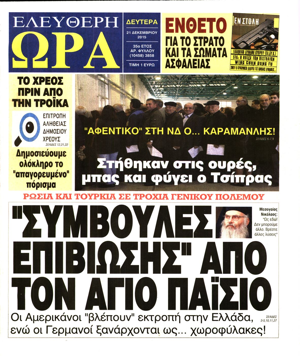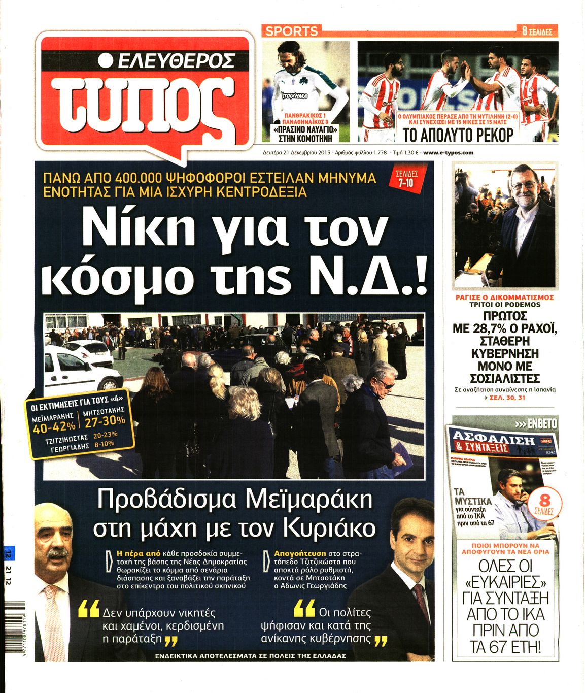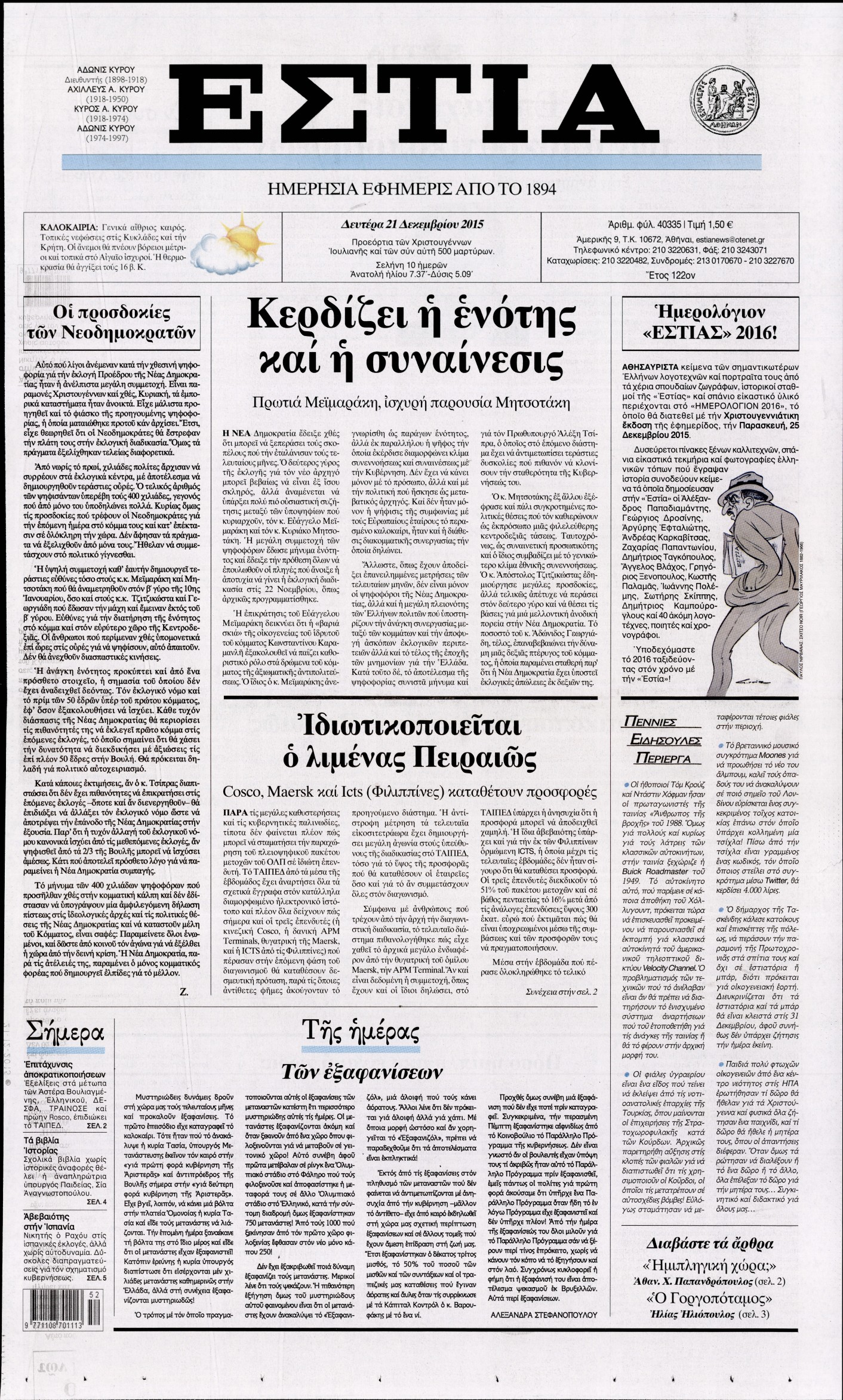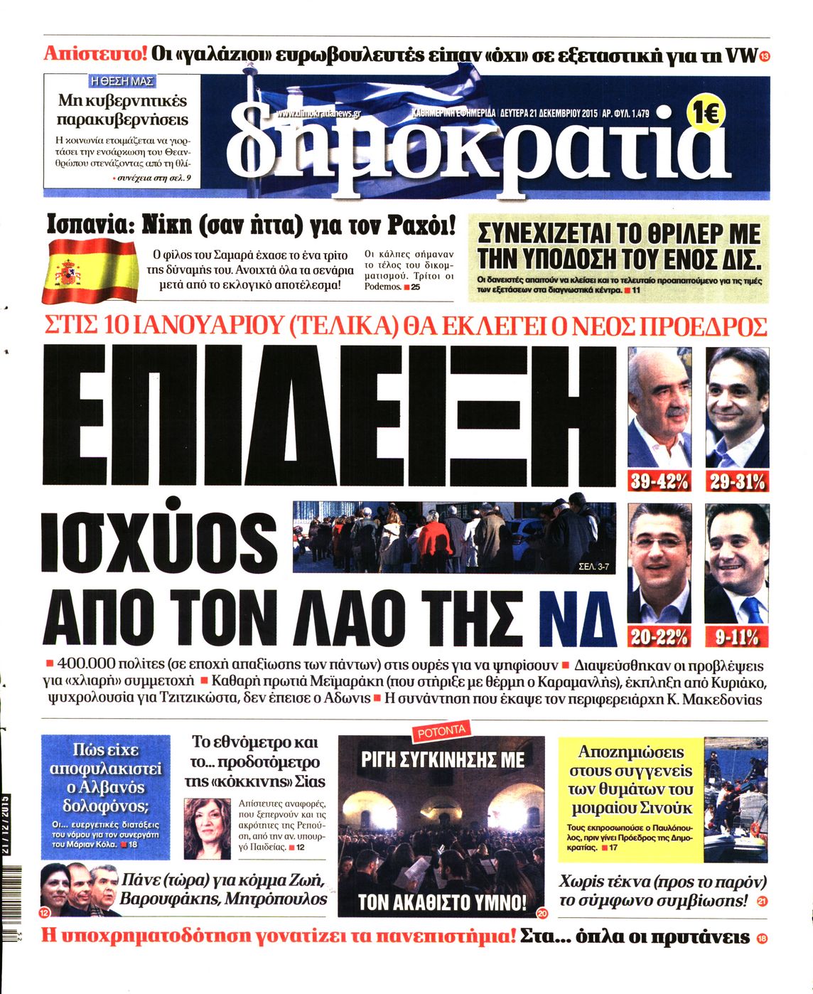 Οι πολιτικές εφημερίδες 21/12/2015 Enikos Newsroom 06:37, Δευτέρα 21 Δεκεμβρίου 2015 Media Διαβάστε τα σημερινά πρωτοσέλιδα των πολιτικών εφημερίδων. ΕΦΗΜΕΡΙΔΕΣ ΠΟΛΙΤΙΚΕΣ ΕΦΗΜΕΡΙΔΕΣ Μοιράσου το: σχολίασε κι εσύ (0 σχόλια) Ακολουθήστε το enikos.gr στο Google News και μάθετε πρώτοι όλες τις ειδήσεις Δείτε όλες τις τελευταίες ειδήσεις από την Ελλάδα και τον Κόσμο στο enikos.gr Ειδήσεις Ροή Ειδήσεων 6 ώρες πριν Χριστούγεννα στα μπλόκα: Επιμένουν στις κινητοποιήσεις τους οι αγρότες – Ανοίγουν τα διόδια το Σαββατοκύριακο 6 ώρες πριν Ουκρανία: Η άνευ προηγουμένου επίθεση σε ρωσικό τάνκερ στη Μεσόγειο και το μήνυμα προς στον Πούτιν – Το «μακρύ χέρι» του Κιέβου 5 ώρες πριν Πούτιν: Τα μηνύματα σε Ευρώπη και ΝΑΤΟ από το μαραθώνιο «σόου» του – Η απαίτηση για «σεβασμό» και η ειρήνη «με τους όρους» της Μόσχας 6 ώρες πριν Τραμπ: Δεν αποκλείει την πιθανότητα ενός πολέμου στη Βενεζουέλα – «Ο Μαδούρο ξέρει καλύτερα από τον καθένα τι ακριβώς θέλω» 7 ώρες πριν Συνεχίζει να προκαλεί ο Μίτσκοσκι: «Για μένα το όνομα Μακεδονία είναι ιερό» 5 ώρες πριν Ανακαλύφθηκαν αρχαία χρυσά νομίσματα 2.200 ετών που απεικονίζουν τον θεό Απόλλωνα – Η άγνωστη σύνδεση με τον Φίλιππο Β΄ της Μακεδονίας 6 ώρες πριν Ύπνος: Μια κρυφή κατάσταση του εγκεφάλου πριν από τον ύπνο μπορεί να είναι το “κλειδί” για υψηλή ευφυΐα και δημιουργικότητα 7 ώρες πριν Αριθμολογία: Οι άνθρωποι που έχουν γεννηθεί αυτές τις 4 ημερομηνίες, συχνά παρεξηγούνται – «Η καλοσύνη τους κρύβει τεράστια δύναμη» 8 ώρες πριν Ξεχάστε το καθάρισμα το Σαββατοκύριακο: Ο «κανόνας των 20 λεπτών» που θα σας λύσει τα χέρια 6 λεπτά πριν Βολιβία: Μαζική διαδηλώσεις εναντίον της κατάργησης των επιδοτήσεων των τιμών των καυσίμων 21 λεπτά πριν Φως στο Τούνελ: Έφτασε η ώρα της αλήθειας για την δολοφονία της χήρας του πρώην υπουργού στο Κολωνάκι 36 λεπτά πριν Ντόναλντ Τραμπ: Προστέθηκε το όνομά του στην πρόσοψη του Κέντρου Κένεντι – Οργισμένη αντίδραση των συγγενών του JFK 51 λεπτά πριν Ταμίλα Κουλίεβα: «Δεν θέλω να είμαι κάποια που πορεύεται συνεχώς με τις ίδιες αναφορές» 1 ώρα πριν Η Ελλάδα προσχωρεί στη Διεθνή Επιτροπή Αποζημιώσεων για την Ουκρανία ENIKOS NETWORK Το ΕΚΑΒ τιμήθηκε από την Ακαδημία Αθηνών για τα 40 χρόνια προσφοράς του Έχετε πραγματικά μεγάλη καρδιά; 10 χαρακτηριστικά όσων έχουν καλοσύνη Αναστολή μέτρων αναγκαστικής εκτέλεσης για κτηνοτρόφους που πλήττονται από την ευλογιά των αιγοπροβάτων Πλήρης επάρκεια προϊόντων στις λαϊκές της Αττικής, παρά τις αγροτικές κινητοποιήσεις – Τι απαντούν οι πωλητές Χαρτογραφώντας το «σημείο χωρίς επιστροφή»: Για πρώτη φορά αποκαλύπτεται με λεπτομέρεια το ακανθώδες όριο της ατμόσφαιρας τ... Η Google καταργεί τη λειτουργία «dark web report» – Πώς θα μπορούν οι χρήστες να διαγράφουν τα δεδομένα τους περισσότερα 02:50 , Σάββατο 20 Δεκεμβρίου 2025 GNTM: Η Ξένια Τσίρκοβα αναδείχθηκε μεγάλη νικήτρια και πήρε τις 50.000 ευρώ – Ποιος βρέθηκε σε απόσταση αναπνοής; Με φαντασμαγορικό τρόπο ολοκληρώθηκε το βράδυ της Παρασκευής ο μεγάλος τελικός του GNTM, μέσα ... 22:42 , Παρασκευή 19 Δεκεμβρίου 2025 Γιώργος Γιαννόπουλος για “Το σόι σου”: “Είναι ευτυχία και ευλογία αυτή η σειρά” «Είναι ευτυχία και ευλογία η συγκυρία αυτής της σειράς», θα πει ο Γιώργος Γιαννόπουλος -ο αγαπ... 20:37 , Παρασκευή 19 Δεκεμβρίου 2025 Don’t Forget The Lyrics: Η Έλλη Κοκκίνου υποδέχεται 4 παίκτες που θα κάνουν τα πάντα για να μη χάσουν ούτε… μισή λέξη από τους στίχους Το «Don’t Forget The Lyrics» επιστρέφει απόψ