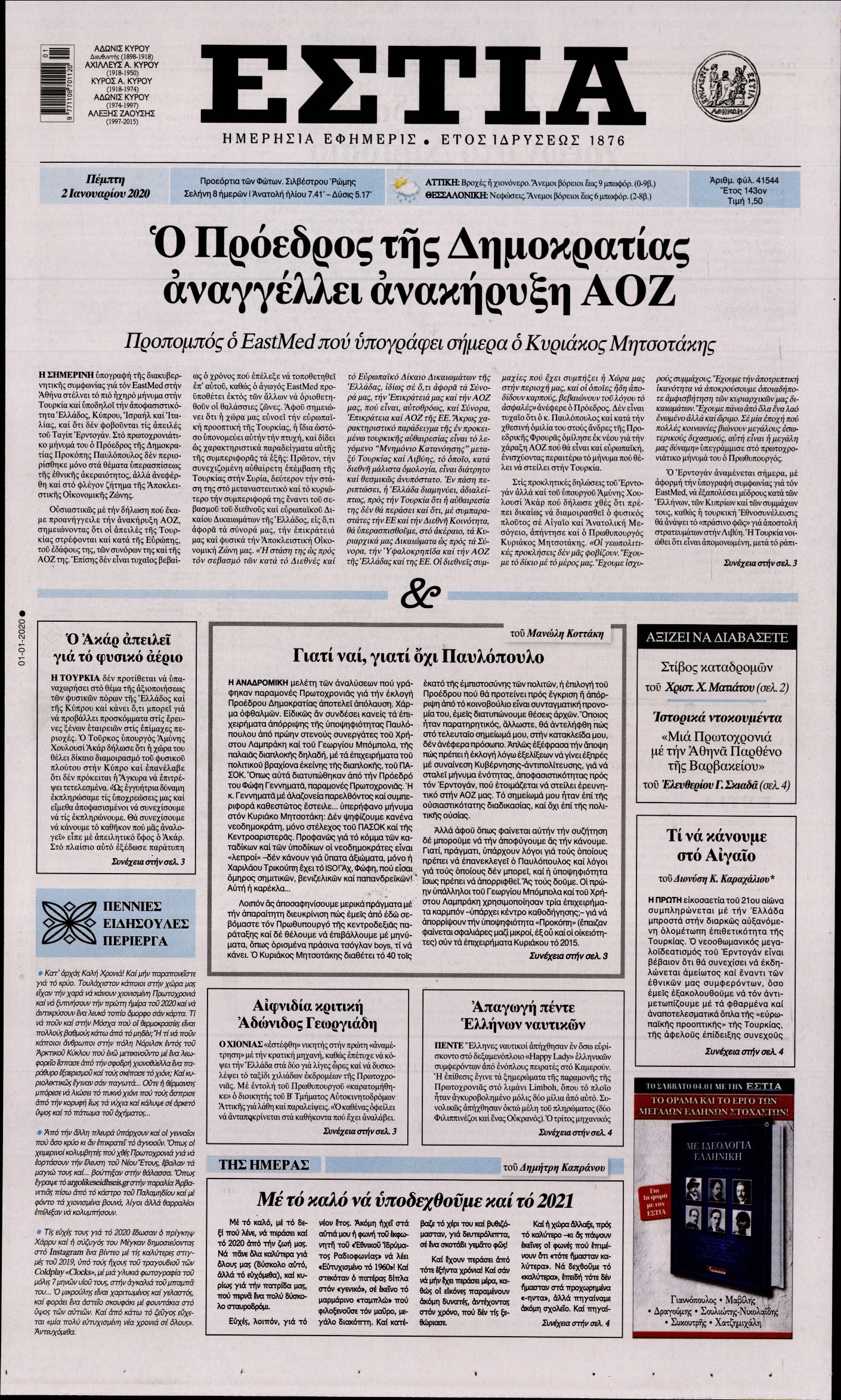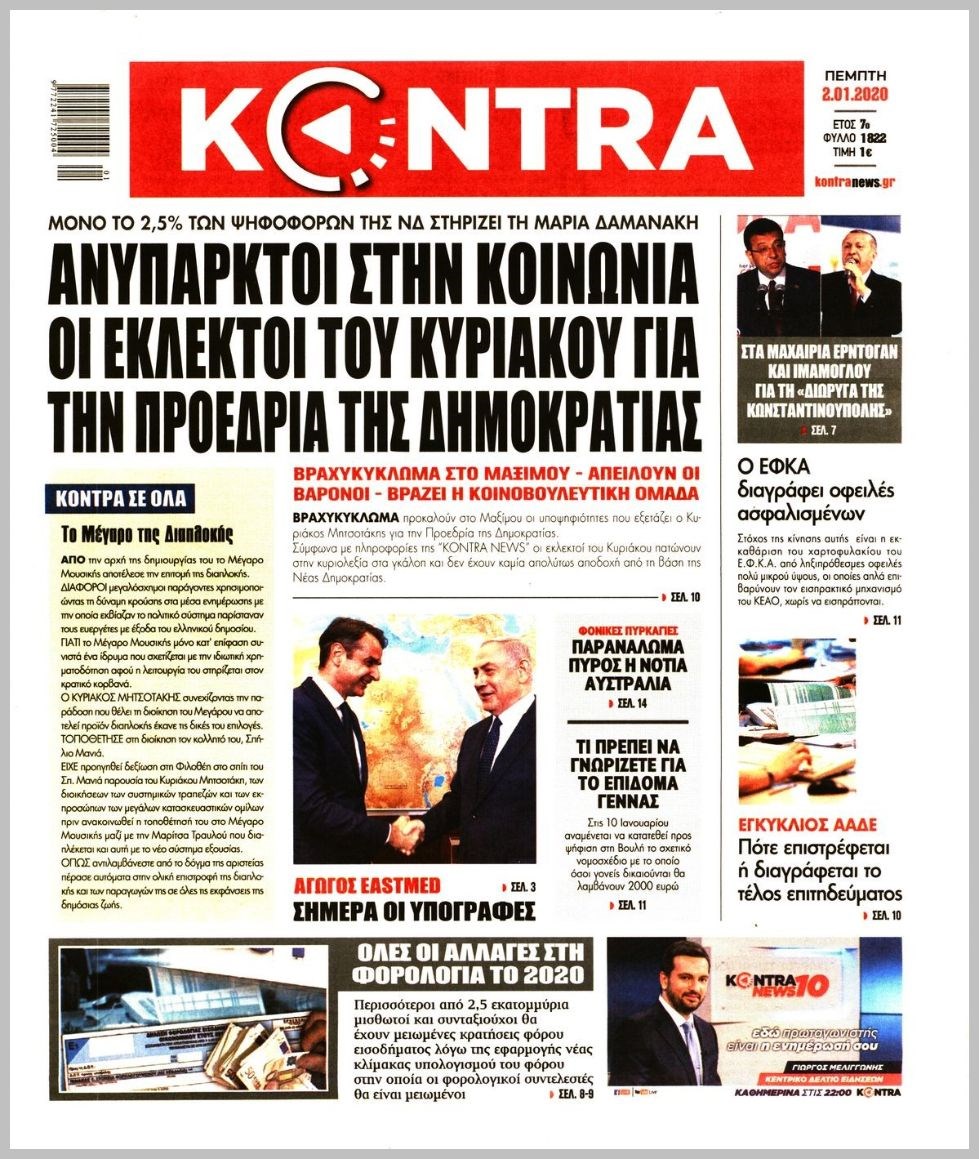 Οι πολιτικές εφημερίδες 2/1/20 Διονύσης Νίκκας 06:46, Πέμπτη 02 Ιανουαρίου 2020 Media Διαβάστε τα πρωτοσέλιδα των πολιτικών εφημερίδων… ΕΦΗΜΕΡΙΔΕΣ ΠΟΛΙΤΙΚΕΣ ΠΡΩΤΟΣΕΛΙΔΑ Μοιράσου το: σχολίασε κι εσύ (0 σχόλια) Ακολουθήστε το enikos.gr στο Google News και μάθετε πρώτοι όλες τις ειδήσεις Δείτε όλες τις τελευταίες ειδήσεις από την Ελλάδα και τον Κόσμο στο enikos.gr Ειδήσεις Ροή Ειδήσεων 22 λεπτά πριν Τρίκαλα: Τα νέα δεδομένα για την «φονική» διαρροή μετά το πόρισμα της Πυροσβεστικής – Την Πέμπτη και την Παρασκευή οι κηδείες των 5 αδικοχαμένων γυναικών 2 λεπτά πριν Τα σενάρια για τα αίτια της τραγωδίας στη Ρουμανία – Γιατί οι αρχές εστιάζουν στα τελευταία δευτερόλεπτα πριν από τη μοιραία σύγκρουση 13 λεπτά πριν Γερμανία: Η μυστική περιουσία του Αμπράμοβιτς που «πυροδότησε» την έρευνα στην Deutsche Bank – Πού πήγαν τα δισεκατομμύρια από την πώληση της Τσέλσι; 2 ώρες πριν Δημοσκόπηση GPO: Προβάδισμα 13,7 μονάδων της ΝΔ έναντι του ΠΑΣΟΚ – Μεγάλη άνοδος για τους αναποφάσιστους 33 λεπτά πριν Τραγωδία στην Ρουμανία: Με λευκά τριαντάφυλλα στην Τούμπα ο Πατριάρχης Βαρθολομαίος – «Ο πόνος είναι δυσβάσταχτος» 1 ώρα πριν Ύπνος: Το βραδινό σνακ που μπορεί να σας κρατήσει ξύπνιους – Υγιεινές εναλλακτικές για ποιοτική ξεκούραση 2 ώρες πριν Η πιο τυχερή μέρα για κάθε ζώδιο τον Φεβρουάριο – «Είναι ο μήνας που θα κάνει τα πάντα στη ζωή σας να φαίνονται διαφορετικά» 3 ώρες πριν Στεγνωτήριο: Το απλό κόλπο που περιορίζει την φθορά των ρούχων με την πάροδο του χρόνου 4 λεπτά πριν Ανακαλύφθηκε σπάνιος σφραγισμένος μεσαιωνικός σταυρός-λειψανοθήκη σε βιβλική πόλη που ο Απόστολος Παύλος επισκέφθηκε 3 φορές 2 λεπτά πριν Τα σενάρια για τα αίτια της τραγωδίας στη Ρουμανία – Γιατί οι αρχές εστιάζουν στα τελευταία δευτερόλεπτα πριν από τη μοιραία σύγκρουση 4 λεπτά πριν Ανακαλύφθηκε σπάνιος σφραγισμένος μεσαιωνικός σταυρός-λειψανοθήκη σε βιβλική πόλη που ο Απόστολος Παύλος επισκέφθηκε 3 φορές 12 λεπτά πριν Αλίκη Βουγιουκλάκη: Οι αδημοσίευτες φωτογραφίες από τα γυρίσματα της ταινίας η «Αλίκη στο Ναυτικό» 13 λεπτά πριν Γερμανία: Η μυστική περιουσία του Αμπράμοβιτς που «πυροδότησε» την έρευνα στην Deutsche Bank – Πού πήγαν τα δισεκατομμύρια από την πώληση της Τσέλσι; 17 λεπτά πριν «Porto Leone: Στη γειτονιά με τα κόκκινα φανάρια»: Το παιχνίδι της εκδίκησης μόλις ξεκινά – Τι θα δούμε στα νέα επεισόδια ENIKOS NETWORK Δύο από τους τρεις τραυματίες οπαδούς του ΠΑΟΚ επιστρέφουν αύριο από τη Ρουμανία-Τι αναφέρει ο Άδωνις Γεωργιάδης Ξυπνάτε στις 3 τα ξημερώματα και δεν μπορείτε να ξανακοιμηθείτε; Οι ειδικοί αποκαλύπτουν ποια πάθηση μπορεί να έχετε Μελέτη του ΟΟΣΑ για την Εκπαίδευση στην Ελλάδα – Πού «βλέπει» πρόοδο και πού ανάγκη για περαιτέρω βελτίωση Γιάννης Μπρατάκος: «Η ισχυρή και βιώσιμη ανάπτυξη προϋποθέτει ισχυρές, υγιείς και χρηματοδοτούμενες επιχειρήσεις» Η Google αλλάζει το Gmail έπειτα από 20 χρόνια – Προσέξτε μην χάσετε τον λογαριασμό σας Γνωστός προπονητής ποδοσφαίρου απολύθηκε επειδή χρησιμοποιούσε το ChatGPT για «κρίσιμες αποφάσεις» περισσότερα 22:50 , Τετάρτη 28 Ιανουαρίου 2026 «Porto Leone: Στη γειτονιά με τα κόκκινα φανάρια»: Το παιχνίδι της εκδίκησης μόλις ξεκινά – Τι θα δούμε στα νέα επεισόδια Το «Porto Leone: Στη γειτονιά με τα κόκκινα φανάρια» επιστρέφει την Τρίτη 03 Φεβρουαρίου στις ... 20:56 , Τετάρτη 28 Ιανουαρίου 2026 HOTΕΛ ΕΛVIRA: O Χάρι κάνει ό,τι μπορεί για να πλησιάσει ξανά την Ελβίρα To HOTΕΛ ΕΛVIRA ανοίγει και πάλι τις πόρτες του κα