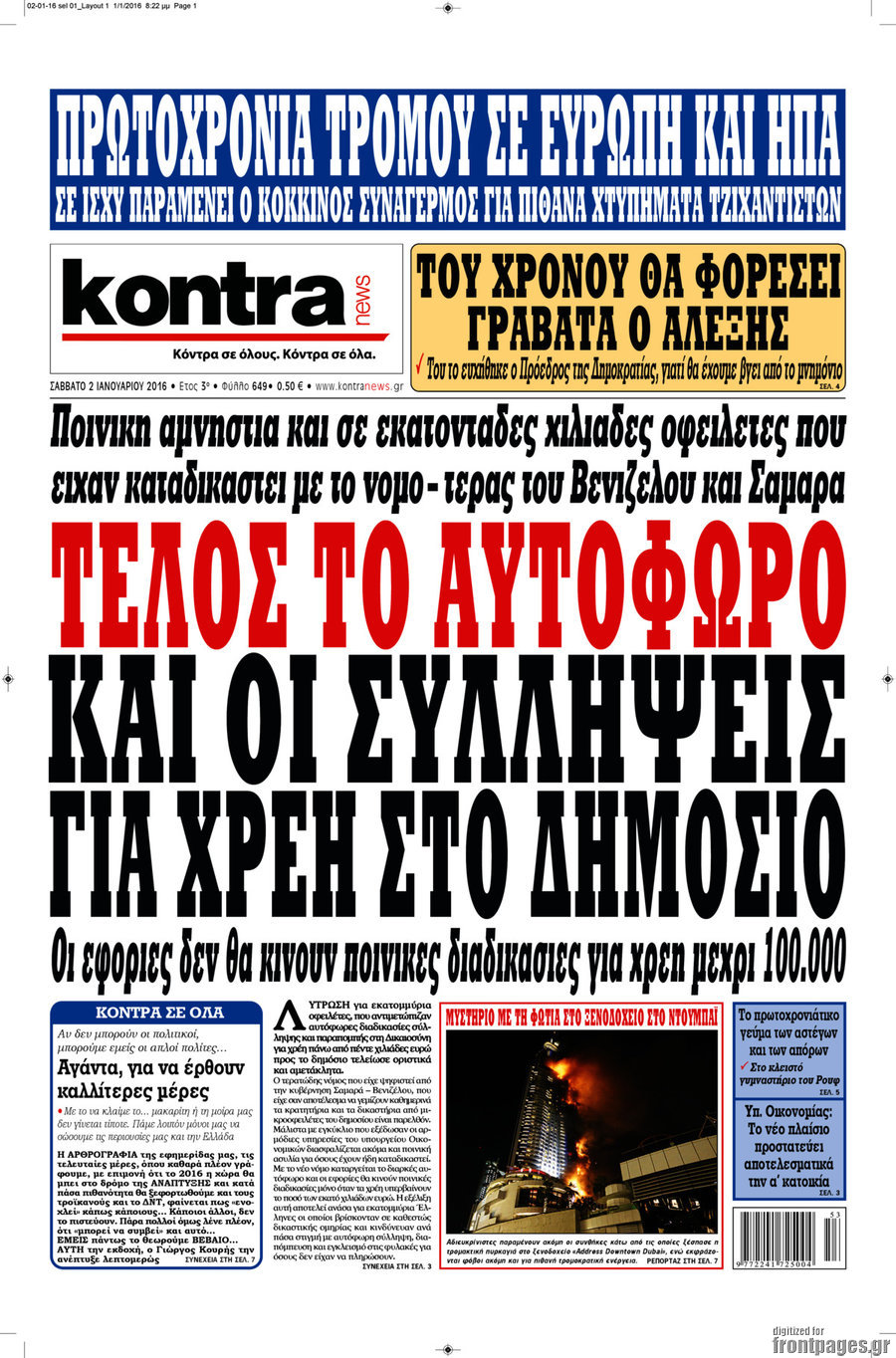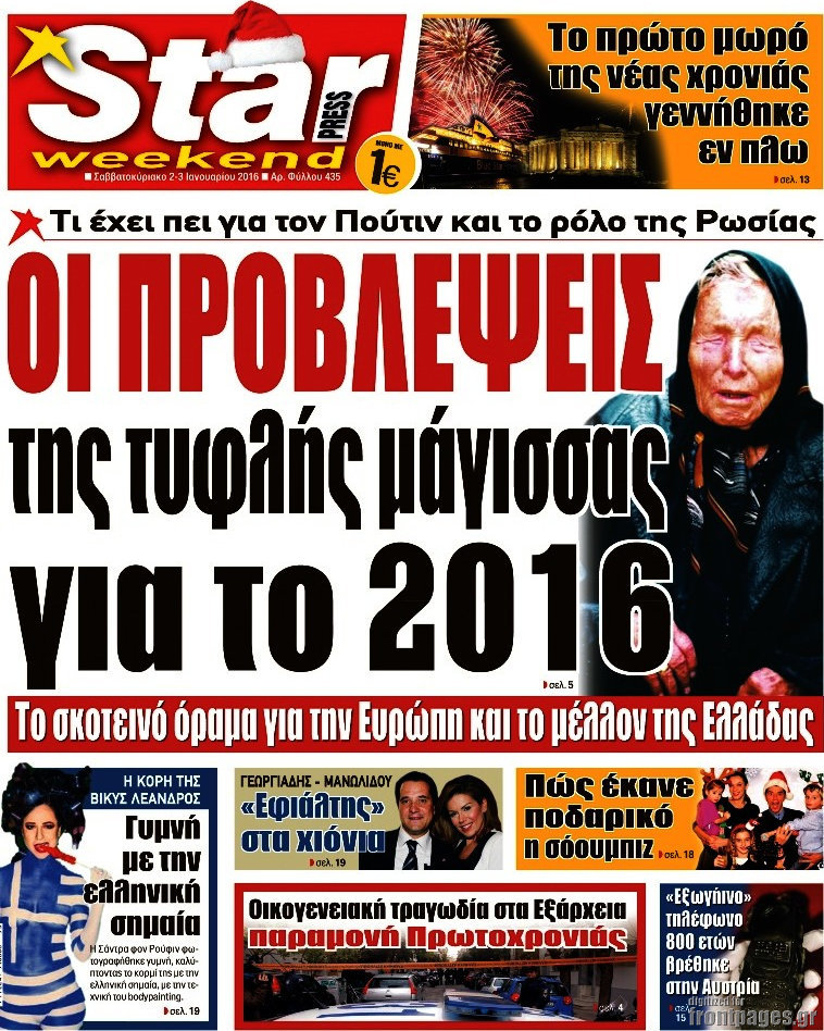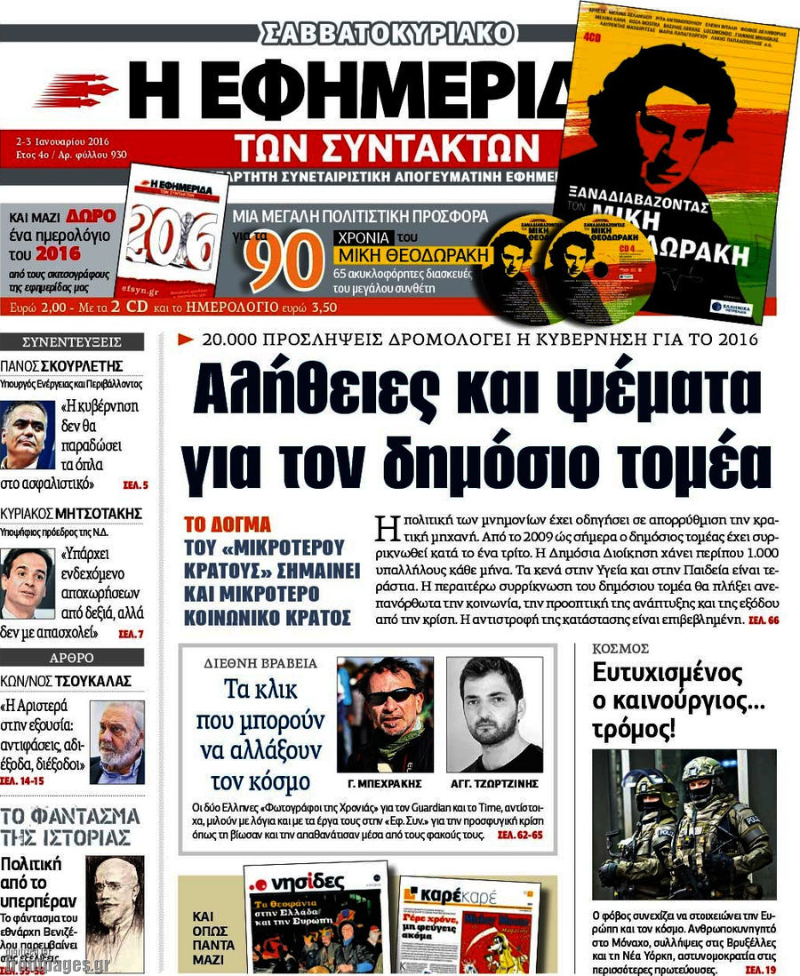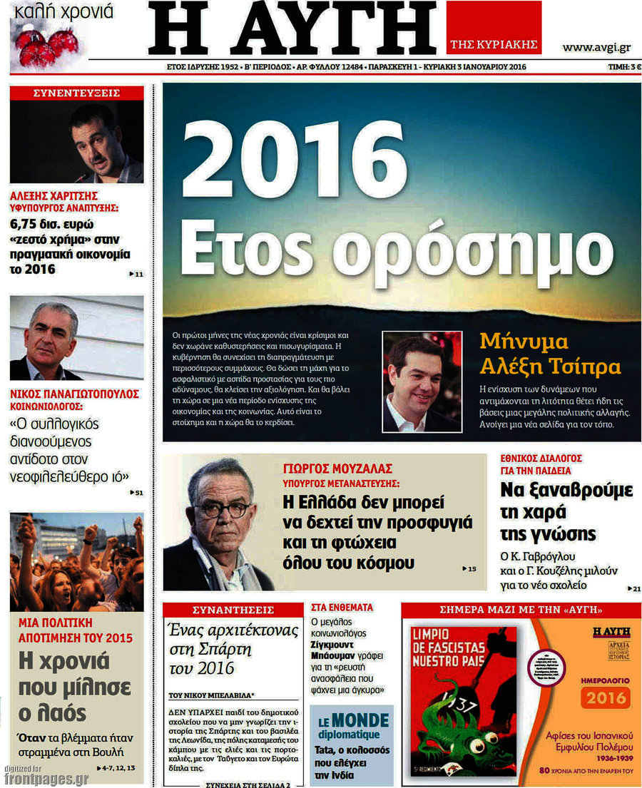 Οι πολιτικές εφημερίδες 2/1/2016 Enikos Newsroom 08:42, Σάββατο 02 Ιανουαρίου 2016 Media Διαβάστε τα σημερινά πρωτοσέλιδα των πολιτικών εφημερίδων: ΠΟΛΙΤΙΚΕΣ ΕΦΗΜΕΡΙΔΕΣ Μοιράσου το: σχολίασε κι εσύ (0 σχόλια) Ακολουθήστε το enikos.gr στο Google News και μάθετε πρώτοι όλες τις ειδήσεις Δείτε όλες τις τελευταίες ειδήσεις από την Ελλάδα και τον Κόσμο στο enikos.gr Ειδήσεις Ροή Ειδήσεων 2 ώρες πριν Μπλόκα: Οι αγρότες σηκώνουν τις μπάρες σε διόδια για τους εκδρομείς των Χριστουγέννων και μοιράζουν προϊόντα – Βίντεο 2 ώρες πριν Τσιάρας προς αγρότες: Τα μπλόκα και τα πείσματα δεν ωφελούν – Οι λύσεις περνούν μέσα από τον διάλογο 3 ώρες πριν Αρχεία Έπσταϊν: Οι συγκλονιστικές φωτογραφίες – Ο Μάικλ Τζάκσον, ο Μικ Τζάγκερ και ο Κέβιν Σπέισι ανάμεσα στους διάσημους που απεικονίζονται 54 λεπτά πριν Μαθητές διακινούσαν κοκαΐνη και χασίς σε σχολείο της Αττικής – 12 συλλήψεις 60 λεπτά πριν Βέλγιο: Άγνωστοι έριξαν κόκκινη μπογιά στο προξενείο της Πολωνίας στις Βρυξέλλες 5 ώρες πριν Μία νέα «χρυσή» περίοδος αρχίζει για 3 ζώδια από σήμερα – «Μία αναπάντεχη ευκαιρία οδηγεί στην επιτυχία» 3 ώρες πριν Διαιτολόγος αποκαλύπτει 9 πρωινές συνήθειες που «λιώνουν» το κοιλιακό λίπος – «Υποστηρίζουν την υγιεινή απώλεια βάρους» 4 ώρες πριν Οι 7 φράσεις που δεν λένε ποτέ οι συναισθηματικά έξυπνοι άνθρωποι κατά τη διάρκεια ενός καβγά 6 ώρες πριν Enerwave: Το νέο «ρεύμα» στη λιανική ενέργειας που αλλάζει την εμπειρία του καταναλωτή 3 λεπτά πριν Μαρινάκης στον Realfm 97,8: Η κυβέρνηση σέβεται κάθε λογική διεκδίκηση των αγροτών, αλλά και το αίτημα των πολιτών να μην ταλαιπωρούνται 9 λεπτά πριν O Πάντερ MVP της 17ης αγωνιστικής στην Euroleague 17 λεπτά πριν Πέθανε η τραγουδίστρια Κλαούντια Ντελμέρ 25 λεπτά πριν Μία ανεκμετάλλευτη πηγή θα μπορούσε να προσφέρει ανεξάντλητη ενέργεια – Οι επιστήμονες ίσως γνωρίζουν πώς να την ξεκλειδώσουν 34 λεπτά πριν Θεσσαλονίκη: Ανήλικος που είχε εξαφανιστεί βρέθηκε στο σπίτι Τούρκων μετά από αστυνομική επιχείρηση ENIKOS NETWORK Η αποχή από την αναπαραγωγή παρατείνει τη ζωή στα ζώα, σύμφωνα με μελέτη – Τι ισχύει για τους ανθρώπους; Σημαντικές επαφές στις ΗΠΑ είχε ο υπουργός Υγείας Άδωνις Γεωργιάδης Ευλογιά αιγοπροβάτων: Παρατεταμένη επιζωοτία, αυστηρά μέτρα – Τι ισχύει για τον εμβολιασμό και την ανασύσταση του ζωικού κε... Τσιάρας προς αγρότες: Έχει ικανοποιηθεί το 74% των αιτημάτων – Τα μπλόκα και τα πείσματα δεν ωφελούν Χαρτογραφώντας το «σημείο χωρίς επιστροφή»: Για πρώτη φορά αποκαλύπτεται με λεπτομέρεια το ακανθώδες όριο της ατμόσφαιρας τ... Η Google καταργεί τη λειτουργία «dark web report» – Πώς θα μπορούν οι χρήστες να διαγράφουν τα δεδομένα τους περισσότερα 14:04 , Σάββατο 20 Δεκεμβρίου 2025 Η Realnews αυτής της Κυριακής (21/12/2025) Με τίτλο: «Ασπίδα προστασίας για την Ελλάδα» κυκλοφορεί, αυτήν την Κυριακή, η Realnews. Σημαντ... 12:53 , Σάββατο 20 Δεκεμβρίου 2025 Να μ’ αγαπάς: Το παρελθόν έρχεται στο φως – Καταιγιστικές εξελίξεις στα τελευταία επεισόδια του 2025 Ο Άγγελος αποκαλύπτεται, η Φωτεινή ανησυχεί για τον Λευτέρη και η Ζωή έρχεται αντιμέτωπη με το... 11:41 , Σάββατο 20 Δεκεμβρίου 2025 «Η αγάπη δεν χάνεται ποτέ»: Η μικρού μήκους ταινία κινουμένων σχεδίων που θέτει ερωτήματα για τη ζωή και τον θάνατο Ο θάνατος είναι ένα από τα πιο σκληρά θέματα που καλείται να διαχειριστεί κάποιος στη διάρκεια... 09:30 , Σάββατο 20 Δεκεμβρίου 2025 «Porto Leone: Στη γειτονιά με τα κόκκινα φανάρια» – Ο Χρόνης αποκαλύπτει στην Αλεξάνδρα το μυστικό για το π