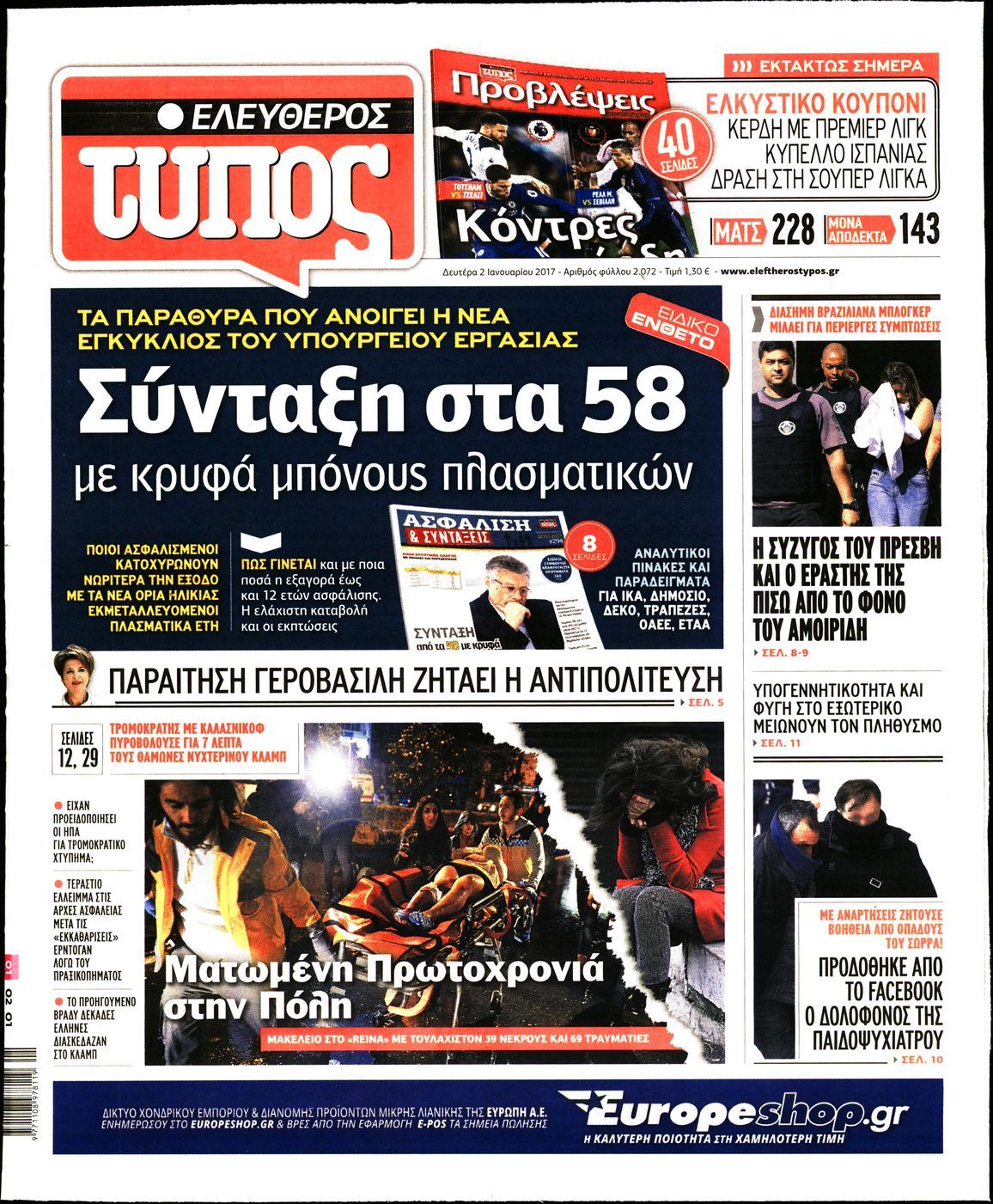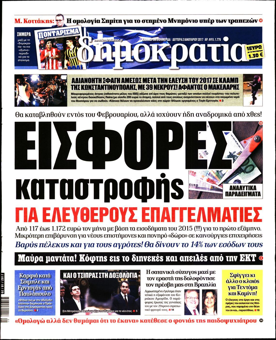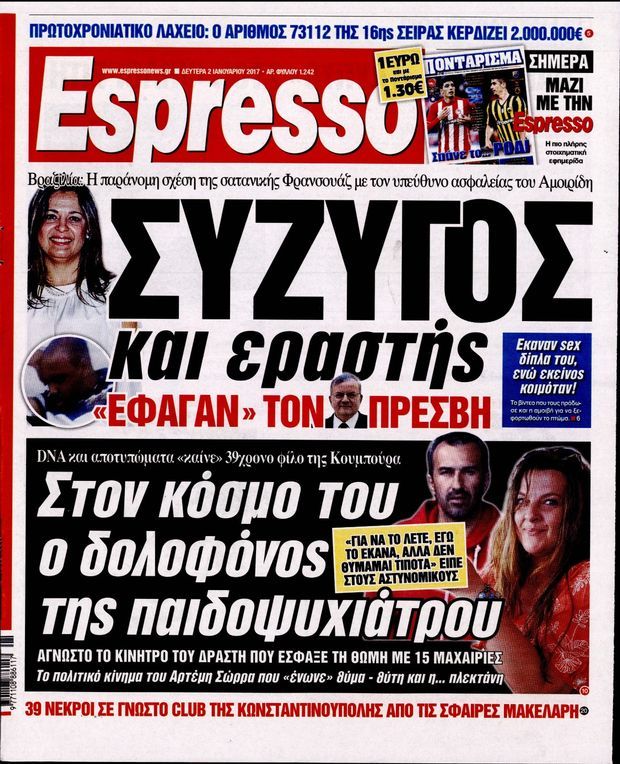Οι πολιτικές εφημερίδες 2/1/2017 Κώστας Τεό 05:03, Δευτέρα 02 Ιανουαρίου 2017 Media Διαβάστε τα σημερινά πρωτοσέλιδα των πολιτικών εφημερίδων: ΠΟΛΙΤΙΚΕΣ ΕΦΗΜΕΡΙΔΕΣ ΠΡΩΤΟΣΕΛΙΔΑ Μοιράσου το: σχολίασε κι εσύ (0 σχόλια) Ακολουθήστε το enikos.gr στο Google News και μάθετε πρώτοι όλες τις ειδήσεις Δείτε όλες τις τελευταίες ειδήσεις από την Ελλάδα και τον Κόσμο στο enikos.gr Ειδήσεις Ροή Ειδήσεων 5 ώρες πριν Χριστούγεννα στα μπλόκα οι αγρότες: Άνοιξαν στα διόδια και μοίρασαν προϊόντα στους πολίτες – Νέα σύσκεψη την Κυριακή στη Νίκαια 5 ώρες πριν Κύκλωμα διακίνησης ναρκωτικών σε σχολεία: Τηλεφωνούσαν στους ανηλίκους την ώρα του μαθήματος – Οι διάλογοι-σοκ, τα «ψευδώνυμα» και τα βασανιστήρια 5 ώρες πριν Αρχεία Επστάιν: Οι 500 σελίδες που λείπουν, τα αναπάντητα ερωτήματα και οι επώνυμοι – Τι έπεται 6 ώρες πριν Ζελένσκι: Μόνο οι ΗΠΑ και ο Τραμπ μπορούν να πιέσουν τη Ρωσία να βάλει τέλος στον πόλεμο 7 ώρες πριν Φοινικούντα: Προφυλακιστέος ο 30χρονος για συνέργεια στη διπλή δολοφονία – Και άλλα πρόσωπα στο «μικροσκόπιο» 5 ώρες πριν Αποκαλύφθηκε το άγνωστο «GPS» της αρχαιότητας – Πώς οι ναοί «φώτιζαν» τον δρόμο των ναυτικών πριν από την εφεύρεση των φάρων 6 ώρες πριν Ύπνος: Η διατροφή που μπορεί να σας βοηθήσει να κοιμάστε καλύτερα και να ζήσετε περισσότερο 7 ώρες πριν Αριθμολογία: Ο αριθμός του φύλακα αγγέλου σας, με βάση τον μήνα γέννησής σας – «Έτσι σας στέλνει σημάδια το σύμπαν» 19 ώρες πριν Enerwave: Το νέο «ρεύμα» στη λιανική ενέργειας που αλλάζει την εμπειρία του καταναλωτή 2 ώρες πριν Σήμερα με τη Realnews: Δωροεπιταγή 10€ 32 λεπτά πριν Σήμερα με τη Realnews: Ό,τι και αν αγοράσεις, σκανάρεις και κερδίζεις! 22 λεπτά πριν Τρεις Αφγανοί μετανάστες πέθαναν από το κρύο προσπαθώντας να φθάσουν στο Ιράν 28 λεπτά πριν Σήμερα με τη Realnews: Instyle, μαζί Drive και Realnews Geopolitics 37 λεπτά πριν Κηφισιά: Το συγκινητικό «Last dance» του Ανδρέα Τεττέη – «Λύγισε» στην τελευταία του συνέντευξη ως παίκτης της ομάδας των βορείων προαστίων ENIKOS NETWORK Οι γυναίκες αποκαλύπτουν το πιο ελκυστικό πράγμα που μπορεί να κάνει ένας άνδρας Ομορφιά και αντιγήρανση: Ειδικοί μιλούν για συσκευές περιποίησης του δέρματος «Πολεμική» προετοιμασία από την ευρωπαϊκή βιομηχανία ενέργειας – Η Eurelectric ζητεί «ομπρέλα» προστασίας για τις υποδομές Ακύρωση ΑΦΜ για απάτες – Ποιους βάζει στο στόχαστρο η ΑΑΔΕ Χαρτογραφώντας το «σημείο χωρίς επιστροφή»: Για πρώτη φορά αποκαλύπτεται με λεπτομέρεια το ακανθώδες όριο της ατμόσφαιρας τ... Η Google καταργεί τη λειτουργία «dark web report» – Πώς θα μπορούν οι χρήστες να διαγράφουν τα δεδομένα τους περισσότερα 03:08 , Κυριακή 21 Δεκεμβρίου 2025 Σήμερα με τη Realnews: Instyle, μαζί Drive και Realnews Geopolitics Σήμερα με τη Realnews: Instyle, μαζί Drive και Realnews Geopolitics Instyle Η Άννα Ρεζάν, η Ch... 01:30 , Κυριακή 21 Δεκεμβρίου 2025 Άννα Βίσση: Τα… Social Media «προσκύνησαν» την «απόλυτη» για την συναυλία της στο Καλλιμάρμαρο που προβλήθηκε από το Mega Την ημέρα των γενεθλίων της Άννας Βίσση, το MEGA τίμησε τη διαχρονική παρουσία της «απόλυτης Ε... 00:00 , Κυριακή 21 Δεκεμβρίου 2025 The Voice: Η επιστροφή της Έλενας Παπαρίζου και η ατάκα του Γιώργου Μαζωνάκη μετά τις καταγγελίες Στη φάση των Cross Battles Live μπήκε το The Voice, με την Έλενα Παπαρίζου να επιστρέφει στο π... ΤΕΛΕΥΤΑΙΕΣ ΕΙΔΗΣΕΙΣ 22 λεπτά πριν Τρεις Αφγανοί μετανάστες πέθαναν από το κρύο... 28 λεπτά πριν Σήμερα με τη Realnews: Instyle, μαζί Drive και Realnews Geopolitics 37 λεπτά πριν Κηφισιά: Το συγκινητικό «Last dance» του Ανδρέα Τεττέη –... 51 λεπτά πριν Οι «εποικοδομητι
