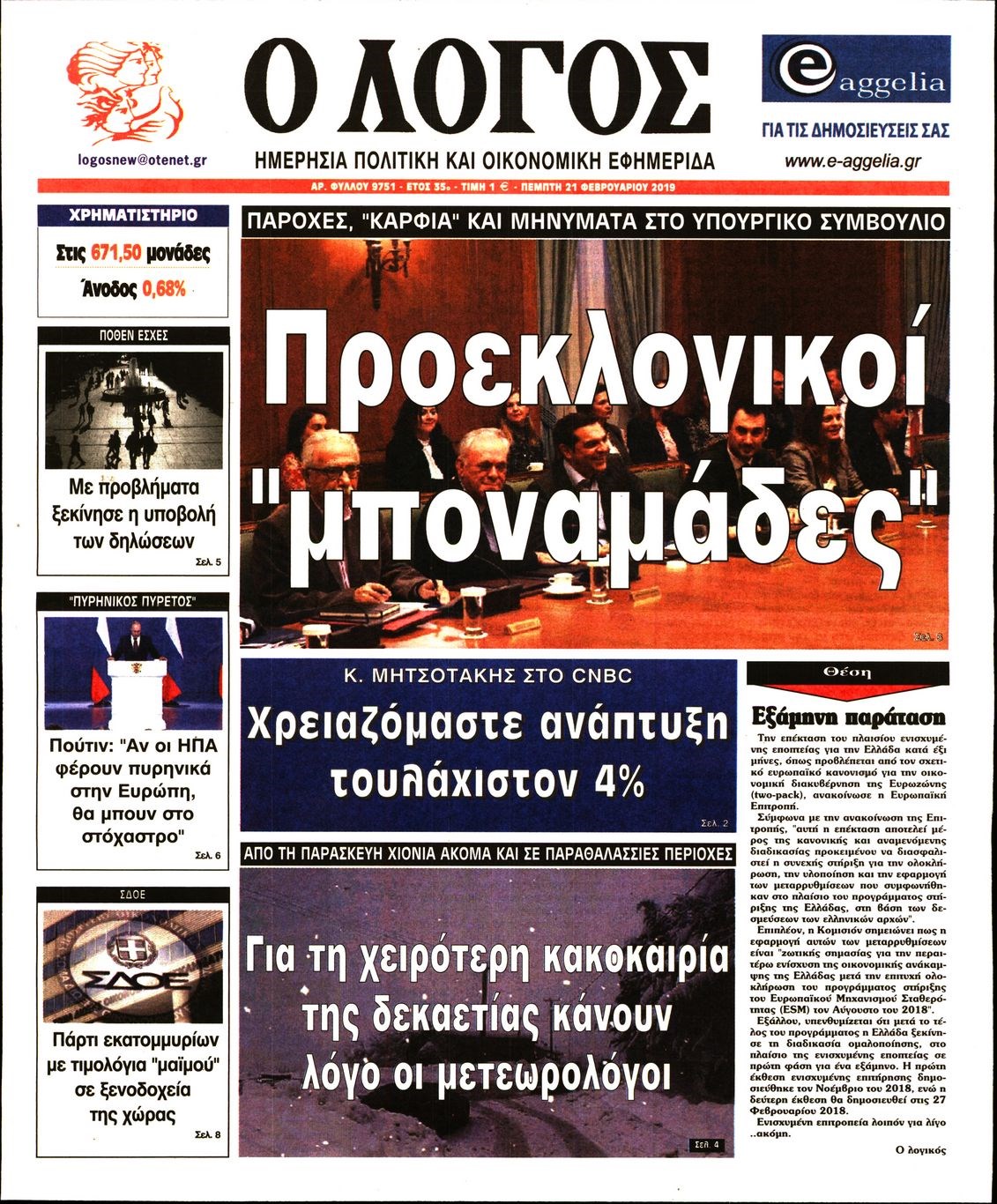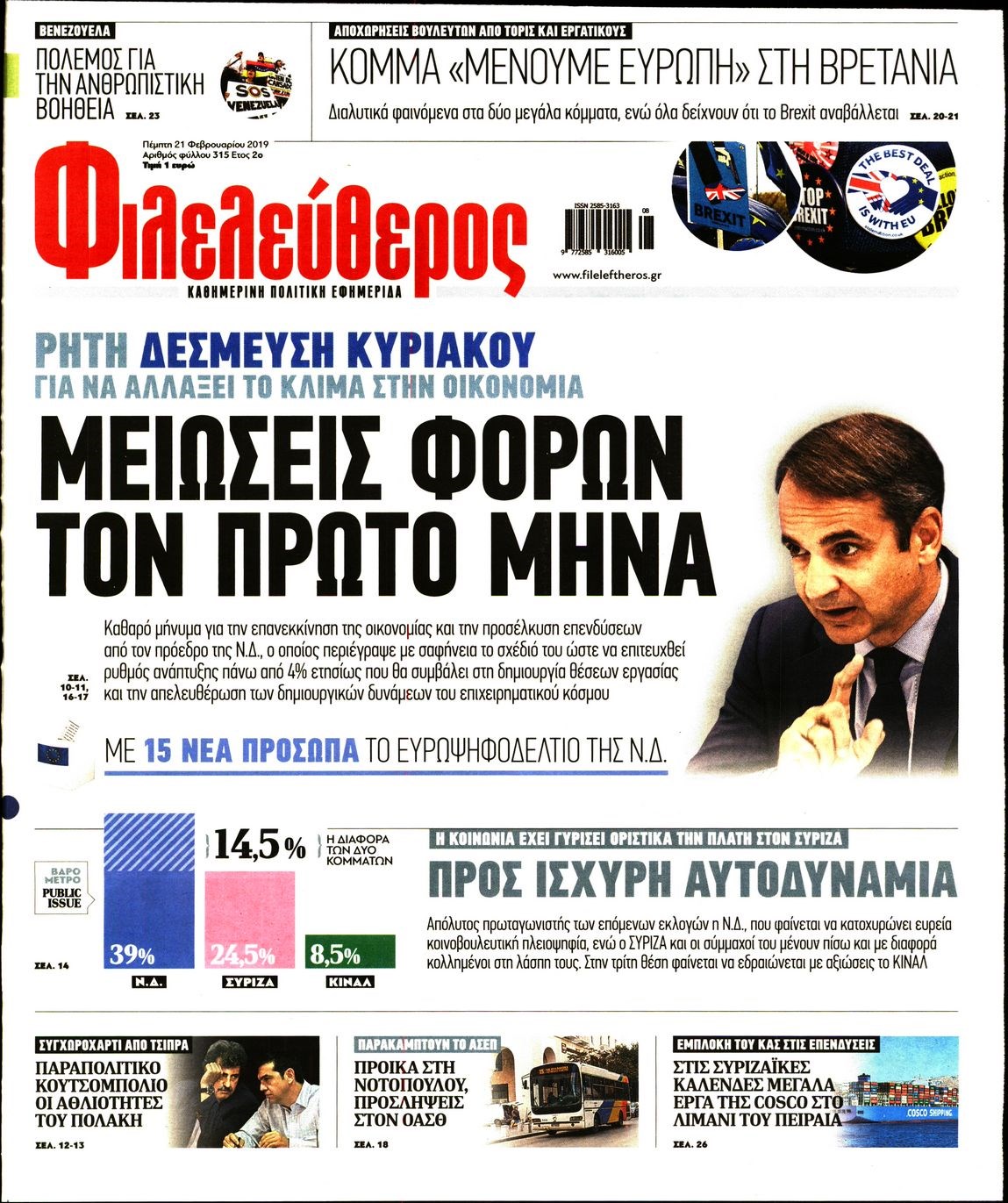 Οι πολιτικές εφημερίδες 21/2/19 Enikos Newsroom 06:27, Πέμπτη 21 Φεβρουαρίου 2019 Media Διαβάστε τα πρωτοσέλιδα των πολιτικών εφημερίδων: ΠΟΛΙΤΙΚΕΣ ΕΦΗΜΕΡΙΔΕΣ ΠΡΩΤΟΣΕΛΙΔΑ Μοιράσου το: σχολίασε κι εσύ (0 σχόλια) Ακολουθήστε το enikos.gr στο Google News και μάθετε πρώτοι όλες τις ειδήσεις Δείτε όλες τις τελευταίες ειδήσεις από την Ελλάδα και τον Κόσμο στο enikos.gr Ειδήσεις Ροή Ειδήσεων 5 ώρες πριν Χριστούγεννα στα μπλόκα οι αγρότες: Άνοιξαν στα διόδια και μοίρασαν προϊόντα στους πολίτες – Νέα σύσκεψη την Κυριακή στη Νίκαια 6 ώρες πριν Κύκλωμα διακίνησης ναρκωτικών σε σχολεία: Τηλεφωνούσαν στους ανηλίκους την ώρα του μαθήματος – Οι διάλογοι-σοκ, τα «ψευδώνυμα» και τα βασανιστήρια 5 ώρες πριν Αρχεία Επστάιν: Οι 500 σελίδες που λείπουν, τα αναπάντητα ερωτήματα και οι επώνυμοι – Τι έπεται 7 ώρες πριν Ζελένσκι: Μόνο οι ΗΠΑ και ο Τραμπ μπορούν να πιέσουν τη Ρωσία να βάλει τέλος στον πόλεμο 7 ώρες πριν Φοινικούντα: Προφυλακιστέος ο 30χρονος για συνέργεια στη διπλή δολοφονία – Και άλλα πρόσωπα στο «μικροσκόπιο» 5 ώρες πριν Αποκαλύφθηκε το άγνωστο «GPS» της αρχαιότητας – Πώς οι ναοί «φώτιζαν» τον δρόμο των ναυτικών πριν από την εφεύρεση των φάρων 6 ώρες πριν Ύπνος: Η διατροφή που μπορεί να σας βοηθήσει να κοιμάστε καλύτερα και να ζήσετε περισσότερο 7 ώρες πριν Αριθμολογία: Ο αριθμός του φύλακα αγγέλου σας, με βάση τον μήνα γέννησής σας – «Έτσι σας στέλνει σημάδια το σύμπαν» 19 ώρες πριν Enerwave: Το νέο «ρεύμα» στη λιανική ενέργειας που αλλάζει την εμπειρία του καταναλωτή 1 ώρα πριν Σήμερα με τη Realnews: Δωροεπιταγή 10€ 3 λεπτά πριν Σήμερα με τη Realnews: Ό,τι και αν αγοράσεις, σκανάρεις και κερδίζεις! 6 λεπτά πριν Βενεζουέλα: Προσφέρει βοήθεια στο Ιράν στην σύγκρουση με τις ΗΠΑ 21 λεπτά πριν Μαριλού Κατσαφάδου: «Η απώλεια της με έβαλε σε διαδικασία να δω διαφορετικά τη ζωή, σαν να ωρίμασα 10 χρόνια» 36 λεπτά πριν Ολυμπιακός: Ξέσπασε ο Τζουλιάν Μπιανκόν – «Ο γκολκίπερ της Κηφισιάς έδινε show, ήταν πέναλτι στο τέλος» ENIKOS NETWORK Οι γυναίκες αποκαλύπτουν το πιο ελκυστικό πράγμα που μπορεί να κάνει ένας άνδρας Ομορφιά και αντιγήρανση: Ειδικοί μιλούν για συσκευές περιποίησης του δέρματος «Πολεμική» προετοιμασία από την ευρωπαϊκή βιομηχανία ενέργειας – Η Eurelectric ζητεί «ομπρέλα» προστασίας για τις υποδομές Ακύρωση ΑΦΜ για απάτες – Ποιους βάζει στο στόχαστρο η ΑΑΔΕ Χαρτογραφώντας το «σημείο χωρίς επιστροφή»: Για πρώτη φορά αποκαλύπτεται με λεπτομέρεια το ακανθώδες όριο της ατμόσφαιρας τ... Η Google καταργεί τη λειτουργία «dark web report» – Πώς θα μπορούν οι χρήστες να διαγράφουν τα δεδομένα τους περισσότερα 03:08 , Κυριακή 21 Δεκεμβρίου 2025 Σήμερα με τη Realnews: Instyle, μαζί Drive και Realnews Geopolitics Σήμερα με τη Realnews: Instyle, μαζί Drive και Realnews Geopolitics Instyle Η Άννα Ρεζάν, η Ch... 01:30 , Κυριακή 21 Δεκεμβρίου 2025 Άννα Βίσση: Τα… Social Media «προσκύνησαν» την «απόλυτη» για την συναυλία της στο Καλλιμάρμαρο που προβλήθηκε από το Mega Την ημέρα των γενεθλίων της Άννας Βίσση, το MEGA τίμησε τη διαχρονική παρουσία της «απόλυτης Ε... 00:00 , Κυριακή 21 Δεκεμβρίου 2025 The Voice: Η επιστροφή της Έλενας Παπαρίζου και η ατάκα του Γιώργου Μαζωνάκη μετά τις καταγγελίες Στη φάση των Cross Battles Live μπήκε το The Voice, με την Έλενα Παπαρίζου να επιστρέφει στο π... ΤΕΛΕΥΤΑΙΕΣ ΕΙΔΗΣΕΙΣ 21 λεπτά πριν Μαριλού Κατσαφάδου: «Η απώλεια της με έβαλε σε... 36 λεπτά πριν Ολυμπιακός: Ξέσπασε ο Τζουλιάν Μπιανκόν – «Ο... 51 λεπτά πριν Τρεις Αφγανοί μετανάστες πέθαναν από το κρύο... 57 λεπτά πριν Σήμερα με τη Realnews: Instyle, 