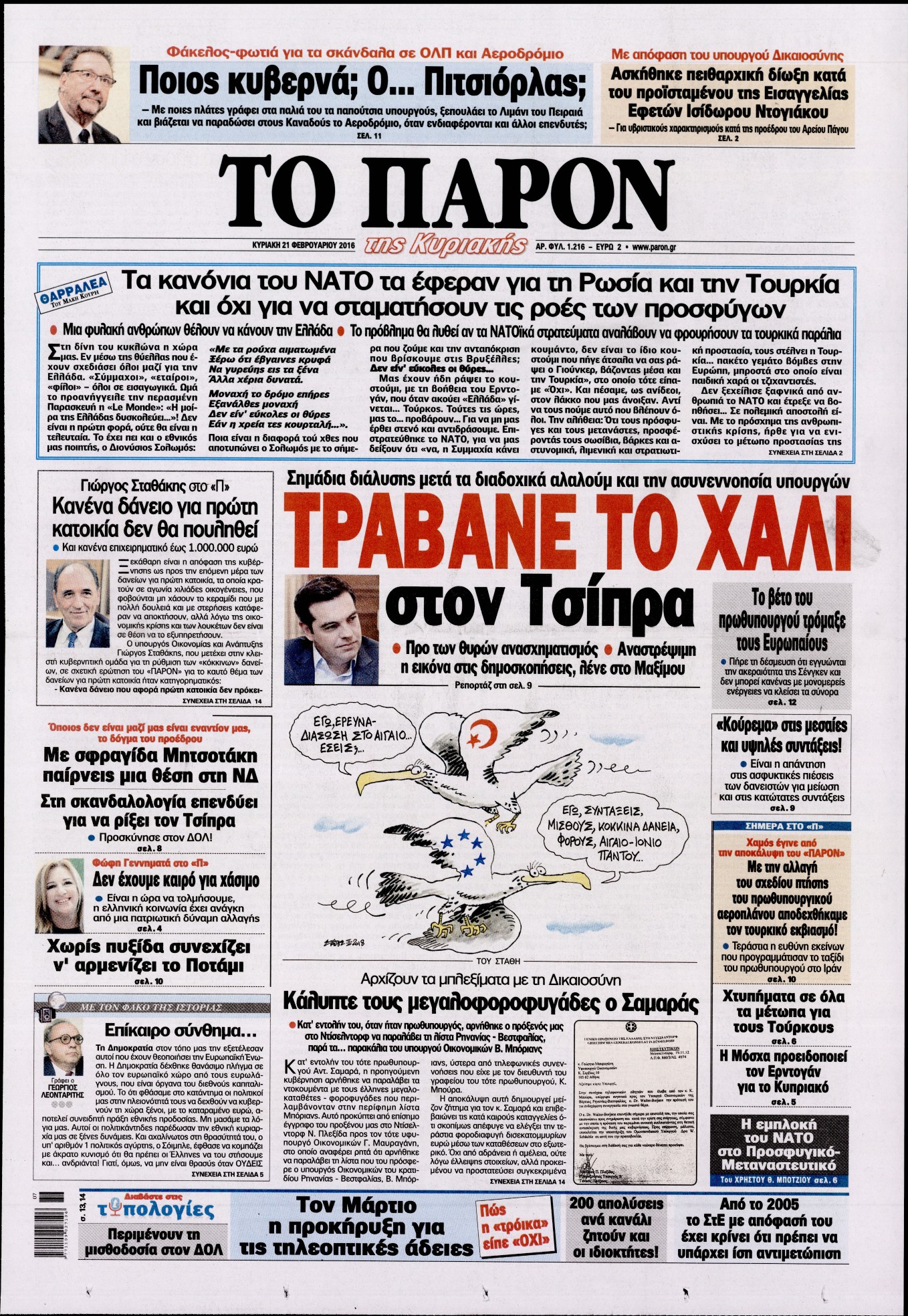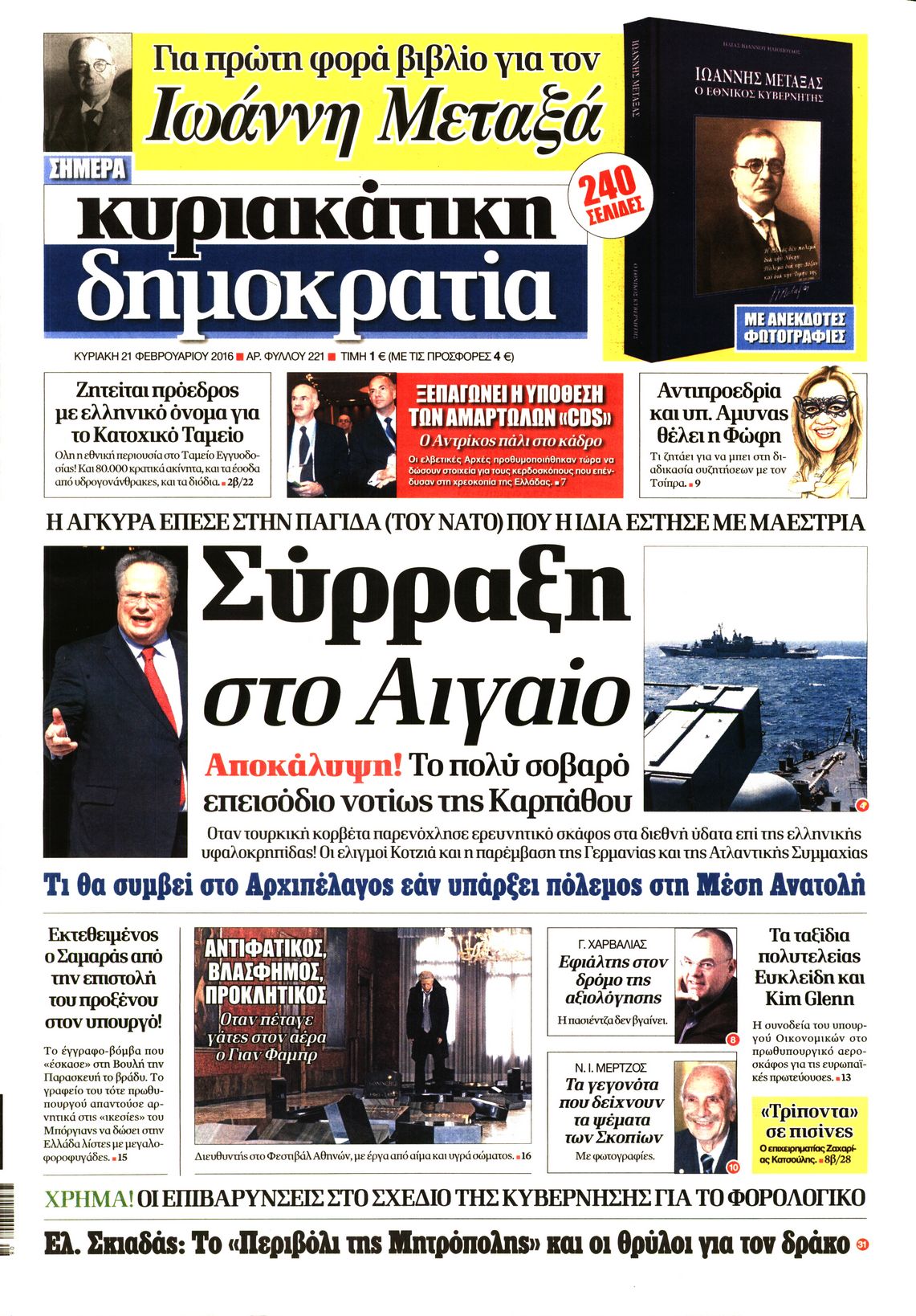 Οι πολιτικές εφημερίδες 21/2/2016 Enikos Newsroom 05:30, Κυριακή 21 Φεβρουαρίου 2016 Media Διαβάστε τα σημερινά πρωτοσέλιδα των πολιτικών εφημερίδων: ΠΟΛΙΤΙΚΕΣ ΕΦΗΜΕΡΙΔΕΣ ΠΡΩΤΟΣΕΛΙΔΑ Μοιράσου το: σχολίασε κι εσύ (0 σχόλια) Ακολουθήστε το enikos.gr στο Google News και μάθετε πρώτοι όλες τις ειδήσεις Δείτε όλες τις τελευταίες ειδήσεις από την Ελλάδα και τον Κόσμο στο enikos.gr Ειδήσεις Ροή Ειδήσεων 4 ώρες πριν Αγρότες: «Δεν έχει “κλειδώσει” η συνάντηση» – Αναμένουν την επίσημη ανακοίνωση της κυβέρνησης για τις επιτροπές που θα προσέλθουν στον διάλογο με τον Πρωθυπουργό 4 ώρες πριν Δολοφονία στη Φοινικούντα: Πώς η AI «έκαψε» τον ανιψιό του ιδιοκτήτη του κάμπινγκ – Οι ύποπτες ερωτήσεις για το «τέλειο έγκλημα» 8 ώρες πριν «Κόλαση» στο Ιράν με πάνω από 500 νεκρούς – Ο Τραμπ ενημερώνεται την Τρίτη για τις επιλογές αντίδρασης, σενάριο για χτύπημα σε μη στρατιωτικούς στόχους 6 ώρες πριν Bloomberg: Βρετανία και Γερμανία συζητούν την παρουσία δυνάμεων του ΝΑΤΟ στη Γροιλανδία 3 ώρες πριν Θρίλερ στην Κύπρο: Μυστήριος θάνατος στην Ρωσική Πρεσβεία στην Λευκωσία και εξαφάνιση 56χρονου ολιγάρχη στη Λεμεσό 4 ώρες πριν Η θρυλική μάχη του 1003 αποδείχθηκε αληθινή – Πώς 500 άνδρες κατατρόπωσαν 20.000 στρατιώτες 5 ώρες πριν Ύπνος: Τα 7 λαχανικά που νικούν την αϋπνία με φυσικό τρόπο – Τι έδειξε μελέτη 6 ώρες πριν Είστε μωρό της νύχτας; Πώς επηρεάζει η ώρα γέννησης την προσωπικότητά σας 7 ώρες πριν Νιώθετε παγιδευμένοι σε έναν γάμο που φαίνεται καταδικασμένος; 5 σημάδια που δείχνουν ότι αξίζει να παλέψετε για τη σχέση σας 3 λεπτά πριν Λος Άντζελες: Φορτηγό έπεσε σε πλήθος που διαδήλωνε υπέρ του Ιράν – Άγνωστος ο αριθμός των τραυματιών – ΒΙΝΤΕΟ 19 λεπτά πριν Βόρεια Μακεδονία: Βανδάλισαν στην πρεσβεία της Βουλγαρίας στα Σκόπια – Έντονη αντίδραση της Σόφιας 39 λεπτά πριν Σφοδρό τροχαίο στην Π.Ε.Ο. Καστοριάς – Κοζάνης: Δύο τραυματίες έπειτα από καραμπόλα τριών οχημάτων – ΦΩΤΟ 1 ώρα πριν Φρίκη στον Ισημερινό: Πέντε ανθρώπινα κεφάλια εντοπίστηκαν σε τουριστική παραλία – Τα συνόδευε απειλητικό μήνυμα 1 ώρα πριν Συνεχίζονται οι κρίσεις στο Πυροσβεστικό Σώμα – Νέος υπαρχηγός ο αντιστράτηγος Αναστάσιος Παππάς ENIKOS NETWORK 2 κρυφά red flags στις σχέσεις που φαίνονται μόνο πάνω στο σεξ Θαμπό και ταλαιπωρημένο δέρμα μετά τις γιορτές; Πώς να αποκτήσετε ξανά νεανική και σφριγηλή επιδερμίδα Καιρός: Χιόνια και πολικές θερμοκρασίες τη Δευτέρα – Η πρόγνωση της ΕΜΥ Συντάξεις: Ολοταχώς προς νέο ρεκόρ συνταξιοδοτήσεων το 2025 – Οι βασικοί λόγοι Ο Google Assistant θα παραμείνει λίγο περισσότερο για ορισμένους χρήστες Android Τεστ προσωπικότητας: Το βάζο που θα επιλέξετε αποκαλύπτει πώς λύνετε προβλήματα στη ζωή σας περισσότερα 13:34 , Κυριακή 11 Ιανουαρίου 2026 Σήμερα με τη Realnews: Μυστηριώδης εξαφάνιση – Ένα καθηλωτικό θρίλερ γεμάτο αγωνία από τον διεθνώς αναγνωρισμένο συγγραφέα Rick Mofina Σήμερα με τη Realnews: Μυστηριώδης εξαφάνιση –Ένα καθηλωτικό θρίλερ γεμάτο αγωνία από το... 13:23 , Κυριακή 11 Ιανουαρίου 2026 Τηλεθέαση 10/1: Οι νικητές και οι χαμένοι του Σαββάτου Δύσκολη μέρα ήταν για αρκετές εκπομπές το Σάββατο (10/1/2026) καθώς κατέγραψαν μεγάλες απώλειε... 11:15 , Κυριακή 11 Ιανουαρίου 2026 Σήμερα με τη Realnews: Ό,τι και αν αγοράσεις, σκανάρεις και κερδίζεις! Σήμερα με τη Realnews: Ό,τι και αν αγοράσεις, σκανάρεις και κερδίζεις! Με το PADU app, το κορυ... 09:56 , Κυριακή 11 Ιανουαρίου 2026 Σήμερα με τη Realnews: Δωροεπιταγή 10€ Σήμερα με τη Realnews: Δωροεπιταγή 10€ Δωροεπιταγή αξίας 10€ για αγορές 