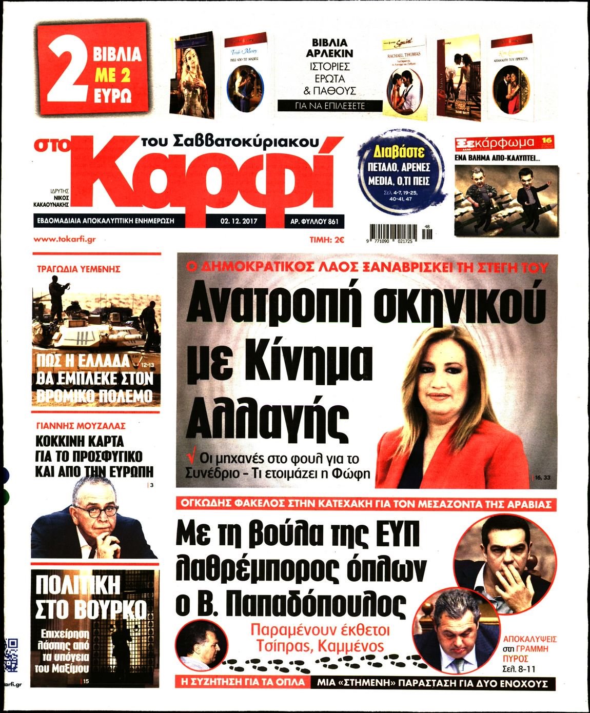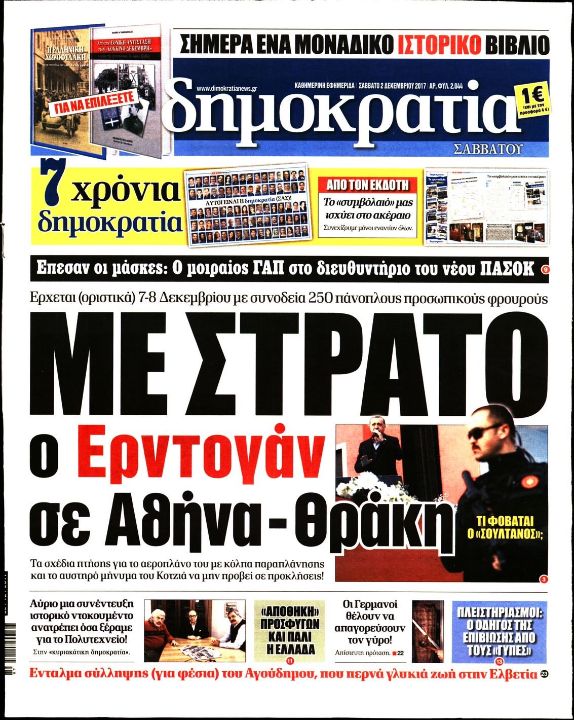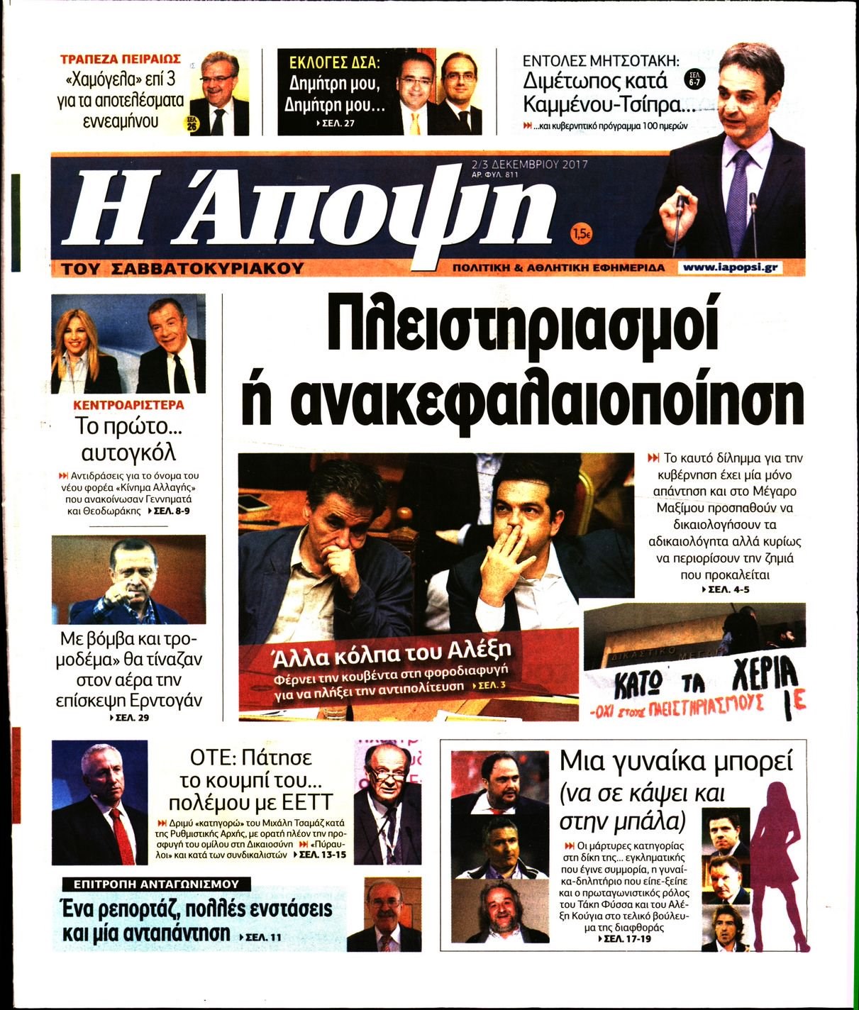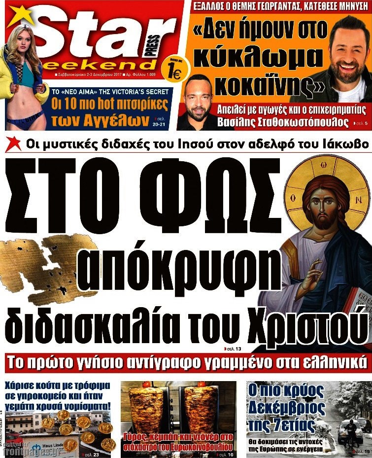 Οι πολιτικές εφημερίδες 2/12/2017 Enikos Newsroom 07:59, Σάββατο 02 Δεκεμβρίου 2017 Media Διαβάστε τα σημερινά πρωτοσέλιδα των πολιτικών εφημερίδων: ΠΟΛΙΤΙΚΕΣ ΕΦΗΜΕΡΙΔΕΣ ΠΡΩΤΟΣΕΛΙΔΑ Μοιράσου το: σχολίασε κι εσύ (0 σχόλια) Ακολουθήστε το enikos.gr στο Google News και μάθετε πρώτοι όλες τις ειδήσεις Δείτε όλες τις τελευταίες ειδήσεις από την Ελλάδα και τον Κόσμο στο enikos.gr Ειδήσεις Ροή Ειδήσεων 5 ώρες πριν Χριστούγεννα στα μπλόκα: Επιμένουν στις κινητοποιήσεις τους οι αγρότες – Ανοίγουν τα διόδια το Σαββατοκύριακο 6 ώρες πριν Ουκρανία: Η άνευ προηγουμένου επίθεση σε ρωσικό τάνκερ στη Μεσόγειο και το μήνυμα προς στον Πούτιν – Το «μακρύ χέρι» του Κιέβου 5 ώρες πριν Πούτιν: Τα μηνύματα σε Ευρώπη και ΝΑΤΟ από το μαραθώνιο «σόου» του – Η απαίτηση για «σεβασμό» και η ειρήνη «με τους όρους» της Μόσχας 6 ώρες πριν Τραμπ: Δεν αποκλείει την πιθανότητα ενός πολέμου στη Βενεζουέλα – «Ο Μαδούρο ξέρει καλύτερα από τον καθένα τι ακριβώς θέλω» 6 ώρες πριν Συνεχίζει να προκαλεί ο Μίτσκοσκι: «Για μένα το όνομα Μακεδονία είναι ιερό» 5 ώρες πριν Ανακαλύφθηκαν αρχαία χρυσά νομίσματα 2.200 ετών που απεικονίζουν τον θεό Απόλλωνα – Η άγνωστη σύνδεση με τον Φίλιππο Β΄ της Μακεδονίας 6 ώρες πριν Ύπνος: Μια κρυφή κατάσταση του εγκεφάλου πριν από τον ύπνο μπορεί να είναι το “κλειδί” για υψηλή ευφυΐα και δημιουργικότητα 7 ώρες πριν Αριθμολογία: Οι άνθρωποι που έχουν γεννηθεί αυτές τις 4 ημερομηνίες, συχνά παρεξηγούνται – «Η καλοσύνη τους κρύβει τεράστια δύναμη» 8 ώρες πριν Ξεχάστε το καθάρισμα το Σαββατοκύριακο: Ο «κανόνας των 20 λεπτών» που θα σας λύσει τα χέρια 4 λεπτά πριν Φως στο Τούνελ: Έφτασε η ώρα της αλήθειας για την δολοφονία της χήρας του πρώην υπουργού στο Κολωνάκι 19 λεπτά πριν Ντόναλντ Τραμπ: Προστέθηκε το όνομά του στην πρόσοψη του Κέντρου Κένεντι – Οργισμένη αντίδραση των συγγενών του JFK 34 λεπτά πριν Ταμίλα Κουλίεβα: «Δεν θέλω να είμαι κάποια που πορεύεται συνεχώς με τις ίδιες αναφορές» 49 λεπτά πριν Η Ελλάδα προσχωρεί στη Διεθνή Επιτροπή Αποζημιώσεων για την Ουκρανία 1 ώρα πριν GNTM: Η Ξένια Τσίρκοβα αναδείχθηκε μεγάλη νικήτρια και πήρε τις 50.000 ευρώ – Ποιος βρέθηκε σε απόσταση αναπνοής; ENIKOS NETWORK Το ΕΚΑΒ τιμήθηκε από την Ακαδημία Αθηνών για τα 40 χρόνια προσφοράς του Έχετε πραγματικά μεγάλη καρδιά; 10 χαρακτηριστικά όσων έχουν καλοσύνη Αναστολή μέτρων αναγκαστικής εκτέλεσης για κτηνοτρόφους που πλήττονται από την ευλογιά των αιγοπροβάτων Πλήρης επάρκεια προϊόντων στις λαϊκές της Αττικής, παρά τις αγροτικές κινητοποιήσεις – Τι απαντούν οι πωλητές Χαρτογραφώντας το «σημείο χωρίς επιστροφή»: Για πρώτη φορά αποκαλύπτεται με λεπτομέρεια το ακανθώδες όριο της ατμόσφαιρας τ... Η Google καταργεί τη λειτουργία «dark web report» – Πώς θα μπορούν οι χρήστες να διαγράφουν τα δεδομένα τους περισσότερα 02:50 , Σάββατο 20 Δεκεμβρίου 2025 GNTM: Η Ξένια Τσίρκοβα αναδείχθηκε μεγάλη νικήτρια και πήρε τις 50.000 ευρώ – Ποιος βρέθηκε σε απόσταση αναπνοής; Με φαντασμαγορικό τρόπο ολοκληρώθηκε το βράδυ της Παρασκευής ο μεγάλος τελικός του GNTM, μέσα ... 22:42 , Παρασκευή 19 Δεκεμβρίου 2025 Γιώργος Γιαννόπουλος για “Το σόι σου”: “Είναι ευτυχία και ευλογία αυτή η σειρά” «Είναι ευτυχία και ευλογία η συγκυρία αυτής της σειράς», θα πει ο Γιώργος Γιαννόπουλος -ο αγαπ... 20:37 , Παρασκευή 19 Δεκεμβρίου 2025 Don’t Forget The Lyrics: Η Έλλη Κοκκίνου υποδέχεται 4 παίκτες που θα κάνουν τα πάντα για να μη χάσουν ούτε… μισή λέξη από τους στίχους Το «Don’t Forget The Lyrics