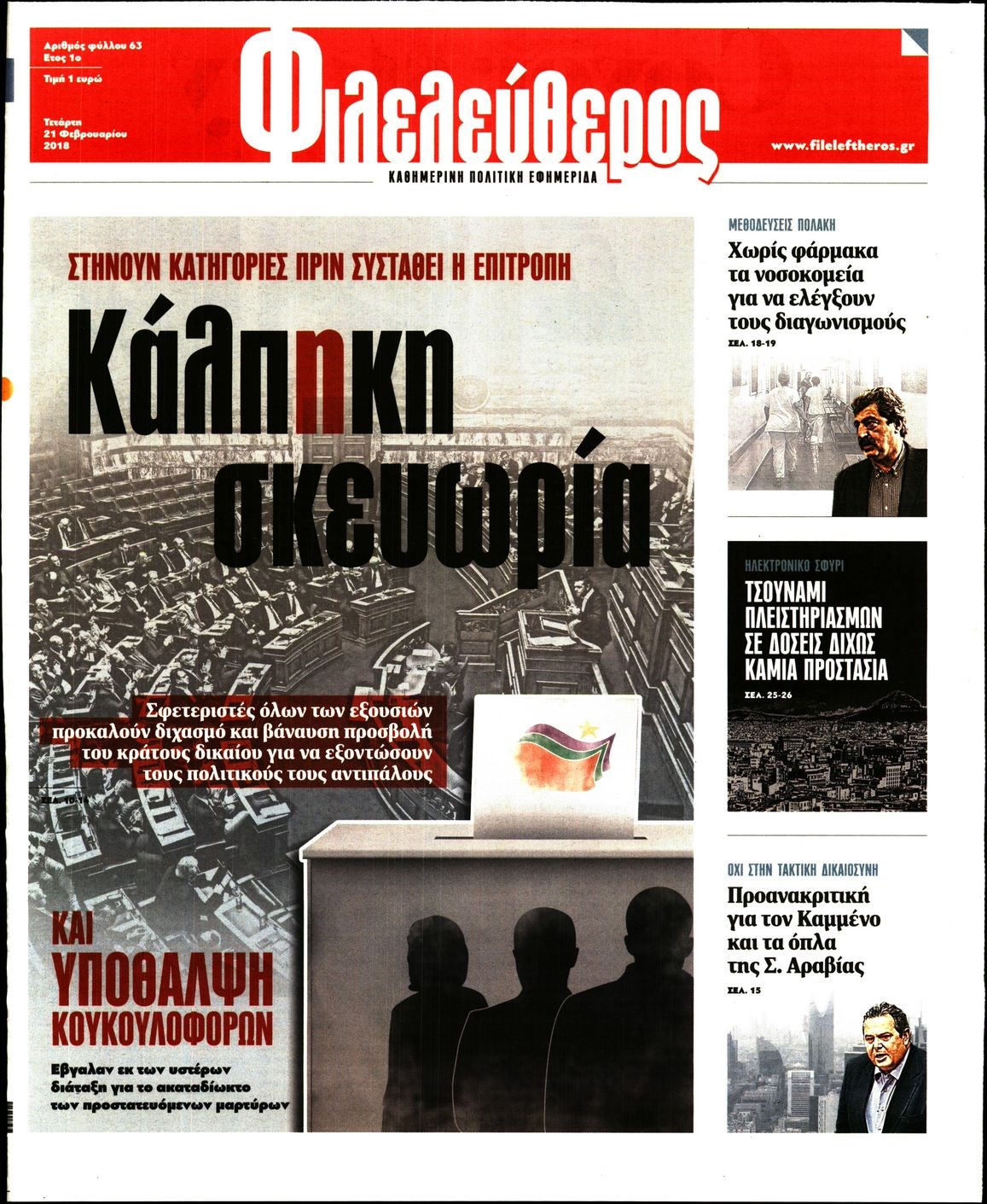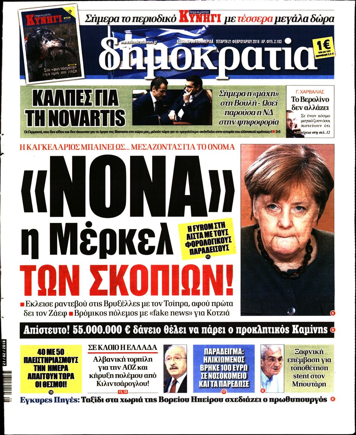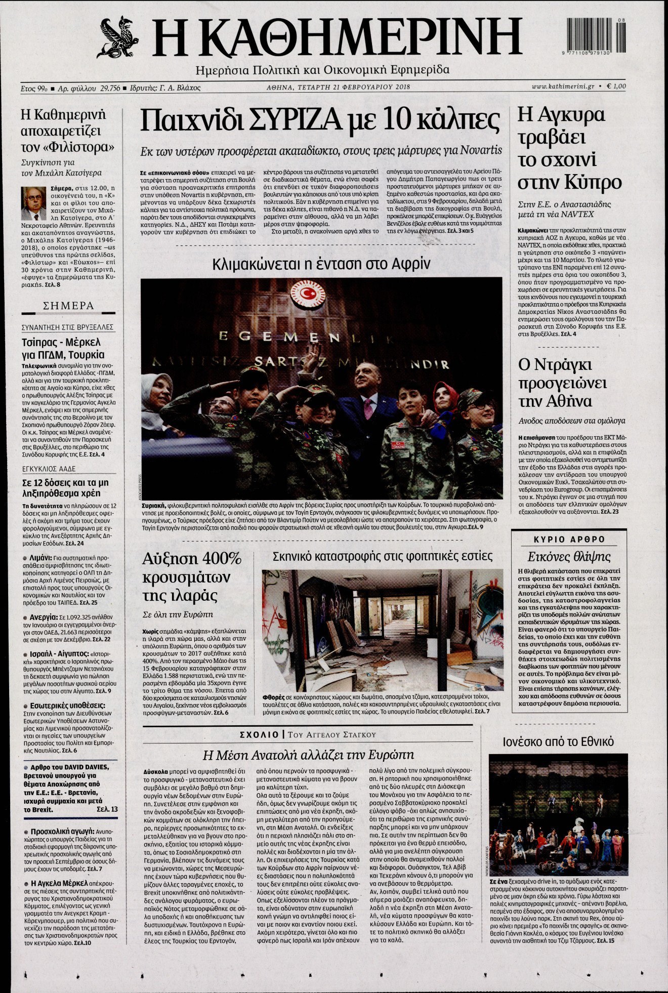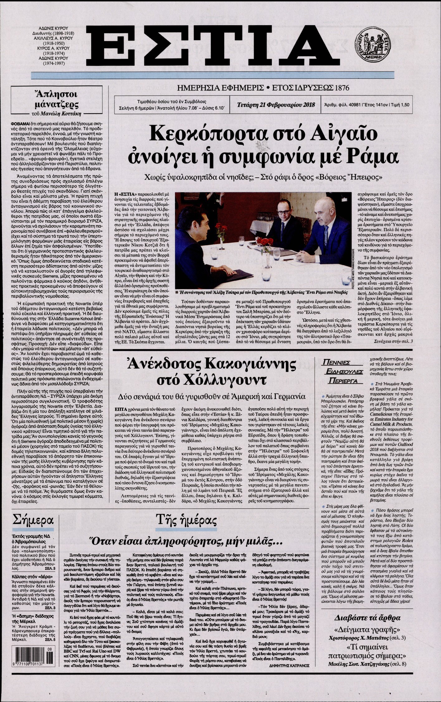 Οι πολιτικές εφημερίδες 21/2/2018 Enikos Newsroom 07:46, Τετάρτη 21 Φεβρουαρίου 2018 Media Διαβάστε τα σημερινά πρωτοσέλιδα των πολιτικών εφημερίδων: ΠΟΛΙΤΙΚΕΣ ΕΦΗΜΕΡΙΔΕΣ ΠΡΩΤΟΣΕΛΙΔΑ Μοιράσου το: σχολίασε κι εσύ (0 σχόλια) Ακολουθήστε το enikos.gr στο Google News και μάθετε πρώτοι όλες τις ειδήσεις Δείτε όλες τις τελευταίες ειδήσεις από την Ελλάδα και τον Κόσμο στο enikos.gr Ειδήσεις Ροή Ειδήσεων 7 ώρες πριν Χριστούγεννα στα μπλόκα: Επιμένουν στις κινητοποιήσεις τους οι αγρότες – Ανοίγουν τα διόδια το Σαββατοκύριακο 7 ώρες πριν Ουκρανία: Η άνευ προηγουμένου επίθεση σε ρωσικό τάνκερ στη Μεσόγειο και το μήνυμα προς στον Πούτιν – Το «μακρύ χέρι» του Κιέβου 6 ώρες πριν Πούτιν: Τα μηνύματα σε Ευρώπη και ΝΑΤΟ από το μαραθώνιο «σόου» του – Η απαίτηση για «σεβασμό» και η ειρήνη «με τους όρους» της Μόσχας 7 ώρες πριν Τραμπ: Δεν αποκλείει την πιθανότητα ενός πολέμου στη Βενεζουέλα – «Ο Μαδούρο ξέρει καλύτερα από τον καθένα τι ακριβώς θέλω» 8 ώρες πριν Συνεχίζει να προκαλεί ο Μίτσκοσκι: «Για μένα το όνομα Μακεδονία είναι ιερό» 6 ώρες πριν Ανακαλύφθηκαν αρχαία χρυσά νομίσματα 2.200 ετών που απεικονίζουν τον θεό Απόλλωνα – Η άγνωστη σύνδεση με τον Φίλιππο Β΄ της Μακεδονίας 7 ώρες πριν Ύπνος: Μια κρυφή κατάσταση του εγκεφάλου πριν από τον ύπνο μπορεί να είναι το “κλειδί” για υψηλή ευφυΐα και δημιουργικότητα 8 ώρες πριν Αριθμολογία: Οι άνθρωποι που έχουν γεννηθεί αυτές τις 4 ημερομηνίες, συχνά παρεξηγούνται – «Η καλοσύνη τους κρύβει τεράστια δύναμη» 9 ώρες πριν Ξεχάστε το καθάρισμα το Σαββατοκύριακο: Ο «κανόνας των 20 λεπτών» που θα σας λύσει τα χέρια 9 λεπτά πριν ΟΗΕ: Το Συμβούλιο Ασφαλείας παρατείνει για έναν χρόνο την εντολή της ειρηνευτικής δύναμης στο Κονγκό 25 λεπτά πριν Μοχάμεντ Σαλάχ: Ζήτησε «συγγνώμη» από τους συμπαίκτες του στη Λίβερπουλ για το ξέσπασμά του 39 λεπτά πριν Μάρκο Ρούμπιο: Ανθρωπιστική κατάπαυση του πυρός στο Σουδάν ζητά ο Αμερικανός υπουργός Εξωτερικών 54 λεπτά πριν Αγγελική Νικολούλη: Τα συλλυπητήρια για την απώλεια της Ειρήνης Μαρινάκη 1 ώρα πριν Βολιβία: Μαζική διαδηλώσεις εναντίον της κατάργησης των επιδοτήσεων των τιμών των καυσίμων ENIKOS NETWORK Το ΕΚΑΒ τιμήθηκε από την Ακαδημία Αθηνών για τα 40 χρόνια προσφοράς του Έχετε πραγματικά μεγάλη καρδιά; 10 χαρακτηριστικά όσων έχουν καλοσύνη Αναστολή μέτρων αναγκαστικής εκτέλεσης για κτηνοτρόφους που πλήττονται από την ευλογιά των αιγοπροβάτων Πλήρης επάρκεια προϊόντων στις λαϊκές της Αττικής, παρά τις αγροτικές κινητοποιήσεις – Τι απαντούν οι πωλητές Χαρτογραφώντας το «σημείο χωρίς επιστροφή»: Για πρώτη φορά αποκαλύπτεται με λεπτομέρεια το ακανθώδες όριο της ατμόσφαιρας τ... Η Google καταργεί τη λειτουργία «dark web report» – Πώς θα μπορούν οι χρήστες να διαγράφουν τα δεδομένα τους περισσότερα 04:20 , Σάββατο 20 Δεκεμβρίου 2025 Αγγελική Νικολούλη: Τα συλλυπητήρια για την απώλεια της Ειρήνης Μαρινάκη Τα συλληπητήρια στον πρόεδρο του Mega, τον Βαγγέλη Μαρινάκη, για την απώλεια της μητέρας του Ε... 02:50 , Σάββατο 20 Δεκεμβρίου 2025 GNTM: Η Ξένια Τσίρκοβα αναδείχθηκε μεγάλη νικήτρια και πήρε τις 50.000 ευρώ – Ποιος βρέθηκε σε απόσταση αναπνοής; Με φαντασμαγορικό τρόπο ολοκληρώθηκε το βράδυ της Παρασκευής ο μεγάλος τελικός του GNTM, μέσα ... 22:42 , Παρασκευή 19 Δεκεμβρίου 2025 Γιώργος Γιαννόπουλος για “Το σόι σου”: “Είναι ευτυχία και ευλογία αυτή η σειρά” «Είναι ευτυχία και ευλογία η συγκυρία αυτής της σειράς», θα πει ο Γιώργος Γιαννόπουλος -ο αγαπ... 