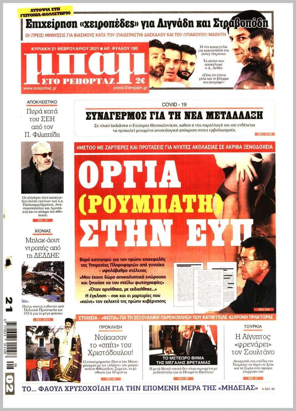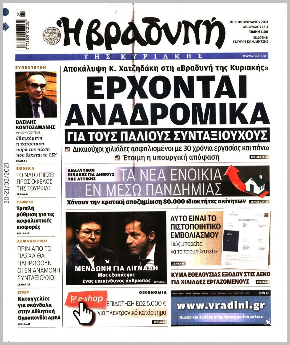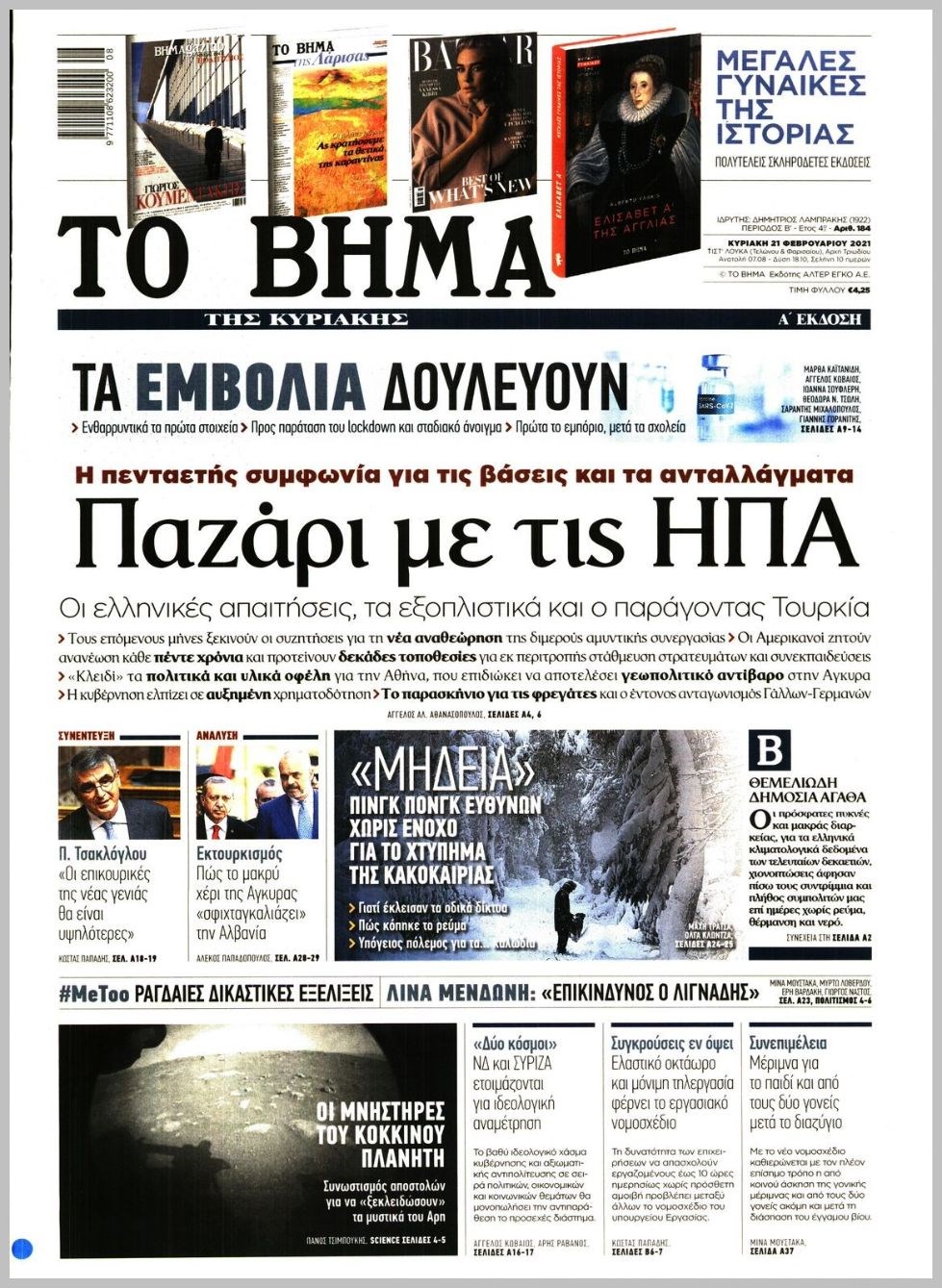 Οι πολιτικές εφημερίδες 21/2/2021 Διονύσης Νίκκας 07:06, Κυριακή 21 Φεβρουαρίου 2021 Media Διαβάστε τα πρωτοσέλιδα των πολιτικών εφημερίδων… ΕΦΗΜΕΡΙΔΕΣ ΠΟΛΙΤΙΚΕΣ ΕΦΗΜΕΡΙΔΕΣ ΠΡΩΤΟΣΕΛΙΔΑ Μοιράσου το: σχολίασε κι εσύ (0 σχόλια) Ακολουθήστε το enikos.gr στο Google News και μάθετε πρώτοι όλες τις ειδήσεις Δείτε όλες τις τελευταίες ειδήσεις από την Ελλάδα και τον Κόσμο στο enikos.gr Ειδήσεις Ροή Ειδήσεων 2 ώρες πριν Χριστούγεννα στα μπλόκα: Επιμένουν στις κινητοποιήσεις τους οι αγρότες – Ανοίγουν τα διόδια το Σαββατοκύριακο 2 ώρες πριν Ουκρανία: Η άνευ προηγουμένου επίθεση σε ρωσικό τάνκερ στη Μεσόγειο και το μήνυμα προς στον Πούτιν – Το «μακρύ χέρι» του Κιέβου 2 ώρες πριν Πούτιν: Τα μηνύματα σε Ευρώπη και ΝΑΤΟ από το μαραθώνιο «σόου» του – Η απαίτηση για «σεβασμό» και η ειρήνη «με τους όρους» της Μόσχας 3 ώρες πριν Τραμπ: Δεν αποκλείει την πιθανότητα ενός πολέμου στη Βενεζουέλα – «Ο Μαδούρο ξέρει καλύτερα από τον καθένα τι ακριβώς θέλω» 3 ώρες πριν Συνεχίζει να προκαλεί ο Μίτσκοσκι: «Για μένα το όνομα Μακεδονία είναι ιερό» 2 ώρες πριν Ανακαλύφθηκαν αρχαία χρυσά νομίσματα 2.200 ετών που απεικονίζουν τον θεό Απόλλωνα – Η άγνωστη σύνδεση με τον Φίλιππο Β΄ της Μακεδονίας 3 ώρες πριν Ύπνος: Μια κρυφή κατάσταση του εγκεφάλου πριν από τον ύπνο μπορεί να είναι το “κλειδί” για υψηλή ευφυΐα και δημιουργικότητα 4 ώρες πριν Αριθμολογία: Οι άνθρωποι που έχουν γεννηθεί αυτές τις 4 ημερομηνίες, συχνά παρεξηγούνται – «Η καλοσύνη τους κρύβει τεράστια δύναμη» 5 ώρες πριν Ξεχάστε το καθάρισμα το Σαββατοκύριακο: Ο «κανόνας των 20 λεπτών» που θα σας λύσει τα χέρια 15 λεπτά πριν Φαίη Σκορδά: «Παλιότερα τα κομπλιμέντα τα προσπερνούσα, τώρα τα έχω ανάγκη» 31 λεπτά πριν Βασίλης Σπανούλης: Δεν εμφανίστηκε ούτε ένας δημοσιογράφος στην συνέντευξη Τύπου – «Καλησπέρα στον… κανέναν», δείτε βίντεο 42 λεπτά πριν Πόλεμος στην Ουκρανία: Εφτά νεκροί από ρωσική πυραυλική επίθεση στο λιμάνι της Οδησσού 46 λεπτά πριν ΗΠΑ: Η κυβέρνηση του Ντόναλντ Τραμπ άρχισε να δημοσιοποιεί τα αρχεία Έπσταϊν 57 λεπτά πριν Σάμος: Άνοιξε το μπλόκο των αγροτών στον κόμβο Κοκκαρίου – Σε νέα συνεδρίαση θα καθορίσουν την στάση τους ENIKOS NETWORK Το ΕΚΑΒ τιμήθηκε από την Ακαδημία Αθηνών για τα 40 χρόνια προσφοράς του Έχετε πραγματικά μεγάλη καρδιά; 10 χαρακτηριστικά όσων έχουν καλοσύνη Αναστολή μέτρων αναγκαστικής εκτέλεσης για κτηνοτρόφους που πλήττονται από την ευλογιά των αιγοπροβάτων Πλήρης επάρκεια προϊόντων στις λαϊκές της Αττικής, παρά τις αγροτικές κινητοποιήσεις – Τι απαντούν οι πωλητές Χαρτογραφώντας το «σημείο χωρίς επιστροφή»: Για πρώτη φορά αποκαλύπτεται με λεπτομέρεια το ακανθώδες όριο της ατμόσφαιρας τ... Η Google καταργεί τη λειτουργία «dark web report» – Πώς θα μπορούν οι χρήστες να διαγράφουν τα δεδομένα τους περισσότερα 22:42 , Παρασκευή 19 Δεκεμβρίου 2025 Γιώργος Γιαννόπουλος για “Το σόι σου”: “Είναι ευτυχία και ευλογία αυτή η σειρά” «Είναι ευτυχία και ευλογία η συγκυρία αυτής της σειράς», θα πει ο Γιώργος Γιαννόπουλος -ο αγαπ... 20:37 , Παρασκευή 19 Δεκεμβρίου 2025 Don’t Forget The Lyrics: Η Έλλη Κοκκίνου υποδέχεται 4 παίκτες που θα κάνουν τα πάντα για να μη χάσουν ούτε… μισή λέξη από τους στίχους Το «Don’t Forget The Lyrics» επιστρέφει απόψε, Παρασκευή 19 Δεκεμβρίου, στις 21:00 με νέο επει... 19:31 , Παρασκευή 19 Δεκεμβρίου 2025 GNTM: Απόψε ο μεγάλος τελικός για τους 4 φιναλίστ Έπειτα από μήνες γεμάτους μόδα, δημιουργία και έντονες αναμετρήσεις, το GNTM 2025 κορυφών