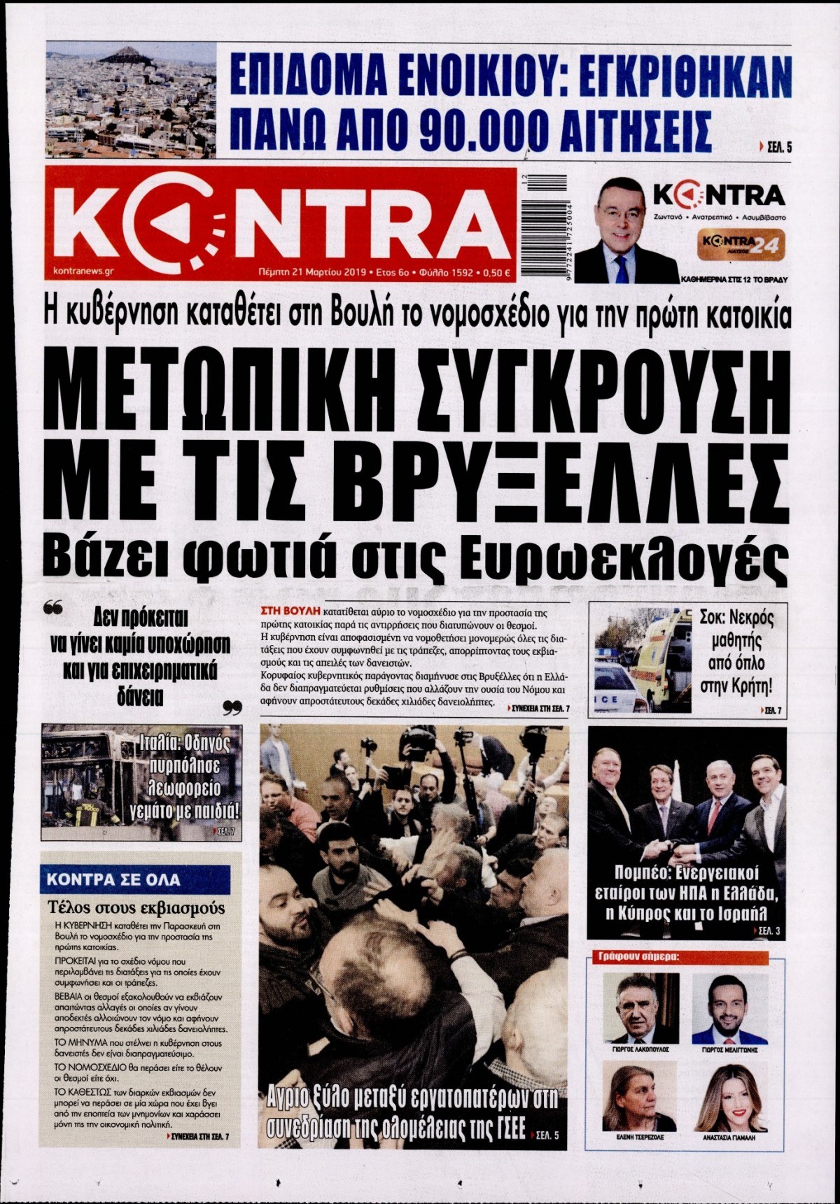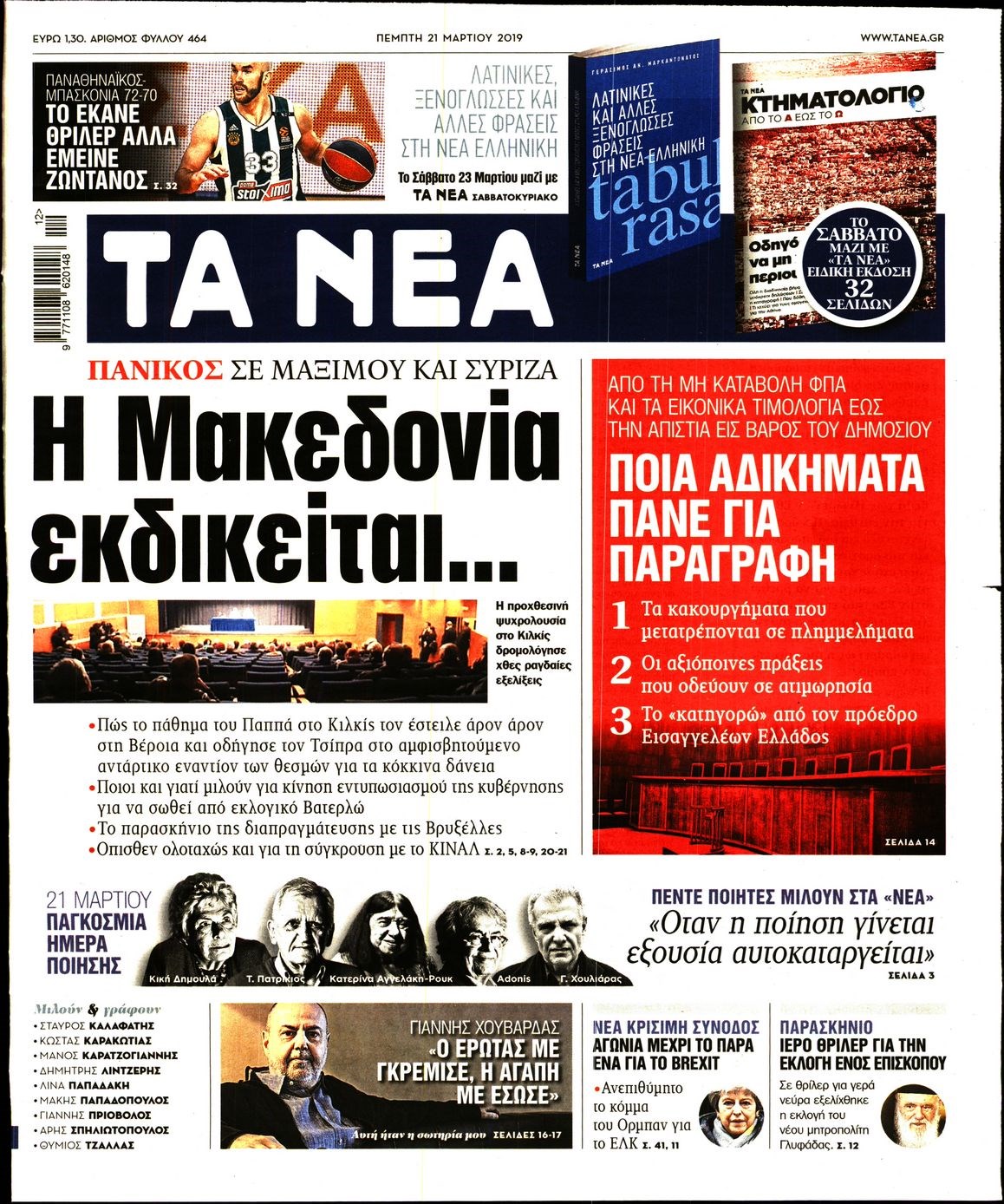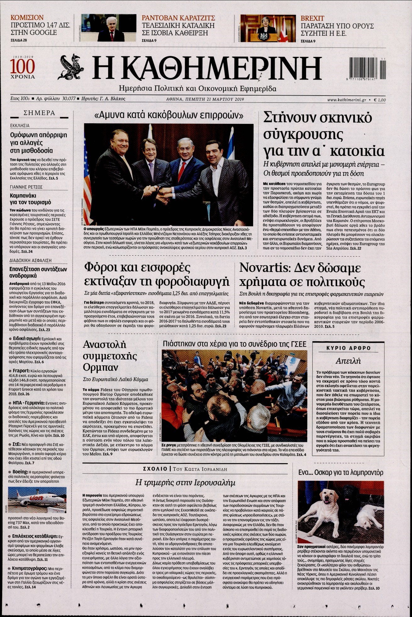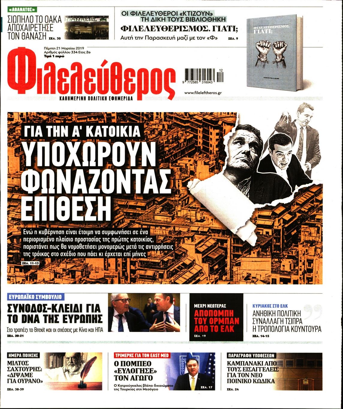 Οι πολιτικές εφημερίδες 21/3/19 Enikos Newsroom 06:48, Πέμπτη 21 Μαρτίου 2019 Media Διαβάστε τα πρωτοσέλιδα των πολιτικών εφημερίδων: ΠΟΛΙΤΙΚΕΣ ΕΦΗΜΕΡΙΔΕΣ ΠΡΩΤΟΣΕΛΙΔΑ Μοιράσου το: σχολίασε κι εσύ (0 σχόλια) Ακολουθήστε το enikos.gr στο Google News και μάθετε πρώτοι όλες τις ειδήσεις Δείτε όλες τις τελευταίες ειδήσεις από την Ελλάδα και τον Κόσμο στο enikos.gr Ειδήσεις Ροή Ειδήσεων 5 ώρες πριν Κύκλωμα διακίνησης ναρκωτικών σε σχολεία: Βίντεο ντοκουμέντο από τα βασανιστήρια στους ανήλικους – Συζητούσαν για το πώς θα κάνουν «ξέπλυμα χρήματος» 4 ώρες πριν Κλιμακώνουν τις κινητοποιήσεις τους οι αγρότες: Κλείνουν τη Δευτέρα τις σήραγγες των Τεμπών για τα φορτηγά – Ανοίγουν την Τρίτη τους δρόμους για τους εκδρομείς 5 ώρες πριν Αιματηρό επεισόδιο στον Άγιο Παντελεήμονα – Δύο τραυματίες, αναζητείται ο δράστης 4 ώρες πριν ΗΠΑ: Αυξάνουν την πίεση στην Βενεζουέλα – Το νέο ρεσάλτο σε τάνκερ και ο στόχος του Τραμπ 4 ώρες πριν Κασσελάκης για παραίτηση Μάλαμα: «Η πορεία μας δεν θα καθοριστεί από μεμονωμένα πρόσωπα, μηχανισμούς και προσωπικές ατζέντες» 3 ώρες πριν Αρχαιολογικό θρίλερ στην καρδιά της Ευρώπης: Παράξενο θραύσμα με ανάγλυφα και σφηνοειδή γραφή ανακαλύφθηκε σε μέρος που δεν περίμενε κανείς 5 ώρες πριν Ύπνος: Τι είναι ο «κανόνας 3-3-3» που χρησιμοποιεί ένας γιατρός για να ξεχωρίσει την κόπωση από την αϋπνία 6 ώρες πριν Αριθμολογία: Οι άνθρωποι που έχουν γεννηθεί αυτές τις 4 ημερομηνίες, είναι οι πιο πιστοί και αφοσιωμένοι σύντροφοι 2 ημέρες πριν Enerwave: Το νέο «ρεύμα» στη λιανική ενέργειας που αλλάζει την εμπειρία του καταναλωτή 15 λεπτά πριν ΗΠΑ: Επιχείρηση αναχαίτισης τάνκερ που συνδέεται με το Ιράν και κατευθυνόταν στη Βενεζουέλα 30 λεπτά πριν Στιβ Γουίτκοφ: «Eποικοδομητικές» οι συνομιλίες με τη Ρωσία για την Ουκρανία 45 λεπτά πριν Άννα Βίσση: Απάντησε στις φήμες περί αποχώρησης από τις πίστες – «…όσο έχω φωνή θα σας τραγουδάω» 59 λεπτά πριν David και Victoria Beckham: Ξύπνησαν… μπλοκαρισμένοι στο Instagram, από τον γιο τους Brooklyn 1 ώρα πριν ΠΑΟΚ: Ζημιά στον «δικέφαλο του Βορρά» με τον Παβλένκα – Υπέστη κάκωση στον έσω πλάγιο σύνδεσμο – Εκτός για 1 με 1,5 μήνα ENIKOS NETWORK Οι γυναίκες έχουν βρει μια νέα απόλαυση στην κρεβατοκάμαρα που οι περισσότεροι άνδρες αγνοούν Christmas glow: 5 χρυσές συμβουλές για επιδερμίδα που λάμπει από ομορφιά τα Χριστούγεννα Νέο έτος ρεκόρ για τον ελληνικό τουρισμό το 2025: «Είμαστε μέσα στους 10 πλέον επισκέψιμους προορισμούς παγκοσμίως» λέει η ... Τιμές καυσίμων: Πόσο θα πληρώσουν οι εκδρομείς των Χριστουγέννων – Το κόστος μετακινήσεων σε δημοφιλείς προορισμούς Χαρτογραφώντας το «σημείο χωρίς επιστροφή»: Για πρώτη φορά αποκαλύπτεται με λεπτομέρεια το ακανθώδες όριο της ατμόσφαιρας τ... Η Google καταργεί τη λειτουργία «dark web report» – Πώς θα μπορούν οι χρήστες να διαγράφουν τα δεδομένα τους περισσότερα 00:13 , Δευτέρα 22 Δεκεμβρίου 2025 MasterChef: Στον… αέρα το τρέιλερ του 10ου κύκλου – ΒΙΝΤΕΟ Κυκλοφόρησε το τρέιλερ για τον 10ο κύκλο του MasterChef, σηματοδοτώντας την επιστροφή του δημο... 21:30 , Κυριακή 21 Δεκεμβρίου 2025 Ο Δικαστής: Στα χέρια της Αστυνομίας βίντεο, που ανατρέπει όλα τα δεδομένα – Στενεύει ο κλοιός γύρω από τον Δικαστή Καταιγιστικές εξελίξεις στο τελευταίο επεισόδιο της χρονιάς της σειράς “Ο Δικαστής”... 17:18 , Κυριακή 21 Δεκεμβρίου 2025 «Η Μεγάλη Χίμαιρα»: Μάγεψε το κοινό κατά την avant-première της προβολής της Την Πρωτοχρονιά (Πέμπτη 1η Ιανουαρίου 2026) στο ERTFLIX θα γίνει η πρεμιέρα της πολυαναμεν