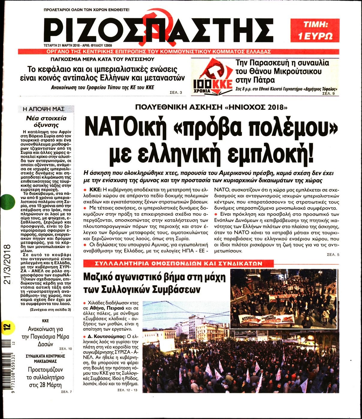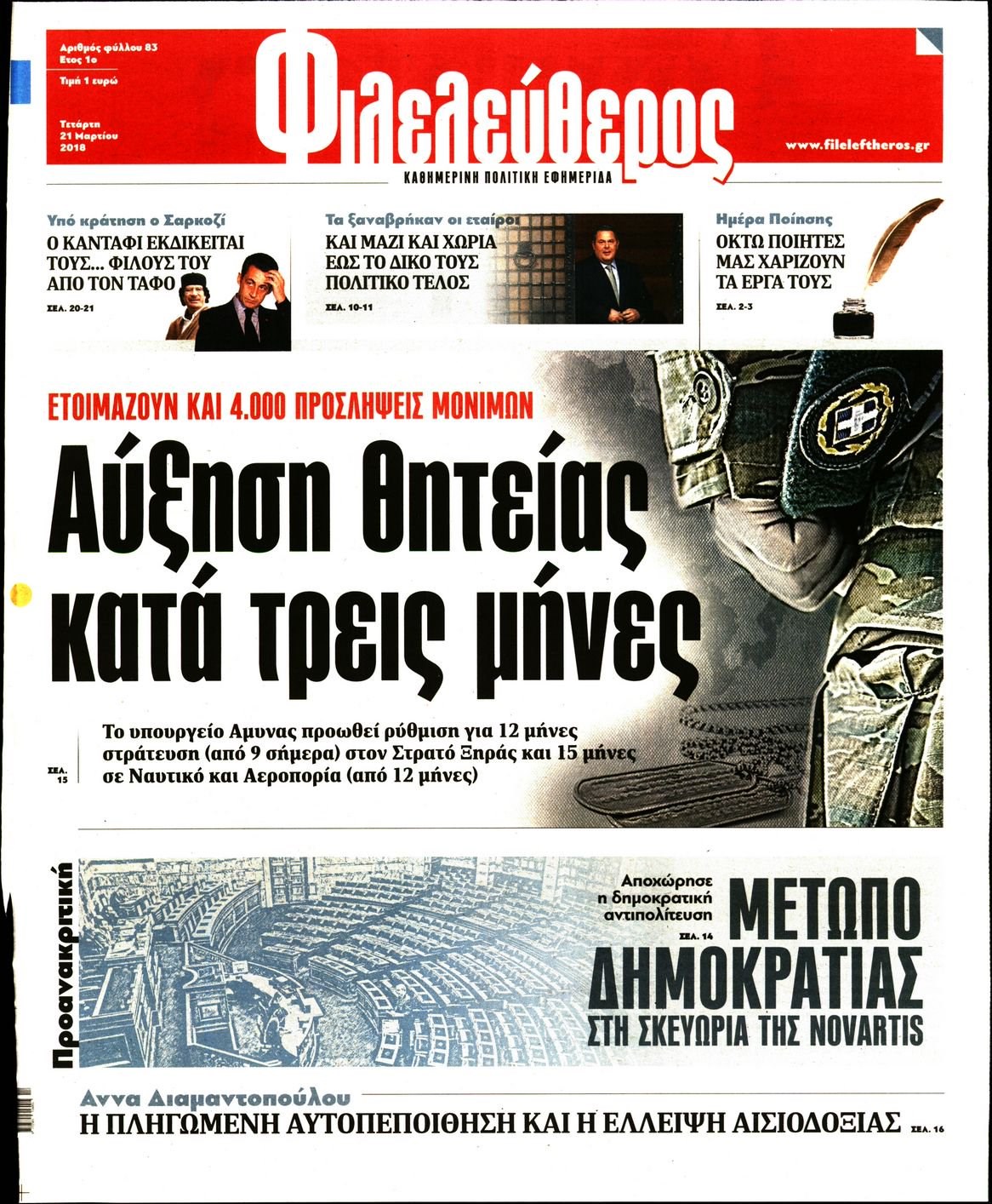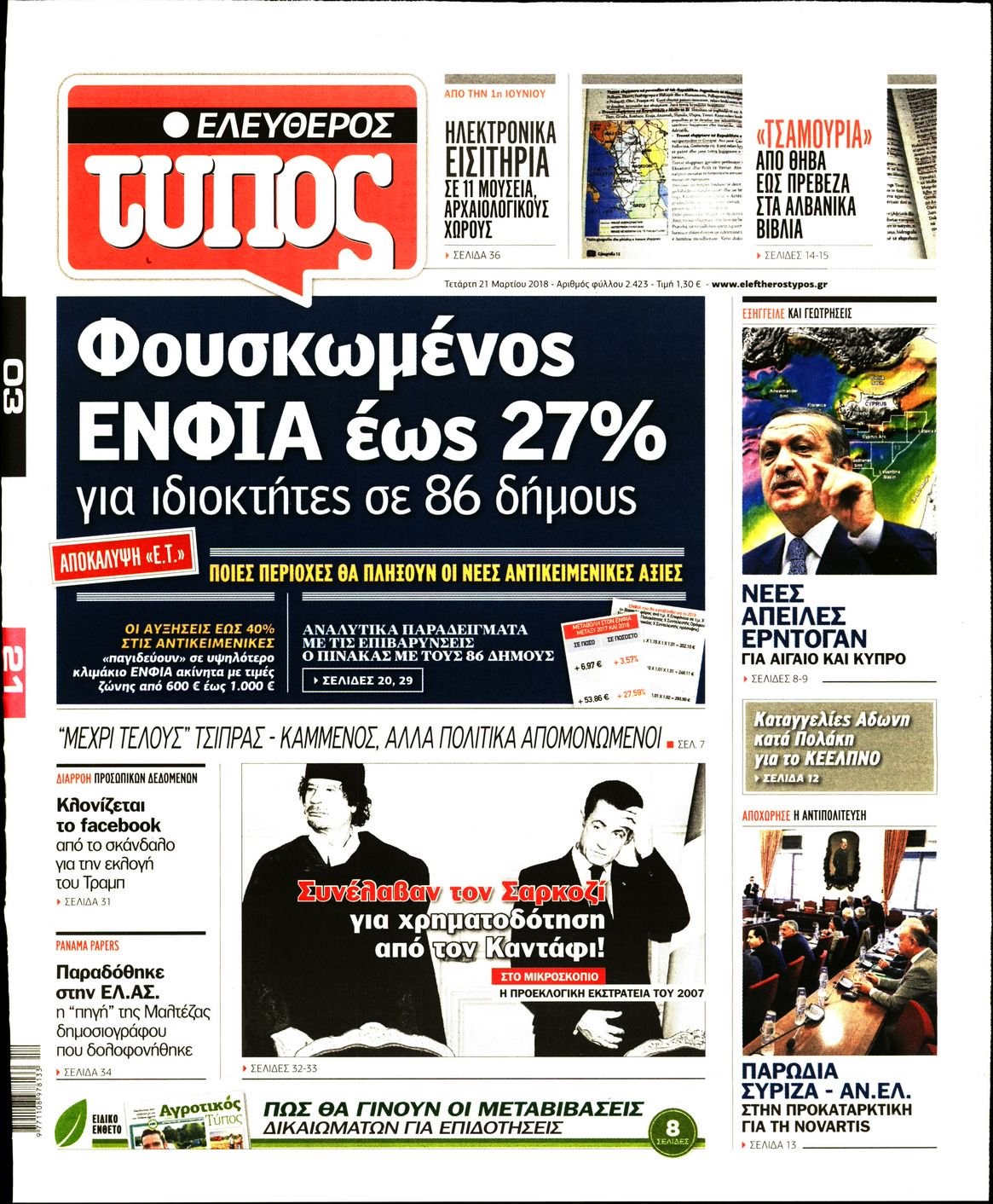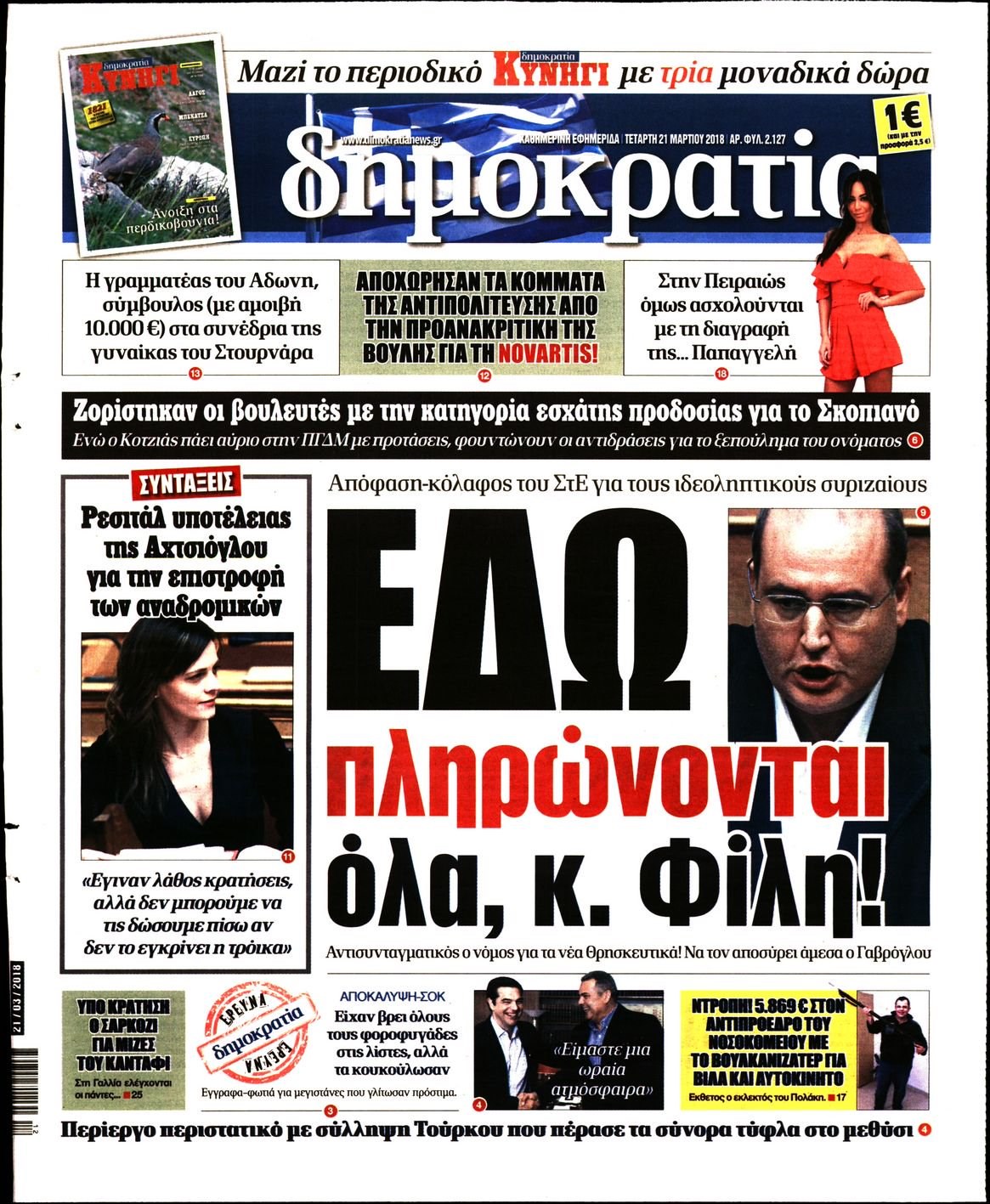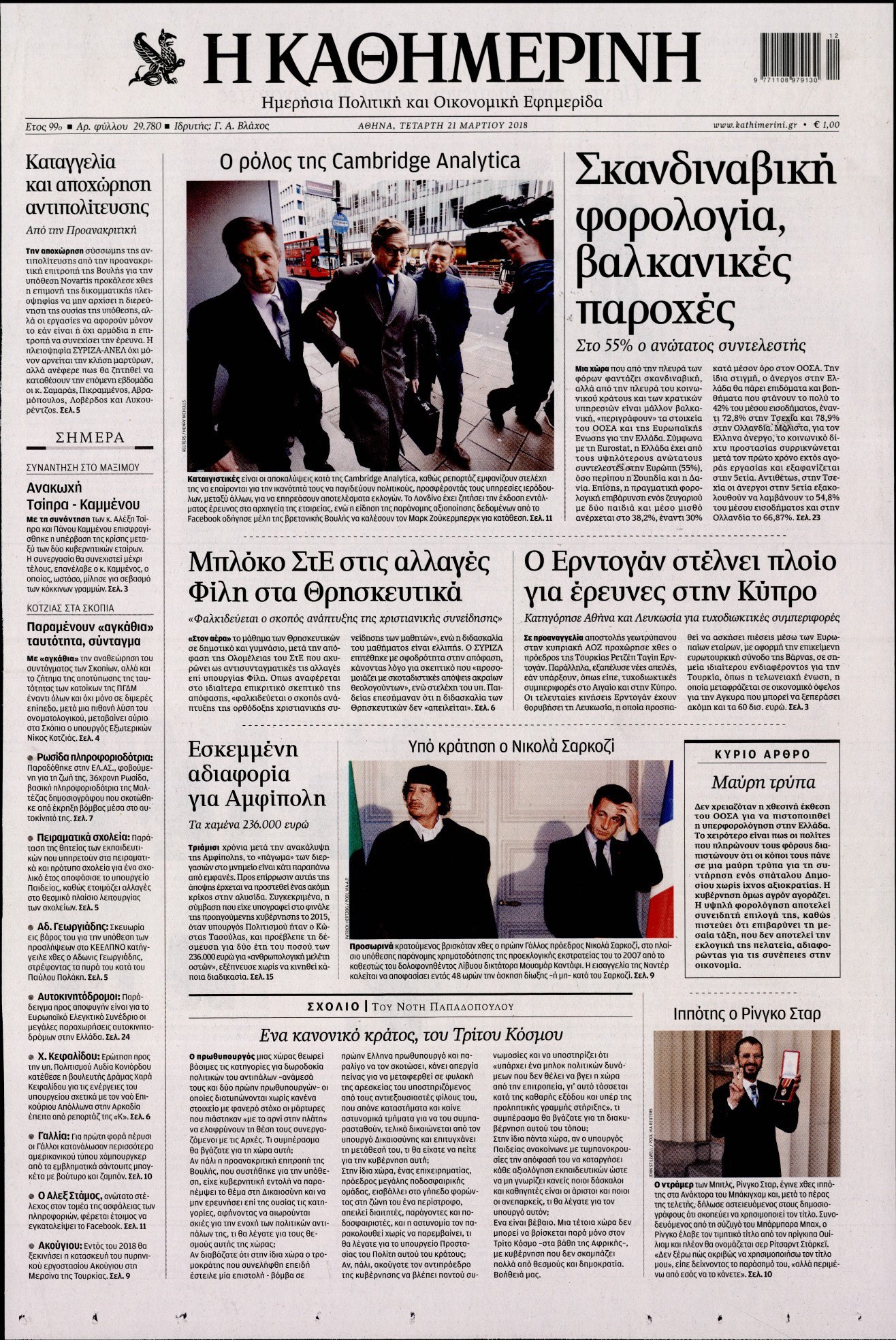 Οι πολιτικές εφημερίδες 21/3/2018 Enikos Newsroom 07:40, Τετάρτη 21 Μαρτίου 2018 Media Διαβάστε τα σημερινά πρωτοσέλιδα των πολιτικών εφημερίδων: ΠΟΛΙΤΙΚΕΣ ΕΦΗΜΕΡΙΔΕΣ ΠΡΩΤΟΣΕΛΙΔΑ Μοιράσου το: σχολίασε κι εσύ (0 σχόλια) Ακολουθήστε το enikos.gr στο Google News και μάθετε πρώτοι όλες τις ειδήσεις Δείτε όλες τις τελευταίες ειδήσεις από την Ελλάδα και τον Κόσμο στο enikos.gr Ειδήσεις Ροή Ειδήσεων 7 ώρες πριν Χριστούγεννα στα μπλόκα: Επιμένουν στις κινητοποιήσεις τους οι αγρότες – Ανοίγουν τα διόδια το Σαββατοκύριακο 7 ώρες πριν Ουκρανία: Η άνευ προηγουμένου επίθεση σε ρωσικό τάνκερ στη Μεσόγειο και το μήνυμα προς στον Πούτιν – Το «μακρύ χέρι» του Κιέβου 6 ώρες πριν Πούτιν: Τα μηνύματα σε Ευρώπη και ΝΑΤΟ από το μαραθώνιο «σόου» του – Η απαίτηση για «σεβασμό» και η ειρήνη «με τους όρους» της Μόσχας 7 ώρες πριν Τραμπ: Δεν αποκλείει την πιθανότητα ενός πολέμου στη Βενεζουέλα – «Ο Μαδούρο ξέρει καλύτερα από τον καθένα τι ακριβώς θέλω» 8 ώρες πριν Συνεχίζει να προκαλεί ο Μίτσκοσκι: «Για μένα το όνομα Μακεδονία είναι ιερό» 6 ώρες πριν Ανακαλύφθηκαν αρχαία χρυσά νομίσματα 2.200 ετών που απεικονίζουν τον θεό Απόλλωνα – Η άγνωστη σύνδεση με τον Φίλιππο Β΄ της Μακεδονίας 7 ώρες πριν Ύπνος: Μια κρυφή κατάσταση του εγκεφάλου πριν από τον ύπνο μπορεί να είναι το “κλειδί” για υψηλή ευφυΐα και δημιουργικότητα 8 ώρες πριν Αριθμολογία: Οι άνθρωποι που έχουν γεννηθεί αυτές τις 4 ημερομηνίες, συχνά παρεξηγούνται – «Η καλοσύνη τους κρύβει τεράστια δύναμη» 9 ώρες πριν Ξεχάστε το καθάρισμα το Σαββατοκύριακο: Ο «κανόνας των 20 λεπτών» που θα σας λύσει τα χέρια 42 δευτερόλεπτα πριν Γιώργος Μπαρτζώκας: «Για εμένα σημαίνει πάρα πολλά να ακούω το όνομά μου από τον κόσμο του Ολυμπιακού» 9 λεπτά πριν ΟΗΕ: Το Συμβούλιο Ασφαλείας παρατείνει για έναν χρόνο την εντολή της ειρηνευτικής δύναμης στο Κονγκό 25 λεπτά πριν Μοχάμεντ Σαλάχ: Ζήτησε «συγγνώμη» από τους συμπαίκτες του στη Λίβερπουλ για το ξέσπασμά του 40 λεπτά πριν Μάρκο Ρούμπιο: Ανθρωπιστική κατάπαυση του πυρός στο Σουδάν ζητά ο Αμερικανός υπουργός Εξωτερικών 54 λεπτά πριν Αγγελική Νικολούλη: Τα συλλυπητήρια για την απώλεια της Ειρήνης Μαρινάκη ENIKOS NETWORK Το ΕΚΑΒ τιμήθηκε από την Ακαδημία Αθηνών για τα 40 χρόνια προσφοράς του Έχετε πραγματικά μεγάλη καρδιά; 10 χαρακτηριστικά όσων έχουν καλοσύνη Αναστολή μέτρων αναγκαστικής εκτέλεσης για κτηνοτρόφους που πλήττονται από την ευλογιά των αιγοπροβάτων Πλήρης επάρκεια προϊόντων στις λαϊκές της Αττικής, παρά τις αγροτικές κινητοποιήσεις – Τι απαντούν οι πωλητές Χαρτογραφώντας το «σημείο χωρίς επιστροφή»: Για πρώτη φορά αποκαλύπτεται με λεπτομέρεια το ακανθώδες όριο της ατμόσφαιρας τ... Η Google καταργεί τη λειτουργία «dark web report» – Πώς θα μπορούν οι χρήστες να διαγράφουν τα δεδομένα τους περισσότερα 04:20 , Σάββατο 20 Δεκεμβρίου 2025 Αγγελική Νικολούλη: Τα συλλυπητήρια για την απώλεια της Ειρήνης Μαρινάκη Τα συλληπητήρια στον πρόεδρο του Mega, τον Βαγγέλη Μαρινάκη, για την απώλεια της μητέρας του Ε... 02:50 , Σάββατο 20 Δεκεμβρίου 2025 GNTM: Η Ξένια Τσίρκοβα αναδείχθηκε μεγάλη νικήτρια και πήρε τις 50.000 ευρώ – Ποιος βρέθηκε σε απόσταση αναπνοής; Με φαντασμαγορικό τρόπο ολοκληρώθηκε το βράδυ της Παρασκευής ο μεγάλος τελικός του GNTM, μέσα ... 22:42 , Παρασκευή 19 Δεκεμβρίου 2025 Γιώργος Γιαννόπουλος για “Το σόι σου”: “Είναι ευτυχία και ευλογία αυτή η σειρά” «Είναι ευτυχία και ευλογία η συγκυρία αυτής της σειράς», θα πει ο Γιώργος Γιανν