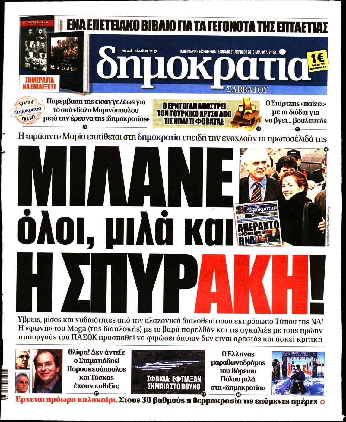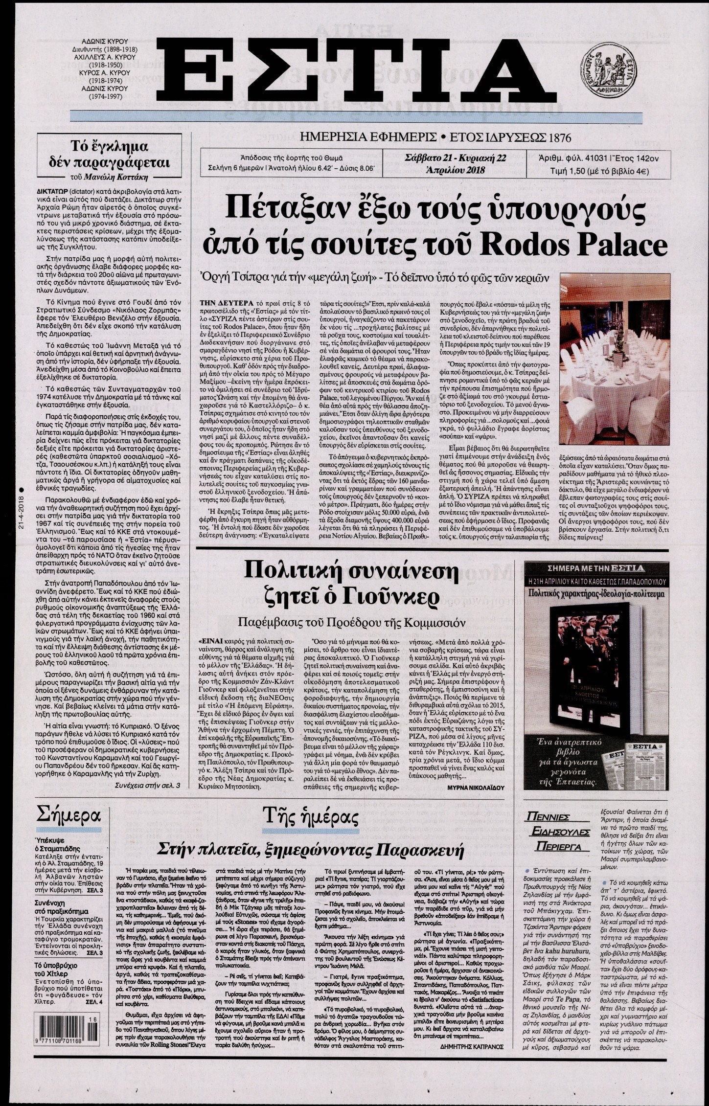 Οι πολιτικές εφημερίδες 21/4/2018 Enikos Newsroom 07:40, Σάββατο 21 Απριλίου 2018 Media Διαβάστε τα σημερινά πρωτοσέλιδα των πολιτικών εφημερίδων: ΠΟΛΙΤΙΚΕΣ ΕΦΗΜΕΡΙΔΕΣ ΠΡΩΤΟΣΕΛΙΔΑ Μοιράσου το: σχολίασε κι εσύ (0 σχόλια) Ακολουθήστε το enikos.gr στο Google News και μάθετε πρώτοι όλες τις ειδήσεις Δείτε όλες τις τελευταίες ειδήσεις από την Ελλάδα και τον Κόσμο στο enikos.gr Ειδήσεις Ροή Ειδήσεων 4 ώρες πριν Χριστούγεννα στα μπλόκα οι αγρότες: Άνοιξαν στα διόδια και μοίρασαν προϊόντα στους πολίτες – Νέα σύσκεψη την Κυριακή στη Νίκαια 4 ώρες πριν Κύκλωμα διακίνησης ναρκωτικών σε σχολεία: Τηλεφωνούσαν στους ανηλίκους την ώρα του μαθήματος – Οι διάλογοι-σοκ, τα «ψευδώνυμα» και τα βασανιστήρια 4 ώρες πριν Αρχεία Επστάιν: Οι 500 σελίδες που λείπουν, τα αναπάντητα ερωτήματα και οι επώνυμοι – Τι έπεται 5 ώρες πριν Ζελένσκι: Μόνο οι ΗΠΑ και ο Τραμπ μπορούν να πιέσουν τη Ρωσία να βάλει τέλος στον πόλεμο 6 ώρες πριν Φοινικούντα: Προφυλακιστέος ο 30χρονος για συνέργεια στη διπλή δολοφονία – Και άλλα πρόσωπα στο «μικροσκόπιο» 4 ώρες πριν Αποκαλύφθηκε το άγνωστο «GPS» της αρχαιότητας – Πώς οι ναοί «φώτιζαν» τον δρόμο των ναυτικών πριν από την εφεύρεση των φάρων 5 ώρες πριν Ύπνος: Η διατροφή που μπορεί να σας βοηθήσει να κοιμάστε καλύτερα και να ζήσετε περισσότερο 6 ώρες πριν Αριθμολογία: Ο αριθμός του φύλακα αγγέλου σας, με βάση τον μήνα γέννησής σας – «Έτσι σας στέλνει σημάδια το σύμπαν» 18 ώρες πριν Enerwave: Το νέο «ρεύμα» στη λιανική ενέργειας που αλλάζει την εμπειρία του καταναλωτή 17 λεπτά πριν Δυτική Όχθη: Δύο Παλαιστίνιοι νεκροί από σφαίρες του Ισραηλινού στρατού 32 λεπτά πριν Ένοχος ο 54χρονος «ερευνητής» που έταζε ότι θα εντοπίσει τον αγνοούμενο γιατρό από την Κρήτη – «Μας γέμισε φρούδες ελπίδες», λέει ο πατέρας του 33χρονου 48 λεπτά πριν Σεισμός 3,8 Ρίχτερ ανοιχτά της Αμοργού 1 ώρα πριν Άννα Βίσση: Τα… Social Media «προσκύνησαν» την «απόλυτη» για την συναυλία της στο Καλλιμάρμαρο που προβλήθηκε από το Mega 1 ώρα πριν Φωτεινή Αθερίδου: «Προσπαθώ να είμαι κάθετη και αυστηρή σαν μαμά πια» ENIKOS NETWORK Οι γυναίκες αποκαλύπτουν το πιο ελκυστικό πράγμα που μπορεί να κάνει ένας άνδρας Ομορφιά και αντιγήρανση: Ειδικοί μιλούν για συσκευές περιποίησης του δέρματος «Πολεμική» προετοιμασία από την ευρωπαϊκή βιομηχανία ενέργειας – Η Eurelectric ζητεί «ομπρέλα» προστασίας για τις υποδομές Ακύρωση ΑΦΜ για απάτες – Ποιους βάζει στο στόχαστρο η ΑΑΔΕ Χαρτογραφώντας το «σημείο χωρίς επιστροφή»: Για πρώτη φορά αποκαλύπτεται με λεπτομέρεια το ακανθώδες όριο της ατμόσφαιρας τ... Η Google καταργεί τη λειτουργία «dark web report» – Πώς θα μπορούν οι χρήστες να διαγράφουν τα δεδομένα τους περισσότερα 01:30 , Κυριακή 21 Δεκεμβρίου 2025 Άννα Βίσση: Τα… Social Media «προσκύνησαν» την «απόλυτη» για την συναυλία της στο Καλλιμάρμαρο που προβλήθηκε από το Mega Την ημέρα των γενεθλίων της Άννας Βίσση, το MEGA τίμησε τη διαχρονική παρουσία της «απόλυτης Ε... 00:00 , Κυριακή 21 Δεκεμβρίου 2025 The Voice: Η επιστροφή της Έλενας Παπαρίζου και η ατάκα του Γιώργου Μαζωνάκη μετά τις καταγγελίες Στη φάση των Cross Battles Live μπήκε το The Voice, με την Έλενα Παπαρίζου να επιστρέφει στο π... 20:30 , Σάββατο 20 Δεκεμβρίου 2025 Αυτή την Κυριακή με τη Realnews: Instyle, μαζί Drive και Realnews Geopolitics Αυτή την Κυριακή με τη Realnews: Instyle, μαζί Drive και Realnews Geopolitics Instyle Η Άννα Ρ... 20:28 , Σάββατο 20 Δεκεμβρίου 2025 Ο ΑΝΤ1 γεμίζει τις γιορτές με μουσική – Ποιους καλλιτέχνες θα απολαύσουμε Φέτος στον ΑΝΤ1 γιορτάζουμε τις νύχτες μας 