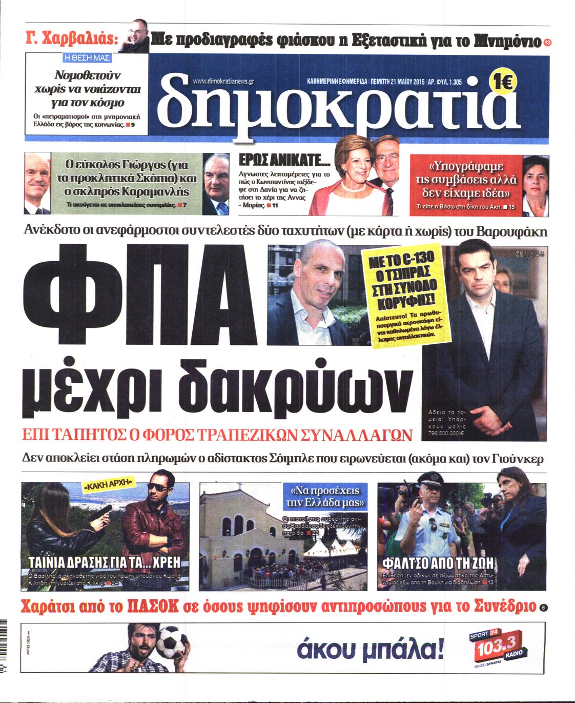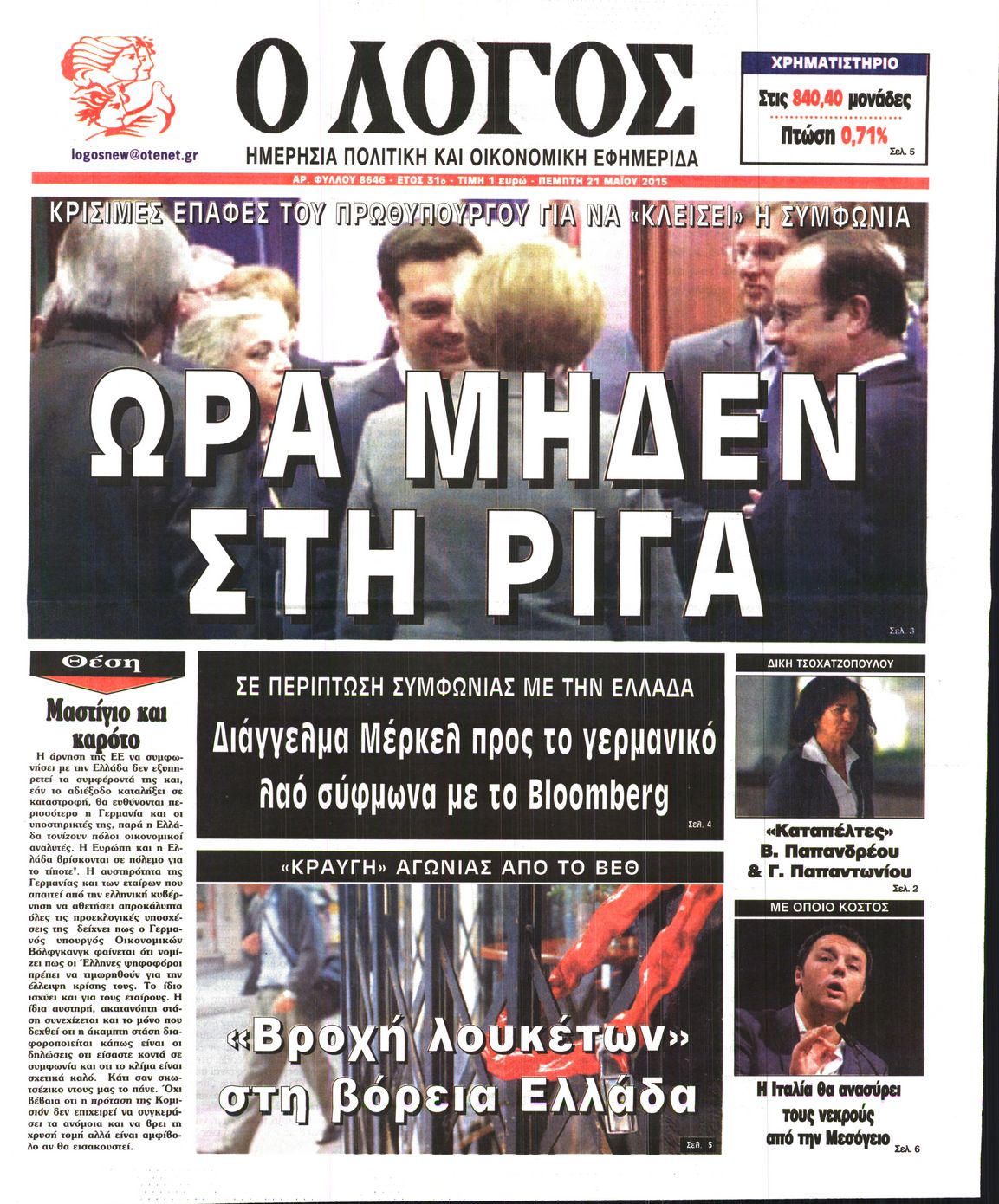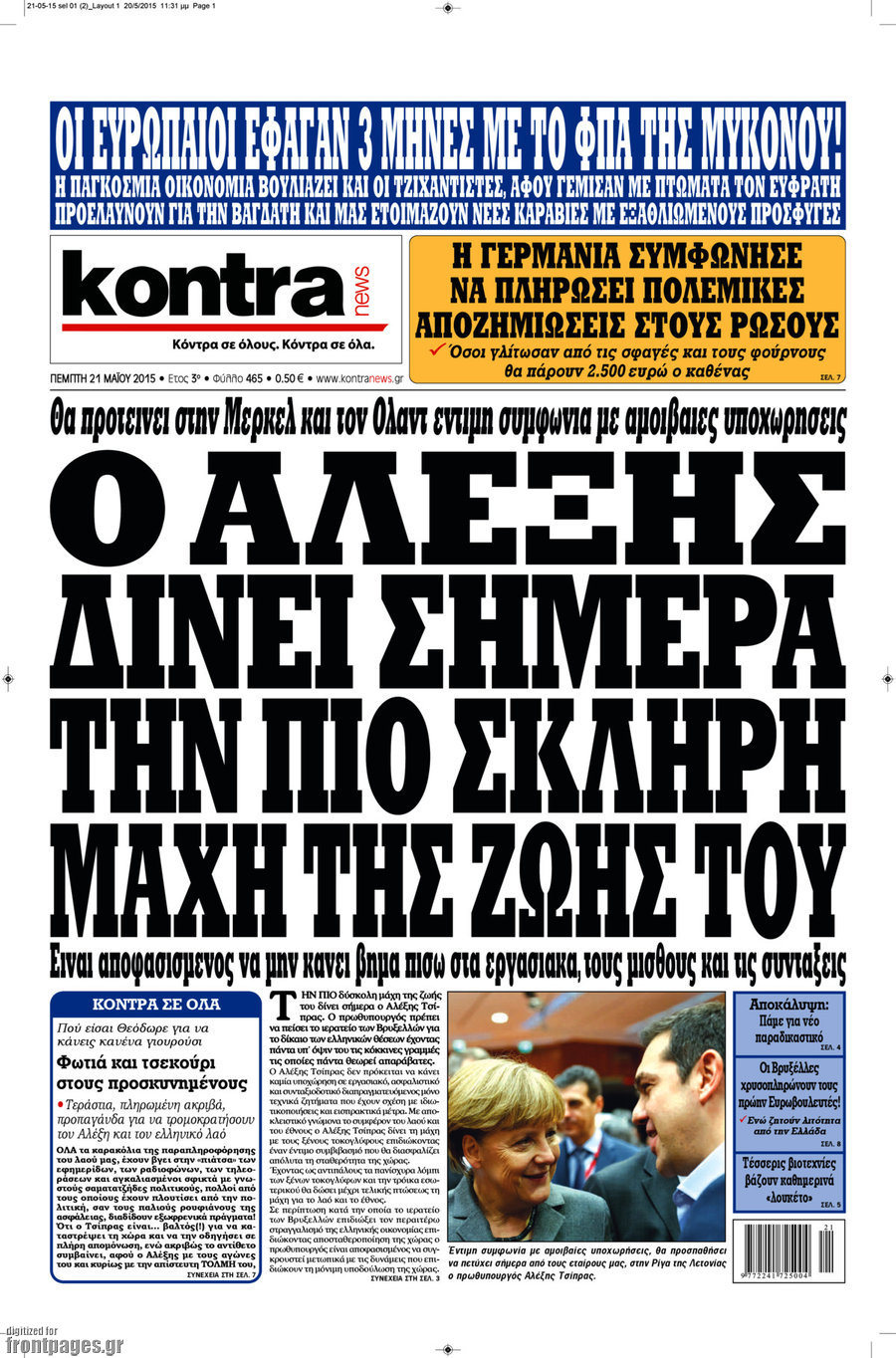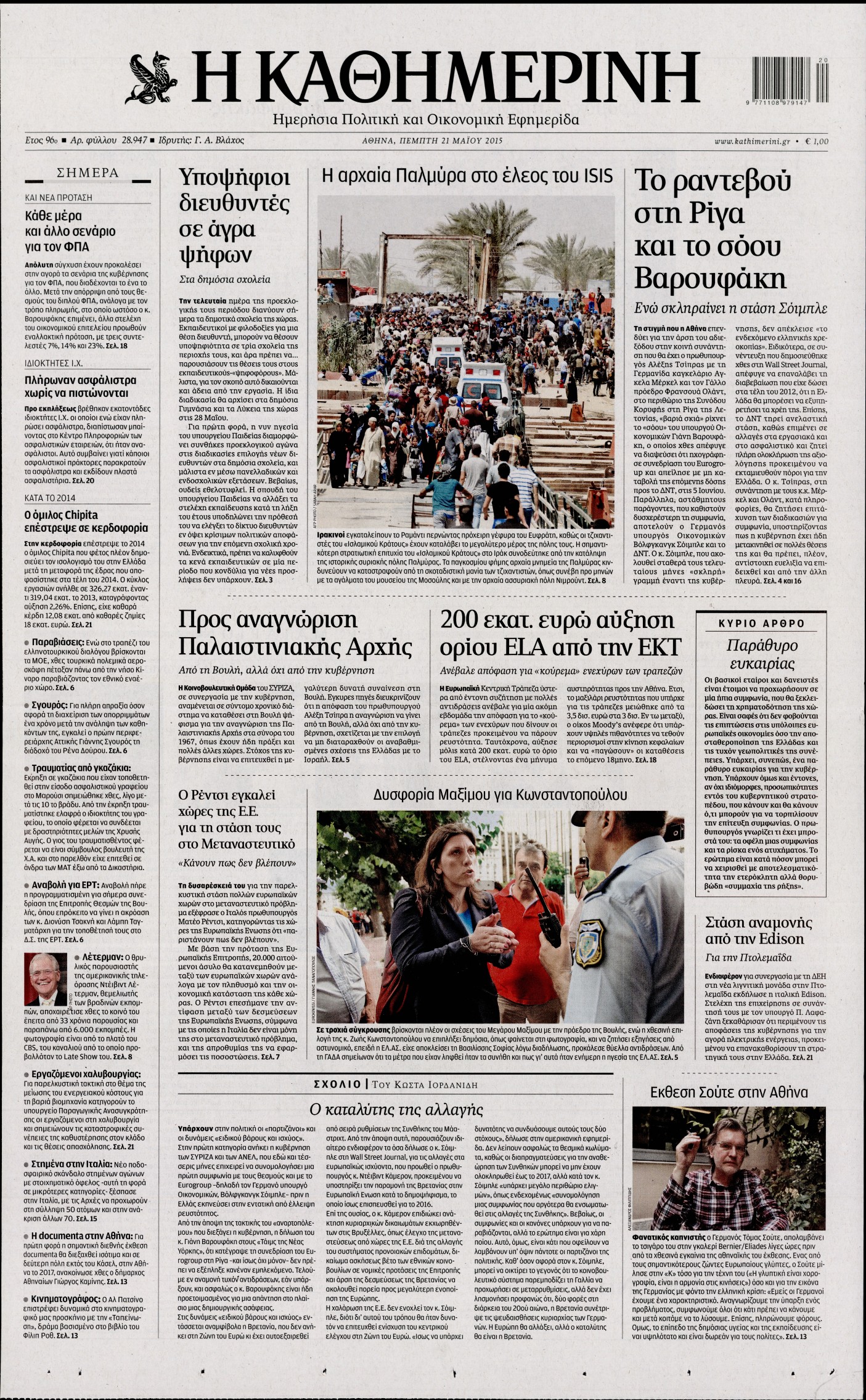 Οι πολιτικές εφημερίδες 21/5/2015 Enikos Newsroom 07:09, Πέμπτη 21 Μαΐου 2015 Media Διαβάστε τα σημερινά πρωτοσέλιδα των πολιτικών εφημερίδων: ΠΟΛΙΤΙΚΕΣ ΕΦΗΜΕΡΙΔΕΣ ΠΡΩΤΟΣΕΛΙΔΑ Μοιράσου το: σχολίασε κι εσύ (0 σχόλια) Ακολουθήστε το enikos.gr στο Google News και μάθετε πρώτοι όλες τις ειδήσεις Δείτε όλες τις τελευταίες ειδήσεις από την Ελλάδα και τον Κόσμο στο enikos.gr Ειδήσεις Ροή Ειδήσεων 49 λεπτά πριν Politico: Πώς ο Τραμπ σε 4 βήματα μπορεί να καταλάβει τη Γροιλανδία – Η στρατηγική που θυμίζει… Πούτιν και το σενάριο της εισβολής 12 λεπτά πριν Μητσοτάκης: Χαιρετίζει τη στήριξη ύψους 45 δισ. ευρώ της Κομισιόν στους αγρότες – «Η φωνή της Ελλάδας στην Ευρώπη ακούγεται πιο δυνατά» 24 λεπτά πριν Φαραντούρης: «Ενώνω τη φωνή μου με την Καρυστιανού, αν αποφασίσω να πορευτώ σε άλλο δρόμο θα ενημερώσω αρμοδίως τον ΣΥΡΙΖΑ» 2 ώρες πριν Συναγερμός για τις νοσηλείες λόγω της γρίπης: Σε επιφυλακή οι υγειονομικές Αρχές μετά την αύξηση των εισαγωγών 2 ώρες πριν Φονικό κύμα ψύχους στην Ευρώπη: 6 νεκροί και χάος στους δρόμους και τα αεροδρόμια 1 ώρα πριν Οι οικονομικές δυσκολίες τελειώνουν για 3 ζώδια – «Έρχονται μεγάλα κέρδη» 3 ώρες πριν Χαμένο αρχαίο χωριό με μυστηριώδες παρελθόν ανακαλύφθηκε εν μέσω κατασκευών: «Συναρπαστικό εύρημα» 2 ώρες πριν Αρνείται να καθαρίσει την καφετιέρα στο γραφείο προκαλώντας αντιδράσεις – «Δεν την χρησιμοποιώ ποτέ» 26 λεπτά πριν Όσοι προσποιούνται ότι είναι υποστηρικτικοί ενώ σε κρίνουν, δείχνουν αυτά τα 8 σημάδια 6 λεπτά πριν Βίντεο-σοκ από κακοποίηση δύο σκύλων: 68χρονος τους είχε δέσει σε αυτοκίνητο και τους έσερνε στον δρόμο 11 λεπτά πριν Νίνο: Το απρόοπτο με το μικρόφωνο την ώρα που τραγουδούσε – Δείτε βίντεο 12 λεπτά πριν Μητσοτάκης: Χαιρετίζει τη στήριξη ύψους 45 δισ. ευρώ της Κομισιόν στους αγρότες – «Η φωνή της Ελλάδας στην Ευρώπη ακούγεται πιο δυνατά» 16 λεπτά πριν Έβρος: 25χρονος μετανάστης εντοπίστηκε πυροβολημένος στη Νέα Βύσσα 21 λεπτά πριν Ακούστε το σχόλιο του Νίκου Χατζηνικολάου 7/1/2026 ENIKOS NETWORK Υπέρταση: 5 πράγματα που είναι καλό να κάνουν οι γυναίκες για καλύτερη αρτηριακή πίεση, σύμφωνα με καρδιολόγους Σφοδρές αντιδράσεις για τις δηλώσεις Βαρουφάκη περί χρήσης ουσιών Ακίνητα: «Έρχεται» η διάταξη για την αναδρομική ενίσχυση με ακόμη ένα ενοίκιο – Πότε θα ψηφιστεί στη Βουλή Επιδόματα μητρότητας 2026: Πότε θα γίνει η πρώτη πληρωμή για το νέο έτος και ποιους θα αφορά Ο Google Assistant θα παραμείνει λίγο περισσότερο για ορισμένους χρήστες Android Τεστ προσωπικότητας: Το βάζο που θα επιλέξετε αποκαλύπτει πώς λύνετε προβλήματα στη ζωή σας περισσότερα 09:45 , Τετάρτη 07 Ιανουαρίου 2026 Εκτός «Πρωινού» ο Γιώργος Λιάγκας: «Είναι ένα μικρό θέμα υγείας» Εκτός εκπομπής βρέθηκε ο Γιώργος Λιάγκας στη σημερινή πρωινή εκπομπή του ΑΝΤ1, «Το Πρωινό», με... 09:00 , Τετάρτη 07 Ιανουαρίου 2026 Αυτή την Κυριακή με τη Realnews: Μυστηριώδης εξαφάνιση – Ένα καθηλωτικό θρίλερ γεμάτο αγωνία από τον διεθνώς αναγνωρισμένο συγγραφέα Rick Mofina Αυτή την Κυριακή με τη Realnews: Μυστηριώδης εξαφάνιση –Ένα καθηλωτικό θρίλερ γεμάτο αγω... 08:00 , Τετάρτη 07 Ιανουαρίου 2026 Την Κυριακή με τη Realnews: Ό,τι και αν αγοράσεις, σκανάρεις και κερδίζεις! Την Κυριακή με τη Realnews: Ό,τι και αν αγοράσεις, σκανάρεις και κερδίζεις! Με το PADU app, το... 07:00 , Τετάρτη 07 Ιανουαρίου 2026 Την Κυριακή με τη Realnews: Δωροεπιταγή 10€ Την Κυριακή με τη Realnews: Δωροεπιταγή 10€ Δωροεπιταγή αξίας 10€ για αγορές άνω των 60€ από τ... ΤΕΛΕΥΤΑΙΕΣ ΕΙΔΗΣΕΙΣ 6 λεπτά πριν Βίντεο-σοκ 