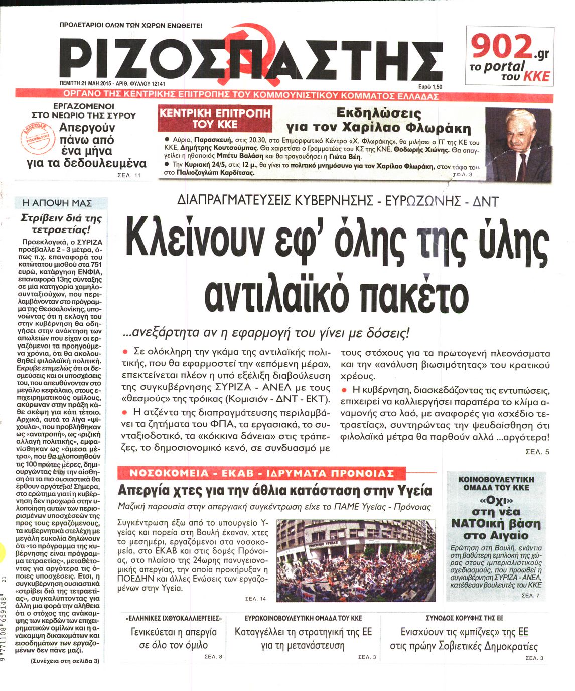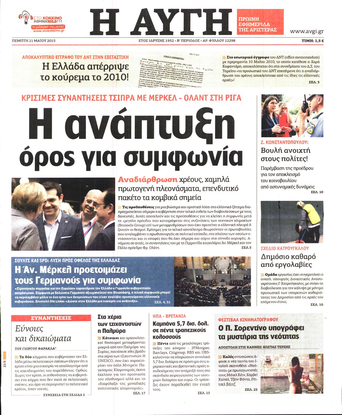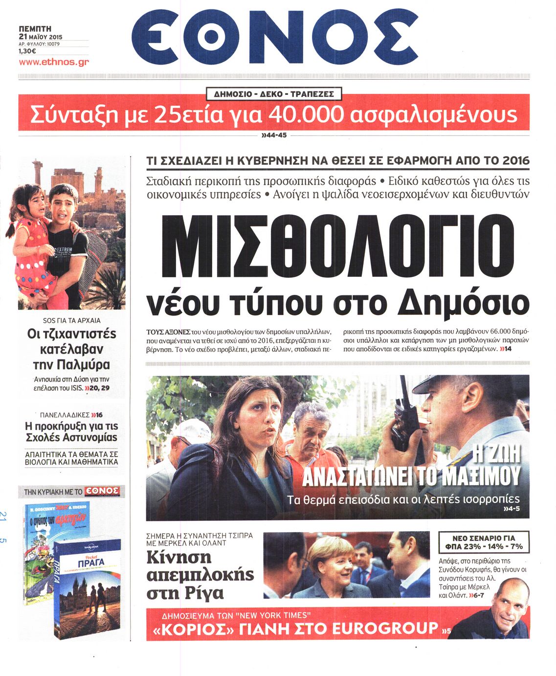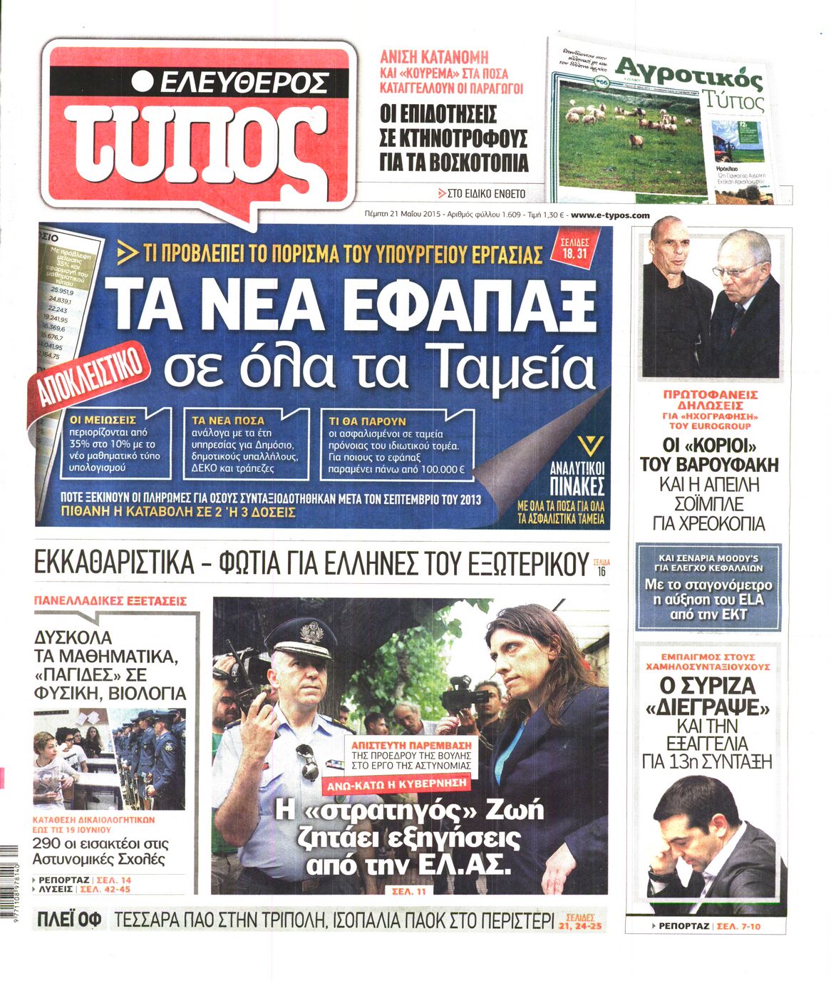 Οι πολιτικές εφημερίδες 21/5/2015 Enikos Newsroom 07:09, Πέμπτη 21 Μαΐου 2015 Media Διαβάστε τα σημερινά πρωτοσέλιδα των πολιτικών εφημερίδων: ΠΟΛΙΤΙΚΕΣ ΕΦΗΜΕΡΙΔΕΣ ΠΡΩΤΟΣΕΛΙΔΑ Μοιράσου το: σχολίασε κι εσύ (0 σχόλια) Ακολουθήστε το enikos.gr στο Google News και μάθετε πρώτοι όλες τις ειδήσεις Δείτε όλες τις τελευταίες ειδήσεις από την Ελλάδα και τον Κόσμο στο enikos.gr Ειδήσεις Ροή Ειδήσεων 49 λεπτά πριν Politico: Πώς ο Τραμπ σε 4 βήματα μπορεί να καταλάβει τη Γροιλανδία – Η στρατηγική που θυμίζει… Πούτιν και το σενάριο της εισβολής 12 λεπτά πριν Μητσοτάκης: Χαιρετίζει τη στήριξη ύψους 45 δισ. ευρώ της Κομισιόν στους αγρότες – «Η φωνή της Ελλάδας στην Ευρώπη ακούγεται πιο δυνατά» 24 λεπτά πριν Φαραντούρης: «Ενώνω τη φωνή μου με την Καρυστιανού, αν αποφασίσω να πορευτώ σε άλλο δρόμο θα ενημερώσω αρμοδίως τον ΣΥΡΙΖΑ» 2 ώρες πριν Συναγερμός για τις νοσηλείες λόγω της γρίπης: Σε επιφυλακή οι υγειονομικές Αρχές μετά την αύξηση των εισαγωγών 2 ώρες πριν Φονικό κύμα ψύχους στην Ευρώπη: 6 νεκροί και χάος στους δρόμους και τα αεροδρόμια 1 ώρα πριν Οι οικονομικές δυσκολίες τελειώνουν για 3 ζώδια – «Έρχονται μεγάλα κέρδη» 3 ώρες πριν Χαμένο αρχαίο χωριό με μυστηριώδες παρελθόν ανακαλύφθηκε εν μέσω κατασκευών: «Συναρπαστικό εύρημα» 2 ώρες πριν Αρνείται να καθαρίσει την καφετιέρα στο γραφείο προκαλώντας αντιδράσεις – «Δεν την χρησιμοποιώ ποτέ» 26 λεπτά πριν Όσοι προσποιούνται ότι είναι υποστηρικτικοί ενώ σε κρίνουν, δείχνουν αυτά τα 8 σημάδια 6 λεπτά πριν Βίντεο-σοκ από κακοποίηση δύο σκύλων: 68χρονος τους είχε δέσει σε αυτοκίνητο και τους έσερνε στον δρόμο 11 λεπτά πριν Νίνο: Το απρόοπτο με το μικρόφωνο την ώρα που τραγουδούσε – Δείτε βίντεο 12 λεπτά πριν Μητσοτάκης: Χαιρετίζει τη στήριξη ύψους 45 δισ. ευρώ της Κομισιόν στους αγρότες – «Η φωνή της Ελλάδας στην Ευρώπη ακούγεται πιο δυνατά» 16 λεπτά πριν Έβρος: 25χρονος μετανάστης εντοπίστηκε πυροβολημένος στη Νέα Βύσσα 21 λεπτά πριν Ακούστε το σχόλιο του Νίκου Χατζηνικολάου 7/1/2026 ENIKOS NETWORK Υπέρταση: 5 πράγματα που είναι καλό να κάνουν οι γυναίκες για καλύτερη αρτηριακή πίεση, σύμφωνα με καρδιολόγους Σφοδρές αντιδράσεις για τις δηλώσεις Βαρουφάκη περί χρήσης ουσιών Ακίνητα: «Έρχεται» η διάταξη για την αναδρομική ενίσχυση με ακόμη ένα ενοίκιο – Πότε θα ψηφιστεί στη Βουλή Επιδόματα μητρότητας 2026: Πότε θα γίνει η πρώτη πληρωμή για το νέο έτος και ποιους θα αφορά Ο Google Assistant θα παραμείνει λίγο περισσότερο για ορισμένους χρήστες Android Τεστ προσωπικότητας: Το βάζο που θα επιλέξετε αποκαλύπτει πώς λύνετε προβλήματα στη ζωή σας περισσότερα 09:45 , Τετάρτη 07 Ιανουαρίου 2026 Εκτός «Πρωινού» ο Γιώργος Λιάγκας: «Είναι ένα μικρό θέμα υγείας» Εκτός εκπομπής βρέθηκε ο Γιώργος Λιάγκας στη σημερινή πρωινή εκπομπή του ΑΝΤ1, «Το Πρωινό», με... 09:00 , Τετάρτη 07 Ιανουαρίου 2026 Αυτή την Κυριακή με τη Realnews: Μυστηριώδης εξαφάνιση – Ένα καθηλωτικό θρίλερ γεμάτο αγωνία από τον διεθνώς αναγνωρισμένο συγγραφέα Rick Mofina Αυτή την Κυριακή με τη Realnews: Μυστηριώδης εξαφάνιση –Ένα καθηλωτικό θρίλερ γεμάτο αγω... 08:00 , Τετάρτη 07 Ιανουαρίου 2026 Την Κυριακή με τη Realnews: Ό,τι και αν αγοράσεις, σκανάρεις και κερδίζεις! Την Κυριακή με τη Realnews: Ό,τι και αν αγοράσεις, σκανάρεις και κερδίζεις! Με το PADU app, το... 07:00 , Τετάρτη 07 Ιανουαρίου 2026 Την Κυριακή με τη Realnews: Δωροεπιταγή 10€ Την Κυριακή με τη Realnews: Δωροεπιταγή 10€ Δωροεπιταγή αξίας 10€ για αγορές άνω των 60€ από τ... ΤΕΛΕΥΤΑΙΕΣ ΕΙΔΗΣΕΙΣ 6 λεπτά πριν Βίντεο-σοκ 