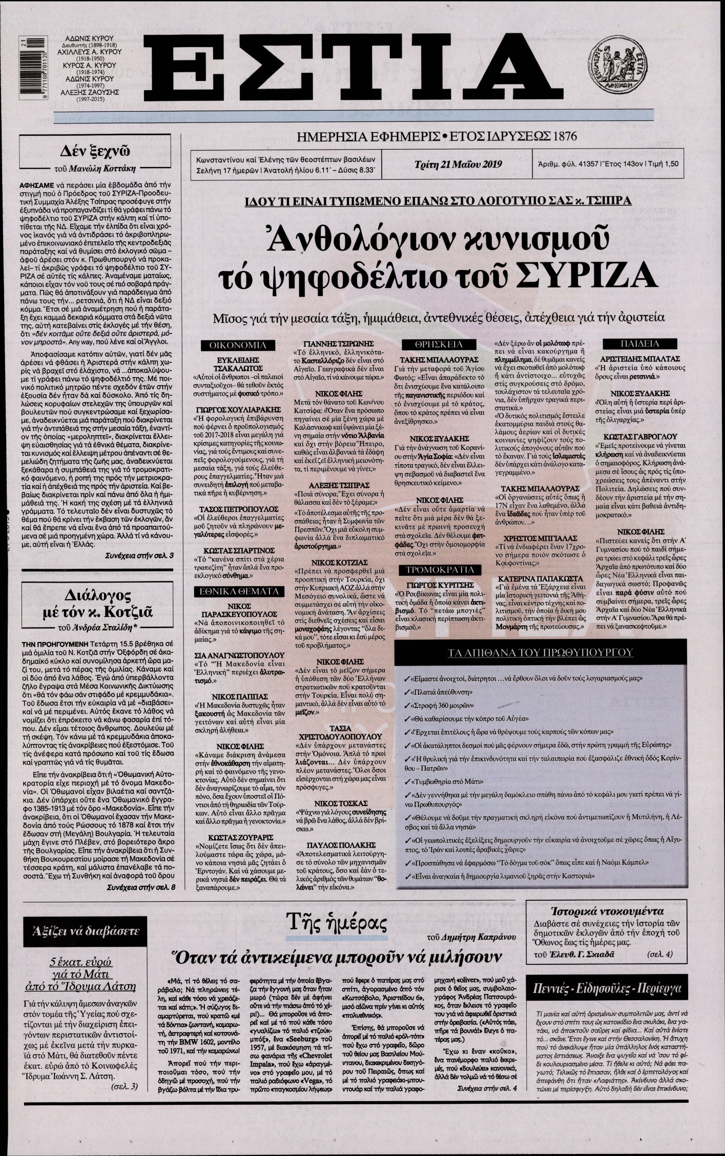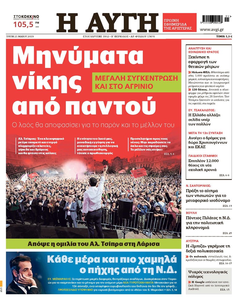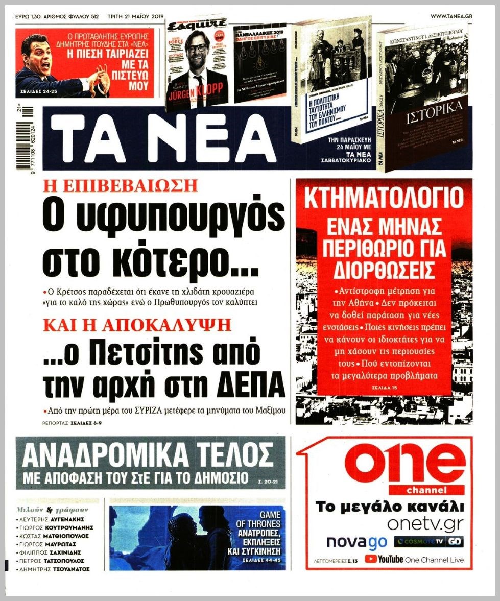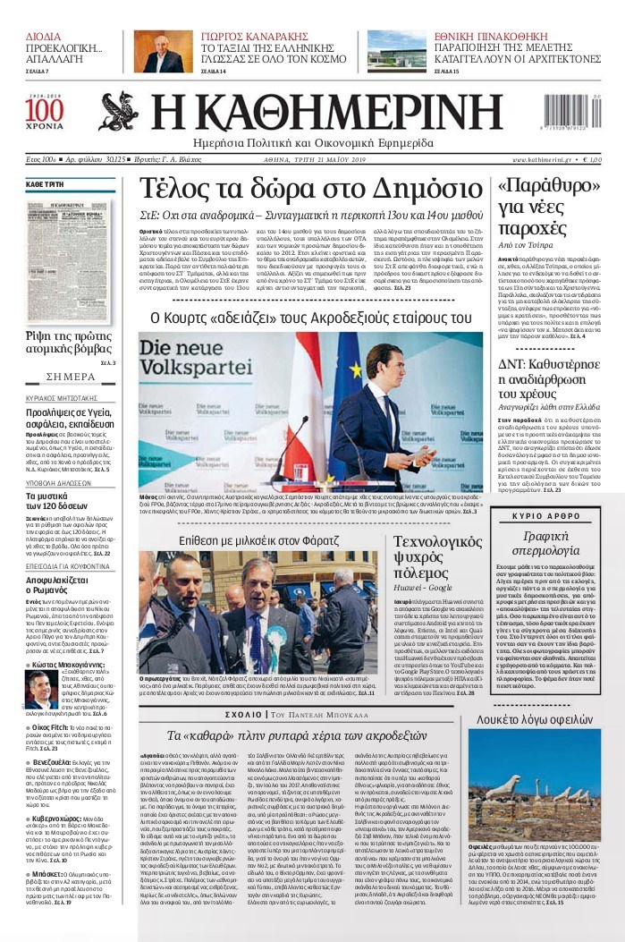 Οι πολιτικές εφημερίδες 21/5/2019 Κώστας Τεό 06:06, Τρίτη 21 Μαΐου 2019 Media Διαβάστε τα πρωτοσέλιδα των πολιτικών εφημερίδων: ΠΟΛΙΤΙΚΕΣ ΕΦΗΜΕΡΙΔΕΣ ΠΡΩΤΟΣΕΛΙΔΑ Μοιράσου το: σχολίασε κι εσύ (0 σχόλια) Ακολουθήστε το enikos.gr στο Google News και μάθετε πρώτοι όλες τις ειδήσεις Δείτε όλες τις τελευταίες ειδήσεις από την Ελλάδα και τον Κόσμο στο enikos.gr Ειδήσεις Ροή Ειδήσεων 3 ώρες πριν Χριστούγεννα στα μπλόκα: Επιμένουν στις κινητοποιήσεις τους οι αγρότες – Ανοίγουν τα διόδια το Σαββατοκύριακο 3 ώρες πριν Ουκρανία: Η άνευ προηγουμένου επίθεση σε ρωσικό τάνκερ στη Μεσόγειο και το μήνυμα προς στον Πούτιν – Το «μακρύ χέρι» του Κιέβου 3 ώρες πριν Πούτιν: Τα μηνύματα σε Ευρώπη και ΝΑΤΟ από το μαραθώνιο «σόου» του – Η απαίτηση για «σεβασμό» και η ειρήνη «με τους όρους» της Μόσχας 4 ώρες πριν Τραμπ: Δεν αποκλείει την πιθανότητα ενός πολέμου στη Βενεζουέλα – «Ο Μαδούρο ξέρει καλύτερα από τον καθένα τι ακριβώς θέλω» 4 ώρες πριν Συνεχίζει να προκαλεί ο Μίτσκοσκι: «Για μένα το όνομα Μακεδονία είναι ιερό» 3 ώρες πριν Ανακαλύφθηκαν αρχαία χρυσά νομίσματα 2.200 ετών που απεικονίζουν τον θεό Απόλλωνα – Η άγνωστη σύνδεση με τον Φίλιππο Β΄ της Μακεδονίας 4 ώρες πριν Ύπνος: Μια κρυφή κατάσταση του εγκεφάλου πριν από τον ύπνο μπορεί να είναι το “κλειδί” για υψηλή ευφυΐα και δημιουργικότητα 5 ώρες πριν Αριθμολογία: Οι άνθρωποι που έχουν γεννηθεί αυτές τις 4 ημερομηνίες, συχνά παρεξηγούνται – «Η καλοσύνη τους κρύβει τεράστια δύναμη» 6 ώρες πριν Ξεχάστε το καθάρισμα το Σαββατοκύριακο: Ο «κανόνας των 20 λεπτών» που θα σας λύσει τα χέρια 18 λεπτά πριν Euroleague: Επέστρεψε στις νίκες ο Ολυμπιακός, πήρε την ματσάρα της χρονιάς η Μπάρτσα – Τα αποτελέσματα και η βαθμολογία 33 λεπτά πριν Συρία: Μαζικά πλήγματα των ΗΠΑ σε θέσεις του Ισλαμικού Κράτους – Χέγκσεθ: «Δεν είναι αρχή πολέμου, είναι μια δήλωση εκδίκησης» για το θάνατο των στρατιωτών μας 46 λεπτά πριν Ουκρανία: Ολοκληρώθηκαν οι συνομιλίες με τους Αμερικανούς κι Ευρωπαίους διαπραγματευτές 1 ώρα πριν Μπαρτσελόνα – Μπασκόνια 134-124: Οι «μπλαουγκράνα» πήραν το ματς της χρονιάς ύστερα από τρεις παρατάσεις 1 ώρα πριν Φαίη Σκορδά: «Παλιότερα τα κομπλιμέντα τα προσπερνούσα, τώρα τα έχω ανάγκη» ENIKOS NETWORK Το ΕΚΑΒ τιμήθηκε από την Ακαδημία Αθηνών για τα 40 χρόνια προσφοράς του Έχετε πραγματικά μεγάλη καρδιά; 10 χαρακτηριστικά όσων έχουν καλοσύνη Αναστολή μέτρων αναγκαστικής εκτέλεσης για κτηνοτρόφους που πλήττονται από την ευλογιά των αιγοπροβάτων Πλήρης επάρκεια προϊόντων στις λαϊκές της Αττικής, παρά τις αγροτικές κινητοποιήσεις – Τι απαντούν οι πωλητές Χαρτογραφώντας το «σημείο χωρίς επιστροφή»: Για πρώτη φορά αποκαλύπτεται με λεπτομέρεια το ακανθώδες όριο της ατμόσφαιρας τ... Η Google καταργεί τη λειτουργία «dark web report» – Πώς θα μπορούν οι χρήστες να διαγράφουν τα δεδομένα τους περισσότερα 22:42 , Παρασκευή 19 Δεκεμβρίου 2025 Γιώργος Γιαννόπουλος για “Το σόι σου”: “Είναι ευτυχία και ευλογία αυτή η σειρά” «Είναι ευτυχία και ευλογία η συγκυρία αυτής της σειράς», θα πει ο Γιώργος Γιαννόπουλος -ο αγαπ... 20:37 , Παρασκευή 19 Δεκεμβρίου 2025 Don’t Forget The Lyrics: Η Έλλη Κοκκίνου υποδέχεται 4 παίκτες που θα κάνουν τα πάντα για να μη χάσουν ούτε… μισή λέξη από τους στίχους Το «Don’t Forget The Lyrics» επιστρέφει απόψε, Παρασκευή 19 Δεκεμβρίου, στις 21:00 με νέο επει... 19:31 , Παρασκευή 19 Δεκεμβρίου 2025 GNTM: Απόψε ο μεγάλος τελικός για τους 4 φιναλίστ Έπειτα από μήνες γεμάτους μόδα, δημιουργία κα