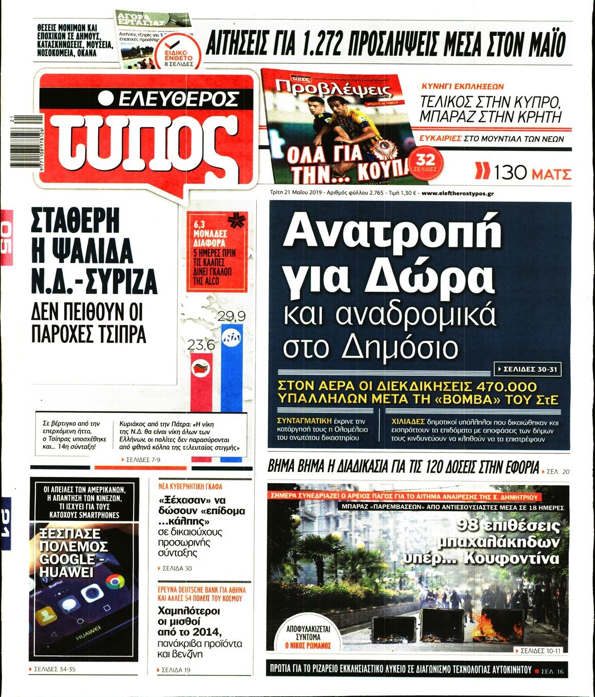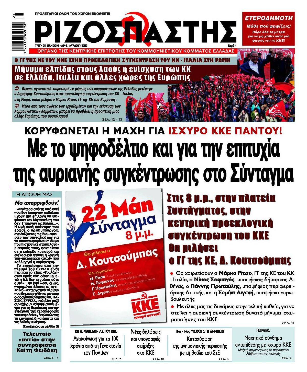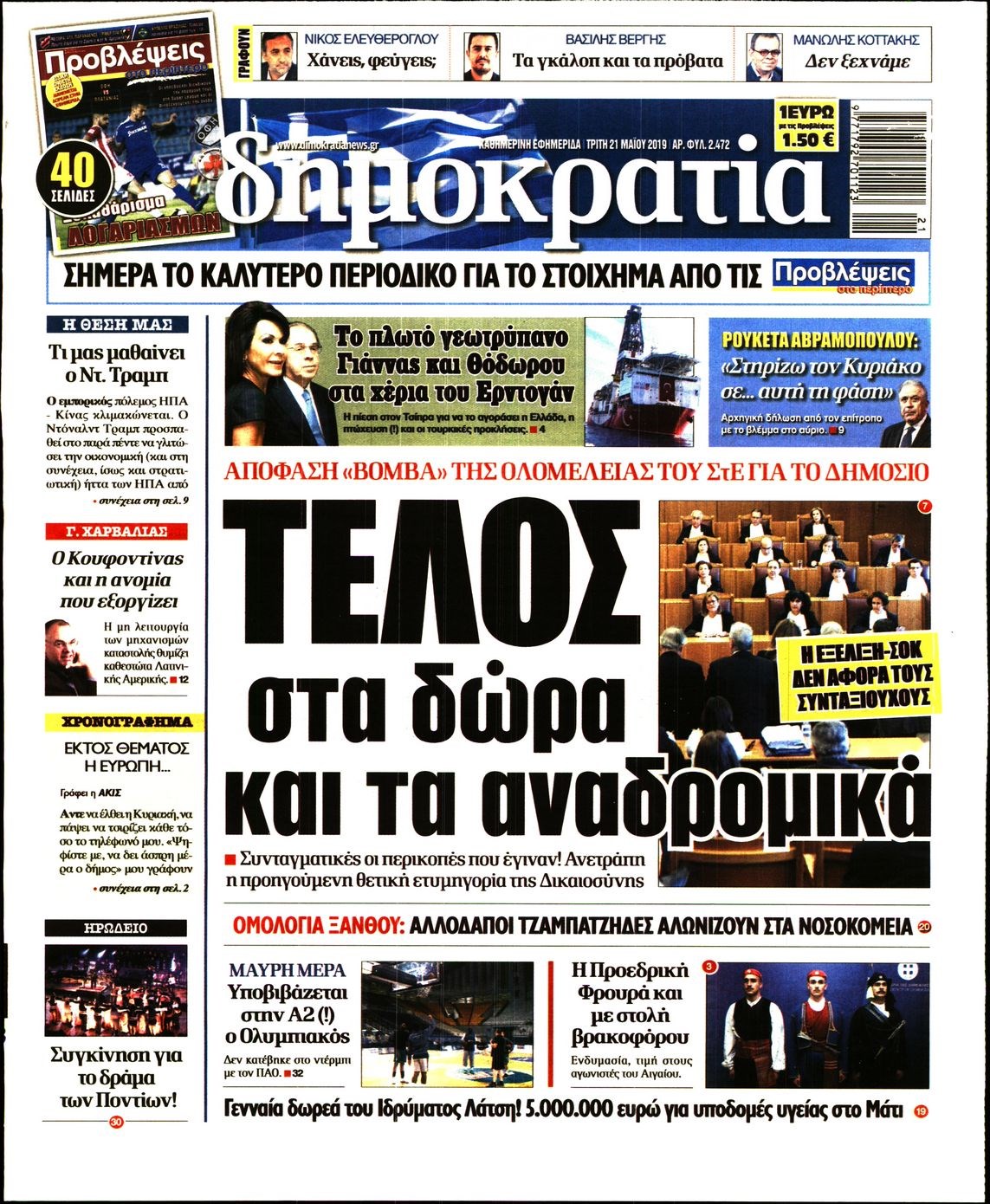 Οι πολιτικές εφημερίδες 21/5/2019 Κώστας Τεό 06:06, Τρίτη 21 Μαΐου 2019 Media Διαβάστε τα πρωτοσέλιδα των πολιτικών εφημερίδων: ΠΟΛΙΤΙΚΕΣ ΕΦΗΜΕΡΙΔΕΣ ΠΡΩΤΟΣΕΛΙΔΑ Μοιράσου το: σχολίασε κι εσύ (0 σχόλια) Ακολουθήστε το enikos.gr στο Google News και μάθετε πρώτοι όλες τις ειδήσεις Δείτε όλες τις τελευταίες ειδήσεις από την Ελλάδα και τον Κόσμο στο enikos.gr Ειδήσεις Ροή Ειδήσεων 3 ώρες πριν Χριστούγεννα στα μπλόκα: Επιμένουν στις κινητοποιήσεις τους οι αγρότες – Ανοίγουν τα διόδια το Σαββατοκύριακο 3 ώρες πριν Ουκρανία: Η άνευ προηγουμένου επίθεση σε ρωσικό τάνκερ στη Μεσόγειο και το μήνυμα προς στον Πούτιν – Το «μακρύ χέρι» του Κιέβου 3 ώρες πριν Πούτιν: Τα μηνύματα σε Ευρώπη και ΝΑΤΟ από το μαραθώνιο «σόου» του – Η απαίτηση για «σεβασμό» και η ειρήνη «με τους όρους» της Μόσχας 4 ώρες πριν Τραμπ: Δεν αποκλείει την πιθανότητα ενός πολέμου στη Βενεζουέλα – «Ο Μαδούρο ξέρει καλύτερα από τον καθένα τι ακριβώς θέλω» 4 ώρες πριν Συνεχίζει να προκαλεί ο Μίτσκοσκι: «Για μένα το όνομα Μακεδονία είναι ιερό» 3 ώρες πριν Ανακαλύφθηκαν αρχαία χρυσά νομίσματα 2.200 ετών που απεικονίζουν τον θεό Απόλλωνα – Η άγνωστη σύνδεση με τον Φίλιππο Β΄ της Μακεδονίας 4 ώρες πριν Ύπνος: Μια κρυφή κατάσταση του εγκεφάλου πριν από τον ύπνο μπορεί να είναι το “κλειδί” για υψηλή ευφυΐα και δημιουργικότητα 5 ώρες πριν Αριθμολογία: Οι άνθρωποι που έχουν γεννηθεί αυτές τις 4 ημερομηνίες, συχνά παρεξηγούνται – «Η καλοσύνη τους κρύβει τεράστια δύναμη» 6 ώρες πριν Ξεχάστε το καθάρισμα το Σαββατοκύριακο: Ο «κανόνας των 20 λεπτών» που θα σας λύσει τα χέρια 18 λεπτά πριν Euroleague: Επέστρεψε στις νίκες ο Ολυμπιακός, πήρε την ματσάρα της χρονιάς η Μπάρτσα – Τα αποτελέσματα και η βαθμολογία 33 λεπτά πριν Συρία: Μαζικά πλήγματα των ΗΠΑ σε θέσεις του Ισλαμικού Κράτους – Χέγκσεθ: «Δεν είναι αρχή πολέμου, είναι μια δήλωση εκδίκησης» για το θάνατο των στρατιωτών μας 46 λεπτά πριν Ουκρανία: Ολοκληρώθηκαν οι συνομιλίες με τους Αμερικανούς κι Ευρωπαίους διαπραγματευτές 1 ώρα πριν Μπαρτσελόνα – Μπασκόνια 134-124: Οι «μπλαουγκράνα» πήραν το ματς της χρονιάς ύστερα από τρεις παρατάσεις 1 ώρα πριν Φαίη Σκορδά: «Παλιότερα τα κομπλιμέντα τα προσπερνούσα, τώρα τα έχω ανάγκη» ENIKOS NETWORK Το ΕΚΑΒ τιμήθηκε από την Ακαδημία Αθηνών για τα 40 χρόνια προσφοράς του Έχετε πραγματικά μεγάλη καρδιά; 10 χαρακτηριστικά όσων έχουν καλοσύνη Αναστολή μέτρων αναγκαστικής εκτέλεσης για κτηνοτρόφους που πλήττονται από την ευλογιά των αιγοπροβάτων Πλήρης επάρκεια προϊόντων στις λαϊκές της Αττικής, παρά τις αγροτικές κινητοποιήσεις – Τι απαντούν οι πωλητές Χαρτογραφώντας το «σημείο χωρίς επιστροφή»: Για πρώτη φορά αποκαλύπτεται με λεπτομέρεια το ακανθώδες όριο της ατμόσφαιρας τ... Η Google καταργεί τη λειτουργία «dark web report» – Πώς θα μπορούν οι χρήστες να διαγράφουν τα δεδομένα τους περισσότερα 22:42 , Παρασκευή 19 Δεκεμβρίου 2025 Γιώργος Γιαννόπουλος για “Το σόι σου”: “Είναι ευτυχία και ευλογία αυτή η σειρά” «Είναι ευτυχία και ευλογία η συγκυρία αυτής της σειράς», θα πει ο Γιώργος Γιαννόπουλος -ο αγαπ... 20:37 , Παρασκευή 19 Δεκεμβρίου 2025 Don’t Forget The Lyrics: Η Έλλη Κοκκίνου υποδέχεται 4 παίκτες που θα κάνουν τα πάντα για να μη χάσουν ούτε… μισή λέξη από τους στίχους Το «Don’t Forget The Lyrics» επιστρέφει απόψε, Παρασκευή 19 Δεκεμβρίου, στις 21:00 με νέο επει... 19:31 , Παρασκευή 19 Δεκεμβρίου 2025 GNTM: Απόψε ο μεγάλος τελικός για τους 4 φιναλίστ Έπειτα από μήνες γεμάτους μόδα, δημιουργία κα
