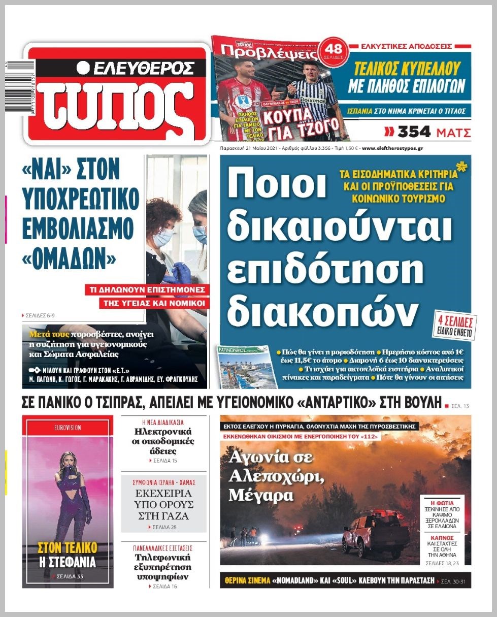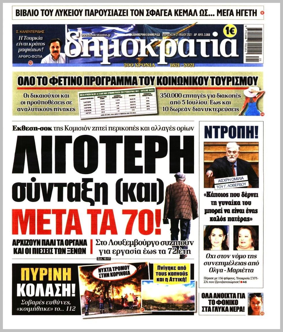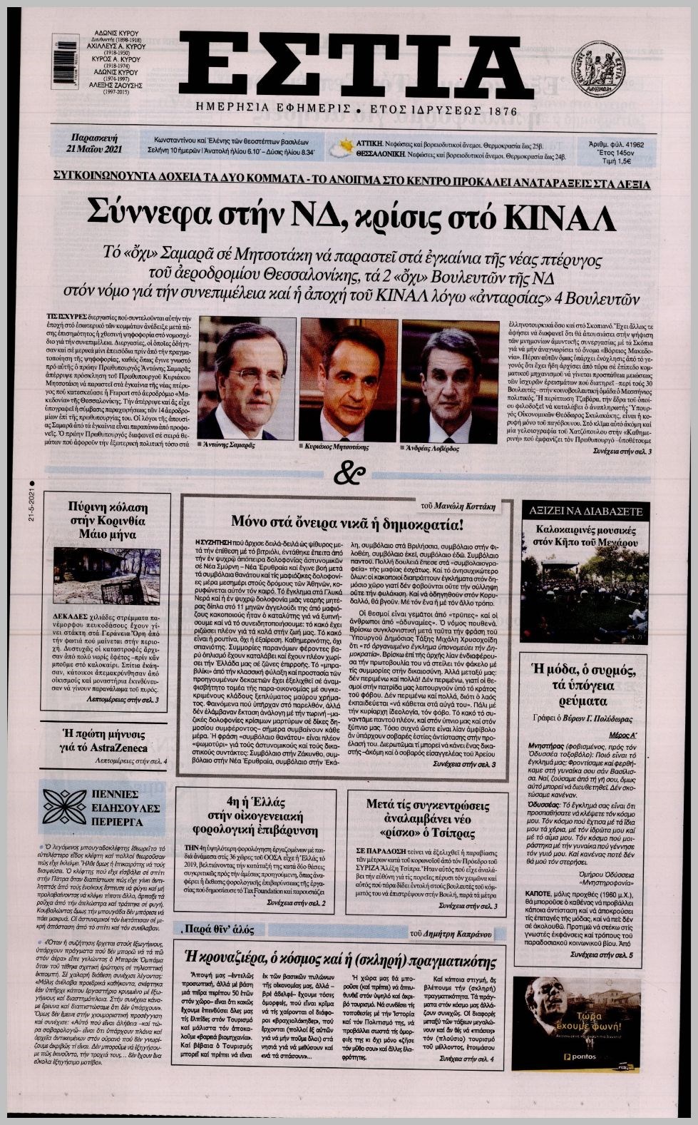Οι πολιτικές εφημερίδες 21/5/2021 Διονύσης Νίκκας 06:15, Παρασκευή 21 Μαΐου 2021 Media Διαβάστε τα πρωτοσέλιδα των πολιτικών εφημερίδων… ΕΦΗΜΕΡΙΔΕΣ ΠΡΩΤΟΣΕΛΙΔΑ Μοιράσου το: σχολίασε κι εσύ (0 σχόλια) Ακολουθήστε το enikos.gr στο Google News και μάθετε πρώτοι όλες τις ειδήσεις Δείτε όλες τις τελευταίες ειδήσεις από την Ελλάδα και τον Κόσμο στο enikos.gr Ειδήσεις Ροή Ειδήσεων 1 ώρα πριν Υπόθεση Έπσταϊν: Το Υπουργείο Δικαιοσύνης δημοσιοποίησε μια σειρά από εξαιρετικά επεξεργασμένα αρχεία – «Λείπουν τα πιο σημαντικά έγγραφα», λένε οι Δημοκρατικοί 3 ώρες πριν Σαρωτικοί οι έλεγχοι στους δρόμους ενόψει εορτών – Μπλόκα της τροχαίας σε κεντρικές αρτηρίες της Αττικής 1 ώρα πριν ΟΝΕΧ – MEGATUGS: Ξεκίνησε η ναυπήγηση ρυμουλκών στην Ελλάδα – Προθάλαμος πολεμικών πλοίων – Δείτε φωτογραφίες και βίντεο 1 ώρα πριν Καιρός: Αλλαγή σκηνικού σήμερα με βροχές και πτώση της θερμοκρασίας – Οι προβλέψεις των μετεωρολόγων για τα Χριστούγεννα 10 ώρες πριν Χριστούγεννα στα μπλόκα: Επιμένουν στις κινητοποιήσεις τους οι αγρότες – Ανοίγουν τα διόδια το Σαββατοκύριακο 3 ώρες πριν Αυγά: Πόσα μπορείτε να τρώτε την ημέρα με ασφάλεια για μέγιστη πρόσληψη πρωτεΐνης 3 ώρες πριν Τα ζώδια σήμερα, Σάββατο 20 Δεκεμβρίου: Παρθένοι, το σύμπαν σας δίνει το κλειδί 3 ώρες πριν Οπτική ψευδαίσθηση: Μόνο αν είσαι ο Σέρλοκ Χολμς θα βρεις τον αριθμό «87» σε 7 δευτερόλεπτα 41 λεπτά πριν Αρχαιολόγοι ανακάλυψαν σε χωράφι απεικόνιση 600 ετών ενός Αγίου – Τα στοιχεία που δείχνουν ότι μαρτύρησε 3 λεπτά πριν Αμαλία Κωστοπούλου: Το μήνυμα για το χειρουργείο στο γόνατο – «Αυτός ο τραυματισμός μού στέρησε πολλά…» 10 λεπτά πριν Ο «χάρτης» με τις αυξήσεις και τις φοροελαφρύνσεις του 2026 – Ποιοι και πόσα κερδίζουν 18 λεπτά πριν Η τέλεια συνταγή για cookies με κομμάτια σοκολάτας 26 λεπτά πριν MyHealth App: Τα στοιχεία για τον Προσωπικό Βοηθό Υγείας Πολίτη – Τι ερωτήματα έγιναν μέσα σε 7 ημέρες 34 λεπτά πριν Τρομεροί γονείς: Η Μαρία Καβογιάννη εισβάλλει στο σπίτι της οικογένειας Στεφανίδη ENIKOS NETWORK Το τεστ των 10 δευτερολέπτων που μπορεί να προβλέψει το προσδόκιμο ζωής σας – Τι λέει ειδικός του Cleveland Επιλέξτε καρέκλα για να μάθετε ποια είναι τα κρυφά χαρακτηριστικά σας – Τι αποκάλυψε για εσάς αυτό το τεστ προσωπικότητας; Mega χριστουγεννιάτικη φορολοταρία: «Κλείδωσε» η ημερομηνία για την κλήρωση – Ερωτήσεις και απαντήσεις Αναστολή μέτρων αναγκαστικής εκτέλεσης για κτηνοτρόφους που πλήττονται από την ευλογιά των αιγοπροβάτων Χαρτογραφώντας το «σημείο χωρίς επιστροφή»: Για πρώτη φορά αποκαλύπτεται με λεπτομέρεια το ακανθώδες όριο της ατμόσφαιρας τ... Η Google καταργεί τη λειτουργία «dark web report» – Πώς θα μπορούν οι χρήστες να διαγράφουν τα δεδομένα τους περισσότερα 08:14 , Σάββατο 20 Δεκεμβρίου 2025 Τρομεροί γονείς: Η Μαρία Καβογιάννη εισβάλλει στο σπίτι της οικογένειας Στεφανίδη Όσα θα δούμε στο νέο διπλό επεισόδιο της σειράς «Τρομεροί γονείς», σήμερα Σάββατο 20 Δεκεμβρίο... 05:48 , Σάββατο 20 Δεκεμβρίου 2025 Οι οικονομικές εφημερίδες 20/12/2025 Διαβάστε τα πρωτοσέλιδα από τις οικονομικές εφημερίδες, σήμερα 20/12/2025. 05:43 , Σάββατο 20 Δεκεμβρίου 2025 Οι αθλητικές εφημερίδες 20/12/2025 Διαβάστε τα πρωτοσέλιδα από τις αθλητικές εφημερίδες, σήμερα 20/12/2025. 05:38 , Σάββατο 20 Δεκεμβρίου 2025 Οι πολιτικές εφημερίδες 20/12/2025 Διαβάστε τα πρωτοσέλιδα από τις πολιτικές εφημερίδες, σήμερα 20/12/2025. ΤΕΛΕΥΤΑΙΕΣ ΕΙΔΗΣΕΙΣ 3 λεπτά πριν Αμαλία Κωστοπούλου: Το μήνυμα για το χειρουργείο στο... 10 λεπτά π