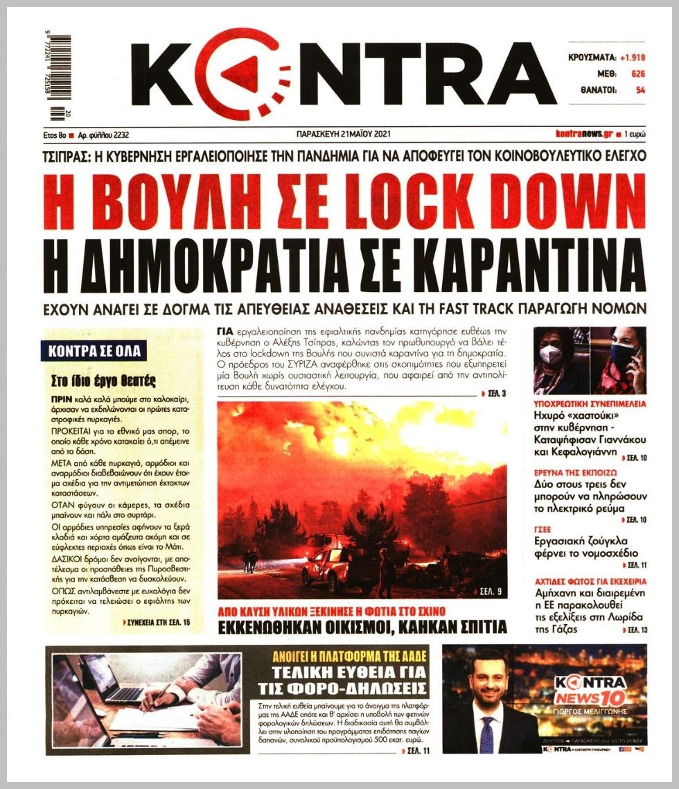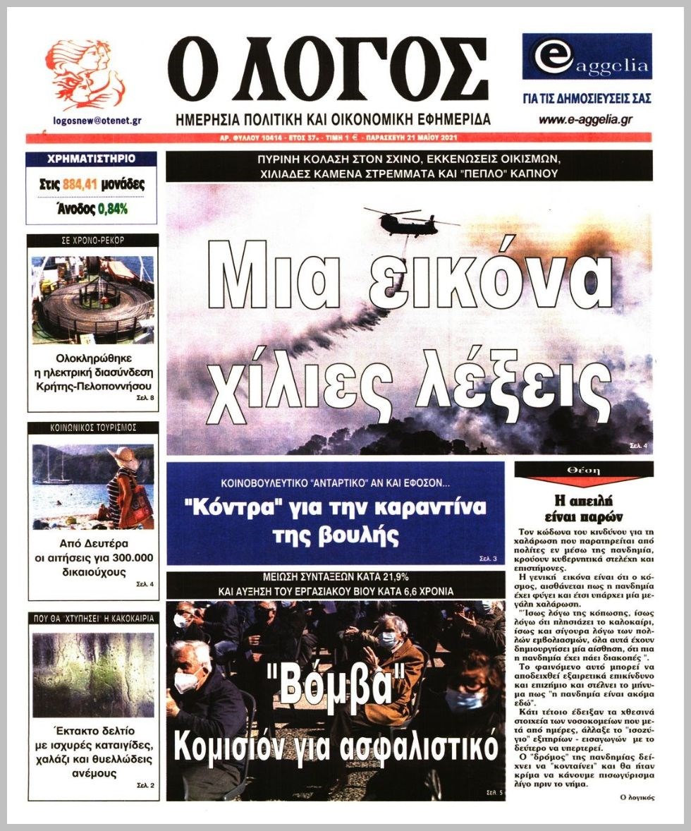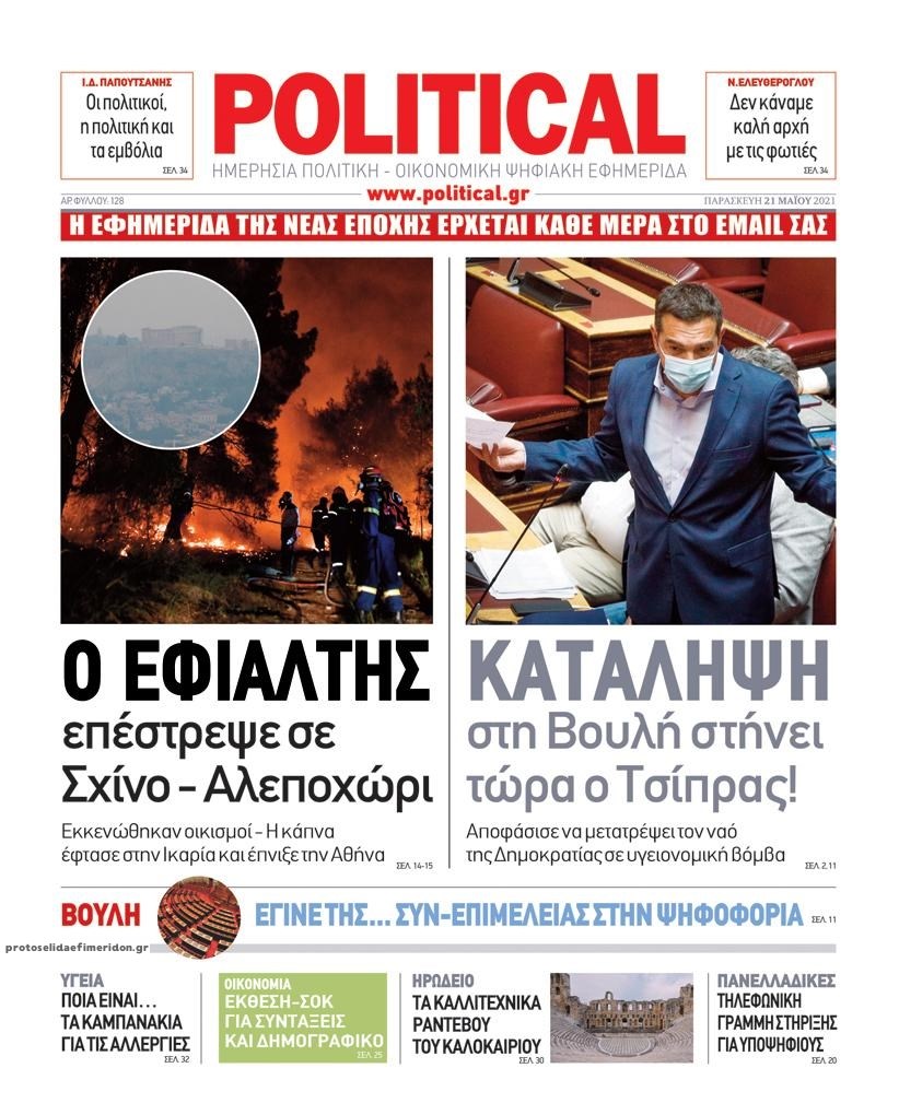 Οι πολιτικές εφημερίδες 21/5/2021 Διονύσης Νίκκας 06:15, Παρασκευή 21 Μαΐου 2021 Media Διαβάστε τα πρωτοσέλιδα των πολιτικών εφημερίδων… ΕΦΗΜΕΡΙΔΕΣ ΠΡΩΤΟΣΕΛΙΔΑ Μοιράσου το: σχολίασε κι εσύ (0 σχόλια) Ακολουθήστε το enikos.gr στο Google News και μάθετε πρώτοι όλες τις ειδήσεις Δείτε όλες τις τελευταίες ειδήσεις από την Ελλάδα και τον Κόσμο στο enikos.gr Ειδήσεις Ροή Ειδήσεων 1 ώρα πριν Υπόθεση Έπσταϊν: Το Υπουργείο Δικαιοσύνης δημοσιοποίησε μια σειρά από εξαιρετικά επεξεργασμένα αρχεία – «Λείπουν τα πιο σημαντικά έγγραφα», λένε οι Δημοκρατικοί 3 ώρες πριν Σαρωτικοί οι έλεγχοι στους δρόμους ενόψει εορτών – Μπλόκα της τροχαίας σε κεντρικές αρτηρίες της Αττικής 1 ώρα πριν ΟΝΕΧ – MEGATUGS: Ξεκίνησε η ναυπήγηση ρυμουλκών στην Ελλάδα – Προθάλαμος πολεμικών πλοίων – Δείτε φωτογραφίες και βίντεο 1 ώρα πριν Καιρός: Αλλαγή σκηνικού σήμερα με βροχές και πτώση της θερμοκρασίας – Οι προβλέψεις των μετεωρολόγων για τα Χριστούγεννα 10 ώρες πριν Χριστούγεννα στα μπλόκα: Επιμένουν στις κινητοποιήσεις τους οι αγρότες – Ανοίγουν τα διόδια το Σαββατοκύριακο 3 ώρες πριν Αυγά: Πόσα μπορείτε να τρώτε την ημέρα με ασφάλεια για μέγιστη πρόσληψη πρωτεΐνης 3 ώρες πριν Τα ζώδια σήμερα, Σάββατο 20 Δεκεμβρίου: Παρθένοι, το σύμπαν σας δίνει το κλειδί 3 ώρες πριν Οπτική ψευδαίσθηση: Μόνο αν είσαι ο Σέρλοκ Χολμς θα βρεις τον αριθμό «87» σε 7 δευτερόλεπτα 41 λεπτά πριν Αρχαιολόγοι ανακάλυψαν σε χωράφι απεικόνιση 600 ετών ενός Αγίου – Τα στοιχεία που δείχνουν ότι μαρτύρησε 3 λεπτά πριν Αμαλία Κωστοπούλου: Το μήνυμα για το χειρουργείο στο γόνατο – «Αυτός ο τραυματισμός μού στέρησε πολλά…» 10 λεπτά πριν Ο «χάρτης» με τις αυξήσεις και τις φοροελαφρύνσεις του 2026 – Ποιοι και πόσα κερδίζουν 18 λεπτά πριν Η τέλεια συνταγή για cookies με κομμάτια σοκολάτας 26 λεπτά πριν MyHealth App: Τα στοιχεία για τον Προσωπικό Βοηθό Υγείας Πολίτη – Τι ερωτήματα έγιναν μέσα σε 7 ημέρες 34 λεπτά πριν Τρομεροί γονείς: Η Μαρία Καβογιάννη εισβάλλει στο σπίτι της οικογένειας Στεφανίδη ENIKOS NETWORK Το τεστ των 10 δευτερολέπτων που μπορεί να προβλέψει το προσδόκιμο ζωής σας – Τι λέει ειδικός του Cleveland Επιλέξτε καρέκλα για να μάθετε ποια είναι τα κρυφά χαρακτηριστικά σας – Τι αποκάλυψε για εσάς αυτό το τεστ προσωπικότητας; Mega χριστουγεννιάτικη φορολοταρία: «Κλείδωσε» η ημερομηνία για την κλήρωση – Ερωτήσεις και απαντήσεις Αναστολή μέτρων αναγκαστικής εκτέλεσης για κτηνοτρόφους που πλήττονται από την ευλογιά των αιγοπροβάτων Χαρτογραφώντας το «σημείο χωρίς επιστροφή»: Για πρώτη φορά αποκαλύπτεται με λεπτομέρεια το ακανθώδες όριο της ατμόσφαιρας τ... Η Google καταργεί τη λειτουργία «dark web report» – Πώς θα μπορούν οι χρήστες να διαγράφουν τα δεδομένα τους περισσότερα 08:14 , Σάββατο 20 Δεκεμβρίου 2025 Τρομεροί γονείς: Η Μαρία Καβογιάννη εισβάλλει στο σπίτι της οικογένειας Στεφανίδη Όσα θα δούμε στο νέο διπλό επεισόδιο της σειράς «Τρομεροί γονείς», σήμερα Σάββατο 20 Δεκεμβρίο... 05:48 , Σάββατο 20 Δεκεμβρίου 2025 Οι οικονομικές εφημερίδες 20/12/2025 Διαβάστε τα πρωτοσέλιδα από τις οικονομικές εφημερίδες, σήμερα 20/12/2025. 05:43 , Σάββατο 20 Δεκεμβρίου 2025 Οι αθλητικές εφημερίδες 20/12/2025 Διαβάστε τα πρωτοσέλιδα από τις αθλητικές εφημερίδες, σήμερα 20/12/2025. 05:38 , Σάββατο 20 Δεκεμβρίου 2025 Οι πολιτικές εφημερίδες 20/12/2025 Διαβάστε τα πρωτοσέλιδα από τις πολιτικές εφημερίδες, σήμερα 20/12/2025. ΤΕΛΕΥΤΑΙΕΣ ΕΙΔΗΣΕΙΣ 3 λεπτά πριν Αμαλία Κωστοπούλου: Το μήνυμα για το χειρουργείο στο... 10 λεπτά π
