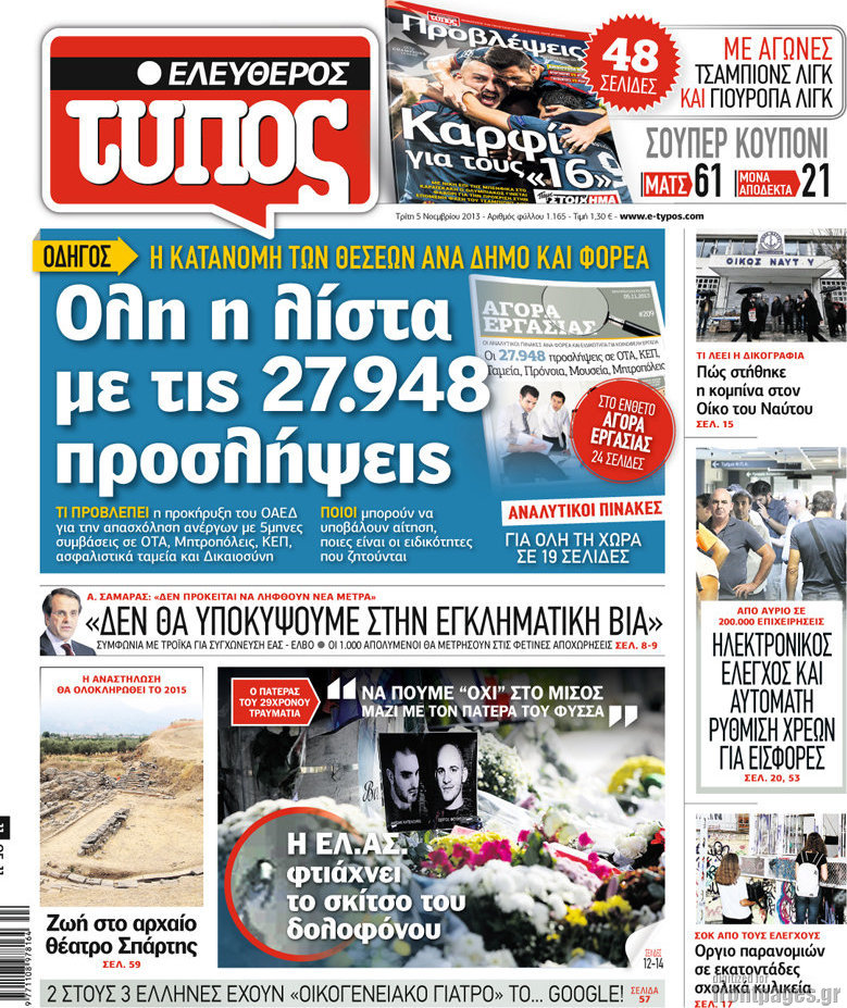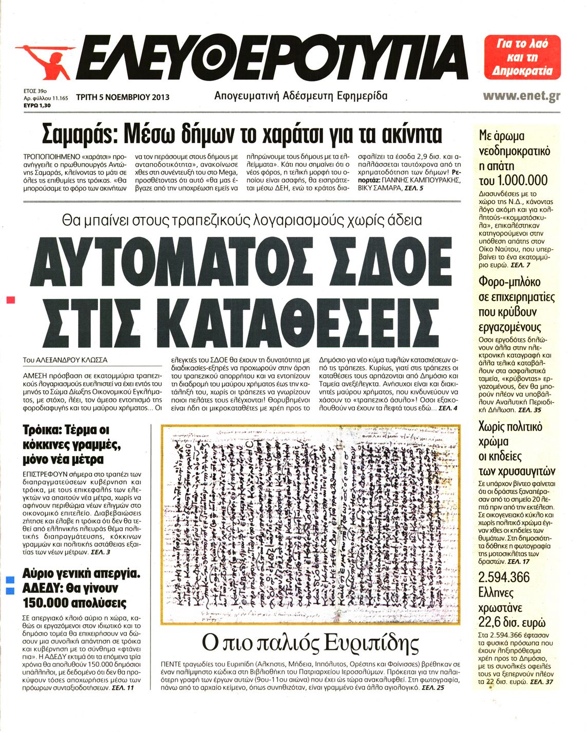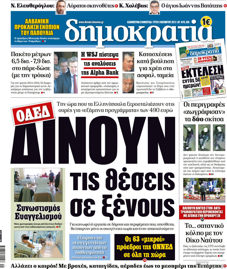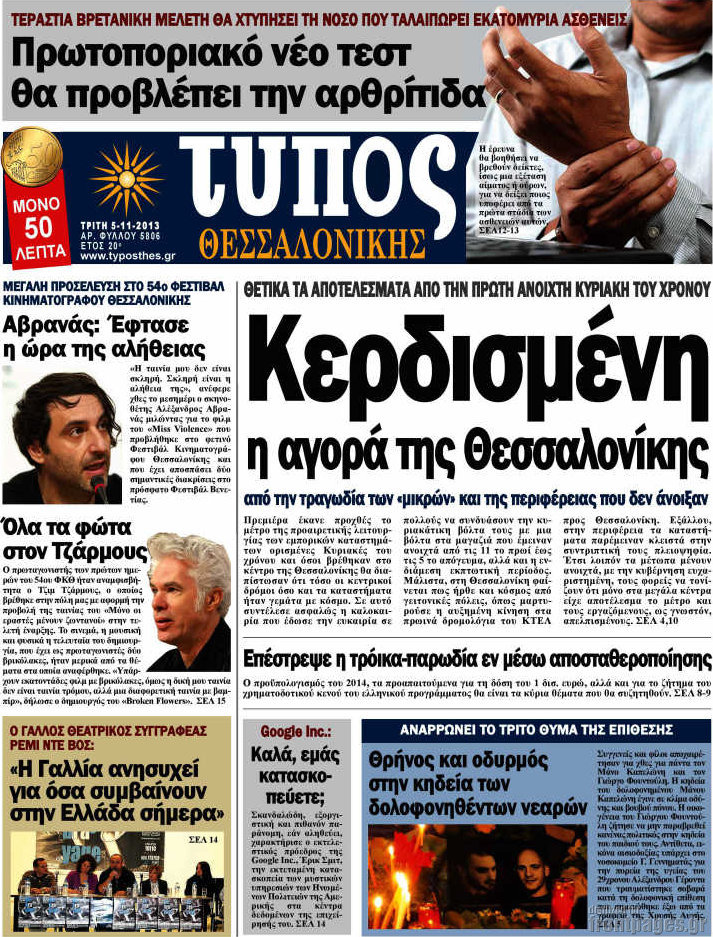 Οι πολιτικές εφημερίδες Enikos Newsroom 08:35, Τρίτη 05 Νοεμβρίου 2013 Media Οι πολιτικές εφημερίδες Διαβάστε τα πρωτοσέλιδα των πολιτικών εφημερίδων: ΕΦΗΜΕΡΙΔΕΣ ΠΟΛΙΤΙΚΕΣ ΕΦΗΜΕΡΙΔΕΣ ΠΡΩΤΟΣΕΛΙΔΑ Μοιράσου το: σχολίασε κι εσύ (0 σχόλια) Ακολουθήστε το enikos.gr στο Google News και μάθετε πρώτοι όλες τις ειδήσεις Δείτε όλες τις τελευταίες ειδήσεις από την Ελλάδα και τον Κόσμο στο enikos.gr Ειδήσεις Ροή Ειδήσεων 40 λεπτά πριν Κύκλωμα διακίνησης ναρκωτικών σε σχολεία: Βίντεο ντοκουμέντο από τα βασανιστήρια στους ανήλικους – Συζητούσαν για το πώς θα κάνουν «ξέπλυμα χρήματος» 3 ώρες πριν Αγρότες: Σήκωσαν τις μπάρες στα διόδια των Αφιδνών – ΦΩΤΟ και ΒΙΝΤΕΟ 35 λεπτά πριν Αιματηρό επεισόδιο στον Άγιο Παντελεήμονα – Δύο τραυματίες, αναζητείται ο δράστης 4 ώρες πριν Κωνσταντίνος Ανεστίδης: «Είμαι αθώος, είμαι καθαρός σαν αστραπή και η αστραπή θα πέσει στο κεφάλι τους» – ΒΙΝΤΕΟ 2 ώρες πριν Αποχώρησε από το Κίνημα Δημοκρατίας η Κυριακή Μάλαμα – Οι αιχμές για τον Στέφανο Κασσελάκη 30 λεπτά πριν Ύπνος: Τι είναι ο «κανόνας 3-3-3» που χρησιμοποιεί ένας γιατρός για να ξεχωρίσει την κόπωση από την αϋπνία 3 ώρες πριν Είσοδος σπιτιού: Πώς να οργανώσετε το χώρο πριν έρθουν οι καλεσμένοι σας – Η ρουτίνα 3 βημάτων 1 ώρα πριν Αριθμολογία: Οι άνθρωποι που έχουν γεννηθεί αυτές τις 4 ημερομηνίες, είναι οι πιο πιστοί και αφοσιωμένοι σύντροφοι 2 ημέρες πριν Enerwave: Το νέο «ρεύμα» στη λιανική ενέργειας που αλλάζει την εμπειρία του καταναλωτή 4 λεπτά πριν Ελένη Βουλγαράκη για Φώτη Ιωαννίδη: «Δεν είναι ωραία η σχέση από απόσταση, φέτος τα Χριστούγεννα θα είμαι δίπλα του» 14 λεπτά πριν Κασσελάκης για παραίτηση Μάλαμα: «Η πορεία μας δεν θα καθοριστεί από μεμονωμένα πρόσωπα, μηχανισμούς και προσωπικές ατζέντες» 22 λεπτά πριν Κλήρωση ΤΖΟΚΕΡ 21/12/2025: Αυτοί είναι οι τυχεροί αριθμοί 30 λεπτά πριν Ύπνος: Τι είναι ο «κανόνας 3-3-3» που χρησιμοποιεί ένας γιατρός για να ξεχωρίσει την κόπωση από την αϋπνία 35 λεπτά πριν Αιματηρό επεισόδιο στον Άγιο Παντελεήμονα – Δύο τραυματίες, αναζητείται ο δράστης ENIKOS NETWORK Οι γυναίκες έχουν βρει μια νέα απόλαυση στην κρεβατοκάμαρα που οι περισσότεροι άνδρες αγνοούν Christmas glow: 5 χρυσές συμβουλές για επιδερμίδα που λάμπει από ομορφιά τα Χριστούγεννα Νέο έτος ρεκόρ για τον ελληνικό τουρισμό το 2025: «Είμαστε μέσα στους 10 πλέον επισκέψιμους προορισμούς παγκοσμίως» λέει η ... Τιμές καυσίμων: Πόσο θα πληρώσουν οι εκδρομείς των Χριστουγέννων – Το κόστος μετακινήσεων σε δημοφιλείς προορισμούς Χαρτογραφώντας το «σημείο χωρίς επιστροφή»: Για πρώτη φορά αποκαλύπτεται με λεπτομέρεια το ακανθώδες όριο της ατμόσφαιρας τ... Η Google καταργεί τη λειτουργία «dark web report» – Πώς θα μπορούν οι χρήστες να διαγράφουν τα δεδομένα τους περισσότερα 21:30 , Κυριακή 21 Δεκεμβρίου 2025 Ο Δικαστής: Στα χέρια της Αστυνομίας βίντεο, που ανατρέπει όλα τα δεδομένα – Στενεύει ο κλοιός γύρω από τον Δικαστή Καταιγιστικές εξελίξεις στο τελευταίο επεισόδιο της χρονιάς της σειράς “Ο Δικαστής”... 17:18 , Κυριακή 21 Δεκεμβρίου 2025 «Η Μεγάλη Χίμαιρα»: Μάγεψε το κοινό κατά την avant-première της προβολής της Την Πρωτοχρονιά (Πέμπτη 1η Ιανουαρίου 2026) στο ERTFLIX θα γίνει η πρεμιέρα της πολυαναμενόμεν... 15:08 , Κυριακή 21 Δεκεμβρίου 2025 Μια νύχτα μόνο: Η Αρετή και ο Οδυσσέας έρχονται και πάλι κοντά Το νέο επεισόδιο της δραματικής σειράς του MEGA «Μια νύχτα μόνο», θα προβληθεί απόψε Κυριακή 2... 14:24 , Κυριακή 21 Δεκεμβρίου 2025 IQ 160: Ο φάκελος με το τεστ πατρότητας ανοίγ