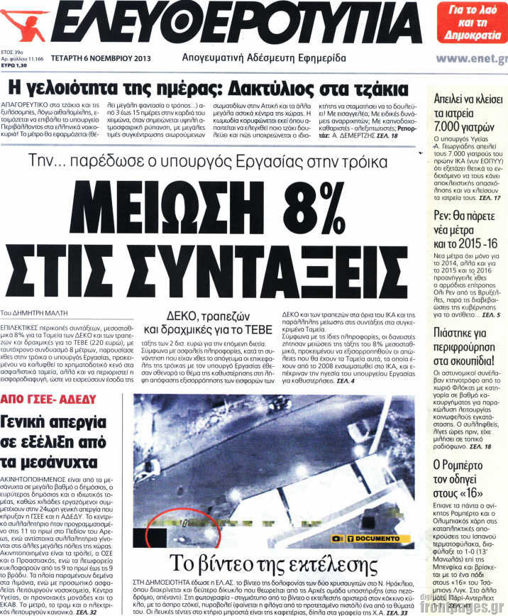 Οι πολιτικές εφημερίδες Enikos Newsroom 08:52, Τετάρτη 06 Νοεμβρίου 2013 Media Οι πολιτικές εφημερίδες Διαβάστε τα πρωτοσέλιδα των πολιτικών εφημερίδων: ΕΦΗΜΕΡΙΔΕΣ ΠΟΛΙΤΙΚΕΣ ΕΦΗΜΕΡΙΔΕΣ ΠΡΩΤΟΣΕΛΙΔΑ Μοιράσου το: σχολίασε κι εσύ (0 σχόλια) Ακολουθήστε το enikos.gr στο Google News και μάθετε πρώτοι όλες τις ειδήσεις Δείτε όλες τις τελευταίες ειδήσεις από την Ελλάδα και τον Κόσμο στο enikos.gr Ειδήσεις Ροή Ειδήσεων 1 ώρα πριν Αγρότες από το μπλόκο Νίκαιας κλείνουν τη Δευτέρα τις σήραγγες των Τεμπών για τα φορτηγά – Τι αποφάσισαν 5 ώρες πριν Μητσοτάκης σε αγρότες: Είμαστε ανοιχτοί στον διάλογο, αλλά όχι στο παράλογο – Η διεκδίκηση αιτημάτων οφείλει να γίνεται με σεβασμό στο κοινωνικό σύνολο 4 ώρες πριν Κηφισιά: Δύο συλλήψεις για ληστεία με λεία 180.000 ευρώ – Βίντεο ντοκουμέντα από τη δράση των συλληφθέντων 38 λεπτά πριν Ζελένσκι: Τάχθηκε σήμερα υπέρ της διεξαγωγής ευρύτερων διαβουλεύσεων με Ευρωπαίους εταίρους 2 ώρες πριν Θεσσαλονίκη: Με Αγιοβασίληδες γέμισε ο Θερμαϊκός στο 5ο Santa SUP 5 ώρες πριν Τα άστρα ευνοούν σκανδαλωδώς 4 ζώδια – «Εμφανίζονται ξαφνικά ευκαιρίες γιατί αποφασίζετε να αφήσετε πίσω το παρελθόν» 4 ώρες πριν Προπονήτρια γυμναστικής που έχασε 9 κιλά αποκαλύπτει: «Αυτοί είναι οι 5 παράγοντες που εμποδίζουν την απώλεια βάρους» 3 ώρες πριν Οι άνθρωποι που στρώνουν το κρεβάτι τους κάθε πρωί, διαθέτουν αυτές τις 8 κρυφές δυνάμεις 1 ημέρα πριν Enerwave: Το νέο «ρεύμα» στη λιανική ενέργειας που αλλάζει την εμπειρία του καταναλωτή 8 λεπτά πριν Ένα πλάσμα στα βάθη της θάλασσας απορροφά άνθρακα από την ατμόσφαιρα – «Δεν είχαμε ιδέα για την ύπαρξή του» 9 λεπτά πριν Στο «μικροσκόπιο» των Αρχών ο αγροτοσυνδικαλιστής Κωνσταντίνος Ανεστίδης – Υπό διερεύνηση για επιδοτήσεις 122.000 ευρώ 18 λεπτά πριν Όλυμπος: Εντοπίστηκε ο Μολδαβός ορειβάτης που είχε εγκλωβιστεί πάνω από το καταφύγιο Πετρόστρουγκα 25 λεπτά πριν Πάτρα: Συμμορία απατεώνων άρπαξε από πολίτες περισσότερα από 125.000 ευρώ σε μετρητά και χρυσές λίρες – Στο κόλπο και ενεχυροδανειστήρια 33 λεπτά πριν Φωτιά σε αποθήκη εργοστασίου στου Ρέντη ENIKOS NETWORK Ο εγκέφαλός μας ξεπερνά ακόμα σε εξυπνάδα το ΑΙ – Ποιο είναι αυτό στο οποίο είμαστε καλύτεροι Φοράτε ψηλοτάκουνα παπούτσια; Ποδίατροι συμβουλεύουν πόσο ψηλά επιτρέπεται να είναι και πώς να τα επιλέξετε IRIS: Διπλασιάζεται το όριο μεταφοράς χρημάτων μεταξύ ιδιωτών – Οι νέες αλλαγές και πότε θα εφαρμοστούν Η επόμενη ημέρα για τις ελληνικές τράπεζες -Τι λένε κορυφαία στελέχη του κλάδου Χαρτογραφώντας το «σημείο χωρίς επιστροφή»: Για πρώτη φορά αποκαλύπτεται με λεπτομέρεια το ακανθώδες όριο της ατμόσφαιρας τ... Η Google καταργεί τη λειτουργία «dark web report» – Πώς θα μπορούν οι χρήστες να διαγράφουν τα δεδομένα τους περισσότερα 14:24 , Κυριακή 21 Δεκεμβρίου 2025 IQ 160: Ο φάκελος με το τεστ πατρότητας ανοίγει, απόψε στις 21:00 στο Star Ανατρεπτικό το νέο διπλό επεισόδιο της σειράς “IQ 160” στις 21:00 στο Star. Ο Τηλέ... 09:43 , Κυριακή 21 Δεκεμβρίου 2025 Το λάθος στην ταινία Die Hard που άφησε άναυδους τους θαυμαστές του Μπρους Γουίλις Ένας φανατικός των ταινιών άφησε άναυδους τους θαυμαστές του Die Hard, επισημαίνοντας τρία βασ... 08:13 , Κυριακή 21 Δεκεμβρίου 2025 Άγιος έρωτας: Ένας καταστροφικός σεισμός χτυπά τη Στέρνα Καταιγιστικές είναι οι εξελίξεις στα δυο τελευταία, συγκλονιστικά επεισόδια του 2025 της σειρά... 08:00 , Κυριακή 21 Δεκεμβρίου 2025 Σήμερα με τη Realnews: Ό,τι και αν αγοράσεις, σκανάρεις και κερδίζεις! Σήμερα με τη Realnews: Ό,τι