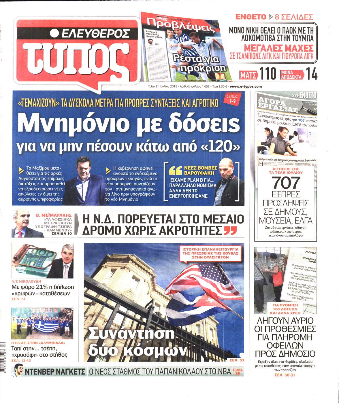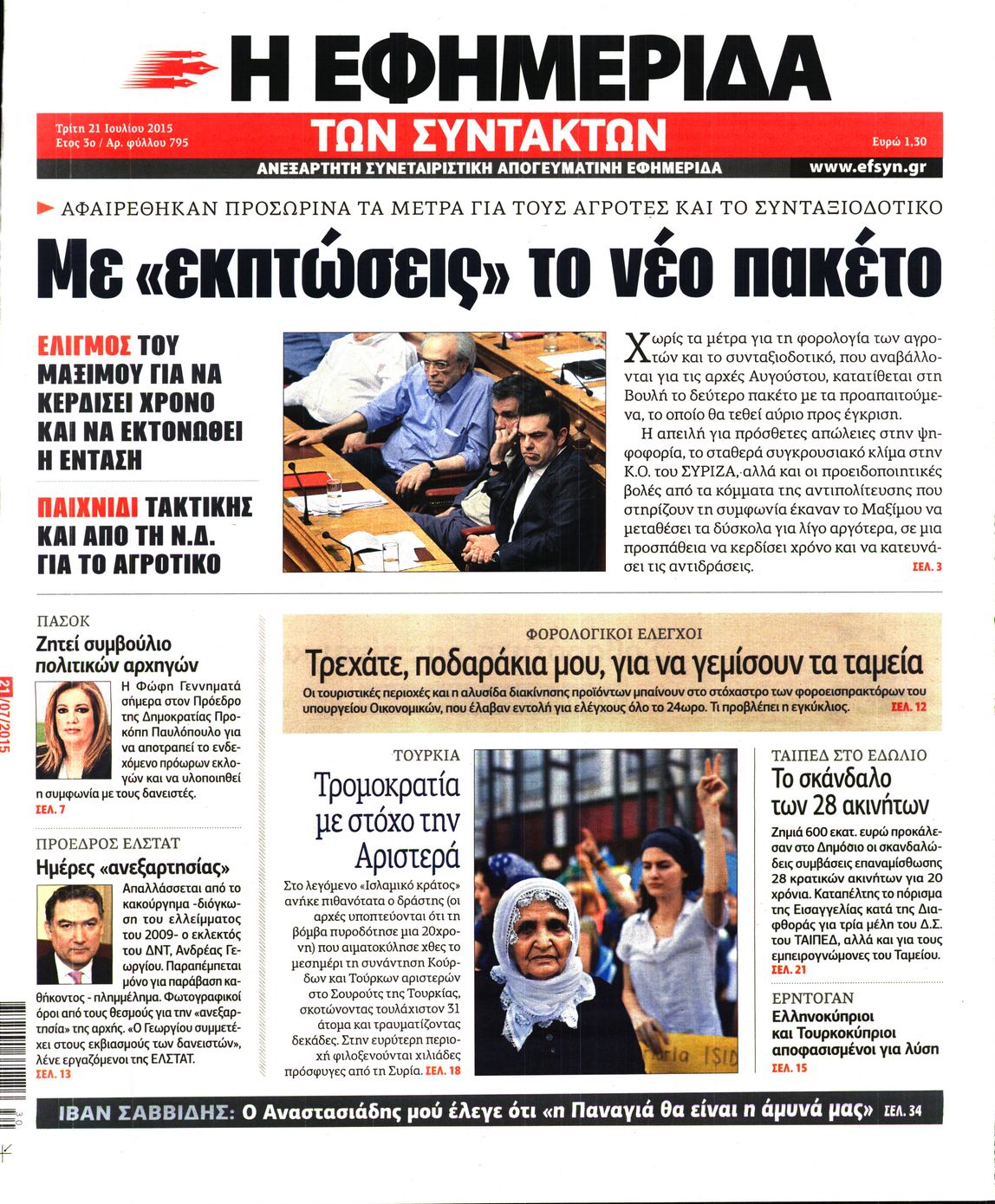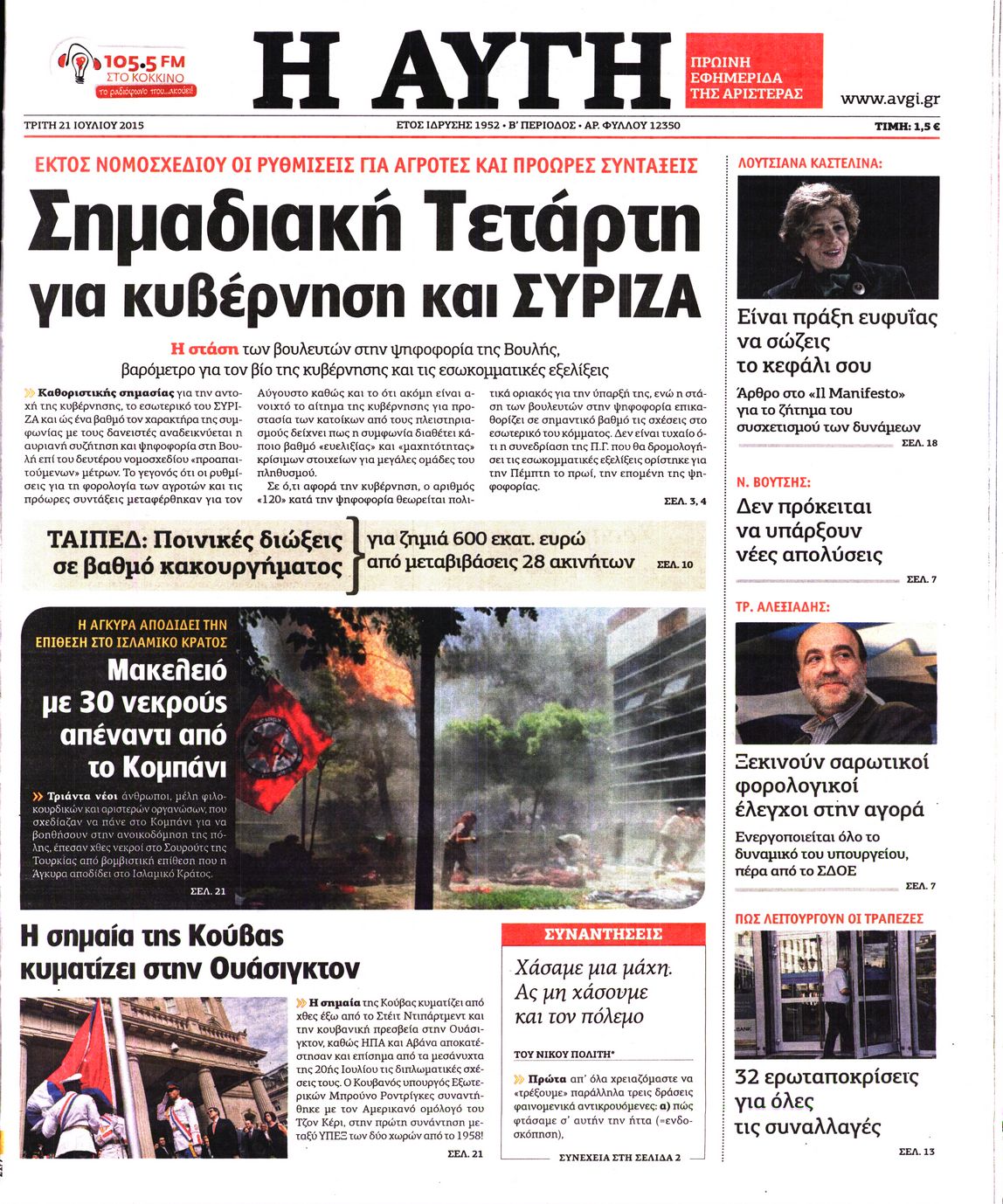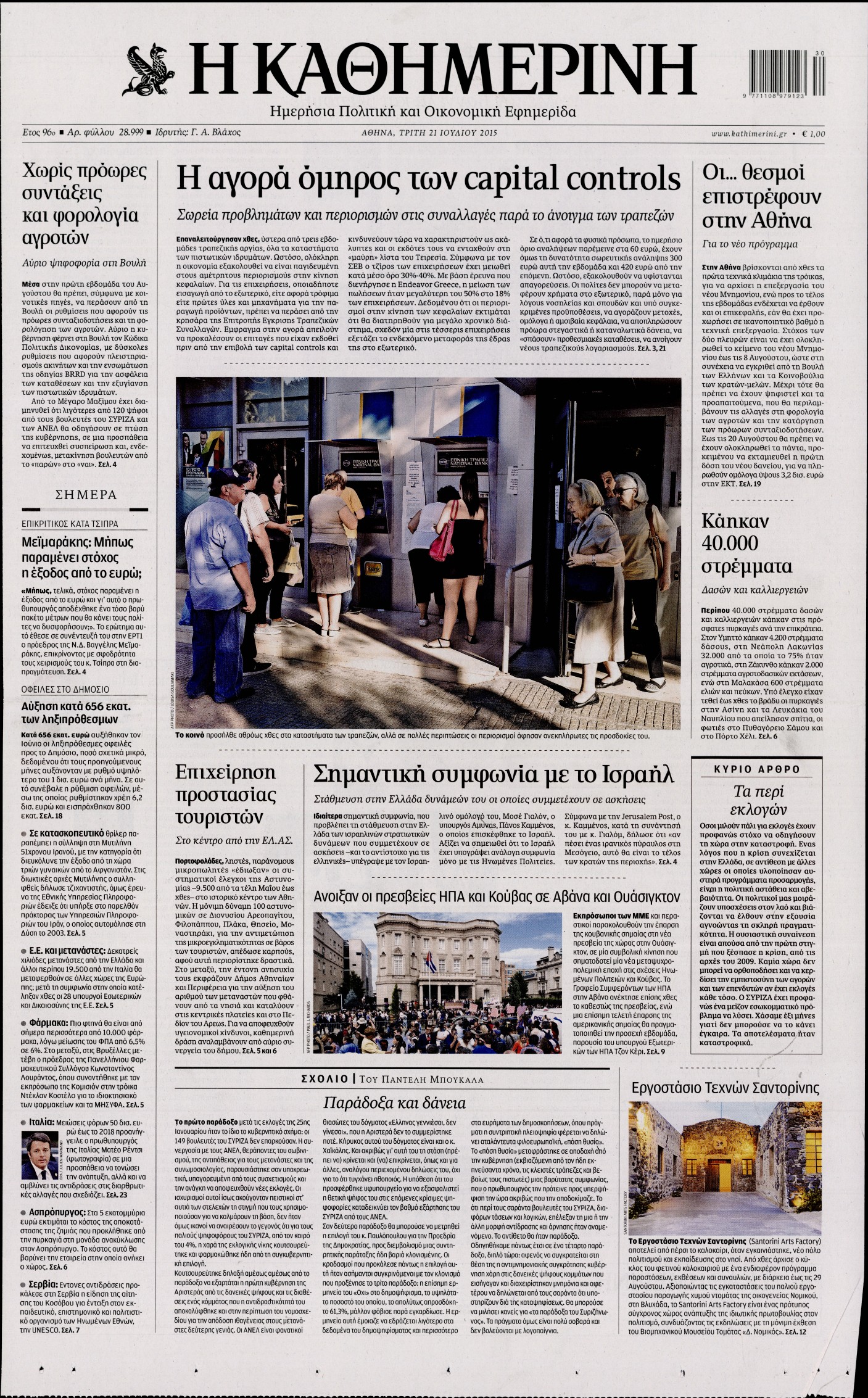Οι πολιτικές εφημερίδες 21/7/2015 Enikos Newsroom 07:22, Τρίτη 21 Ιουλίου 2015 Media Διαβάστε τα σημερινά πρωτοσέλιδα των πολιτικών εφημερίδων. ΕΦΗΜΕΡΙΔΕΣ ΠΟΛΙΤΙΚΕΣ ΕΦΗΜΕΡΙΔΕΣ ΠΡΩΤΟΣΕΛΙΔΑ Μοιράσου το: σχολίασε κι εσύ (0 σχόλια) Ακολουθήστε το enikos.gr στο Google News και μάθετε πρώτοι όλες τις ειδήσεις Δείτε όλες τις τελευταίες ειδήσεις από την Ελλάδα και τον Κόσμο στο enikos.gr Ειδήσεις Ροή Ειδήσεων 4 ώρες πριν Από το Ορμένιο ως τα Μάλγαρα κι από τη Σιάτιστα μέχρι τη Νίκαια: Μπλόκα σε όλη την Ελλάδα – Το Σάββατο ανοίγουν τα διόδια οι αγρότες 1 ώρα πριν Εμπλοκή και αερομαχίες με οπλισμένα τουρκικά F-16 στο Αιγαίο 3 ώρες πριν Αττική: Θρίλερ με νεκρό βρέφος 5 μηνών – Κοιμόταν στο ίδιο κρεβάτι με τους γονείς του 1 ώρα πριν Πούτιν: «Ναι, είμαι ερωτευμένος» – Βίντεο από τη σπάνια προσωπική παραδοχή του 3 ώρες πριν Μεσόγειος: Η διαδρομή του ρωσικού τάνκερ «Qendil» και η στοχευμένη επίθεση της Ουκρανίας με drone – Ο Πούτιν προειδοποίησε για αντίποινα 5 ώρες πριν Τα 5 ζώδια που ευνοούνται στην ερωτική ζωή τους την επόμενη εβδομάδα – «Η ενέργεια του Αιγόκερου φέρνει αγάπη και σταθερότητα» 6 ώρες πριν Αυτό το έξυπνο μαθηματικό κόλπο θα μπορούσε να αλλάξει τον τρόπο με τον οποίο οι επιστήμονες μελετούν τους σεισμούς 2 ώρες πριν Μήπως έχετε χάσει τον εαυτό σας στη σχέση σας; 7 «αθόρυβες» υποχωρήσεις που μάλλον κάνατε, χωρίς να το συνειδητοποιήσετε 4 ώρες πριν Κουίζ για την παλιά Αθήνα: Αναγνωρίζετε την περιοχή; Έχετε περάσει 100% από εκεί 10 λεπτά πριν Μπαράκ Ομπάμα: Τα βιβλία, οι ταινίες και τα τραγούδια που ξεχώρισε το 2025 – Πλήρης λίστα 15 λεπτά πριν Don’t Forget The Lyrics: Η Έλλη Κοκκίνου υποδέχεται 4 παίκτες που θα κάνουν τα πάντα για να μη χάσουν ούτε… μισή λέξη από τους στίχους 21 λεπτά πριν Πλεύρης στον ΑΝΤ1: Η βασική πολιτική που ψηφίστηκε από τους υπουργούς Μετανάστευσης είναι η δημιουργία κέντρων κράτησης μεταναστών στην Αφρική – ΒΙΝΤΕΟ 26 λεπτά πριν Η εξομολόγηση της Νίκης Σερέτη: «Δεν κρύβω ότι ήταν πάρα πολύ δύσκολο όλο αυτό που βίωσα» 31 λεπτά πριν Αγρότες: Κλειστό ξανά το ρεύμα εισόδου στα Μάλγαρα – Άνοιξαν τον κόμβο της Χαλκηδόνας ENIKOS NETWORK Έχετε πραγματικά μεγάλη καρδιά; 10 χαρακτηριστικά όσων έχουν καλοσύνη «Η σούπερ» γρίπη εξαπλώνεται στην Ευρώπη-Στοιχεία από το ECDC για την αποτελεσματικότητα του εμβολίου Επίδομα παιδιού: Πότε ανοίγει ξανά η πλατφόρμα για τις αιτήσεις Προκήρυξη ΑΣΕΠ για 397 μόνιμες προσλήψεις στο Δημόσιο: Βγήκαν τα προσωρινά αποτελέσματα – Πότε αρχίζει η υποβολή ενστάσεων Χαρτογραφώντας το «σημείο χωρίς επιστροφή»: Για πρώτη φορά αποκαλύπτεται με λεπτομέρεια το ακανθώδες όριο της ατμόσφαιρας τ... Η Google καταργεί τη λειτουργία «dark web report» – Πώς θα μπορούν οι χρήστες να διαγράφουν τα δεδομένα τους περισσότερα 20:37 , Παρασκευή 19 Δεκεμβρίου 2025 Don’t Forget The Lyrics: Η Έλλη Κοκκίνου υποδέχεται 4 παίκτες που θα κάνουν τα πάντα για να μη χάσουν ούτε… μισή λέξη από τους στίχους Το «Don’t Forget The Lyrics» επιστρέφει απόψε, Παρασκευή 19 Δεκεμβρίου, στις 21:00 με νέο επει... 19:31 , Παρασκευή 19 Δεκεμβρίου 2025 GNTM: Απόψε ο μεγάλος τελικός για τους 4 φιναλίστ Έπειτα από μήνες γεμάτους μόδα, δημιουργία και έντονες αναμετρήσεις, το GNTM 2025 κορυφώνεται,... 18:11 , Παρασκευή 19 Δεκεμβρίου 2025 Το σόι σου: Ο Άρης έρχεται στην Ελλάδα για τις γιορτές των Χριστουγέννων – Τι θα δούμε στο αποψινό εορταστικό επεισόδιο Ένα απολαυστικό, εορταστικό επεισόδιο της σειράς “Το σόι σου”, γεμάτο ευτράπελα αλ... 15:15 , Παρασκευή 19 Δεκεμβρίου 2025 Τη