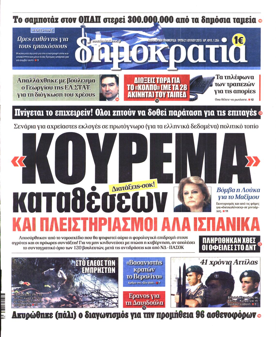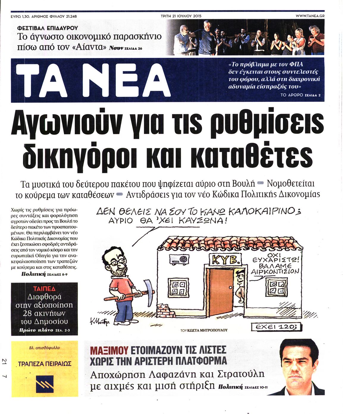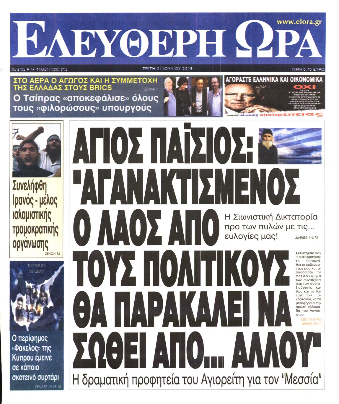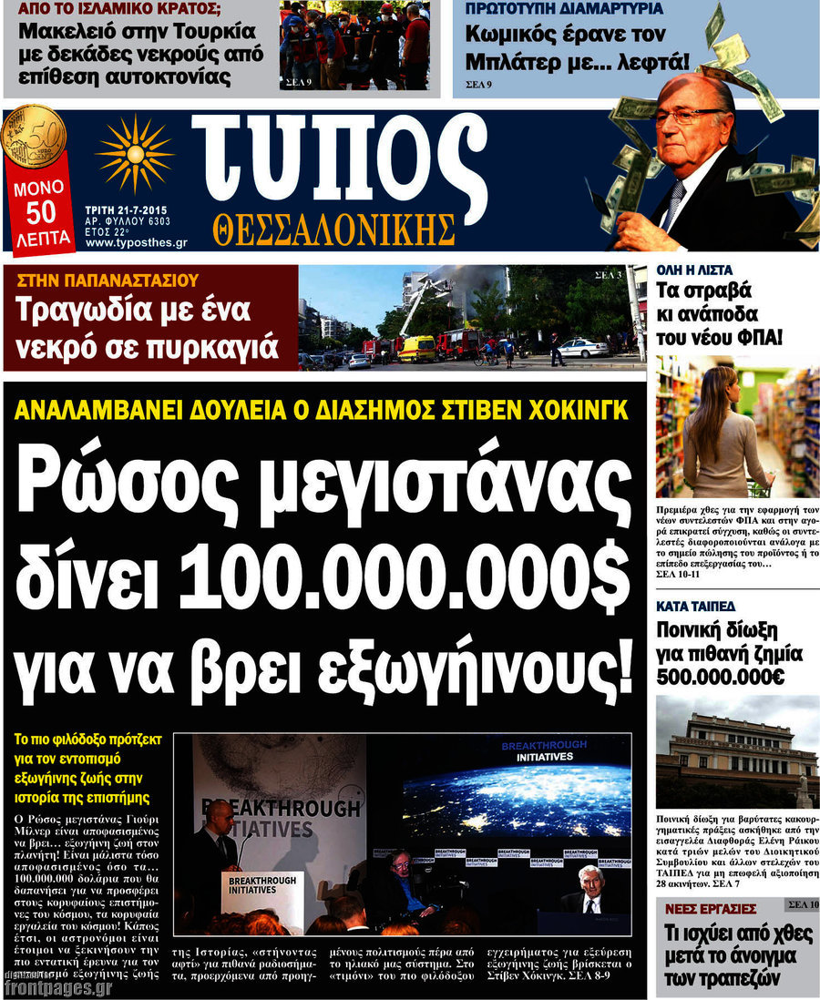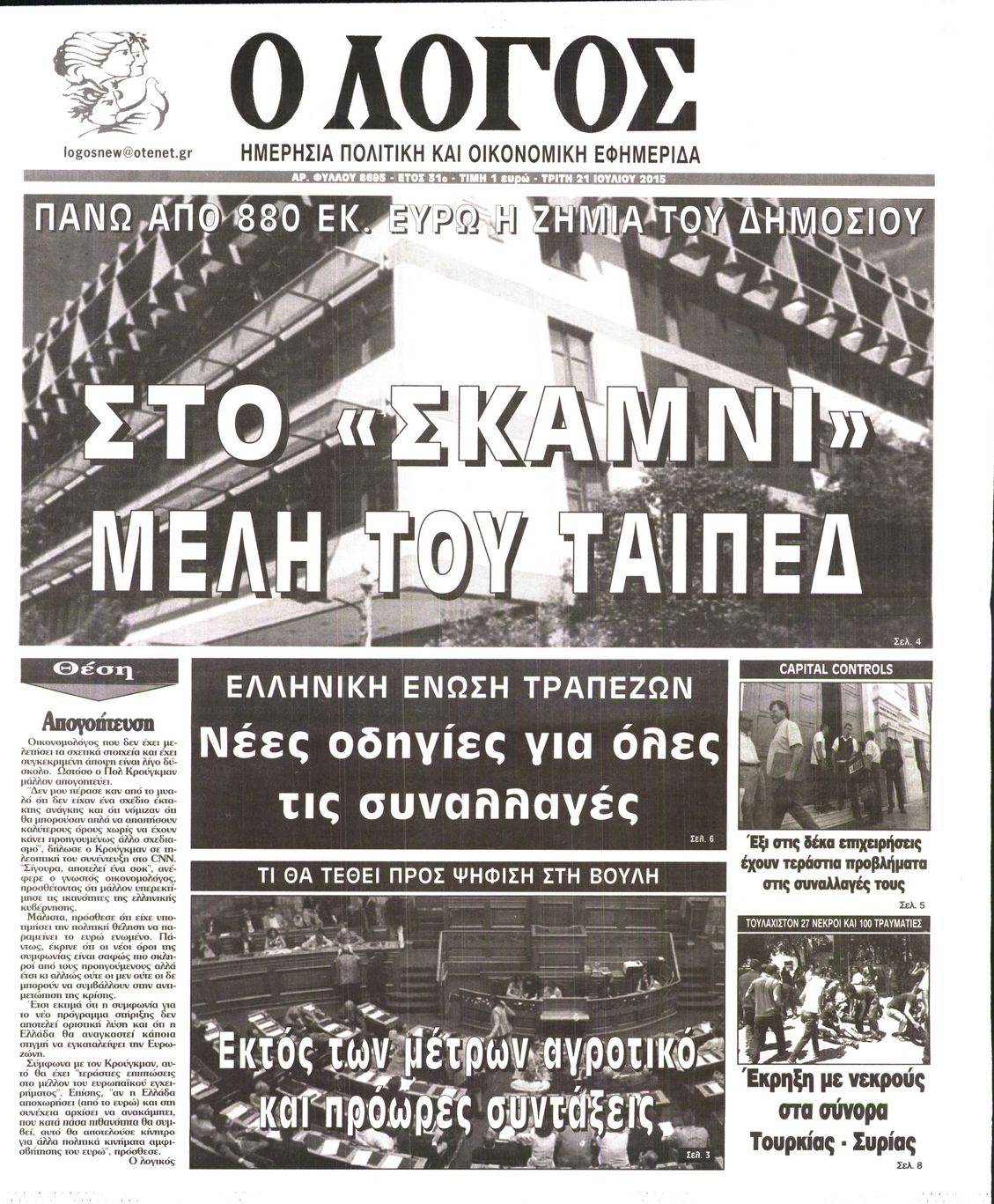 Οι πολιτικές εφημερίδες 21/7/2015 Enikos Newsroom 07:22, Τρίτη 21 Ιουλίου 2015 Media Διαβάστε τα σημερινά πρωτοσέλιδα των πολιτικών εφημερίδων. ΕΦΗΜΕΡΙΔΕΣ ΠΟΛΙΤΙΚΕΣ ΕΦΗΜΕΡΙΔΕΣ ΠΡΩΤΟΣΕΛΙΔΑ Μοιράσου το: σχολίασε κι εσύ (0 σχόλια) Ακολουθήστε το enikos.gr στο Google News και μάθετε πρώτοι όλες τις ειδήσεις Δείτε όλες τις τελευταίες ειδήσεις από την Ελλάδα και τον Κόσμο στο enikos.gr Ειδήσεις Ροή Ειδήσεων 4 ώρες πριν Από το Ορμένιο ως τα Μάλγαρα κι από τη Σιάτιστα μέχρι τη Νίκαια: Μπλόκα σε όλη την Ελλάδα – Το Σάββατο ανοίγουν τα διόδια οι αγρότες 1 ώρα πριν Εμπλοκή και αερομαχίες με οπλισμένα τουρκικά F-16 στο Αιγαίο 3 ώρες πριν Αττική: Θρίλερ με νεκρό βρέφος 5 μηνών – Κοιμόταν στο ίδιο κρεβάτι με τους γονείς του 1 ώρα πριν Πούτιν: «Ναι, είμαι ερωτευμένος» – Βίντεο από τη σπάνια προσωπική παραδοχή του 3 ώρες πριν Μεσόγειος: Η διαδρομή του ρωσικού τάνκερ «Qendil» και η στοχευμένη επίθεση της Ουκρανίας με drone – Ο Πούτιν προειδοποίησε για αντίποινα 5 ώρες πριν Τα 5 ζώδια που ευνοούνται στην ερωτική ζωή τους την επόμενη εβδομάδα – «Η ενέργεια του Αιγόκερου φέρνει αγάπη και σταθερότητα» 6 ώρες πριν Αυτό το έξυπνο μαθηματικό κόλπο θα μπορούσε να αλλάξει τον τρόπο με τον οποίο οι επιστήμονες μελετούν τους σεισμούς 2 ώρες πριν Μήπως έχετε χάσει τον εαυτό σας στη σχέση σας; 7 «αθόρυβες» υποχωρήσεις που μάλλον κάνατε, χωρίς να το συνειδητοποιήσετε 4 ώρες πριν Κουίζ για την παλιά Αθήνα: Αναγνωρίζετε την περιοχή; Έχετε περάσει 100% από εκεί 10 λεπτά πριν Μπαράκ Ομπάμα: Τα βιβλία, οι ταινίες και τα τραγούδια που ξεχώρισε το 2025 – Πλήρης λίστα 15 λεπτά πριν Don’t Forget The Lyrics: Η Έλλη Κοκκίνου υποδέχεται 4 παίκτες που θα κάνουν τα πάντα για να μη χάσουν ούτε… μισή λέξη από τους στίχους 21 λεπτά πριν Πλεύρης στον ΑΝΤ1: Η βασική πολιτική που ψηφίστηκε από τους υπουργούς Μετανάστευσης είναι η δημιουργία κέντρων κράτησης μεταναστών στην Αφρική – ΒΙΝΤΕΟ 26 λεπτά πριν Η εξομολόγηση της Νίκης Σερέτη: «Δεν κρύβω ότι ήταν πάρα πολύ δύσκολο όλο αυτό που βίωσα» 31 λεπτά πριν Αγρότες: Κλειστό ξανά το ρεύμα εισόδου στα Μάλγαρα – Άνοιξαν τον κόμβο της Χαλκηδόνας ENIKOS NETWORK Έχετε πραγματικά μεγάλη καρδιά; 10 χαρακτηριστικά όσων έχουν καλοσύνη «Η σούπερ» γρίπη εξαπλώνεται στην Ευρώπη-Στοιχεία από το ECDC για την αποτελεσματικότητα του εμβολίου Επίδομα παιδιού: Πότε ανοίγει ξανά η πλατφόρμα για τις αιτήσεις Προκήρυξη ΑΣΕΠ για 397 μόνιμες προσλήψεις στο Δημόσιο: Βγήκαν τα προσωρινά αποτελέσματα – Πότε αρχίζει η υποβολή ενστάσεων Χαρτογραφώντας το «σημείο χωρίς επιστροφή»: Για πρώτη φορά αποκαλύπτεται με λεπτομέρεια το ακανθώδες όριο της ατμόσφαιρας τ... Η Google καταργεί τη λειτουργία «dark web report» – Πώς θα μπορούν οι χρήστες να διαγράφουν τα δεδομένα τους περισσότερα 20:37 , Παρασκευή 19 Δεκεμβρίου 2025 Don’t Forget The Lyrics: Η Έλλη Κοκκίνου υποδέχεται 4 παίκτες που θα κάνουν τα πάντα για να μη χάσουν ούτε… μισή λέξη από τους στίχους Το «Don’t Forget The Lyrics» επιστρέφει απόψε, Παρασκευή 19 Δεκεμβρίου, στις 21:00 με νέο επει... 19:31 , Παρασκευή 19 Δεκεμβρίου 2025 GNTM: Απόψε ο μεγάλος τελικός για τους 4 φιναλίστ Έπειτα από μήνες γεμάτους μόδα, δημιουργία και έντονες αναμετρήσεις, το GNTM 2025 κορυφώνεται,... 18:11 , Παρασκευή 19 Δεκεμβρίου 2025 Το σόι σου: Ο Άρης έρχεται στην Ελλάδα για τις γιορτές των Χριστουγέννων – Τι θα δούμε στο αποψινό εορταστικό επεισόδιο Ένα απολαυστικό, εορταστικό επεισόδιο της σειράς “Το σόι σου”, γεμάτο ευτράπελα αλ... 15:15 , Παρασκευή 19 Δεκεμβρίου 2025 Τη