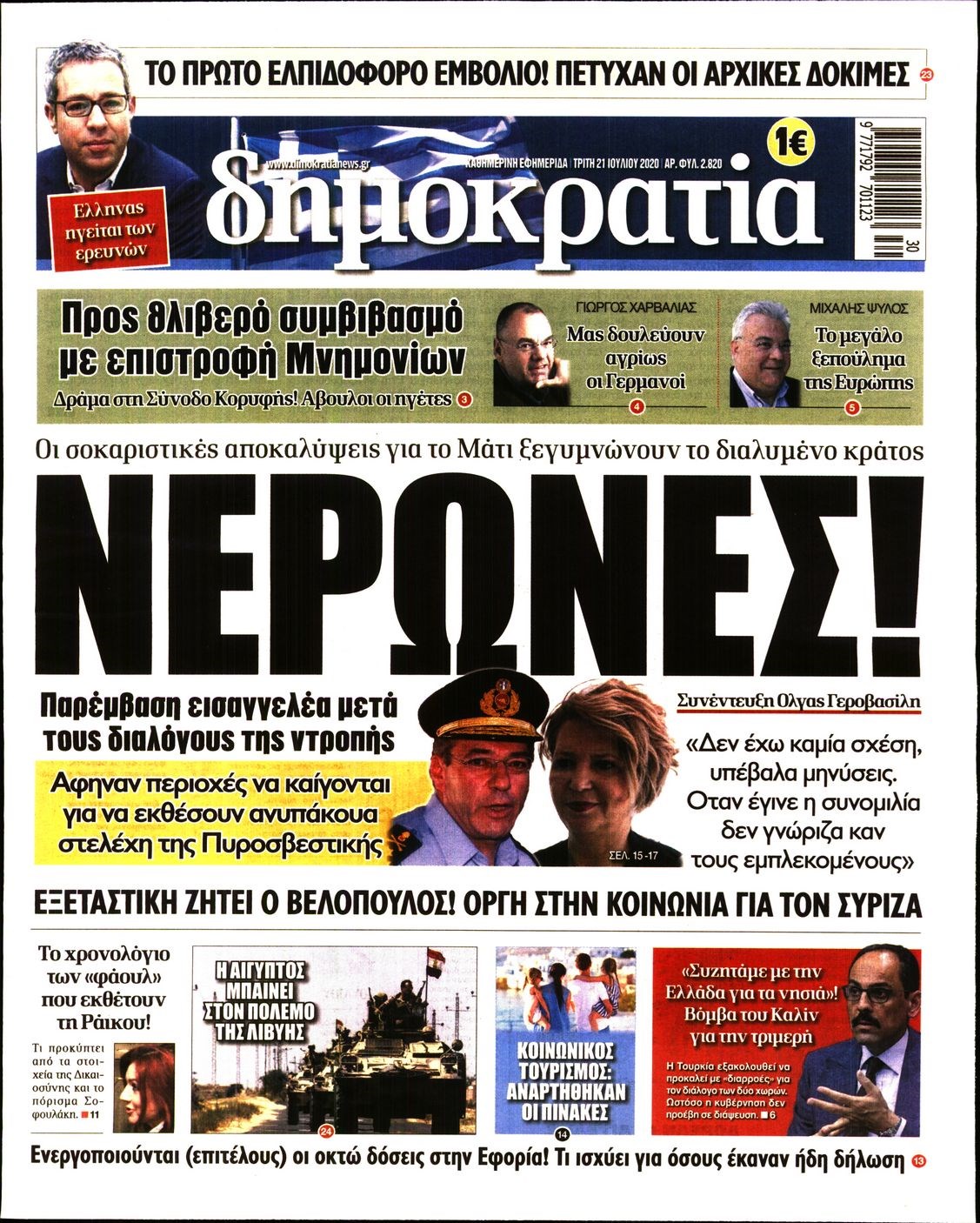 Οι πολιτικές εφημερίδες 21/7/2020 Διονύσης Νίκκας 06:23, Τρίτη 21 Ιουλίου 2020 Media Διαβάστε τα πρωτοσέλιδα των πολιτικών εφημερίδων… ΠΟΛΙΤΙΚΕΣ ΕΦΗΜΕΡΙΔΕΣ ΠΡΩΤΟΣΕΛΙΔΑ Μοιράσου το: σχολίασε κι εσύ (0 σχόλια) Ακολουθήστε το enikos.gr στο Google News και μάθετε πρώτοι όλες τις ειδήσεις Δείτε όλες τις τελευταίες ειδήσεις από την Ελλάδα και τον Κόσμο στο enikos.gr Ειδήσεις Ροή Ειδήσεων 3 ώρες πριν Χριστούγεννα στα μπλόκα: Επιμένουν στις κινητοποιήσεις τους οι αγρότες – Ανοίγουν τα διόδια το Σαββατοκύριακο 3 ώρες πριν Ουκρανία: Η άνευ προηγουμένου επίθεση σε ρωσικό τάνκερ στη Μεσόγειο και το μήνυμα προς στον Πούτιν – Το «μακρύ χέρι» του Κιέβου 2 ώρες πριν Πούτιν: Τα μηνύματα σε Ευρώπη και ΝΑΤΟ από το μαραθώνιο «σόου» του – Η απαίτηση για «σεβασμό» και η ειρήνη «με τους όρους» της Μόσχας 3 ώρες πριν Τραμπ: Δεν αποκλείει την πιθανότητα ενός πολέμου στη Βενεζουέλα – «Ο Μαδούρο ξέρει καλύτερα από τον καθένα τι ακριβώς θέλω» 4 ώρες πριν Συνεχίζει να προκαλεί ο Μίτσκοσκι: «Για μένα το όνομα Μακεδονία είναι ιερό» 2 ώρες πριν Ανακαλύφθηκαν αρχαία χρυσά νομίσματα 2.200 ετών που απεικονίζουν τον θεό Απόλλωνα – Η άγνωστη σύνδεση με τον Φίλιππο Β΄ της Μακεδονίας 3 ώρες πριν Ύπνος: Μια κρυφή κατάσταση του εγκεφάλου πριν από τον ύπνο μπορεί να είναι το “κλειδί” για υψηλή ευφυΐα και δημιουργικότητα 4 ώρες πριν Αριθμολογία: Οι άνθρωποι που έχουν γεννηθεί αυτές τις 4 ημερομηνίες, συχνά παρεξηγούνται – «Η καλοσύνη τους κρύβει τεράστια δύναμη» 5 ώρες πριν Ξεχάστε το καθάρισμα το Σαββατοκύριακο: Ο «κανόνας των 20 λεπτών» που θα σας λύσει τα χέρια 4 λεπτά πριν Συρία: Μαζικά πλήγματα των ΗΠΑ σε θέσεις του Ισλαμικού Κράτους – Χέγκσεθ: «Δεν είναι αρχή πολέμου, είναι μια δήλωση εκδίκησης» για το θάνατο των στρατιωτών μας 17 λεπτά πριν Ουκρανία: Ολοκληρώθηκαν οι συνομιλίες με τους Αμερικανούς κι Ευρωπαίους διαπραγματευτές 32 λεπτά πριν Μπαρτσελόνα – Μπασκόνια 134-124: Οι «μπλαουγκράνα» πήραν το ματς της χρονιάς ύστερα από τρεις παρατάσεις 47 λεπτά πριν Φαίη Σκορδά: «Παλιότερα τα κομπλιμέντα τα προσπερνούσα, τώρα τα έχω ανάγκη» 1 ώρα πριν Βασίλης Σπανούλης: Δεν εμφανίστηκε ούτε ένας δημοσιογράφος στην συνέντευξη Τύπου – «Καλησπέρα στον… κανέναν», δείτε βίντεο ENIKOS NETWORK Το ΕΚΑΒ τιμήθηκε από την Ακαδημία Αθηνών για τα 40 χρόνια προσφοράς του Έχετε πραγματικά μεγάλη καρδιά; 10 χαρακτηριστικά όσων έχουν καλοσύνη Αναστολή μέτρων αναγκαστικής εκτέλεσης για κτηνοτρόφους που πλήττονται από την ευλογιά των αιγοπροβάτων Πλήρης επάρκεια προϊόντων στις λαϊκές της Αττικής, παρά τις αγροτικές κινητοποιήσεις – Τι απαντούν οι πωλητές Χαρτογραφώντας το «σημείο χωρίς επιστροφή»: Για πρώτη φορά αποκαλύπτεται με λεπτομέρεια το ακανθώδες όριο της ατμόσφαιρας τ... Η Google καταργεί τη λειτουργία «dark web report» – Πώς θα μπορούν οι χρήστες να διαγράφουν τα δεδομένα τους περισσότερα 22:42 , Παρασκευή 19 Δεκεμβρίου 2025 Γιώργος Γιαννόπουλος για “Το σόι σου”: “Είναι ευτυχία και ευλογία αυτή η σειρά” «Είναι ευτυχία και ευλογία η συγκυρία αυτής της σειράς», θα πει ο Γιώργος Γιαννόπουλος -ο αγαπ... 20:37 , Παρασκευή 19 Δεκεμβρίου 2025 Don’t Forget The Lyrics: Η Έλλη Κοκκίνου υποδέχεται 4 παίκτες που θα κάνουν τα πάντα για να μη χάσουν ούτε… μισή λέξη από τους στίχους Το «Don’t Forget The Lyrics» επιστρέφει απόψε, Παρασκευή 19 Δεκεμβρίου, στις 21:00 με νέο επει... 19:31 , Παρασκευή 19 Δεκεμβρίου 2025 GNTM: Απόψε ο μεγάλος τελικός για τους 4 φιναλίστ Έπειτα από μήνες γεμάτου