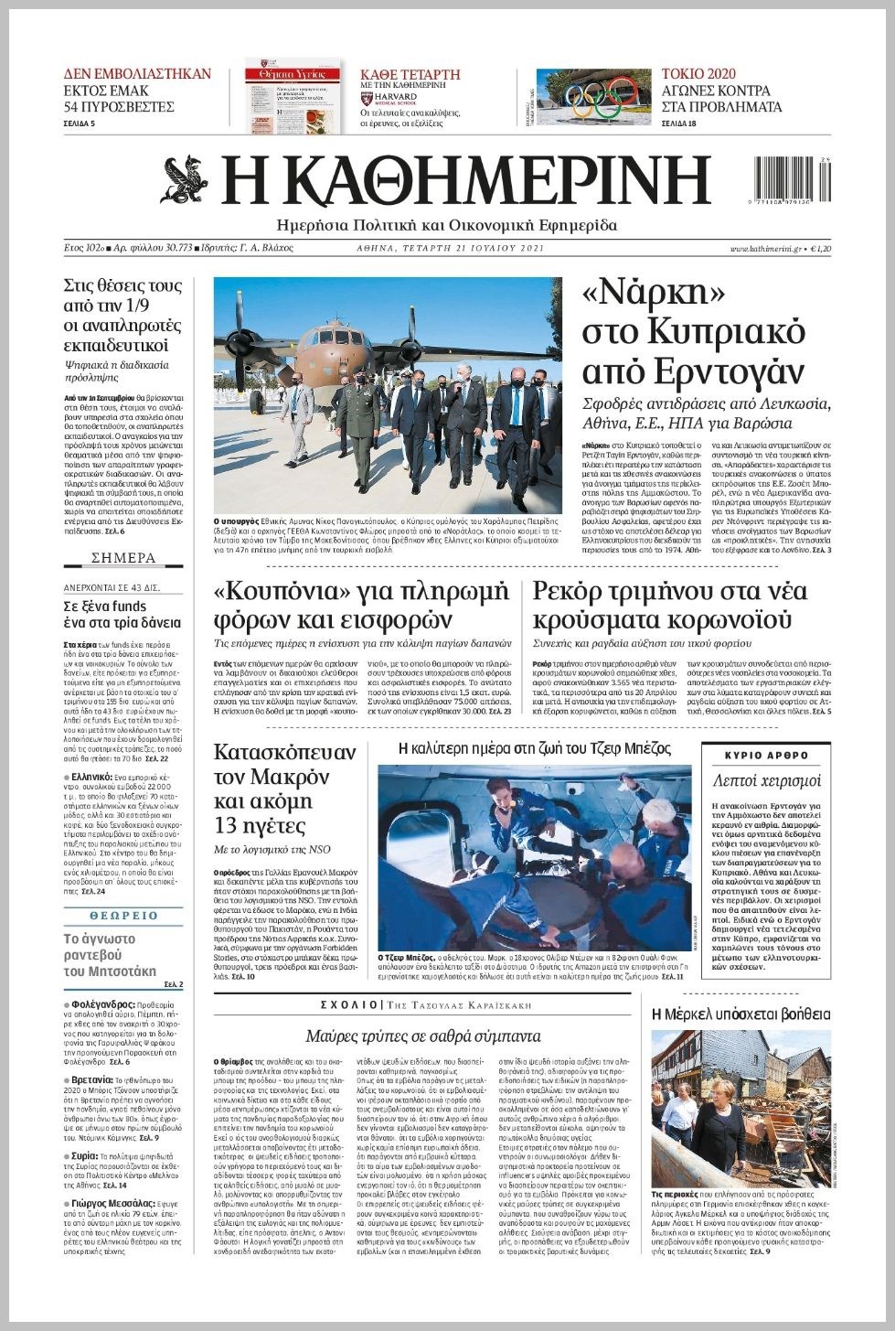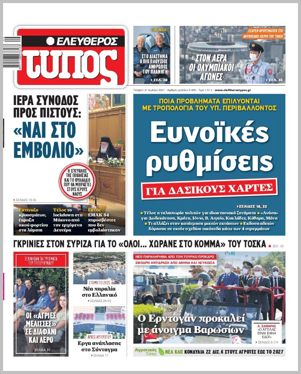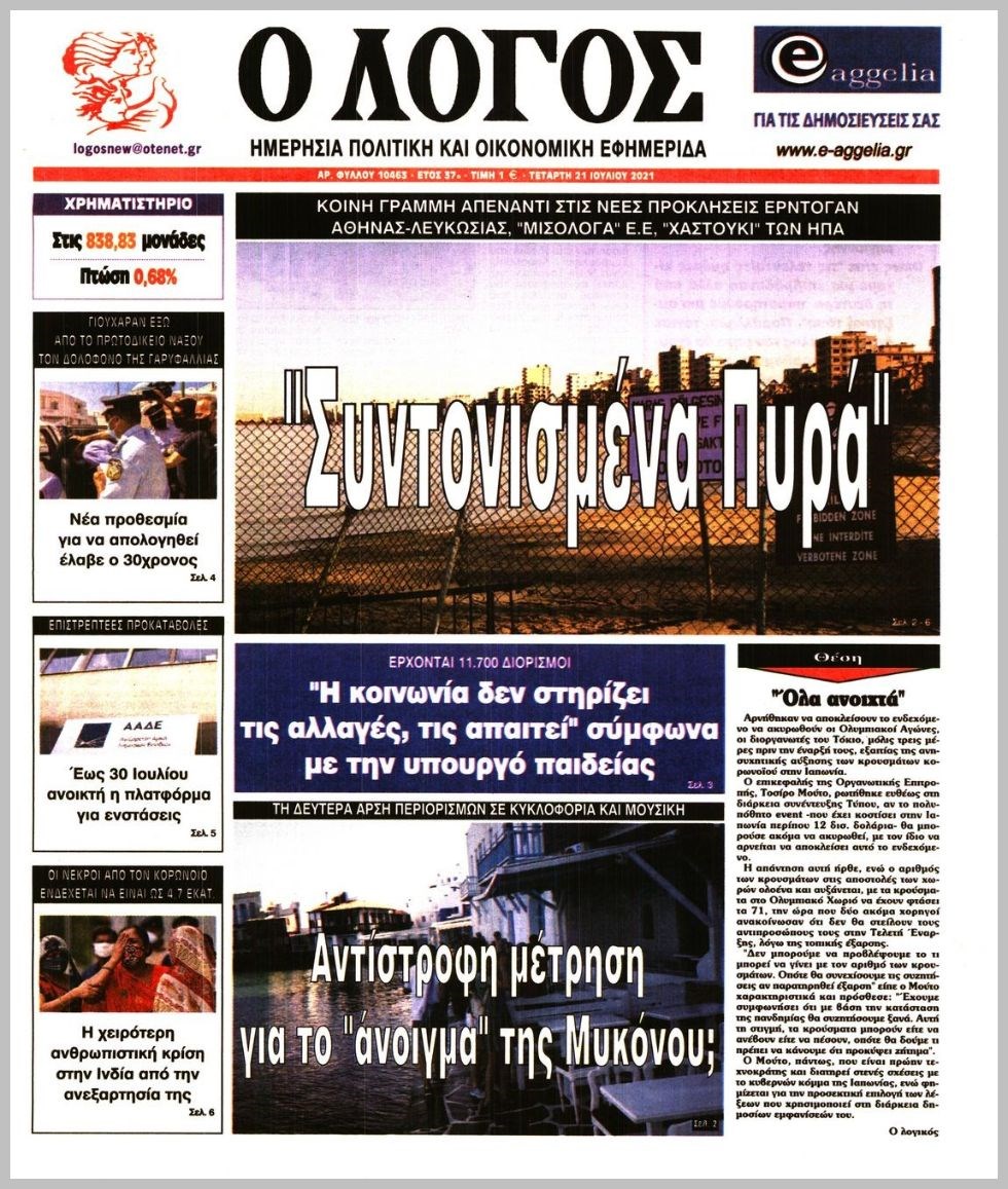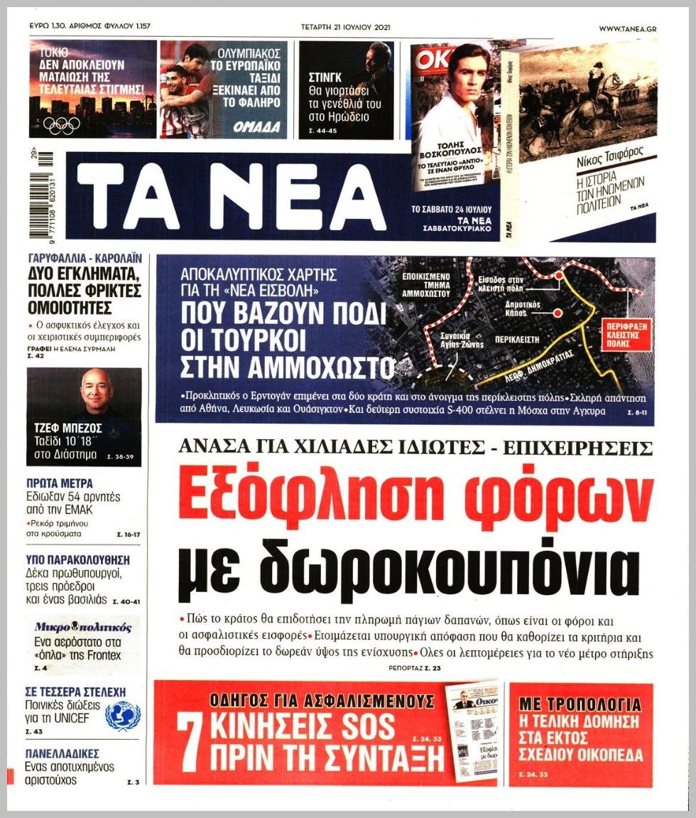 Οι πολιτικές εφημερίδες 21/7/2021 Διονύσης Νίκκας 06:11, Τετάρτη 21 Ιουλίου 2021 Media Διαβάστε τα πρωτοσέλιδα των πολιτικών εφημερίδων… ΕΦΗΜΕΡΙΔΕΣ ΠΡΩΤΟΣΕΛΙΔΑ Μοιράσου το: σχολίασε κι εσύ (0 σχόλια) Ακολουθήστε το enikos.gr στο Google News και μάθετε πρώτοι όλες τις ειδήσεις Δείτε όλες τις τελευταίες ειδήσεις από την Ελλάδα και τον Κόσμο στο enikos.gr Ειδήσεις Ροή Ειδήσεων 5 ώρες πριν Χριστούγεννα στα μπλόκα οι αγρότες: Άνοιξαν στα διόδια και μοίρασαν προϊόντα στους πολίτες – Νέα σύσκεψη την Κυριακή στη Νίκαια 5 ώρες πριν Κύκλωμα διακίνησης ναρκωτικών σε σχολεία: Τηλεφωνούσαν στους ανηλίκους την ώρα του μαθήματος – Οι διάλογοι-σοκ, τα «ψευδώνυμα» και τα βασανιστήρια 4 ώρες πριν Αρχεία Επστάιν: Οι 500 σελίδες που λείπουν, τα αναπάντητα ερωτήματα και οι επώνυμοι – Τι έπεται 6 ώρες πριν Ζελένσκι: Μόνο οι ΗΠΑ και ο Τραμπ μπορούν να πιέσουν τη Ρωσία να βάλει τέλος στον πόλεμο 6 ώρες πριν Φοινικούντα: Προφυλακιστέος ο 30χρονος για συνέργεια στη διπλή δολοφονία – Και άλλα πρόσωπα στο «μικροσκόπιο» 4 ώρες πριν Αποκαλύφθηκε το άγνωστο «GPS» της αρχαιότητας – Πώς οι ναοί «φώτιζαν» τον δρόμο των ναυτικών πριν από την εφεύρεση των φάρων 5 ώρες πριν Ύπνος: Η διατροφή που μπορεί να σας βοηθήσει να κοιμάστε καλύτερα και να ζήσετε περισσότερο 6 ώρες πριν Αριθμολογία: Ο αριθμός του φύλακα αγγέλου σας, με βάση τον μήνα γέννησής σας – «Έτσι σας στέλνει σημάδια το σύμπαν» 18 ώρες πριν Enerwave: Το νέο «ρεύμα» στη λιανική ενέργειας που αλλάζει την εμπειρία του καταναλωτή 2 ώρες πριν Σήμερα με τη Realnews: Δωροεπιταγή 10€ 11 λεπτά πριν Σήμερα με τη Realnews: Instyle, μαζί Drive και Realnews Geopolitics 20 λεπτά πριν Κηφισιά: Το συγκινητικό «Last dance» του Ανδρέα Τεττέη – «Λύγισε» στην τελευταία του συνέντευξη ως παίκτης της ομάδας των βορείων προαστίων 34 λεπτά πριν Οι «εποικοδομητικές» συνομιλίες Ρωσίας – ΗΠΑ στο Μαϊάμι θα συνεχιστούν σήμερα, λέει με τον Ρώσο απεσταλμένος Ντμίτριεφ 50 λεπτά πριν La Liga: Η Ρεάλ νίκησε την Σεβίλλη στην ιστορική βραδιά του Κίλιαν Εμπαπέ – Αποβλήθηκε ο Ματίας Αλμέιδα ENIKOS NETWORK Οι γυναίκες αποκαλύπτουν το πιο ελκυστικό πράγμα που μπορεί να κάνει ένας άνδρας Ομορφιά και αντιγήρανση: Ειδικοί μιλούν για συσκευές περιποίησης του δέρματος «Πολεμική» προετοιμασία από την ευρωπαϊκή βιομηχανία ενέργειας – Η Eurelectric ζητεί «ομπρέλα» προστασίας για τις υποδομές Ακύρωση ΑΦΜ για απάτες – Ποιους βάζει στο στόχαστρο η ΑΑΔΕ Χαρτογραφώντας το «σημείο χωρίς επιστροφή»: Για πρώτη φορά αποκαλύπτεται με λεπτομέρεια το ακανθώδες όριο της ατμόσφαιρας τ... Η Google καταργεί τη λειτουργία «dark web report» – Πώς θα μπορούν οι χρήστες να διαγράφουν τα δεδομένα τους περισσότερα 03:08 , Κυριακή 21 Δεκεμβρίου 2025 Σήμερα με τη Realnews: Instyle, μαζί Drive και Realnews Geopolitics Σήμερα με τη Realnews: Instyle, μαζί Drive και Realnews Geopolitics Instyle Η Άννα Ρεζάν, η Ch... 01:30 , Κυριακή 21 Δεκεμβρίου 2025 Άννα Βίσση: Τα… Social Media «προσκύνησαν» την «απόλυτη» για την συναυλία της στο Καλλιμάρμαρο που προβλήθηκε από το Mega Την ημέρα των γενεθλίων της Άννας Βίσση, το MEGA τίμησε τη διαχρονική παρουσία της «απόλυτης Ε... 00:00 , Κυριακή 21 Δεκεμβρίου 2025 The Voice: Η επιστροφή της Έλενας Παπαρίζου και η ατάκα του Γιώργου Μαζωνάκη μετά τις καταγγελίες Στη φάση των Cross Battles Live μπήκε το The Voice, με την Έλενα Παπαρίζου να επιστρέφει στο π... 20:28 , Σάββατο 20 Δεκεμβρίου 2025 Ο ΑΝΤ1 γεμίζει τις γιορτές με μουσική – Ποιους καλλιτέχνες θα απολαύσουμε Φέτος στον ΑΝΤ1 γιορτάζουμε τις νύχτες μας παρέα με αγαπημένους καλλιτ