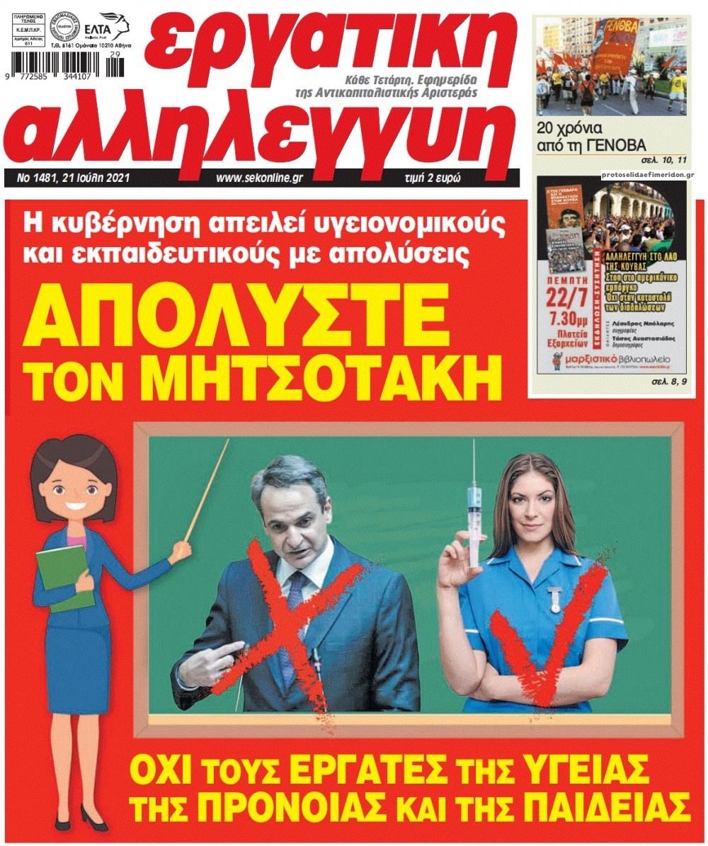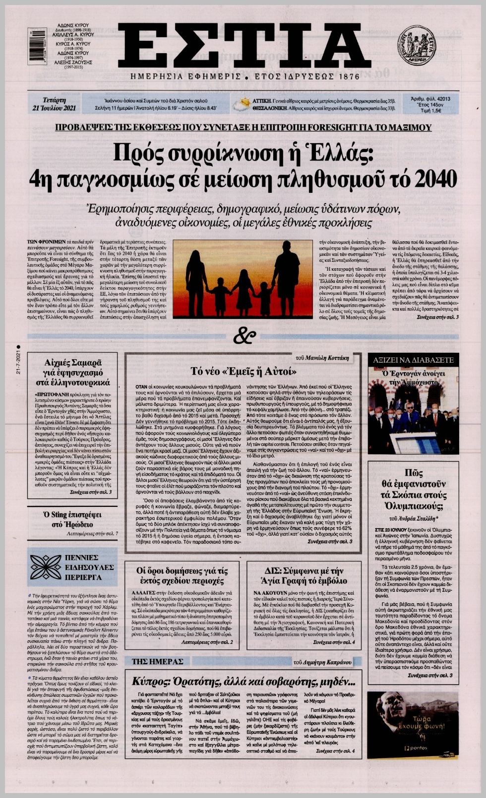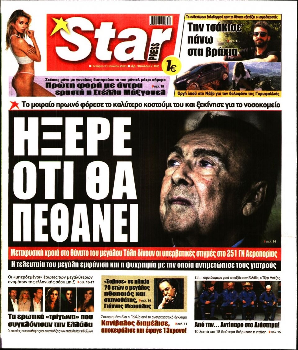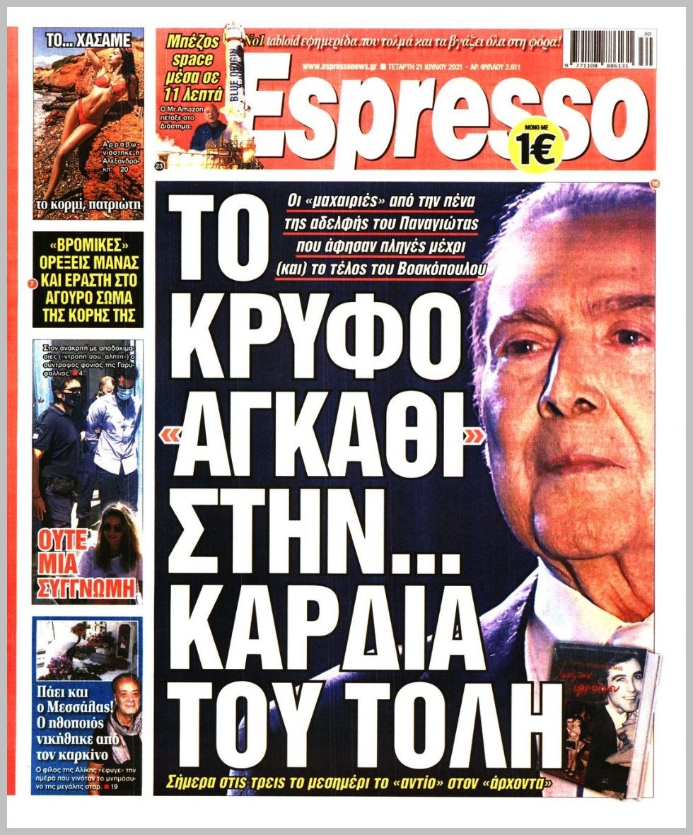 Οι πολιτικές εφημερίδες 21/7/2021 Διονύσης Νίκκας 06:11, Τετάρτη 21 Ιουλίου 2021 Media Διαβάστε τα πρωτοσέλιδα των πολιτικών εφημερίδων… ΕΦΗΜΕΡΙΔΕΣ ΠΡΩΤΟΣΕΛΙΔΑ Μοιράσου το: σχολίασε κι εσύ (0 σχόλια) Ακολουθήστε το enikos.gr στο Google News και μάθετε πρώτοι όλες τις ειδήσεις Δείτε όλες τις τελευταίες ειδήσεις από την Ελλάδα και τον Κόσμο στο enikos.gr Ειδήσεις Ροή Ειδήσεων 5 ώρες πριν Χριστούγεννα στα μπλόκα οι αγρότες: Άνοιξαν στα διόδια και μοίρασαν προϊόντα στους πολίτες – Νέα σύσκεψη την Κυριακή στη Νίκαια 5 ώρες πριν Κύκλωμα διακίνησης ναρκωτικών σε σχολεία: Τηλεφωνούσαν στους ανηλίκους την ώρα του μαθήματος – Οι διάλογοι-σοκ, τα «ψευδώνυμα» και τα βασανιστήρια 4 ώρες πριν Αρχεία Επστάιν: Οι 500 σελίδες που λείπουν, τα αναπάντητα ερωτήματα και οι επώνυμοι – Τι έπεται 6 ώρες πριν Ζελένσκι: Μόνο οι ΗΠΑ και ο Τραμπ μπορούν να πιέσουν τη Ρωσία να βάλει τέλος στον πόλεμο 6 ώρες πριν Φοινικούντα: Προφυλακιστέος ο 30χρονος για συνέργεια στη διπλή δολοφονία – Και άλλα πρόσωπα στο «μικροσκόπιο» 4 ώρες πριν Αποκαλύφθηκε το άγνωστο «GPS» της αρχαιότητας – Πώς οι ναοί «φώτιζαν» τον δρόμο των ναυτικών πριν από την εφεύρεση των φάρων 5 ώρες πριν Ύπνος: Η διατροφή που μπορεί να σας βοηθήσει να κοιμάστε καλύτερα και να ζήσετε περισσότερο 6 ώρες πριν Αριθμολογία: Ο αριθμός του φύλακα αγγέλου σας, με βάση τον μήνα γέννησής σας – «Έτσι σας στέλνει σημάδια το σύμπαν» 18 ώρες πριν Enerwave: Το νέο «ρεύμα» στη λιανική ενέργειας που αλλάζει την εμπειρία του καταναλωτή 2 ώρες πριν Σήμερα με τη Realnews: Δωροεπιταγή 10€ 11 λεπτά πριν Σήμερα με τη Realnews: Instyle, μαζί Drive και Realnews Geopolitics 20 λεπτά πριν Κηφισιά: Το συγκινητικό «Last dance» του Ανδρέα Τεττέη – «Λύγισε» στην τελευταία του συνέντευξη ως παίκτης της ομάδας των βορείων προαστίων 34 λεπτά πριν Οι «εποικοδομητικές» συνομιλίες Ρωσίας – ΗΠΑ στο Μαϊάμι θα συνεχιστούν σήμερα, λέει με τον Ρώσο απεσταλμένος Ντμίτριεφ 50 λεπτά πριν La Liga: Η Ρεάλ νίκησε την Σεβίλλη στην ιστορική βραδιά του Κίλιαν Εμπαπέ – Αποβλήθηκε ο Ματίας Αλμέιδα ENIKOS NETWORK Οι γυναίκες αποκαλύπτουν το πιο ελκυστικό πράγμα που μπορεί να κάνει ένας άνδρας Ομορφιά και αντιγήρανση: Ειδικοί μιλούν για συσκευές περιποίησης του δέρματος «Πολεμική» προετοιμασία από την ευρωπαϊκή βιομηχανία ενέργειας – Η Eurelectric ζητεί «ομπρέλα» προστασίας για τις υποδομές Ακύρωση ΑΦΜ για απάτες – Ποιους βάζει στο στόχαστρο η ΑΑΔΕ Χαρτογραφώντας το «σημείο χωρίς επιστροφή»: Για πρώτη φορά αποκαλύπτεται με λεπτομέρεια το ακανθώδες όριο της ατμόσφαιρας τ... Η Google καταργεί τη λειτουργία «dark web report» – Πώς θα μπορούν οι χρήστες να διαγράφουν τα δεδομένα τους περισσότερα 03:08 , Κυριακή 21 Δεκεμβρίου 2025 Σήμερα με τη Realnews: Instyle, μαζί Drive και Realnews Geopolitics Σήμερα με τη Realnews: Instyle, μαζί Drive και Realnews Geopolitics Instyle Η Άννα Ρεζάν, η Ch... 01:30 , Κυριακή 21 Δεκεμβρίου 2025 Άννα Βίσση: Τα… Social Media «προσκύνησαν» την «απόλυτη» για την συναυλία της στο Καλλιμάρμαρο που προβλήθηκε από το Mega Την ημέρα των γενεθλίων της Άννας Βίσση, το MEGA τίμησε τη διαχρονική παρουσία της «απόλυτης Ε... 00:00 , Κυριακή 21 Δεκεμβρίου 2025 The Voice: Η επιστροφή της Έλενας Παπαρίζου και η ατάκα του Γιώργου Μαζωνάκη μετά τις καταγγελίες Στη φάση των Cross Battles Live μπήκε το The Voice, με την Έλενα Παπαρίζου να επιστρέφει στο π... 20:28 , Σάββατο 20 Δεκεμβρίου 2025 Ο ΑΝΤ1 γεμίζει τις γιορτές με μουσική – Ποιους καλλιτέχνες θα απολαύσουμε Φέτος στον ΑΝΤ1 γιορτάζουμε τις νύχτες μας παρέα με αγαπημένους καλλιτ