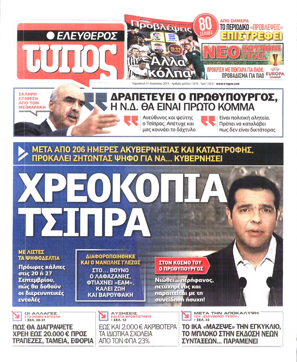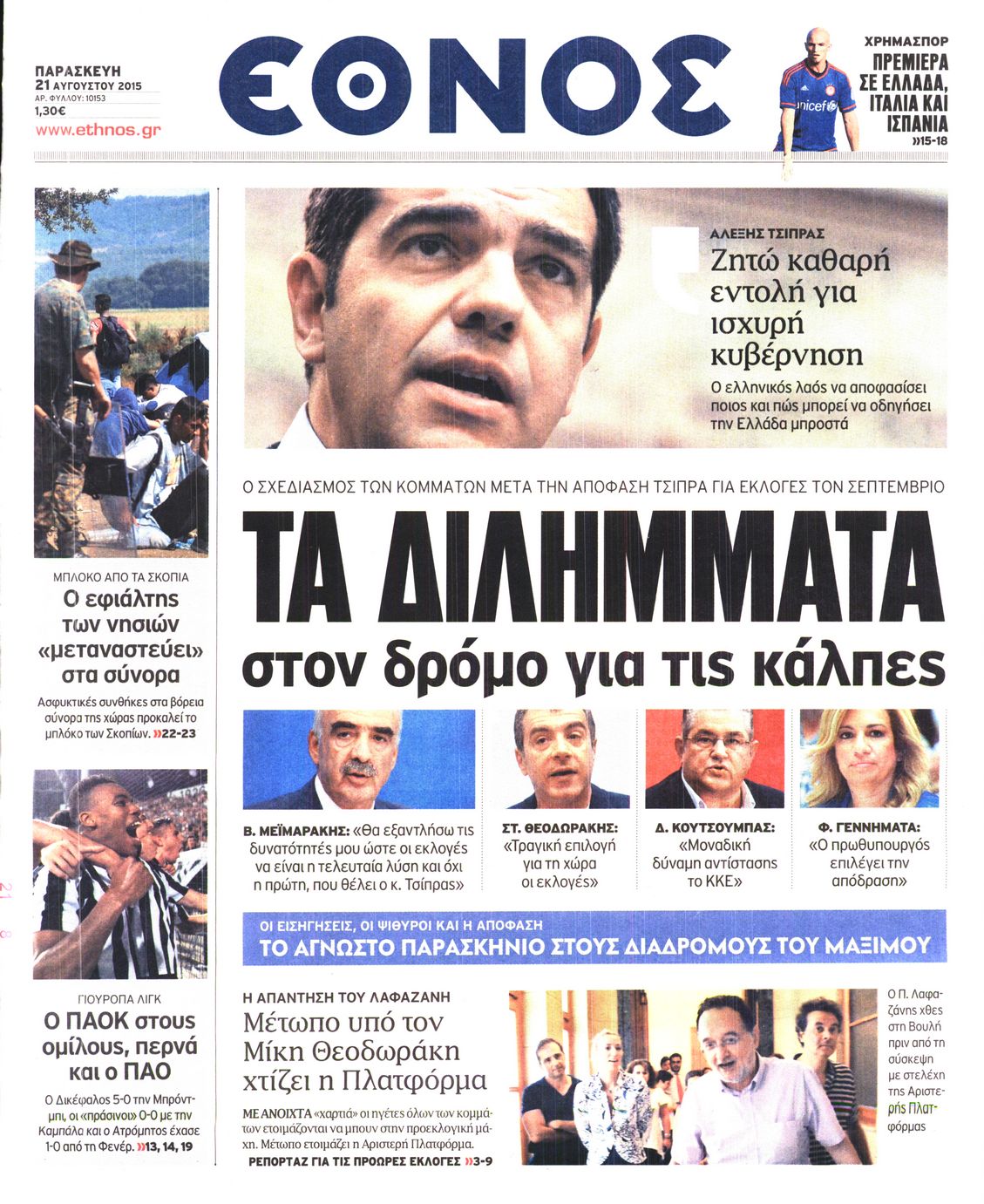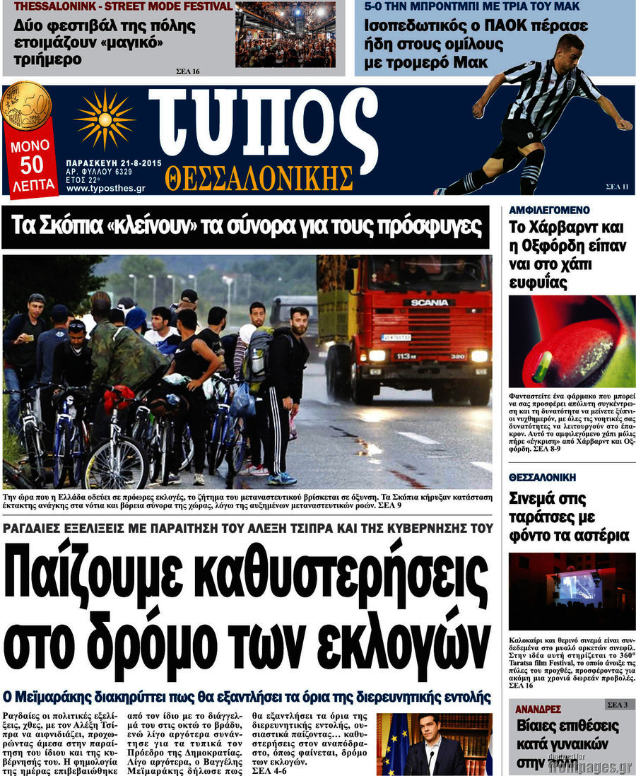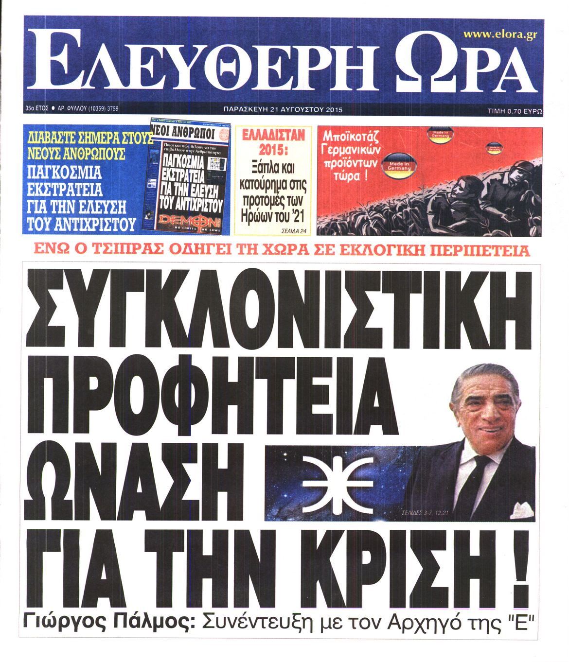 Οι πολιτικές εφημερίδες 21/8/2015 Enikos Newsroom 07:52, Παρασκευή 21 Αυγούστου 2015 Media Διαβάστε τα σημερινά πρωτοσέλιδα των πολιτικών εφημερίδων: ΠΟΛΙΤΙΚΕΣ ΕΦΗΜΕΡΙΔΕΣ ΠΡΩΤΟΣΕΛΙΔΑ Μοιράσου το: σχολίασε κι εσύ (0 σχόλια) Ακολουθήστε το enikos.gr στο Google News και μάθετε πρώτοι όλες τις ειδήσεις Δείτε όλες τις τελευταίες ειδήσεις από την Ελλάδα και τον Κόσμο στο enikos.gr Ειδήσεις Ροή Ειδήσεων 42 λεπτά πριν Χριστούγεννα στα μπλόκα: Επιμένουν στις κινητοποιήσεις τους οι αγρότες – Ανοίγουν τα διόδια το Σαββατοκύριακο 1 ώρα πριν Ουκρανία: Η άνευ προηγουμένου επίθεση σε ρωσικό τάνκερ στη Μεσόγειο και το μήνυμα προς στον Πούτιν – Το «μακρύ χέρι» του Κιέβου 20 λεπτά πριν Πούτιν: Τα μηνύματα σε Ευρώπη και ΝΑΤΟ από το μαραθώνιο «σόου» του – Η απαίτηση για «σεβασμό» και η ειρήνη «με τους όρους» της Μόσχας 1 ώρα πριν Τραμπ: Δεν αποκλείει την πιθανότητα ενός πολέμου στη Βενεζουέλα – «Ο Μαδούρο ξέρει καλύτερα από τον καθένα τι ακριβώς θέλω» 2 ώρες πριν Συνεχίζει να προκαλεί ο Μίτσκοσκι: «Για μένα το όνομα Μακεδονία είναι ιερό» 4 ώρες πριν Πούτιν: «Ναι, είμαι ερωτευμένος» – Βίντεο από τη σπάνια προσωπική παραδοχή του 2 ώρες πριν Αριθμολογία: Οι άνθρωποι που έχουν γεννηθεί αυτές τις 4 ημερομηνίες, συχνά παρεξηγούνται – «Η καλοσύνη τους κρύβει τεράστια δύναμη» 1 ώρα πριν Ύπνος: Μια κρυφή κατάσταση του εγκεφάλου πριν από τον ύπνο μπορεί να είναι το “κλειδί” για υψηλή ευφυΐα και δημιουργικότητα 3 ώρες πριν Ξεχάστε το καθάρισμα το Σαββατοκύριακο: Ο «κανόνας των 20 λεπτών» που θα σας λύσει τα χέρια 21 λεπτά πριν Ανακαλύφθηκαν αρχαία χρυσά νομίσματα 2.200 ετών που απεικονίζουν τον θεό Απόλλωνα – Η άγνωστη σύνδεση με τον Φίλιππο Β΄ της Μακεδονίας 5 λεπτά πριν Ολυμπιακός – Βιλερμπάν 107-84: Επιστροφή στις νίκες με… προπόνηση 11 λεπτά πριν Νέος Κόσμος: Συνελήφθη 41χρονος με ένταλμα από την Τουρκία για εμπόριο ναρκωτικών και ληστεία 20 λεπτά πριν Πούτιν: Τα μηνύματα σε Ευρώπη και ΝΑΤΟ από το μαραθώνιο «σόου» του – Η απαίτηση για «σεβασμό» και η ειρήνη «με τους όρους» της Μόσχας 21 λεπτά πριν Ανακαλύφθηκαν αρχαία χρυσά νομίσματα 2.200 ετών που απεικονίζουν τον θεό Απόλλωνα – Η άγνωστη σύνδεση με τον Φίλιππο Β΄ της Μακεδονίας 26 λεπτά πριν Νίκος Ξυλούρης: Συγκινεί η χήρα του σπουδαίου καλλιτέχνη – «Ευχαριστώ όλο τον κόσμο που τον κρατάει ζωντανό 45 χρόνια» ENIKOS NETWORK Το ΕΚΑΒ τιμήθηκε από την Ακαδημία Αθηνών για τα 40 χρόνια προσφοράς του Έχετε πραγματικά μεγάλη καρδιά; 10 χαρακτηριστικά όσων έχουν καλοσύνη Αναστολή μέτρων αναγκαστικής εκτέλεσης για κτηνοτρόφους που πλήττονται από την ευλογιά των αιγοπροβάτων Πλήρης επάρκεια προϊόντων στις λαϊκές της Αττικής, παρά τις αγροτικές κινητοποιήσεις – Τι απαντούν οι πωλητές Χαρτογραφώντας το «σημείο χωρίς επιστροφή»: Για πρώτη φορά αποκαλύπτεται με λεπτομέρεια το ακανθώδες όριο της ατμόσφαιρας τ... Η Google καταργεί τη λειτουργία «dark web report» – Πώς θα μπορούν οι χρήστες να διαγράφουν τα δεδομένα τους περισσότερα 22:42 , Παρασκευή 19 Δεκεμβρίου 2025 Γιώργος Γιαννόπουλος για “Το σόι σου”: “Είναι ευτυχία και ευλογία αυτή η σειρά” «Είναι ευτυχία και ευλογία η συγκυρία αυτής της σειράς», θα πει ο Γιώργος Γιαννόπουλος -ο αγαπ... 20:37 , Παρασκευή 19 Δεκεμβρίου 2025 Don’t Forget The Lyrics: Η Έλλη Κοκκίνου υποδέχεται 4 παίκτες που θα κάνουν τα πάντα για να μη χάσουν ούτε… μισή λέξη από τους στίχους Το «Don’t Forget The Lyrics» επιστρέφει απόψε, Παρασκευή 19 Δεκεμβρίου, στις 21:00 με νέο επει... 19:31 , Παρασκ