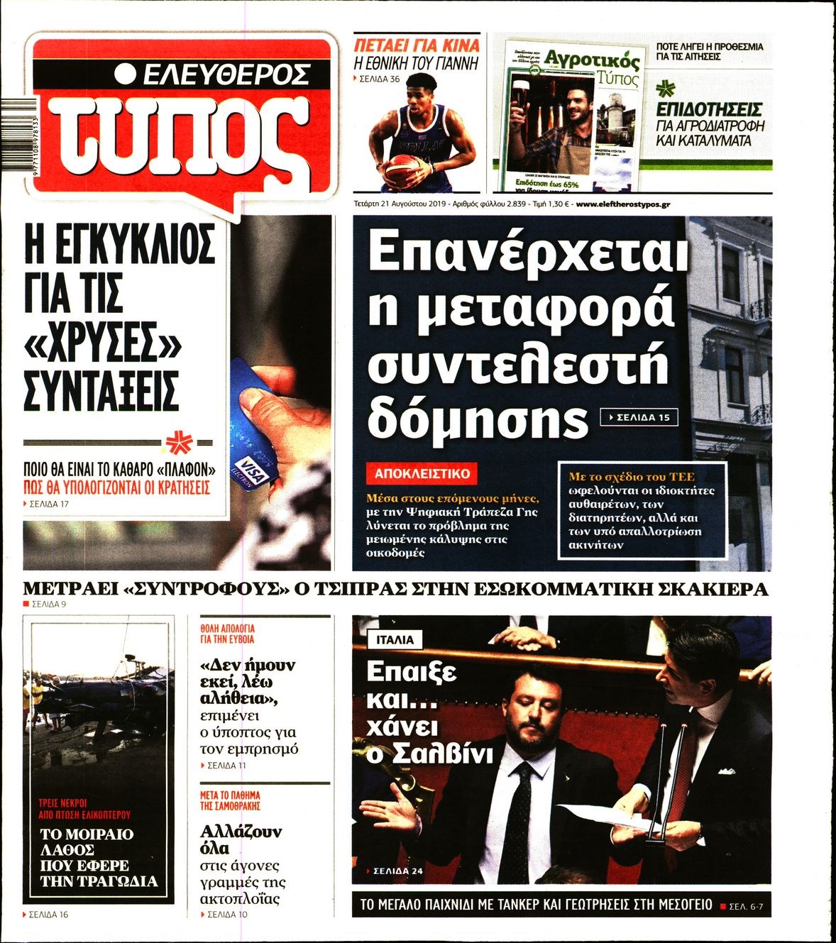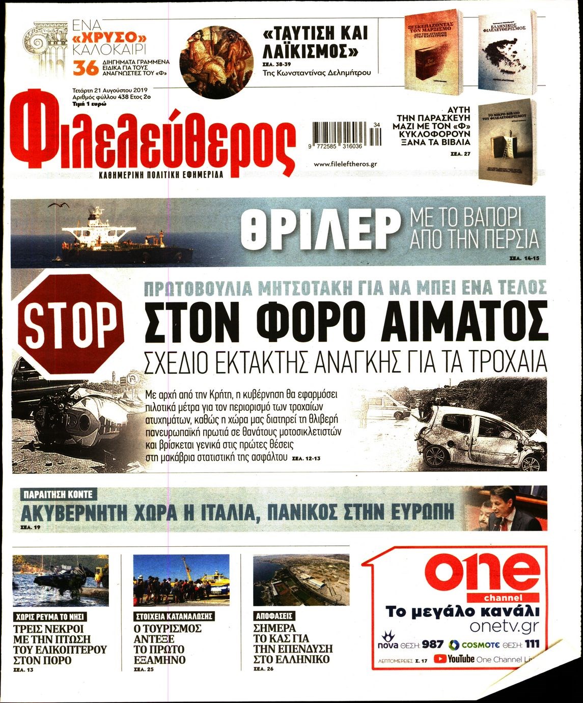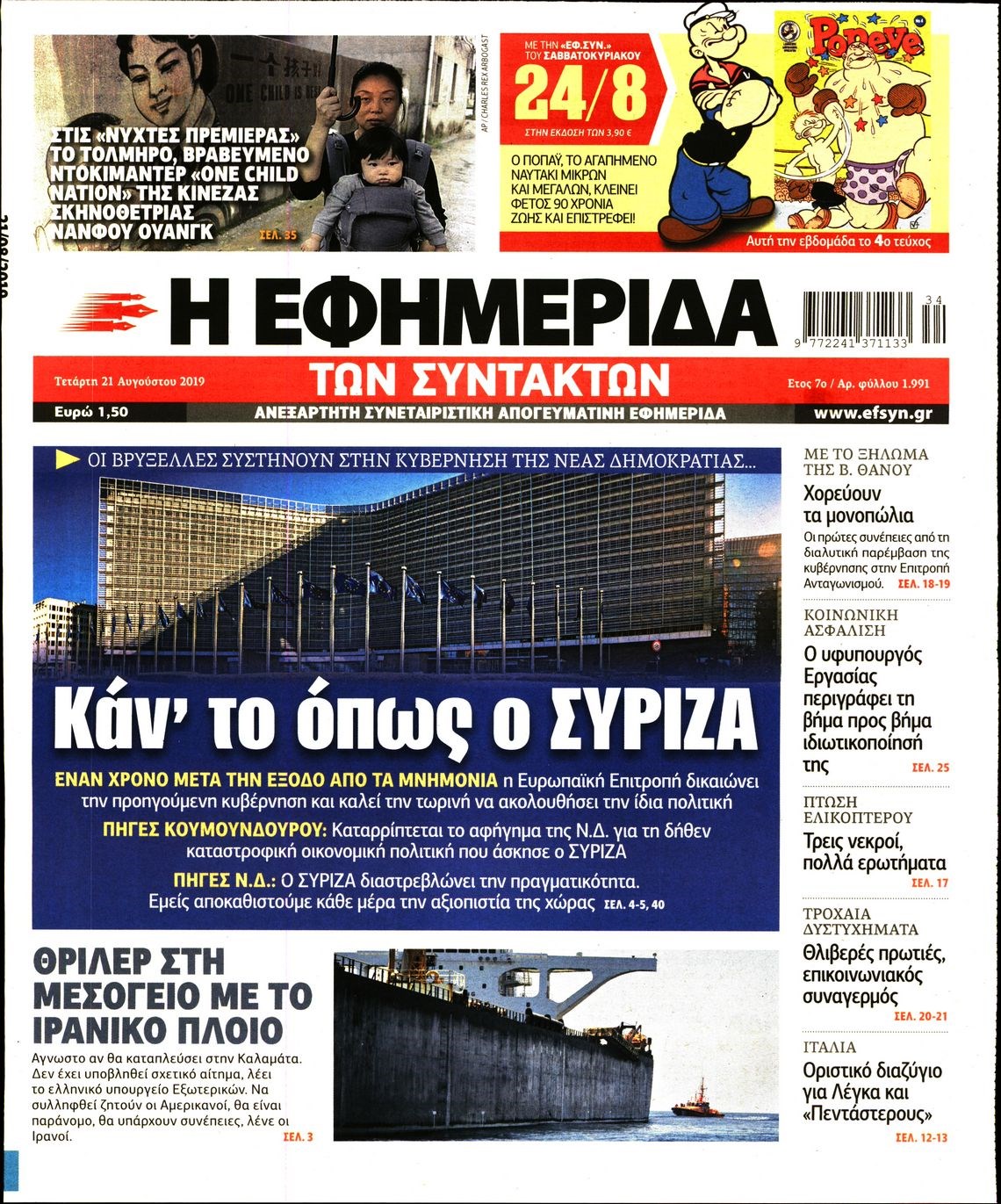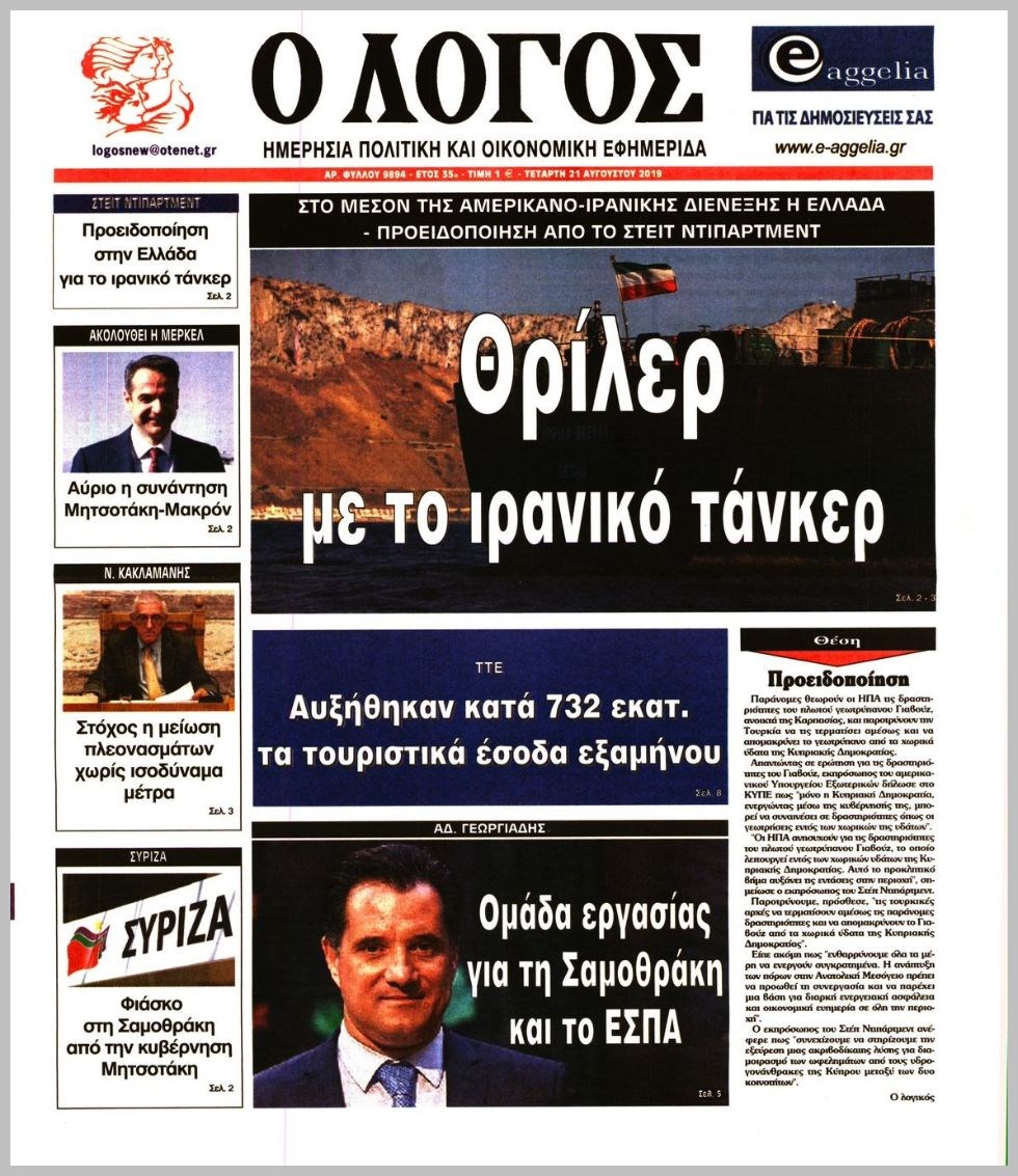 Οι πολιτικές εφημερίδες 21/8/2019 Διονύσης Νίκκας 06:10, Τετάρτη 21 Αυγούστου 2019 Media Διαβάστε τα πρωτοσέλιδα των πολιτικών εφημερίδων… ΕΦΗΜΕΡΙΔΩΝ ΠΡΩΤΟΣΕΛΙΔΑ Μοιράσου το: σχολίασε κι εσύ (0 σχόλια) Ακολουθήστε το enikos.gr στο Google News και μάθετε πρώτοι όλες τις ειδήσεις Δείτε όλες τις τελευταίες ειδήσεις από την Ελλάδα και τον Κόσμο στο enikos.gr Ειδήσεις Ροή Ειδήσεων 1 ώρα πριν Αυστραλία: Σχέσεις με το ISIS εκτιμάται πως είχαν οι δράστες της τρομοκρατικής επίθεσης στο Σίδνεϊ 2 ώρες πριν Αγρότες: Αμετακίνητοι από τα μπλόκα σε τελωνεία και εθνικές οδούς – Ο χάρτης των κινητοποιήσεων και τα αιτήματά τους 2 ώρες πριν Σοκ στο Χόλιγουντ: Νεκροί από μαχαιριές ο σκηνοθέτης Ρομπ Ράινερ και η σύζυγός του – Αναφορές ότι τους σκότωσε ο γιος τους 2 ώρες πριν Δολοφονία στη Φοινικούντα: Απολογούνται σήμερα οι δύο συλληφθέντες – Στο «κάδρο» και δύο γυναίκες 1 ώρα πριν Τρόμος στην Κηφισιά: Ανήλικος ληστής έκανε κεφαλοκλείδωμα σε γυναίκα υπάλληλο φούρνου και άρπαξε χρήματα – ΒΙΝΤΕΟ 47 λεπτά πριν Κληρονόμησε 2,8 εκατ. ευρώ και φοβάται ότι οι άνδρες θα την πλησιάζουν για τα λεφτά – «Μήπως καλύτερα να το κρατήσω μυστικό;» 2 ώρες πριν Κάτω από παλάτι κρυβόταν ένα άλλο μνημειώδες ανάκτορο: Οι ανασκαφές σε αρχαία πόλη αποκάλυψαν τα ερείπια και τα μυστικά του 4 ώρες πριν Τα ζώδια σήμερα, Δευτέρα 15 Δεκεμβρίου: Ιχθύες, ξεκινήστε από εκεί που η παρουσία σας έχει σημασία 4 ώρες πριν Διατροφή: Γιατρός προειδοποιεί για 2 απλά λάθη που αυξάνουν τον κίνδυνο χρόνιων παθήσεων 7 λεπτά πριν Τσιάρας για αγροτικές κινητοποιήσεις: Μονόδρομος ο διάλογος – Διαφάνεια με τη μεταφορά του ΟΠΕΚΕΠΕ στην ΑΑΔΕ 12 λεπτά πριν Χάρης Δούκας: «Χρειάζονται υπερβάσεις τώρα για την ανατροπή» 17 λεπτά πριν Θεσσαλονίκη: Πατέρας έσπασε πόρτα παιδικού σταθμού και άρπαξε τα παιδιά του – Είναι σε διάσταση με τη σύζυγό του 25 λεπτά πριν Ο «καθαριστής» της Greek Mafia 30 λεπτά πριν Πανεπιστήμιο Μπράουν: Ελεύθερος θα αφεθεί ο άνδρας που είχε προσαχθεί για την επίθεση – Συνεχίζονται οι έρευνες ENIKOS NETWORK Έχετε καλή φυσική κατάσταση; Δείτε αν μπορείτε να κάνετε αυτές τις 5 κινήσεις 21χρονη που έγινε αγνώριστη χάνοντας 45 κιλά αποκαλύπτει το πρωινό που καίει λίπος Δάνεια σε ελβετικό φράγκο: Ανακοινώνεται η ρύθμιση- Ποιοι και πόσο θα έχουν όφελος – Όλες οι λεπτομέρειες Τέλος οι διώξεις για χρέη σε Εφορία και ΕΦΚΑ – Τι προβλέπει νέα διάταξη μετά την πτώχευση Σύγχρονος Νοστράδαμος: Προειδοποιεί για «μεγάλο γεγονός» τους επόμενους μήνες που θα συγκλονίσει τη Βρετανία και τον κόσμο Τεστ παρατηρητικότητας: Μπορείτε να βρείτε τις 3 διαφορές στις εικόνες με έναν πιγκουίνο σε 14 δευτερόλεπτα περισσότερα 09:15 , Δευτέρα 15 Δεκεμβρίου 2025 Την Κυριακή με τη Realnews: Ό,τι και αν αγοράσεις, σκανάρεις και κερδίζεις! Την Κυριακή με τη Realnews: Ό,τι και αν αγοράσεις, σκανάρεις και κερδίζεις! Με το PADU app, το... 07:42 , Δευτέρα 15 Δεκεμβρίου 2025 Την Κυριακή με τη Realnews: Δωροεπιταγή10€ Δωροεπιταγή αξίας 10€ για αγορές άνω των 60€ από τα πολυκαταστήματα FactoryOutlet H προσφορά ι... 07:17 , Δευτέρα 15 Δεκεμβρίου 2025 Αυτή την Κυριακή με τη Realnews: Instyle, μαζί Drive και Realnews Geopolitics Αυτή την Κυριακή με τη Realnews: Instyle, μαζί Drive και Realnews Geopolitics Instyle Η Άννα Ρ... 05:49 , Δευτέρα 15 Δεκεμβρίου 2025 Οι οικονομικές εφημερίδες 15/12/2025 Διαβάστε τα πρωτοσέλιδα από τις οικονομικές εφημερίδες, σήμερα 15/12/2025. ΤΕΛΕΥΤΑΙΕΣ ΕΙΔΗΣΕΙΣ 7 λεπτά πριν Τσιάρας για αγροτικές κινητοποιήσεις: Μονόδρομος ο... 12 λεπτά πριν Χάρης Δούκας: «Χρειάζοντ