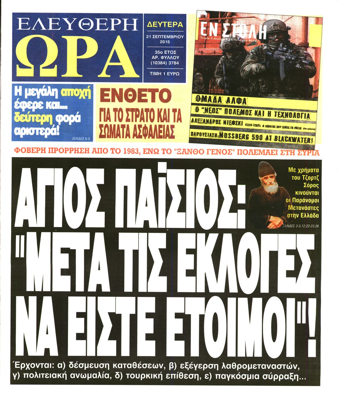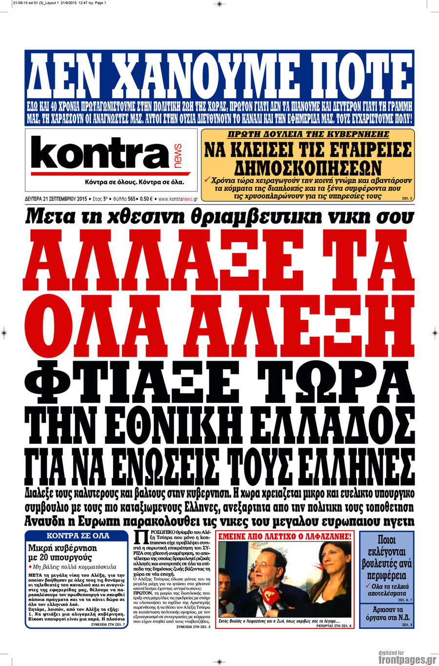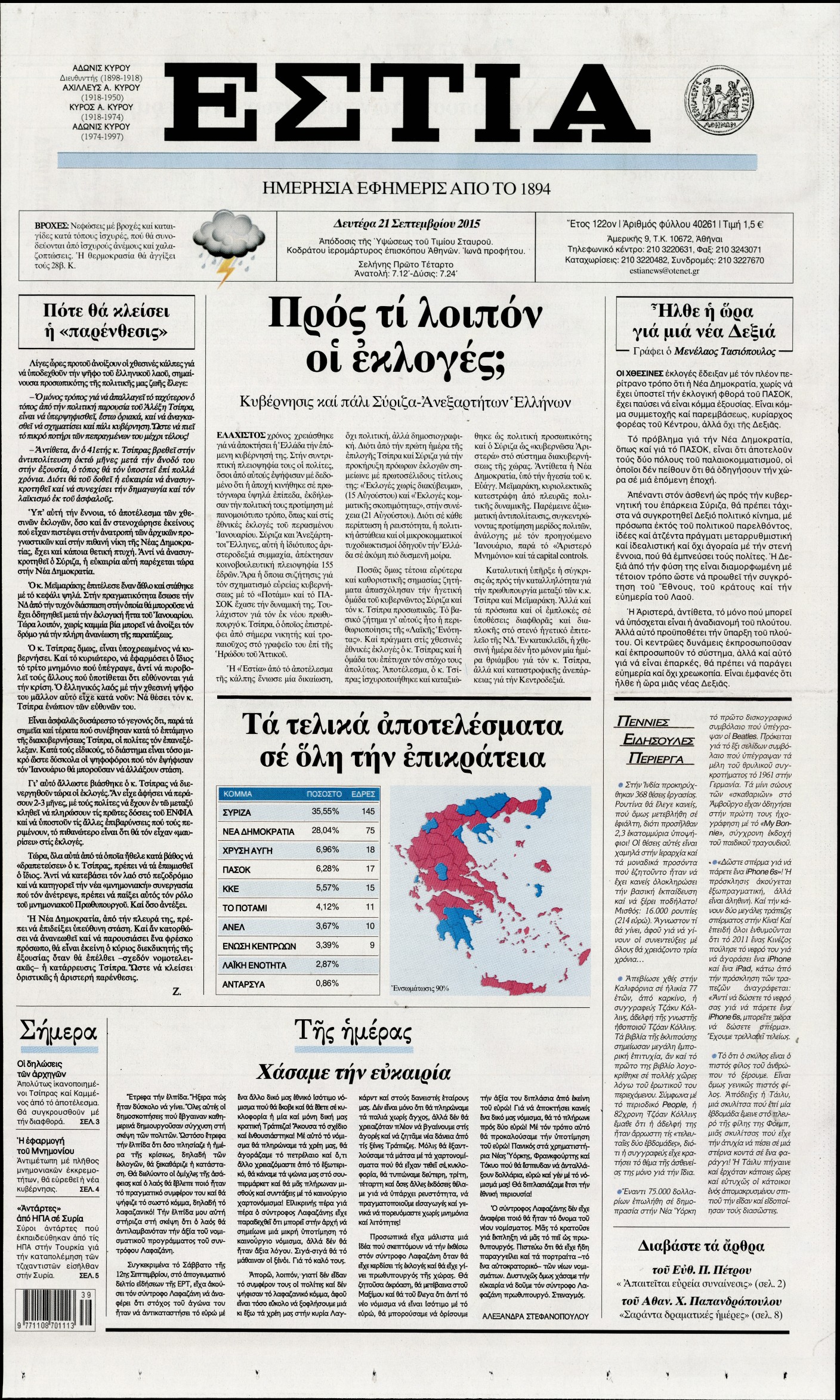 Οι πολιτικές εφημερίδες 21/9/2015 Enikos Newsroom 06:22, Δευτέρα 21 Σεπτεμβρίου 2015 Media Διαβάστε τα σημερινά πρωτοσέλιδα των πολιτικών εφημερίδων: ΠΟΛΙΤΙΚΕΣ ΕΦΗΜΕΡΙΔΕΣ ΠΡΩΤΟΣΕΛΙΔΑ Μοιράσου το: σχολίασε κι εσύ (0 σχόλια) Ακολουθήστε το enikos.gr στο Google News και μάθετε πρώτοι όλες τις ειδήσεις Δείτε όλες τις τελευταίες ειδήσεις από την Ελλάδα και τον Κόσμο στο enikos.gr Ειδήσεις Ροή Ειδήσεων 2 ώρες πριν Χριστούγεννα στα μπλόκα: Επιμένουν στις κινητοποιήσεις τους οι αγρότες – Ανοίγουν τα διόδια το Σαββατοκύριακο 3 ώρες πριν Ουκρανία: Η άνευ προηγουμένου επίθεση σε ρωσικό τάνκερ στη Μεσόγειο και το μήνυμα προς στον Πούτιν – Το «μακρύ χέρι» του Κιέβου 2 ώρες πριν Πούτιν: Τα μηνύματα σε Ευρώπη και ΝΑΤΟ από το μαραθώνιο «σόου» του – Η απαίτηση για «σεβασμό» και η ειρήνη «με τους όρους» της Μόσχας 3 ώρες πριν Τραμπ: Δεν αποκλείει την πιθανότητα ενός πολέμου στη Βενεζουέλα – «Ο Μαδούρο ξέρει καλύτερα από τον καθένα τι ακριβώς θέλω» 4 ώρες πριν Συνεχίζει να προκαλεί ο Μίτσκοσκι: «Για μένα το όνομα Μακεδονία είναι ιερό» 2 ώρες πριν Ανακαλύφθηκαν αρχαία χρυσά νομίσματα 2.200 ετών που απεικονίζουν τον θεό Απόλλωνα – Η άγνωστη σύνδεση με τον Φίλιππο Β΄ της Μακεδονίας 3 ώρες πριν Ύπνος: Μια κρυφή κατάσταση του εγκεφάλου πριν από τον ύπνο μπορεί να είναι το “κλειδί” για υψηλή ευφυΐα και δημιουργικότητα 4 ώρες πριν Αριθμολογία: Οι άνθρωποι που έχουν γεννηθεί αυτές τις 4 ημερομηνίες, συχνά παρεξηγούνται – «Η καλοσύνη τους κρύβει τεράστια δύναμη» 5 ώρες πριν Ξεχάστε το καθάρισμα το Σαββατοκύριακο: Ο «κανόνας των 20 λεπτών» που θα σας λύσει τα χέρια 10 λεπτά πριν Ουκρανία: Ολοκληρώθηκαν οι συνομιλίες με τους Αμερικανούς κι Ευρωπαίους διαπραγματευτές 25 λεπτά πριν Μπαρτσελόνα – Μπασκόνια 134-124: Οι «μπλαουγκράνα» πήραν το ματς της χρονιάς ύστερα από τρεις παρατάσεις 40 λεπτά πριν Φαίη Σκορδά: «Παλιότερα τα κομπλιμέντα τα προσπερνούσα, τώρα τα έχω ανάγκη» 55 λεπτά πριν Βασίλης Σπανούλης: Δεν εμφανίστηκε ούτε ένας δημοσιογράφος στην συνέντευξη Τύπου – «Καλησπέρα στον… κανέναν», δείτε βίντεο 1 ώρα πριν Πόλεμος στην Ουκρανία: Εφτά νεκροί από ρωσική πυραυλική επίθεση στο λιμάνι της Οδησσού ENIKOS NETWORK Το ΕΚΑΒ τιμήθηκε από την Ακαδημία Αθηνών για τα 40 χρόνια προσφοράς του Έχετε πραγματικά μεγάλη καρδιά; 10 χαρακτηριστικά όσων έχουν καλοσύνη Αναστολή μέτρων αναγκαστικής εκτέλεσης για κτηνοτρόφους που πλήττονται από την ευλογιά των αιγοπροβάτων Πλήρης επάρκεια προϊόντων στις λαϊκές της Αττικής, παρά τις αγροτικές κινητοποιήσεις – Τι απαντούν οι πωλητές Χαρτογραφώντας το «σημείο χωρίς επιστροφή»: Για πρώτη φορά αποκαλύπτεται με λεπτομέρεια το ακανθώδες όριο της ατμόσφαιρας τ... Η Google καταργεί τη λειτουργία «dark web report» – Πώς θα μπορούν οι χρήστες να διαγράφουν τα δεδομένα τους περισσότερα 22:42 , Παρασκευή 19 Δεκεμβρίου 2025 Γιώργος Γιαννόπουλος για “Το σόι σου”: “Είναι ευτυχία και ευλογία αυτή η σειρά” «Είναι ευτυχία και ευλογία η συγκυρία αυτής της σειράς», θα πει ο Γιώργος Γιαννόπουλος -ο αγαπ... 20:37 , Παρασκευή 19 Δεκεμβρίου 2025 Don’t Forget The Lyrics: Η Έλλη Κοκκίνου υποδέχεται 4 παίκτες που θα κάνουν τα πάντα για να μη χάσουν ούτε… μισή λέξη από τους στίχους Το «Don’t Forget The Lyrics» επιστρέφει απόψε, Παρασκευή 19 Δεκεμβρίου, στις 21:00 με νέο επει... 19:31 , Παρασκευή 19 Δεκεμβρίου 2025 GNTM: Απόψε ο μεγάλος τελικός για τους 4 φιναλίστ Έπειτα από μήνες γεμάτους μόδα, δημιουργία και έντονες αναμετρήσεις, το GNTM 2025 κορυφώνεται