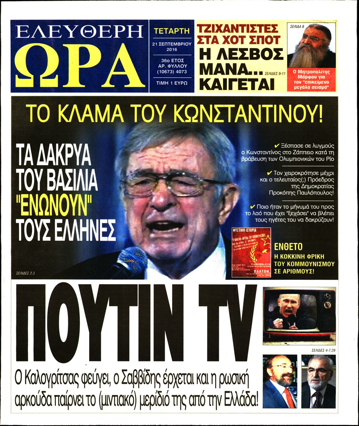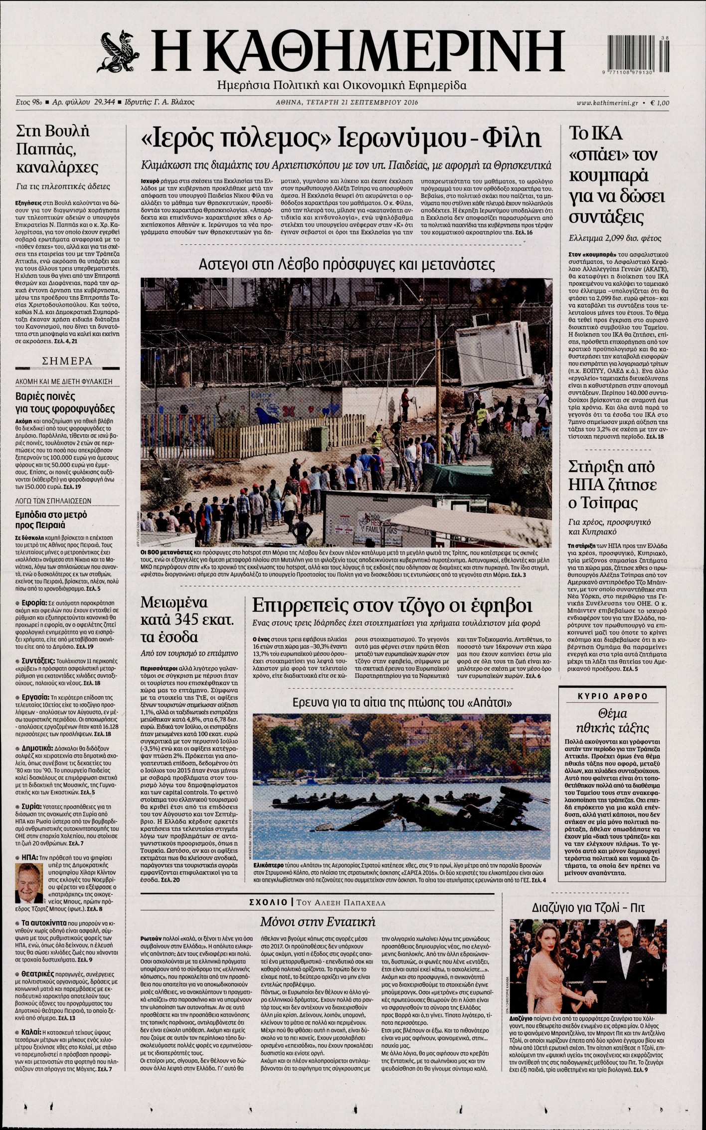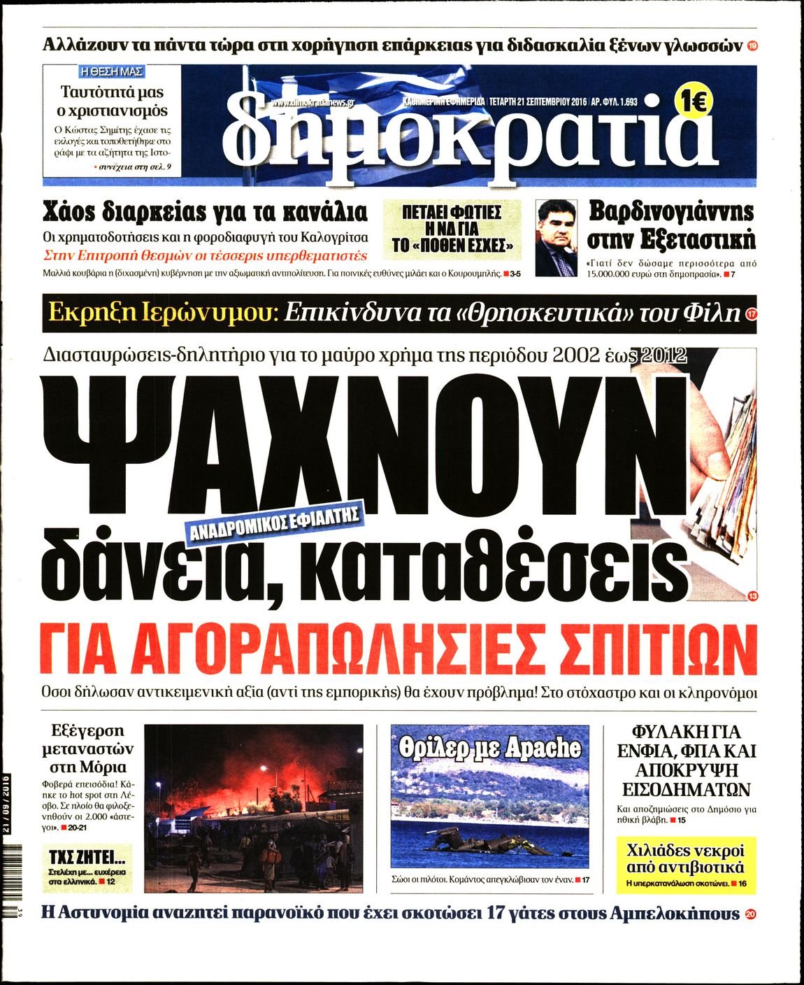 Oι πολιτικές εφημερίδες 21/9/2016 Enikos Newsroom 05:12, Τετάρτη 21 Σεπτεμβρίου 2016 Media Διαβάστε τα σημερινά πρωτοσέλιδα των πολιτικών εφημερίδων: ΠΟΛΙΤΙΚΕΣ ΕΦΗΜΕΡΙΔΕΣ ΠΡΩΤΟΣΕΛΙΔΑ Μοιράσου το: σχολίασε κι εσύ (0 σχόλια) Ακολουθήστε το enikos.gr στο Google News και μάθετε πρώτοι όλες τις ειδήσεις Δείτε όλες τις τελευταίες ειδήσεις από την Ελλάδα και τον Κόσμο στο enikos.gr Ειδήσεις Ροή Ειδήσεων 4 ώρες πριν Πώς δρούσε το κύκλωμα που διακινούσε ναρκωτικά σε σχολεία – Υπέβαλαν σε βασανιστήρια όσους δεν τηρούσαν τους «κανόνες πειθαρχίας» 4 ώρες πριν Αγρότες: Γιορτές στα μπλόκα με ανοιχτά διόδια – Δικογραφία στα Ιωάννινα για το σήκωμα των μπαρών 3 ώρες πριν Ζελένσκι: Οι Αμερικανοί πρότειναν συνάντηση Ουκρανίας, ΗΠΑ, Ρωσίας στο Μαϊάμι 2 ώρες πριν Τραμπ: Πώς περνάει τις γιορτές των Χριστουγέννων – Τα δώρα που κάνει στα εγγόνια του 3 ώρες πριν Μικαέλα Μπέντχαους: Ο πρώτος άνθρωπος σε αναπηρικό αμαξίδιο που ταξίδεψε στο διάστημα – ΒΙΝΤΕΟ 4 ώρες πριν Η τύχη χαμογελά σε 3 ζώδια έως τις 28 Δεκεμβρίου – «Προσέξτε τις επιλογές σας και η επιμονή σας θα ανταμειφθεί» 5 ώρες πριν Μία ανεκμετάλλευτη πηγή θα μπορούσε να προσφέρει ανεξάντλητη ενέργεια – Οι επιστήμονες ίσως γνωρίζουν πώς να την ξεκλειδώσουν 1 ώρα πριν Μήπως οι γιορτές σας δεν είναι τόσο τέλειες; 7 χριστουγεννιάτικες συνήθειες που μαρτυρούν ότι μια οικογένεια είναι δυσλειτουργική 11 ώρες πριν Enerwave: Το νέο «ρεύμα» στη λιανική ενέργειας που αλλάζει την εμπειρία του καταναλωτή 11 λεπτά πριν Πέθανε η σπουδαία αρχαιολόγος Λίλα Μαραγκού – 21 λεπτά πριν Πώς να απαλλαγείτε από τη μυρωδιά του τηγανητού φαγητού: Το μυστικό βρίσκεται στην κουζίνα σας 26 λεπτά πριν Βλαχοδήμος: «Νιώθω καλά που είμαι σημαντικός για τη Σεβίλλη» – Τι είπε για τη Ρεάλ Μαδρίτης και τον Μπαπέ 35 λεπτά πριν Πρίγκιπας Ουίλιαμ: Μαγείρεψε παρέα με τον πρίγκιπα Τζορτζ για τους αστέγους – ΦΩΤΟ και ΒΙΝΤΕΟ 44 λεπτά πριν Επιχείρηση της Τροχαίας κατά της παράνομης στάθμευσης στο Νέο Ψυχικό – Τέσσερις συλλήψεις ENIKOS NETWORK Οι γυναίκες αποκαλύπτουν το πιο ελκυστικό πράγμα που μπορεί να κάνει ένας άνδρας Ομορφιά και αντιγήρανση: Ειδικοί μιλούν για συσκευές περιποίησης του δέρματος Θεοδωρικάκος: Εθνική στρατηγική για τους ημιαγωγούς – Πρώτο βήμα η χρηματοδότηση του πρώτου Κέντρου Ικανοτήτων, με 3,63 εκα... Επίδομα θέρμανσης: Μπαίνει η πρώτη δόση την Τρίτη – Οι επόμενες πληρωμές Χαρτογραφώντας το «σημείο χωρίς επιστροφή»: Για πρώτη φορά αποκαλύπτεται με λεπτομέρεια το ακανθώδες όριο της ατμόσφαιρας τ... Η Google καταργεί τη λειτουργία «dark web report» – Πώς θα μπορούν οι χρήστες να διαγράφουν τα δεδομένα τους περισσότερα 18:19 , Σάββατο 20 Δεκεμβρίου 2025 HOTΕΛ ΕΛVIRA: Η Ελβίρα μαθαίνει πως ο Χάρι μένει κρυφά στο ξενοδοχείο του Παντελή Συνεχίζονται οι εκλογές για πρόεδρο, στο νέο επεισόδιο της κωμικής σειράς του MEGA, HOTΕΛ ΕΛVI... 14:04 , Σάββατο 20 Δεκεμβρίου 2025 Η Realnews αυτής της Κυριακής (21/12/2025) Με τίτλο: «Ασπίδα προστασίας για την Ελλάδα» κυκλοφορεί, αυτήν την Κυριακή, η Realnews. Σημαντ... 12:53 , Σάββατο 20 Δεκεμβρίου 2025 Να μ’ αγαπάς: Το παρελθόν έρχεται στο φως – Καταιγιστικές εξελίξεις στα τελευταία επεισόδια του 2025 Ο Άγγελος αποκαλύπτεται, η Φωτεινή ανησυχεί για τον Λευτέρη και η Ζωή έρχεται αντιμέτωπη με το... 11:41 , Σάββατο 20 Δεκεμβρίου 2025 «Η αγάπη δεν χάνεται ποτέ»: Η μικρού μήκους ταινία κινουμένων σχεδίων που θέτει ερωτήματα για τη ζωή και τον θάνατο Ο θάνατος είναι ένα από τα πιο σκληρά θέματα που καλεί