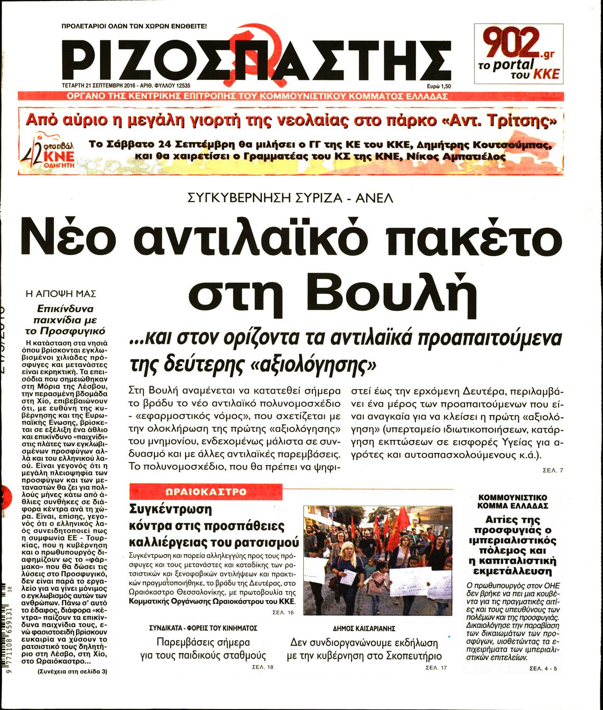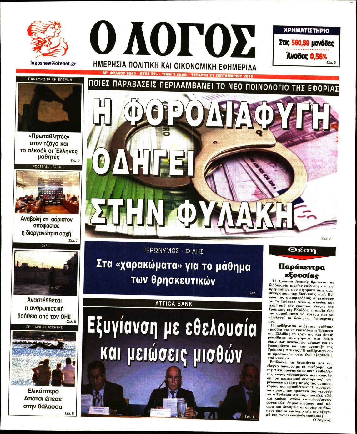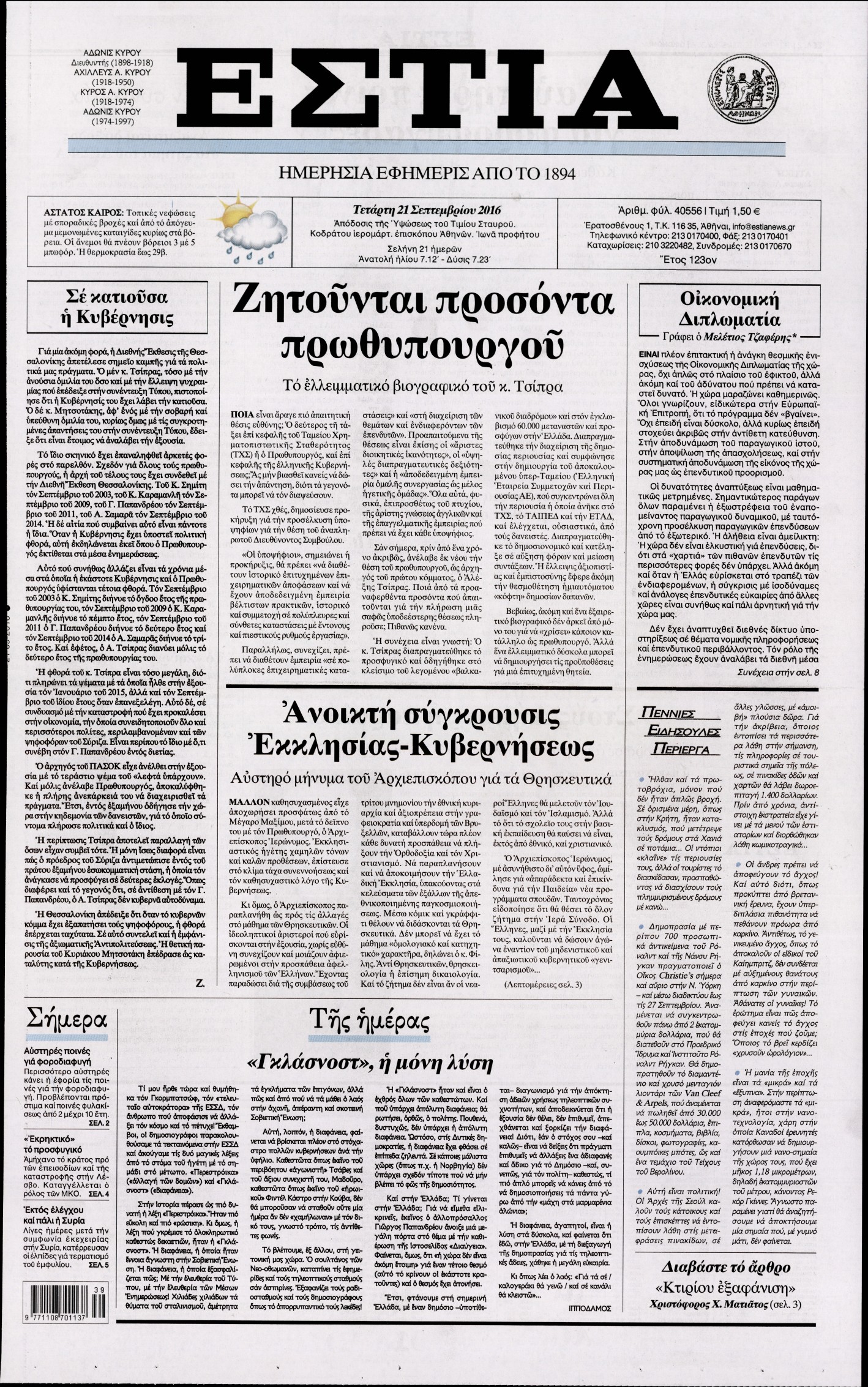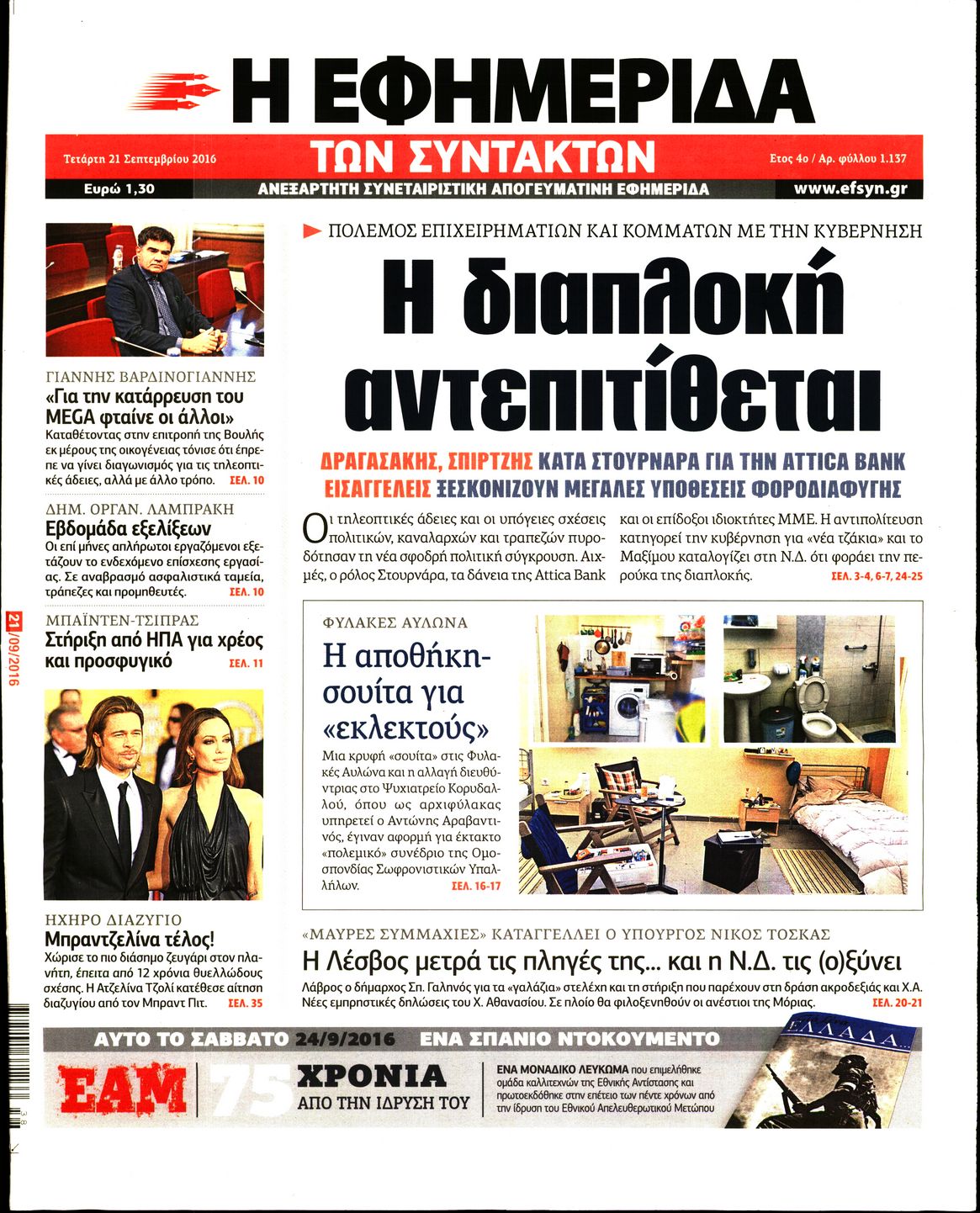 Oι πολιτικές εφημερίδες 21/9/2016 Enikos Newsroom 05:12, Τετάρτη 21 Σεπτεμβρίου 2016 Media Διαβάστε τα σημερινά πρωτοσέλιδα των πολιτικών εφημερίδων: ΠΟΛΙΤΙΚΕΣ ΕΦΗΜΕΡΙΔΕΣ ΠΡΩΤΟΣΕΛΙΔΑ Μοιράσου το: σχολίασε κι εσύ (0 σχόλια) Ακολουθήστε το enikos.gr στο Google News και μάθετε πρώτοι όλες τις ειδήσεις Δείτε όλες τις τελευταίες ειδήσεις από την Ελλάδα και τον Κόσμο στο enikos.gr Ειδήσεις Ροή Ειδήσεων 4 ώρες πριν Πώς δρούσε το κύκλωμα που διακινούσε ναρκωτικά σε σχολεία – Υπέβαλαν σε βασανιστήρια όσους δεν τηρούσαν τους «κανόνες πειθαρχίας» 4 ώρες πριν Αγρότες: Γιορτές στα μπλόκα με ανοιχτά διόδια – Δικογραφία στα Ιωάννινα για το σήκωμα των μπαρών 3 ώρες πριν Ζελένσκι: Οι Αμερικανοί πρότειναν συνάντηση Ουκρανίας, ΗΠΑ, Ρωσίας στο Μαϊάμι 2 ώρες πριν Τραμπ: Πώς περνάει τις γιορτές των Χριστουγέννων – Τα δώρα που κάνει στα εγγόνια του 3 ώρες πριν Μικαέλα Μπέντχαους: Ο πρώτος άνθρωπος σε αναπηρικό αμαξίδιο που ταξίδεψε στο διάστημα – ΒΙΝΤΕΟ 4 ώρες πριν Η τύχη χαμογελά σε 3 ζώδια έως τις 28 Δεκεμβρίου – «Προσέξτε τις επιλογές σας και η επιμονή σας θα ανταμειφθεί» 5 ώρες πριν Μία ανεκμετάλλευτη πηγή θα μπορούσε να προσφέρει ανεξάντλητη ενέργεια – Οι επιστήμονες ίσως γνωρίζουν πώς να την ξεκλειδώσουν 1 ώρα πριν Μήπως οι γιορτές σας δεν είναι τόσο τέλειες; 7 χριστουγεννιάτικες συνήθειες που μαρτυρούν ότι μια οικογένεια είναι δυσλειτουργική 11 ώρες πριν Enerwave: Το νέο «ρεύμα» στη λιανική ενέργειας που αλλάζει την εμπειρία του καταναλωτή 11 λεπτά πριν Πέθανε η σπουδαία αρχαιολόγος Λίλα Μαραγκού – 21 λεπτά πριν Πώς να απαλλαγείτε από τη μυρωδιά του τηγανητού φαγητού: Το μυστικό βρίσκεται στην κουζίνα σας 26 λεπτά πριν Βλαχοδήμος: «Νιώθω καλά που είμαι σημαντικός για τη Σεβίλλη» – Τι είπε για τη Ρεάλ Μαδρίτης και τον Μπαπέ 35 λεπτά πριν Πρίγκιπας Ουίλιαμ: Μαγείρεψε παρέα με τον πρίγκιπα Τζορτζ για τους αστέγους – ΦΩΤΟ και ΒΙΝΤΕΟ 44 λεπτά πριν Επιχείρηση της Τροχαίας κατά της παράνομης στάθμευσης στο Νέο Ψυχικό – Τέσσερις συλλήψεις ENIKOS NETWORK Οι γυναίκες αποκαλύπτουν το πιο ελκυστικό πράγμα που μπορεί να κάνει ένας άνδρας Ομορφιά και αντιγήρανση: Ειδικοί μιλούν για συσκευές περιποίησης του δέρματος Θεοδωρικάκος: Εθνική στρατηγική για τους ημιαγωγούς – Πρώτο βήμα η χρηματοδότηση του πρώτου Κέντρου Ικανοτήτων, με 3,63 εκα... Επίδομα θέρμανσης: Μπαίνει η πρώτη δόση την Τρίτη – Οι επόμενες πληρωμές Χαρτογραφώντας το «σημείο χωρίς επιστροφή»: Για πρώτη φορά αποκαλύπτεται με λεπτομέρεια το ακανθώδες όριο της ατμόσφαιρας τ... Η Google καταργεί τη λειτουργία «dark web report» – Πώς θα μπορούν οι χρήστες να διαγράφουν τα δεδομένα τους περισσότερα 18:19 , Σάββατο 20 Δεκεμβρίου 2025 HOTΕΛ ΕΛVIRA: Η Ελβίρα μαθαίνει πως ο Χάρι μένει κρυφά στο ξενοδοχείο του Παντελή Συνεχίζονται οι εκλογές για πρόεδρο, στο νέο επεισόδιο της κωμικής σειράς του MEGA, HOTΕΛ ΕΛVI... 14:04 , Σάββατο 20 Δεκεμβρίου 2025 Η Realnews αυτής της Κυριακής (21/12/2025) Με τίτλο: «Ασπίδα προστασίας για την Ελλάδα» κυκλοφορεί, αυτήν την Κυριακή, η Realnews. Σημαντ... 12:53 , Σάββατο 20 Δεκεμβρίου 2025 Να μ’ αγαπάς: Το παρελθόν έρχεται στο φως – Καταιγιστικές εξελίξεις στα τελευταία επεισόδια του 2025 Ο Άγγελος αποκαλύπτεται, η Φωτεινή ανησυχεί για τον Λευτέρη και η Ζωή έρχεται αντιμέτωπη με το... 11:41 , Σάββατο 20 Δεκεμβρίου 2025 «Η αγάπη δεν χάνεται ποτέ»: Η μικρού μήκους ταινία κινουμένων σχεδίων που θέτει ερωτήματα για τη ζωή και τον θάνατο Ο θάνατος είναι ένα από τα πιο σκληρά θέματα που καλεί
