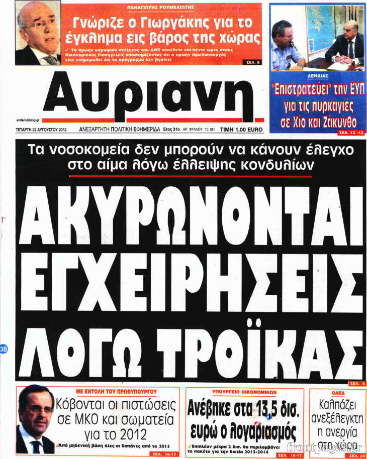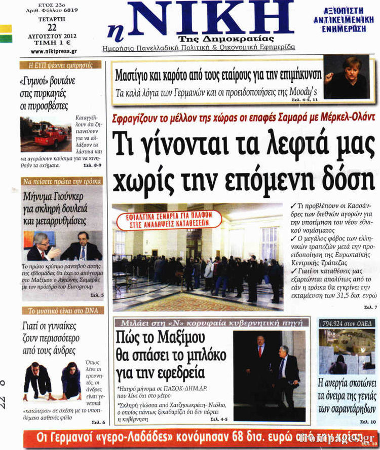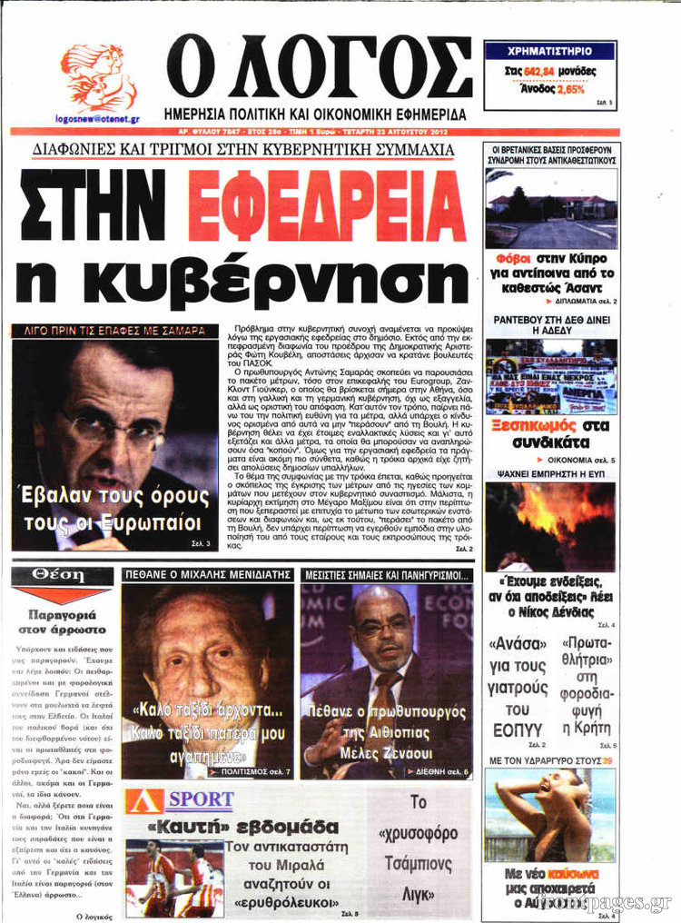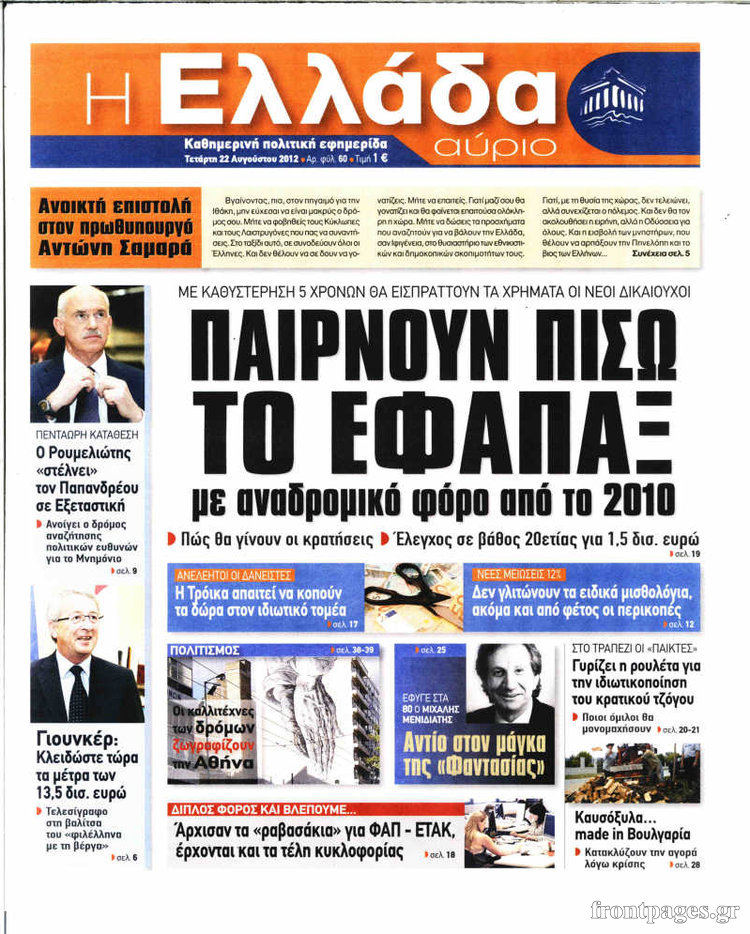 Διαβάστε τα πρωτοσέλιδα των πολιτικών εφημερίδων.