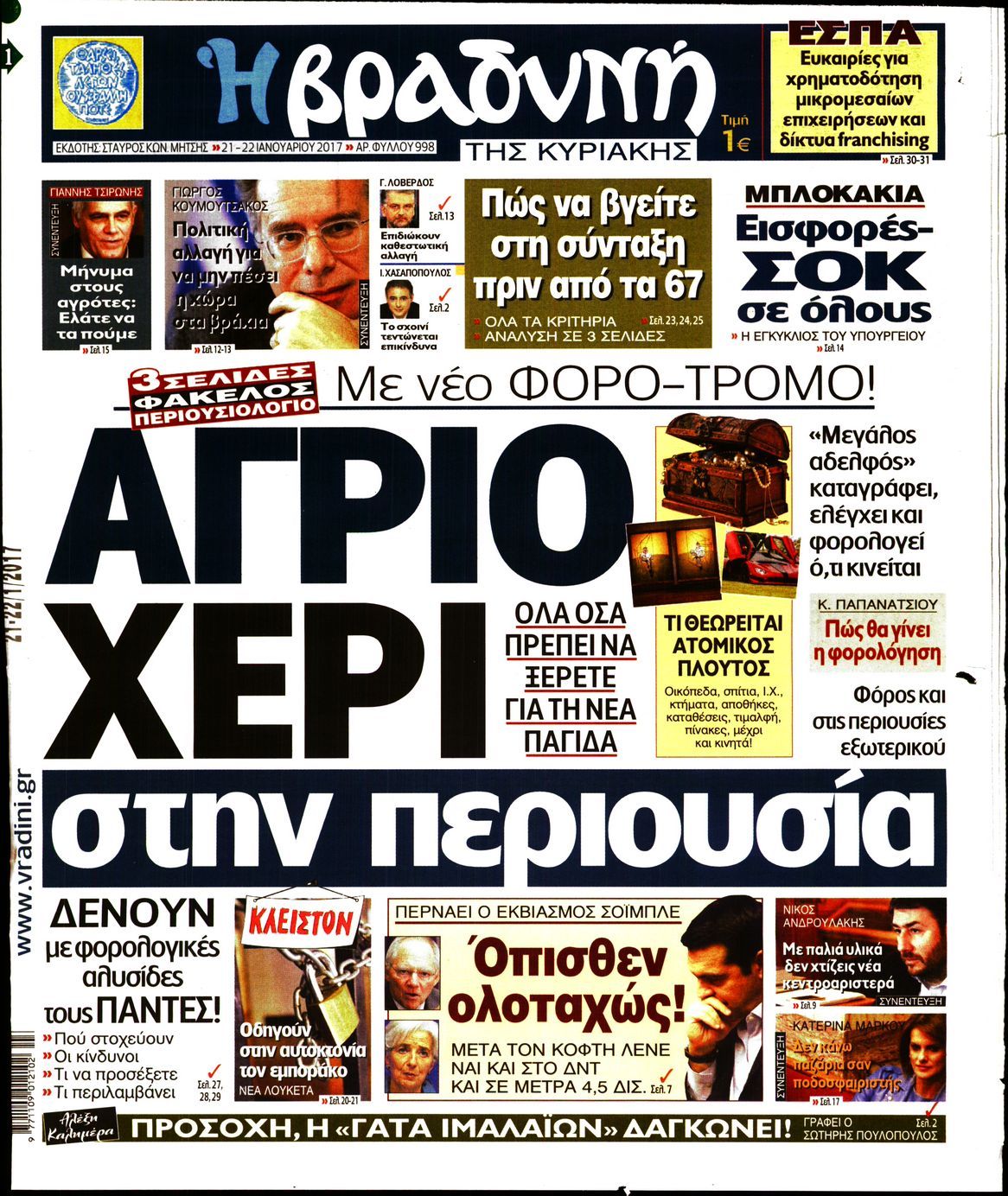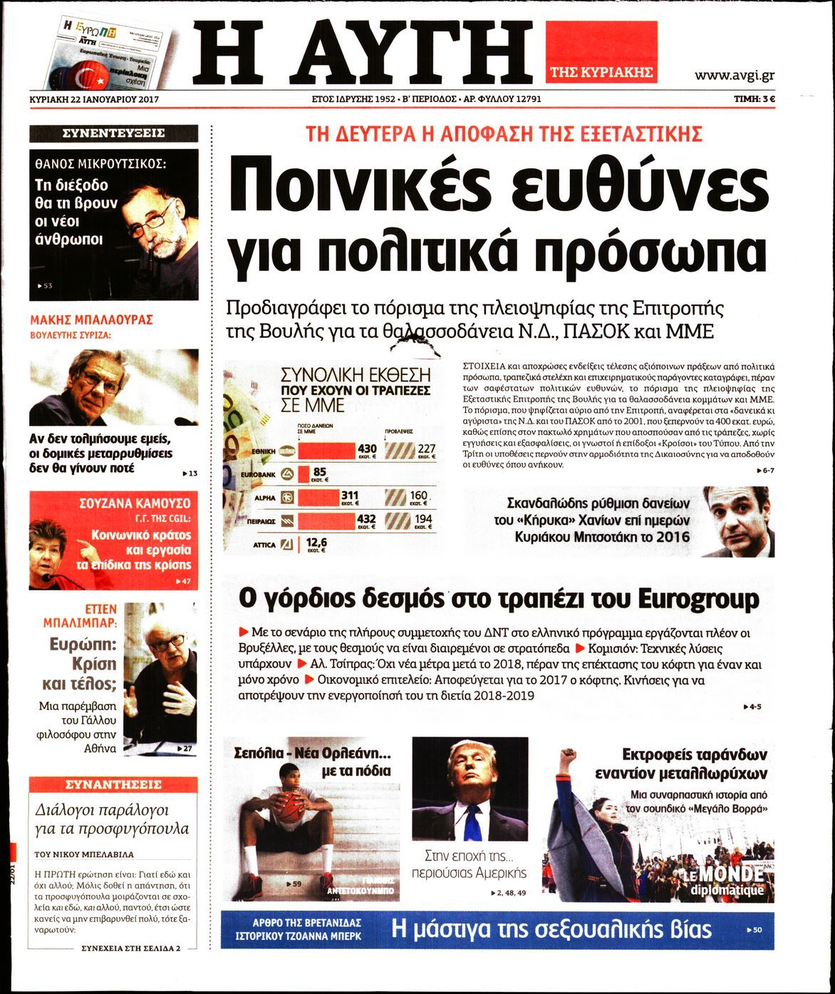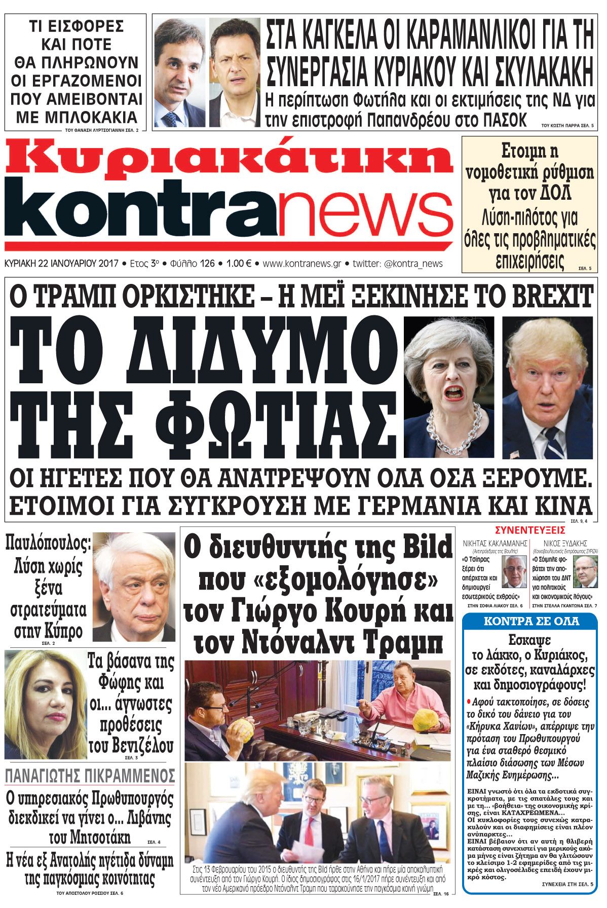 Οι πολιτικές εφημερίδες 22/01/2017 Enikos Newsroom 03:00, Κυριακή 22 Ιανουαρίου 2017 Media Διαβάστε τα σημερινά πρωτοσέλιδα των πολιτικών εφημερίδων: ΠΟΛΙΤΙΚΕΣ ΕΦΗΜΕΡΙΔΕΣ ΠΡΩΤΟΣΕΛΙΔΑ Μοιράσου το: σχολίασε κι εσύ (0 σχόλια) Ακολουθήστε το enikos.gr στο Google News και μάθετε πρώτοι όλες τις ειδήσεις Δείτε όλες τις τελευταίες ειδήσεις από την Ελλάδα και τον Κόσμο στο enikos.gr Ειδήσεις Ροή Ειδήσεων 8 λεπτά πριν Νίκος Παππάς: Το παρασκήνιο της αποπομπής του – Οι μπουνιές, τα μηνύματα μετά την επίθεση και η διαγραφή από τον ΣΥΡΙΖΑ 1 ώρα πριν Φοροδιαφυγή: Ποιοι φορολογούμενοι κινδυνεύουν να πληρώσουν «τσουχτερά» πρόστιμα 35 λεπτά πριν Φοινικούντα: Παραδόθηκε 30χρονος στην Καλαμάτα για τη διπλή δολοφονία 51 λεπτά πριν Αγρότες: Ανυποχώρητοι στα μπλόκα – Στις Σέρρες σήμερα η κρίσιμη συνεδρίαση της Πανελλαδικής Επιτροπής 1 ώρα πριν Τα επίσημα χρονοδιαγράμματα που η Τουρκία θα παραλάβει τα Eurofighter 3 ώρες πριν Καούρα: Το μπαχαρικό που είναι «εξίσου αποτελεσματικό» με την ομεπραζόλη, σύμφωνα με ειδικούς 3 ώρες πριν Τα ζώδια σήμερα, Πέμπτη 18 Δεκεμβρίου: Λέοντες, η καρδιά σας θέλει να εκφραστεί 2 ώρες πριν Οπτική ψευδαίσθηση: Μόνο οι πιο έξυπνοι άνθρωποι θα βρουν 7 ξωτικά 15 δευτερόλεπτα 23 ώρες πριν 20 χρόνια τα Χριστούγεννα ξεκινούν στα Public με μεγάλη ποικιλία σε δώρα! 1 λεπτό πριν Συνταγή του Gordon Ramsay για σπιτικές πατάτες φούρνου 6 λεπτά πριν Δώρο Χριστουγέννων: Έως αύριο η καταβολή του – Πώς υπολογίζεται και τι πρέπει να κάνουν οι εργαζόμενοι που δεν θα το λάβουν 8 λεπτά πριν Νίκος Παππάς: Το παρασκήνιο της αποπομπής του – Οι μπουνιές, τα μηνύματα μετά την επίθεση και η διαγραφή από τον ΣΥΡΙΖΑ 12 λεπτά πριν Κίνηση: «Κόκκινος» ο Κηφισός, μποτιλιάρισμα στο κέντρο της Αθήνας – Καθυστερήσεις 25′ στην Αττική Οδό 17 λεπτά πριν Αλμπέρτο Εσκενάζυ: Το μεσημέρι το «τελευταίο αντίο» στο αποτεφρωτήριο της Ριτσώνας – Η απόφαση της οικογένειάς του ENIKOS NETWORK Ουρική αρθρίτιδα: Μεγάλη μελέτη αποκαλύπτει τι μπορεί να προκαλεί τη νόσο Τι σημαίνει όταν ο σκύλος σας σάς φέρνει τυχαία αντικείμενα, σύμφωνα με εκπαιδεύτρια Οφειλές προς το Δημόσιο: «Φρένο» στα σενάρια για νέα ρύθμιση – Τι απαντά το υπουργείο Εθνικής Οικονομίας και Οικονομικών Φοροδιαφυγή: Ποιοι φορολογούμενοι κινδυνεύουν να πληρώσουν «τσουχτερά» πρόστιμα Χαρτογραφώντας το «σημείο χωρίς επιστροφή»: Για πρώτη φορά αποκαλύπτεται με λεπτομέρεια το ακανθώδες όριο της ατμόσφαιρας τ... Η Google καταργεί τη λειτουργία «dark web report» – Πώς θα μπορούν οι χρήστες να διαγράφουν τα δεδομένα τους περισσότερα 08:00 , Πέμπτη 18 Δεκεμβρίου 2025 Την Κυριακή με τη Realnews: Δωροεπιταγή 10€ Δωροεπιταγή αξίας 10€ για αγορές άνω των 60€ από τα πολυκαταστήματα FactoryOutlet H προσφορά ι... 07:50 , Πέμπτη 18 Δεκεμβρίου 2025 «Το σόι σου»: Backstage στα γυρίσματα για το εορταστικό επεισόδιο «Το σόι σου» φορά τα γιορτινά του για τα Χριστούγεννα και η Όλγα Λαφαζάνη, με την κάμερα του «... 07:36 , Πέμπτη 18 Δεκεμβρίου 2025 Οι αθλητικές μεταδόσεις 18/12/2025 – Πού θα δείτε τον αγώνα της ΑΕΚ με την Κραϊόβα για το Conference League Τα ματς ΑΕΚ – Ουνιβερσιτάτεα Κραϊόβα για το Conference League και Παναθηναϊκός – Χάποελ Τελ Αβ... 05:48 , Πέμπτη 18 Δεκεμβρίου 2025 Οι οικονομικές εφημερίδες 18/12/2025 Διαβάστε τα πρωτοσέλιδα από τις οικονομικές εφημερίδες, σήμερα 18/12/2025. ΤΕΛΕΥΤΑΙΕΣ ΕΙΔΗΣΕΙΣ 1 λεπτό πριν Συνταγή του Gordon Ramsay για σπιτικές πατάτες φούρνου 6 λεπτά πριν Δώρο Χριστουγέννων: Έως αύριο η καταβολή του – Πώς... 8 λεπτά πριν Νίκος Παππάς: Το παρασκήνιο τ