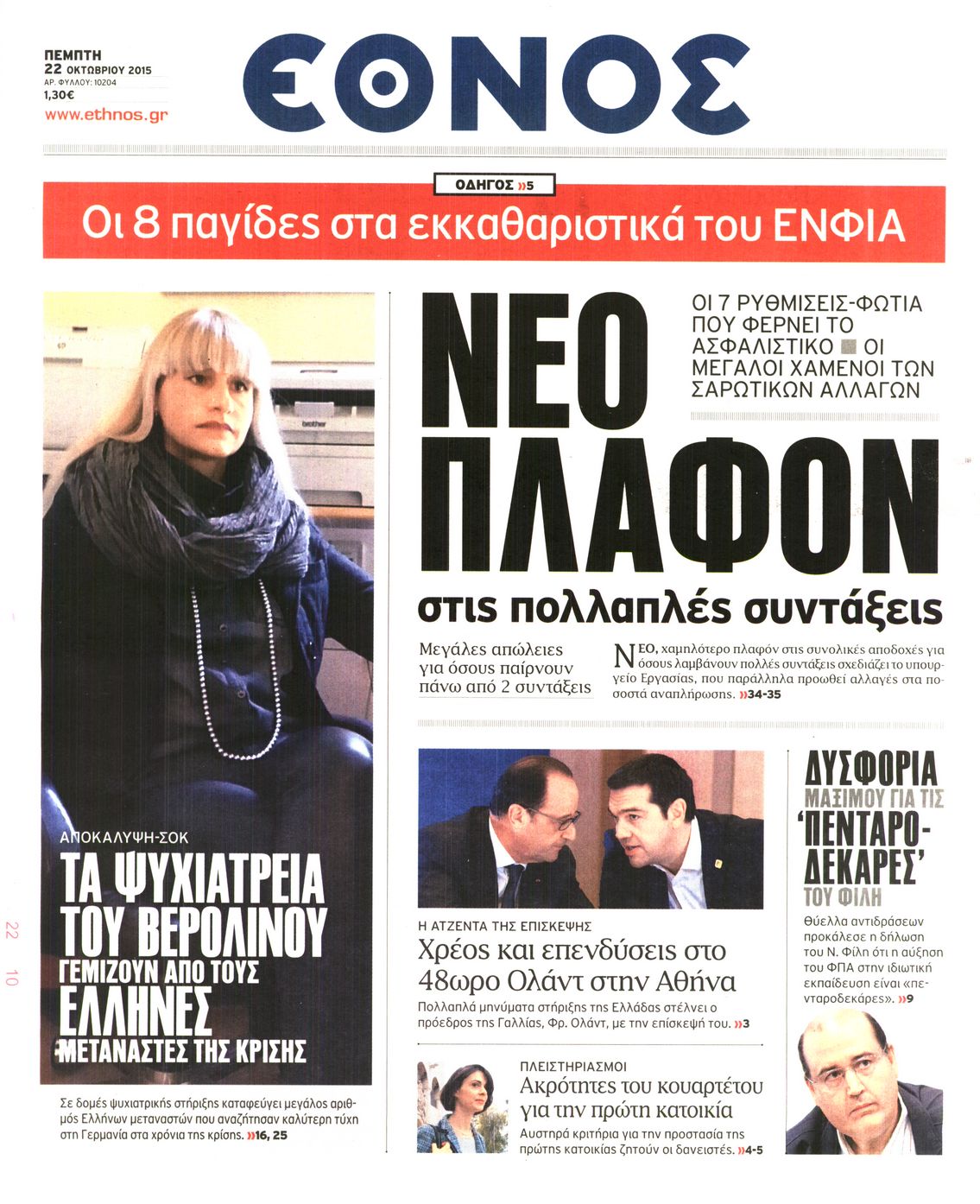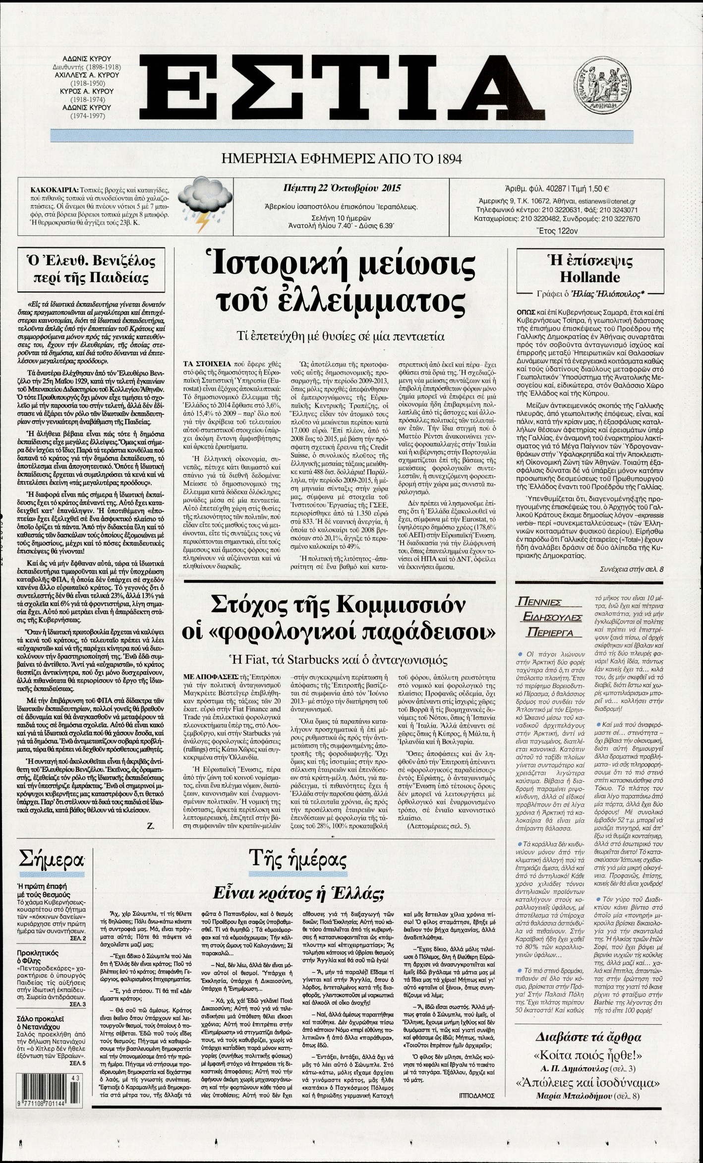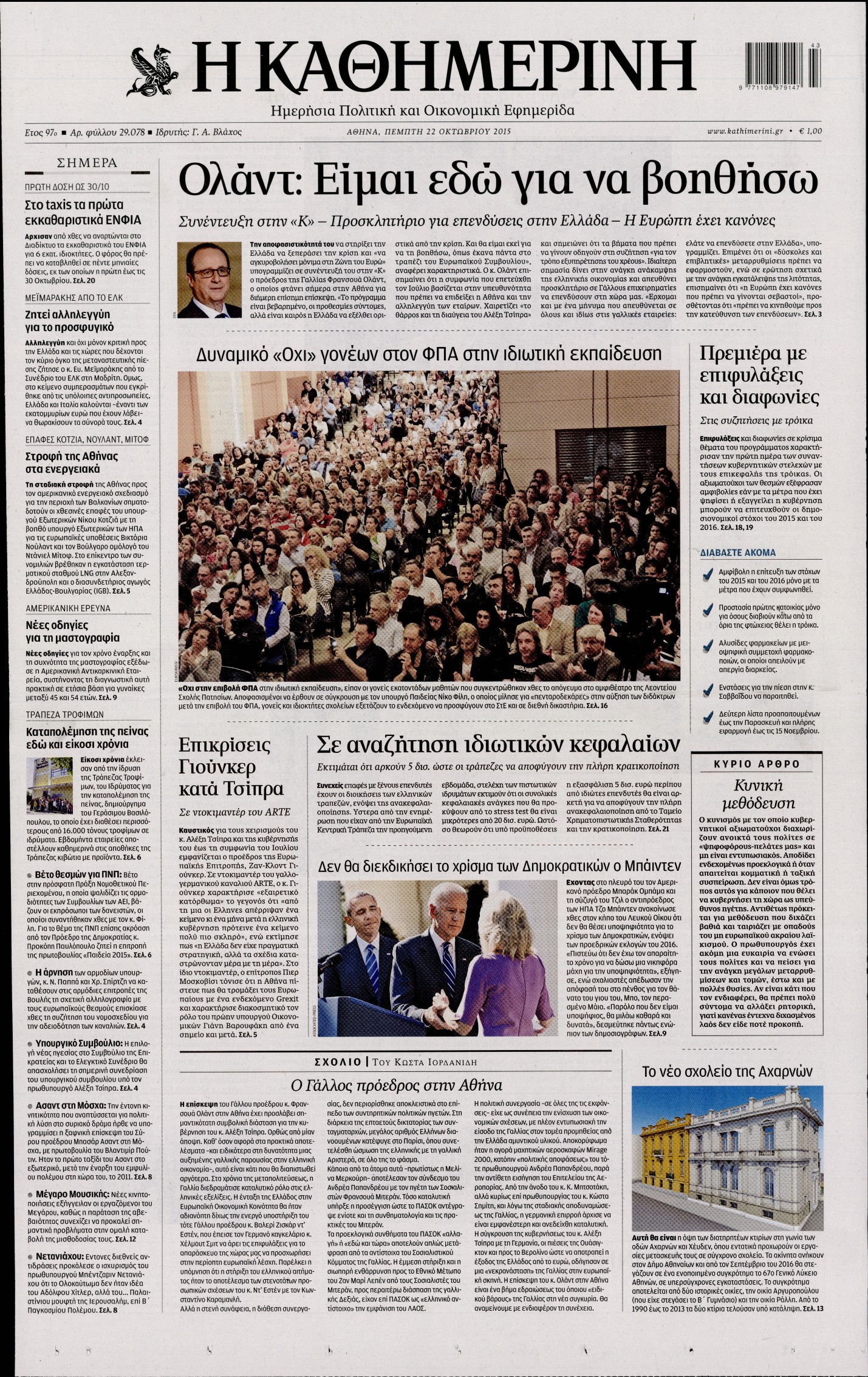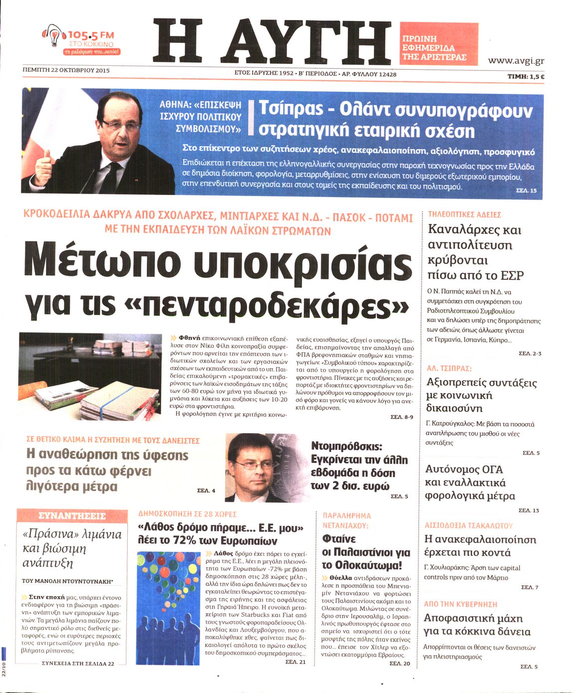 Οι πολιτικές εφημερίδες 22/10/2015 Enikos Newsroom 05:50, Πέμπτη 22 Οκτωβρίου 2015 Media Διαβάστε τα σημερινά πρωτοσέλιδα των πολιτικών εφημερίδων. ΕΦΗΜΕΡΙΔΕΣ ΠΟΛΙΤΙΚΕΣ ΕΦΗΜΕΡΙΔΕΣ ΠΡΩΤΟΣΕΛΙΔΑ Μοιράσου το: σχολίασε κι εσύ (0 σχόλια) Ακολουθήστε το enikos.gr στο Google News και μάθετε πρώτοι όλες τις ειδήσεις Δείτε όλες τις τελευταίες ειδήσεις από την Ελλάδα και τον Κόσμο στο enikos.gr Ειδήσεις Ροή Ειδήσεων 2 ώρες πριν Η Ουκρανία χτύπησε τάνκερ του σκιώδους στόλου της Ρωσίας στη Μεσόγειο – Έπλεε νότια της Κρήτης 4 ώρες πριν Πούτιν: Η Ουκρανία δεν είναι έτοιμη για ειρηνευτικές συνομιλίες – Ο ρωσικός στρατός προελαύνει σε όλα τα μέτωπα 46 λεπτά πριν Θεσσαλονίκη: Στη φυλακή ο 44χρονος που κατηγορείται ότι προσπάθησε να πνίξει με κορδόνι την 34χρονη σύντροφό του 1 ώρα πριν Εξώδικο επιχειρηματία στον Γιώργο Μαζωνάκη – Τι απαντά στις καταγγελίες του τραγουδιστή 2 ώρες πριν Βουλή: Υπερψηφίστηκε το νομοσχέδιο για την ένταξη του ΟΠΕΚΕΠΕ στην ΑΑΔΕ 6 ώρες πριν Αλλαγή σελίδας για 3 ζώδια – «Μία δύσκολη περίοδος φτάνει στο τέλος της» 2 ημέρες πριν 20 χρόνια τα Χριστούγεννα ξεκινούν στα Public με μεγάλη ποικιλία σε δώρα! 5 ώρες πριν Γεμάτος νεροχύτης; 5 σοβαρές ευθύνες που «φοβίζουν» όσους αφήνουν άπλυτα πιάτα 4 ώρες πριν Ειδικός μοιράζεται 6 κόλπα για να διατηρείστε σε φόρμα με πάνω από 40 ώρες εργασίας την εβδομάδα: «Προπονηθείτε πριν από τη δουλειά, όχι μετά» 45 δευτερόλεπτα πριν Ηράκλειο: Νεκρός ένας 65χρονος μοτοσικλετιστής έπειτα από σφοδρή σύγκρουση οχημάτων – ΦΩΤΟ 9 λεπτά πριν Πούτιν: Σαρκαστικά μηνύματα, παράπονα και απρόοπτα στη συνέντευξη Τύπου – Η πρόταση γάμου on air και οι ερωτήσεις για τα αγγούρια και τους… εξωγήινους 16 λεπτά πριν Κρήτη: Ένοχος ο 54χρονος «ερευνητής» για απάτη στην υπόθεση του 33χρονου γιατρού που αγνοείται 16 λεπτά πριν Νίκος Κούρκουλος: Αυτός ο αλύγιστος και ασυμβίβαστος «Αστραπόγιαννος» 22 λεπτά πριν Παναθηναϊκός: Θα προτείνει στη Λάτσιο 4 εκατ. ευρώ και συνιδιοκτησία για τον Μανδά ENIKOS NETWORK Τάξη στις ιατρικές διαφημίσεις για την προστασία των πολιτών βάζει ο ΙΣΑ Μακροζωία: Τι παίζει πιο σημαντικό ρόλο ακόμα και από την διατροφή και την άσκηση, σύμφωνα με μελέτη Βουλή: Υπερψηφίστηκε το νομοσχέδιο για τη μετάβαση του ΟΠΕΚΕΠΕ στην ΑΑΔΕ ΕΥΔΑΠ: Οδηγός για τις αλλαγές στα τιμολόγια του νερού – 17 ερωτήσεις και απαντήσεις Χαρτογραφώντας το «σημείο χωρίς επιστροφή»: Για πρώτη φορά αποκαλύπτεται με λεπτομέρεια το ακανθώδες όριο της ατμόσφαιρας τ... Η Google καταργεί τη λειτουργία «dark web report» – Πώς θα μπορούν οι χρήστες να διαγράφουν τα δεδομένα τους περισσότερα 15:15 , Παρασκευή 19 Δεκεμβρίου 2025 Την Κυριακή με τη Realnews: Ό,τι και αν αγοράσεις, σκανάρεις και κερδίζεις! Την Κυριακή με τη Realnews: Ό,τι και αν αγοράσεις, σκανάρεις και κερδίζεις! Με το PADU app, το... 08:00 , Παρασκευή 19 Δεκεμβρίου 2025 Την Κυριακή με τη Realnews: Δωροεπιταγή 10€ Δωροεπιταγή αξίας 10€ για αγορές άνω των 60€ από τα πολυκαταστήματα FactoryOutlet H προσφορά ι... 05:48 , Παρασκευή 19 Δεκεμβρίου 2025 Οι οικονομικές εφημερίδες 19/12/2025 Διαβάστε τα πρωτοσέλιδα από τις οικονομικές εφημερίδες, σήμερα 19/12/2025. 05:43 , Παρασκευή 19 Δεκεμβρίου 2025 Οι αθλητικές εφημερίδες 19/12/2025 Διαβάστε τα πρωτοσέλιδα από τις αθλητικές εφημερίδες, σήμερα 19/12/2025. ΤΕΛΕΥΤΑΙΕΣ ΕΙΔΗΣΕΙΣ 9 λεπτά πριν Πούτιν: Σαρκαστικά μηνύματα, παράπονα και απρόοπτα... 16 λεπτά πριν Κρήτη: Ένοχος ο 54χρονος «ερευνητής» για απάτη στην... 16 λεπτά πριν Νίκος Κούρκουλος: Αυτός ο αλύγιστος και ασυμβίβαστος..