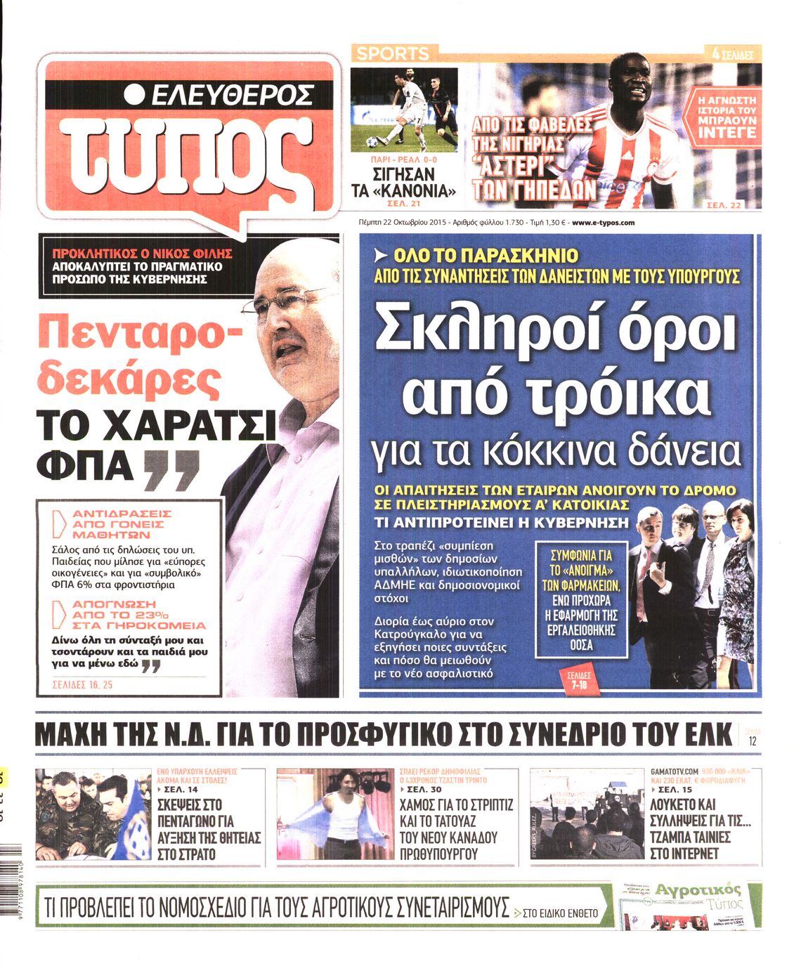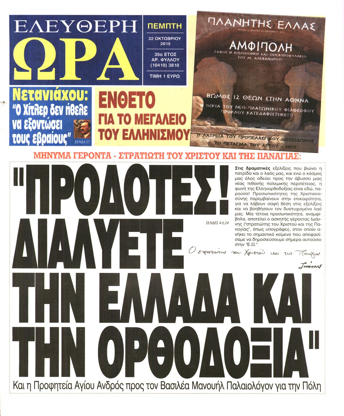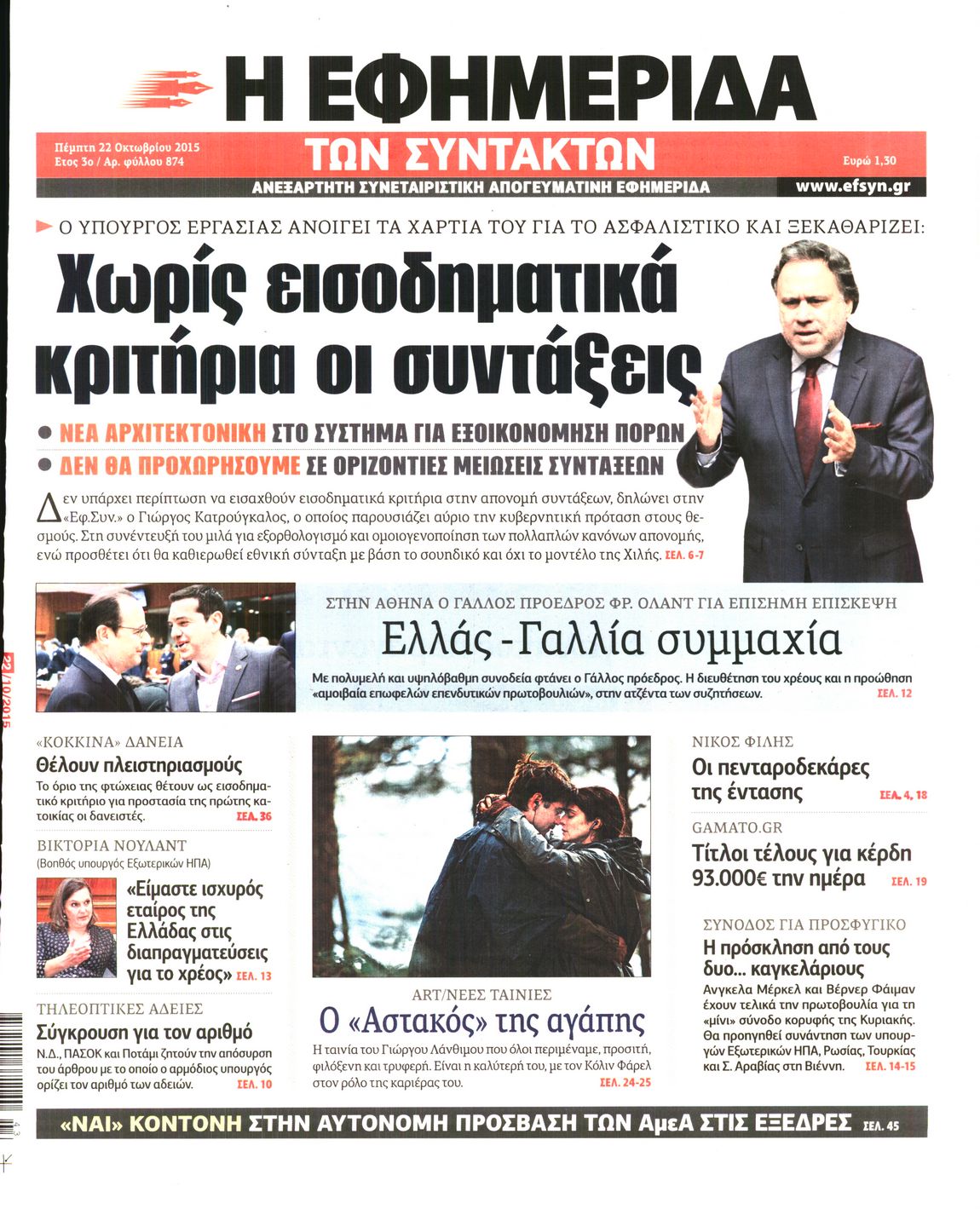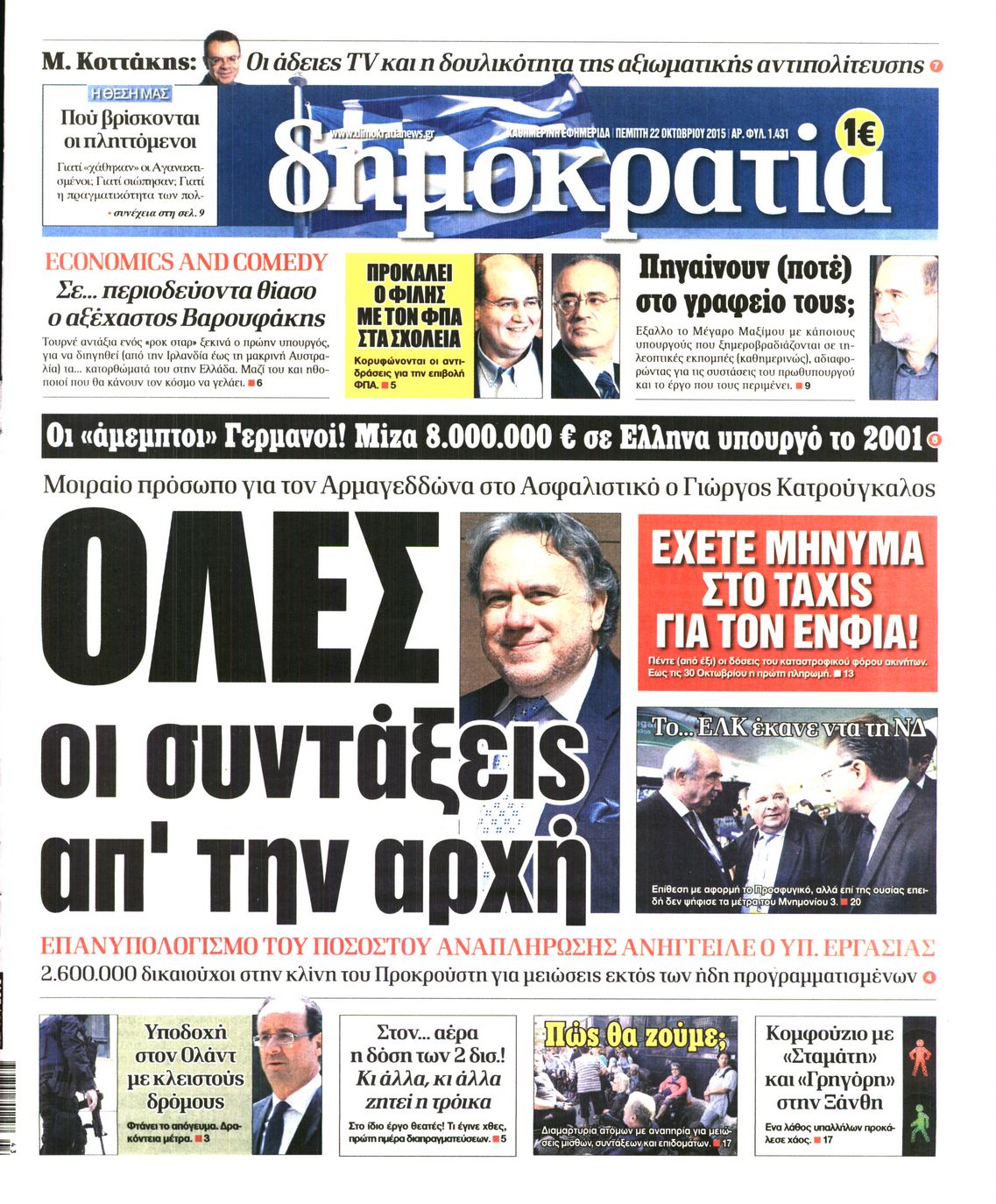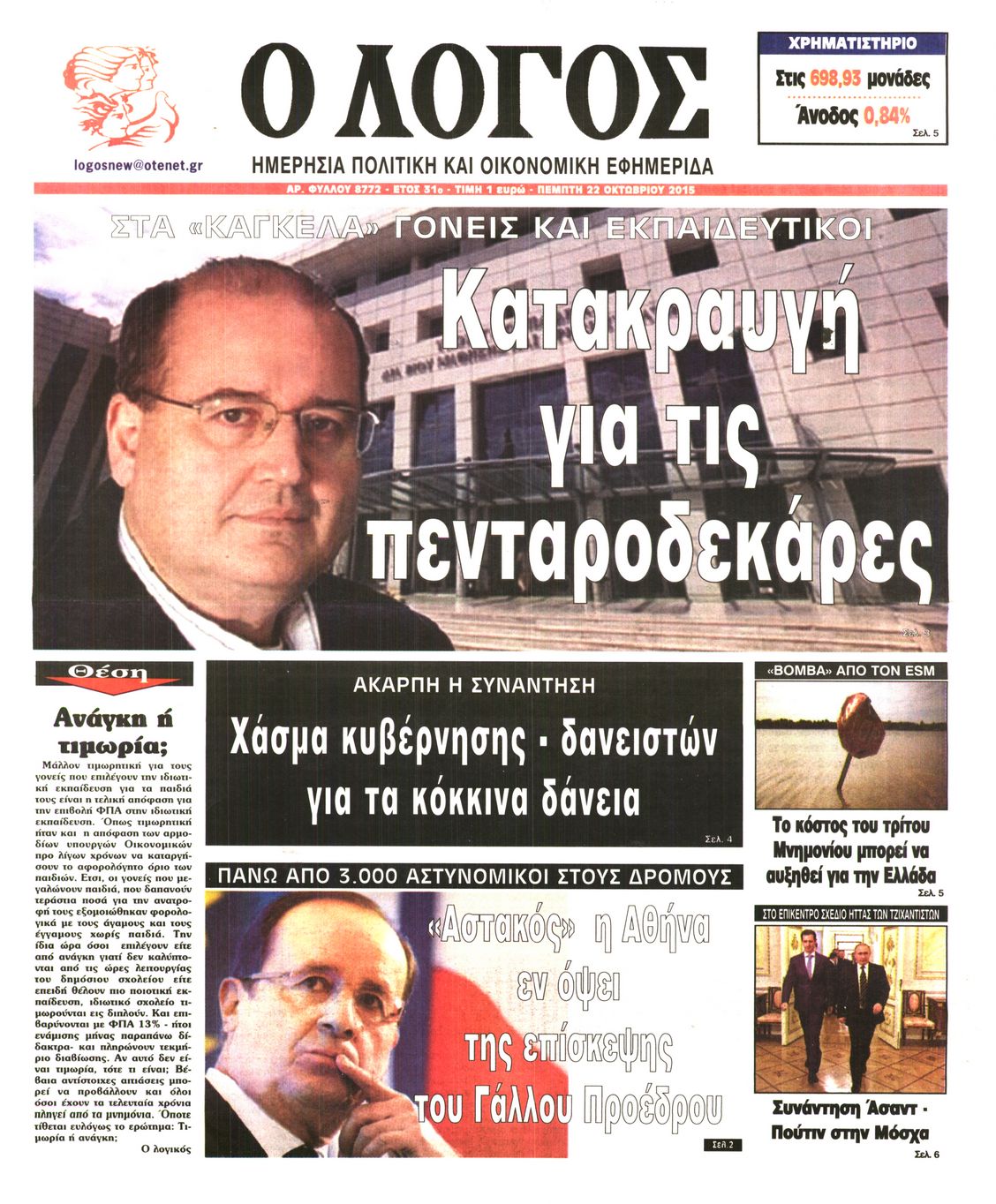 Οι πολιτικές εφημερίδες 22/10/2015 Enikos Newsroom 05:50, Πέμπτη 22 Οκτωβρίου 2015 Media Διαβάστε τα σημερινά πρωτοσέλιδα των πολιτικών εφημερίδων. ΕΦΗΜΕΡΙΔΕΣ ΠΟΛΙΤΙΚΕΣ ΕΦΗΜΕΡΙΔΕΣ ΠΡΩΤΟΣΕΛΙΔΑ Μοιράσου το: σχολίασε κι εσύ (0 σχόλια) Ακολουθήστε το enikos.gr στο Google News και μάθετε πρώτοι όλες τις ειδήσεις Δείτε όλες τις τελευταίες ειδήσεις από την Ελλάδα και τον Κόσμο στο enikos.gr Ειδήσεις Ροή Ειδήσεων 2 ώρες πριν Η Ουκρανία χτύπησε τάνκερ του σκιώδους στόλου της Ρωσίας στη Μεσόγειο – Έπλεε νότια της Κρήτης 4 ώρες πριν Πούτιν: Η Ουκρανία δεν είναι έτοιμη για ειρηνευτικές συνομιλίες – Ο ρωσικός στρατός προελαύνει σε όλα τα μέτωπα 46 λεπτά πριν Θεσσαλονίκη: Στη φυλακή ο 44χρονος που κατηγορείται ότι προσπάθησε να πνίξει με κορδόνι την 34χρονη σύντροφό του 1 ώρα πριν Εξώδικο επιχειρηματία στον Γιώργο Μαζωνάκη – Τι απαντά στις καταγγελίες του τραγουδιστή 2 ώρες πριν Βουλή: Υπερψηφίστηκε το νομοσχέδιο για την ένταξη του ΟΠΕΚΕΠΕ στην ΑΑΔΕ 6 ώρες πριν Αλλαγή σελίδας για 3 ζώδια – «Μία δύσκολη περίοδος φτάνει στο τέλος της» 2 ημέρες πριν 20 χρόνια τα Χριστούγεννα ξεκινούν στα Public με μεγάλη ποικιλία σε δώρα! 5 ώρες πριν Γεμάτος νεροχύτης; 5 σοβαρές ευθύνες που «φοβίζουν» όσους αφήνουν άπλυτα πιάτα 4 ώρες πριν Ειδικός μοιράζεται 6 κόλπα για να διατηρείστε σε φόρμα με πάνω από 40 ώρες εργασίας την εβδομάδα: «Προπονηθείτε πριν από τη δουλειά, όχι μετά» 45 δευτερόλεπτα πριν Ηράκλειο: Νεκρός ένας 65χρονος μοτοσικλετιστής έπειτα από σφοδρή σύγκρουση οχημάτων – ΦΩΤΟ 9 λεπτά πριν Πούτιν: Σαρκαστικά μηνύματα, παράπονα και απρόοπτα στη συνέντευξη Τύπου – Η πρόταση γάμου on air και οι ερωτήσεις για τα αγγούρια και τους… εξωγήινους 16 λεπτά πριν Κρήτη: Ένοχος ο 54χρονος «ερευνητής» για απάτη στην υπόθεση του 33χρονου γιατρού που αγνοείται 16 λεπτά πριν Νίκος Κούρκουλος: Αυτός ο αλύγιστος και ασυμβίβαστος «Αστραπόγιαννος» 22 λεπτά πριν Παναθηναϊκός: Θα προτείνει στη Λάτσιο 4 εκατ. ευρώ και συνιδιοκτησία για τον Μανδά ENIKOS NETWORK Τάξη στις ιατρικές διαφημίσεις για την προστασία των πολιτών βάζει ο ΙΣΑ Μακροζωία: Τι παίζει πιο σημαντικό ρόλο ακόμα και από την διατροφή και την άσκηση, σύμφωνα με μελέτη Βουλή: Υπερψηφίστηκε το νομοσχέδιο για τη μετάβαση του ΟΠΕΚΕΠΕ στην ΑΑΔΕ ΕΥΔΑΠ: Οδηγός για τις αλλαγές στα τιμολόγια του νερού – 17 ερωτήσεις και απαντήσεις Χαρτογραφώντας το «σημείο χωρίς επιστροφή»: Για πρώτη φορά αποκαλύπτεται με λεπτομέρεια το ακανθώδες όριο της ατμόσφαιρας τ... Η Google καταργεί τη λειτουργία «dark web report» – Πώς θα μπορούν οι χρήστες να διαγράφουν τα δεδομένα τους περισσότερα 15:15 , Παρασκευή 19 Δεκεμβρίου 2025 Την Κυριακή με τη Realnews: Ό,τι και αν αγοράσεις, σκανάρεις και κερδίζεις! Την Κυριακή με τη Realnews: Ό,τι και αν αγοράσεις, σκανάρεις και κερδίζεις! Με το PADU app, το... 08:00 , Παρασκευή 19 Δεκεμβρίου 2025 Την Κυριακή με τη Realnews: Δωροεπιταγή 10€ Δωροεπιταγή αξίας 10€ για αγορές άνω των 60€ από τα πολυκαταστήματα FactoryOutlet H προσφορά ι... 05:48 , Παρασκευή 19 Δεκεμβρίου 2025 Οι οικονομικές εφημερίδες 19/12/2025 Διαβάστε τα πρωτοσέλιδα από τις οικονομικές εφημερίδες, σήμερα 19/12/2025. 05:43 , Παρασκευή 19 Δεκεμβρίου 2025 Οι αθλητικές εφημερίδες 19/12/2025 Διαβάστε τα πρωτοσέλιδα από τις αθλητικές εφημερίδες, σήμερα 19/12/2025. ΤΕΛΕΥΤΑΙΕΣ ΕΙΔΗΣΕΙΣ 9 λεπτά πριν Πούτιν: Σαρκαστικά μηνύματα, παράπονα και απρόοπτα... 16 λεπτά πριν Κρήτη: Ένοχος ο 54χρονος «ερευνητής» για απάτη στην... 16 λεπτά πριν Νίκος Κούρκουλος: Αυτός ο αλύγιστος και ασυμβίβαστος..
