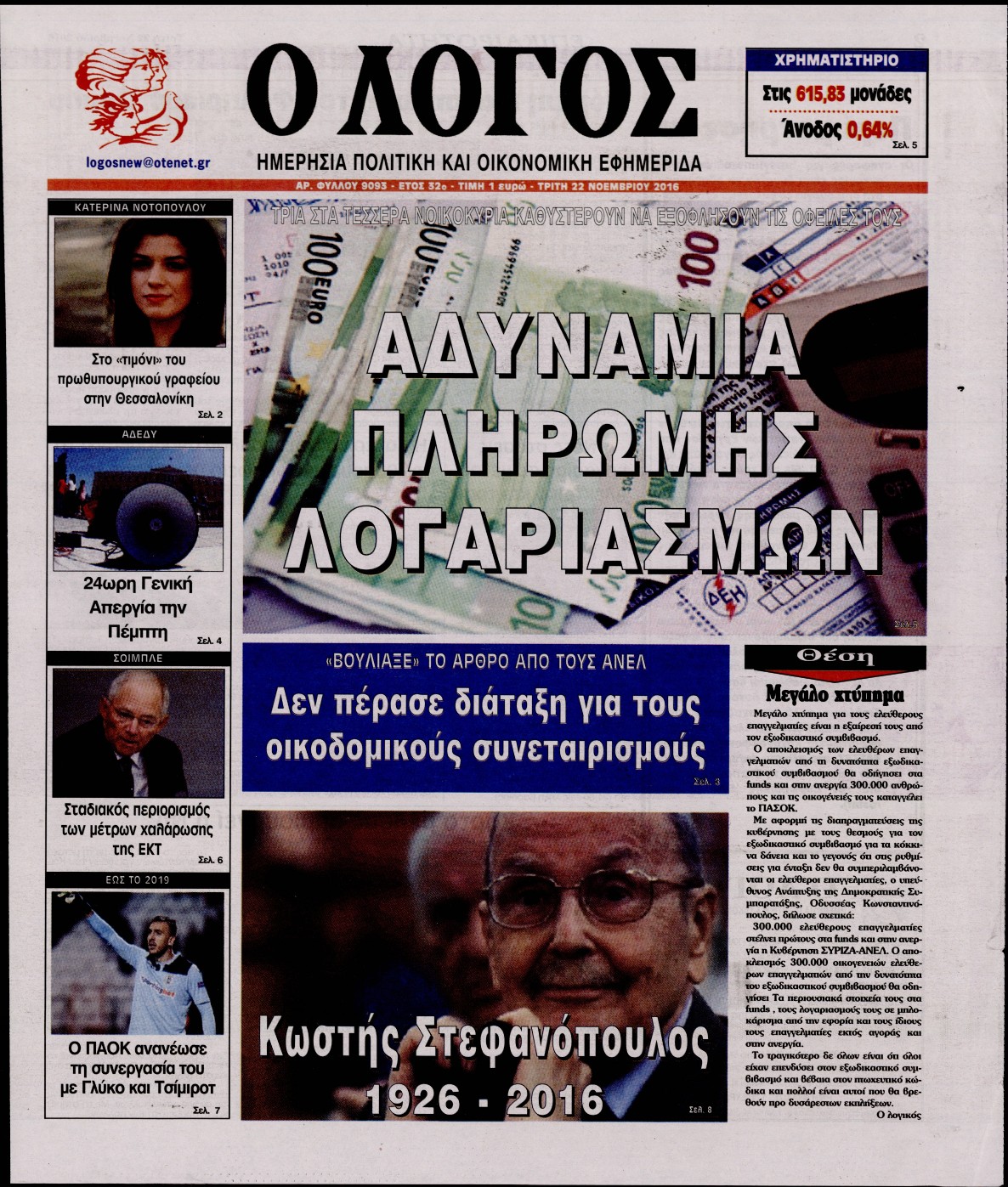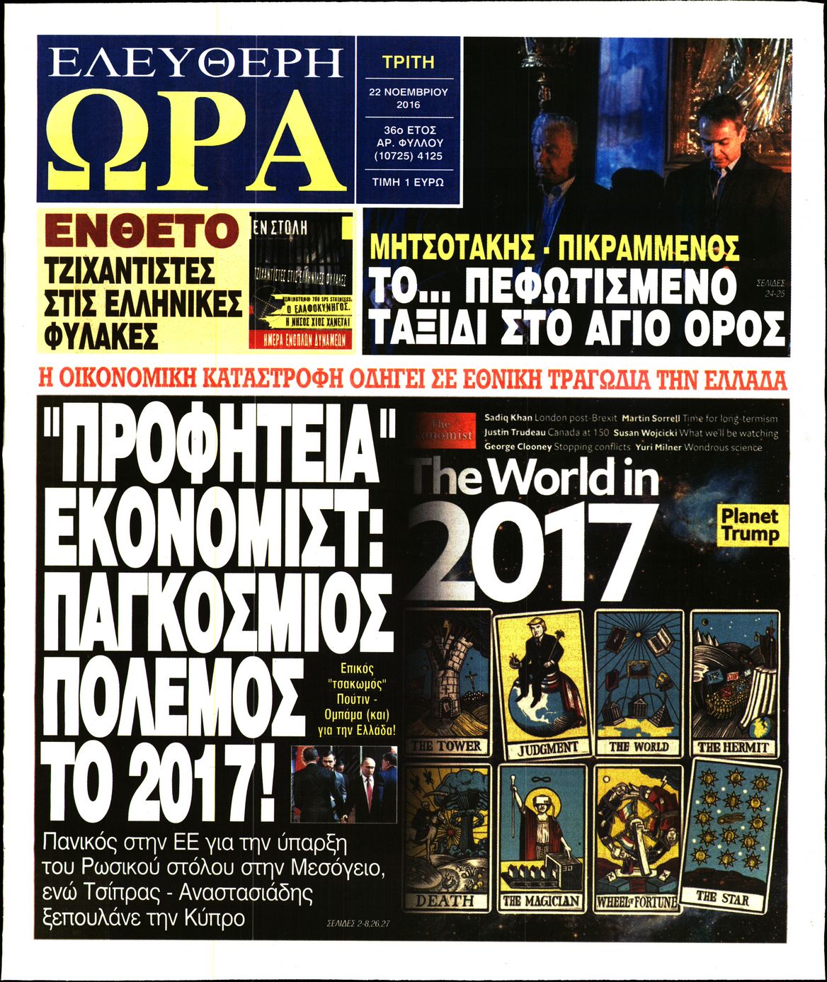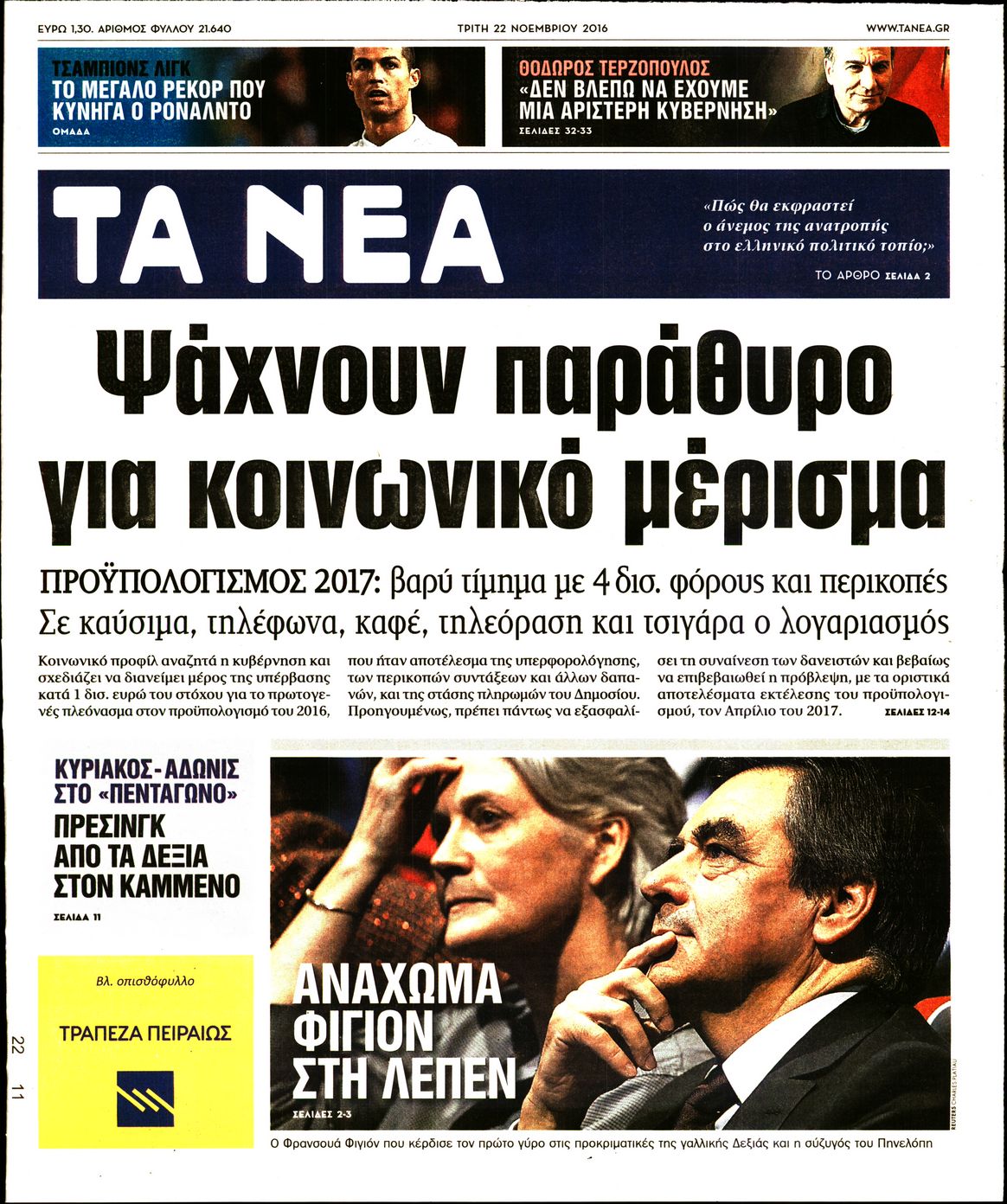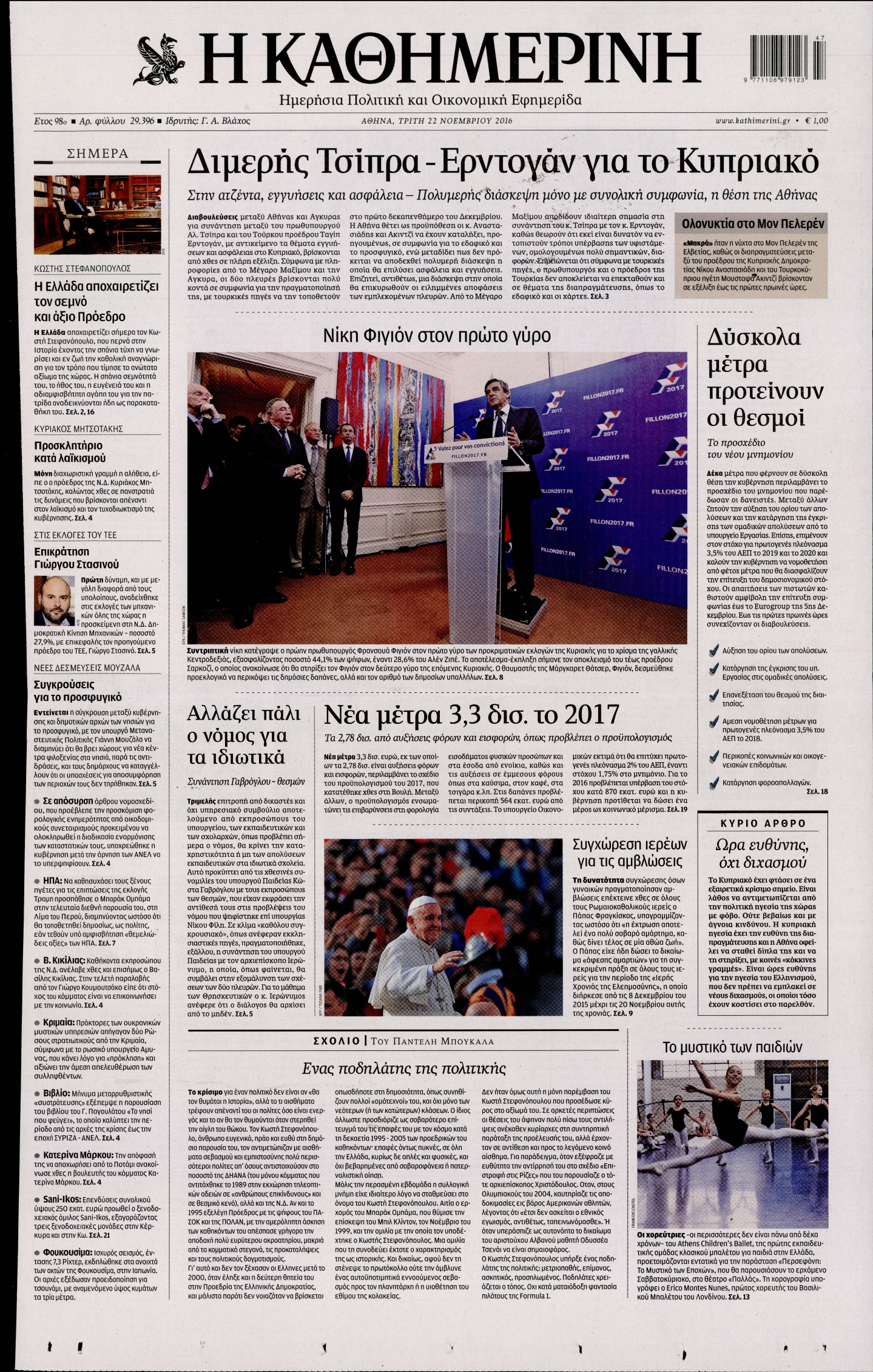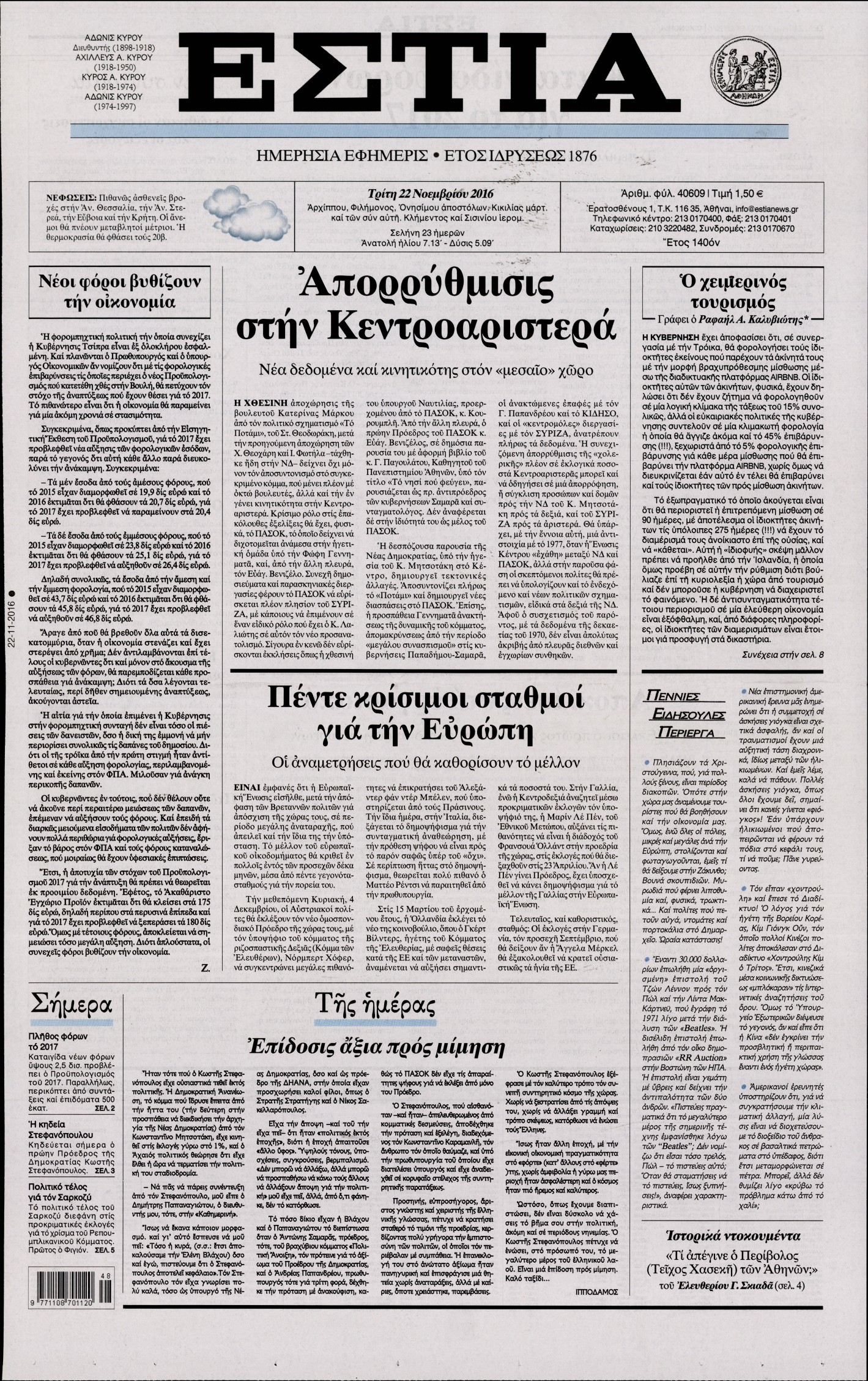Οι πολιτικές εφημερίδες 22/11/2016 Enikos Newsroom 01:14, Τρίτη 22 Νοεμβρίου 2016 Media Διαβάστε τα σημερινά πρωτοσέλιδα των πολιτικών εφημερίδων: ΠΟΛΙΤΙΚΕΣ ΕΦΗΜΕΡΙΔΕΣ ΠΡΩΤΟΣΕΛΙΔΑ Μοιράσου το: σχολίασε κι εσύ (0 σχόλια) Ακολουθήστε το enikos.gr στο Google News και μάθετε πρώτοι όλες τις ειδήσεις Δείτε όλες τις τελευταίες ειδήσεις από την Ελλάδα και τον Κόσμο στο enikos.gr Ειδήσεις Ροή Ειδήσεων 2 ώρες πριν Ακίλα Σάλεχ: «Άκυρο» το τουρκολιβυκό μνημόνιο λέει ο πρόεδρος της λιβυκής Βουλής – Ανοίγει ο διάλογος με Ελλάδα, Αίγυπτο και Τουρκία 6 ώρες πριν Αγρότες: Την Τρίτη η απόφαση για διάλογο ή κλιμάκωση των κινητοποιήσεών τους – Πώς χαρακτηρίζουν τις ανακοινώσεις Τσιάρα και οι επόμενες κινήσεις 6 ώρες πριν Τραμπ για Ουκρανία: «Είμαστε πιο κοντά σε συμφωνία από ποτέ» – «Πολυεθνική δύναμη» προτείνουν οι Ευρωπαίοι 6 ώρες πριν Κυψέλη: Η 16χρονη που μαχαίρωσε την 14χρονη είχε συλληφθεί 3 φορές στο παρελθόν – Έβριζε καθηγητές, έβαζε φωτιές σε κάδους και εκβίαζε συμμαθητές της 5 ώρες πριν Τρομοκρατική επίθεση στο Σίδνεϊ: Θλίψη για τα 15 θύματα – Οργή στην εβραϊκή κοινότητα που προειδοποιούσε επί δύο χρόνια 6 ώρες πριν Επιστήμονες ίσως έλυσαν το μυστήριο γύρω από τα Χόμπιτ – Νέα έρευνα αποκαλύπτει πώς εξαφανίστηκαν 7 ώρες πριν Ύπνος: Η αρχαία μορφή άσκησης που αποδεικνύεται αποτελεσματική στην αντιμετώπιση της αϋπνίας, σύμφωνα με μελέτη 8 ώρες πριν Αριθμολογία: Ο τυχερός σας αριθμός, ανάλογα με τον μήνα γέννησής σας 9 ώρες πριν Πώς να μην μαραίνονται γρήγορα τα κομμένα λουλούδια: Το λάθος στην τοποθέτηση του βάζου που πρέπει να αποφεύγετε 12 λεπτά πριν Νεοκλής Αβδάλας: Συνεχίζει να εντυπωσιάζει τους Αμερικάνους – Αναδείχθηκε Rookie of the week στην περιφέρειά του στο NCAA 23 λεπτά πριν Άντονι Αλμπανέζι: Κίνητρο της φονικής επίθεσης στην παραλία Μπόνταϊ μοιάζει να ήταν η ιδεολογία του Ισλαμικού Κράτους 31 λεπτά πριν Ντόναλντ Τραμπ: Κατέθεσε αγωγή 10 δισ. δολαρίων κατά του BBC, για συκοφαντική δυσφήμιση 41 λεπτά πριν ΗΠΑ: «Όπλο μαζικής καταστροφής» xαρακτήρισε ο Ντόναλντ Τραμπ τη φαιντανύλη 56 λεπτά πριν Στέλλα Κονιτοπούλου: «Η κόρη μου με έστειλε για ψυχοθεραπεία για να μπορέσω να το διαχειριστώ» ENIKOS NETWORK Πότε το χρόνιο ροχαλητό να αποτελέσει ένδειξη κινδύνου για την καρδιά; Τι λένε οι ειδικοί Μάριος Θεμιστοκλέους: Το ΕΣΥ ενισχύεται, εκσυγχρονίζεται, αλλάζει ΕΒΕΠ για αγροτικές κινητοποιήσεις: Κάθε επιπλέον εβδομάδα προσθέτει περίπου 200 εκατ. ευρώ ζημιά Τι προβλέπει το νομοσχέδιο του υπουργείου Εθνικής Άμυνας – Oι αλλαγές στους μισθούς Σύγχρονος Νοστράδαμος: Προειδοποιεί για «μεγάλο γεγονός» τους επόμενους μήνες που θα συγκλονίσει τη Βρετανία και τον κόσμο Τεστ παρατηρητικότητας: Μπορείτε να βρείτε τις 3 διαφορές στις εικόνες με έναν πιγκουίνο σε 14 δευτερόλεπτα περισσότερα 21:35 , Δευτέρα 15 Δεκεμβρίου 2025 Το Σπίτι Δίπλα Στο Ποτάμι: Η Ιουλία και ο Φωκάς μετακομίζουν στη Ρόδο – Δύο νέοι χαρακτήρες μπαίνουν στη σειρά Δύο νέοι, κομβικοί χαρακτήρες κάνουν την εμφάνισή τους αυτή την εβδομάδα στην αγαπημένη σειρά ... 19:46 , Δευτέρα 15 Δεκεμβρίου 2025 Άγιος έρωτας: Η Χριστίνα λέει την αλήθεια στον Αντρέα Ο Βασίλης δέχεται επίθεση από τους συμμαθητές του, η Αναστασία είναι συντετριμμένη με την απώλ... 18:45 , Δευτέρα 15 Δεκεμβρίου 2025 Συνέδριο «Ελληνικός Τουρισμός 2025, Μια εθνική υπόθεση!» – «Ο Θαλάσσιος Πυλώνας ως Ενιαία Στρατηγική: Συνέργειες σε Λιμάνια, Μαρίνες, Ακτοπλοΐα, Κρουαζιέρα και Yachting» Στο πλαίσιο της τέτα