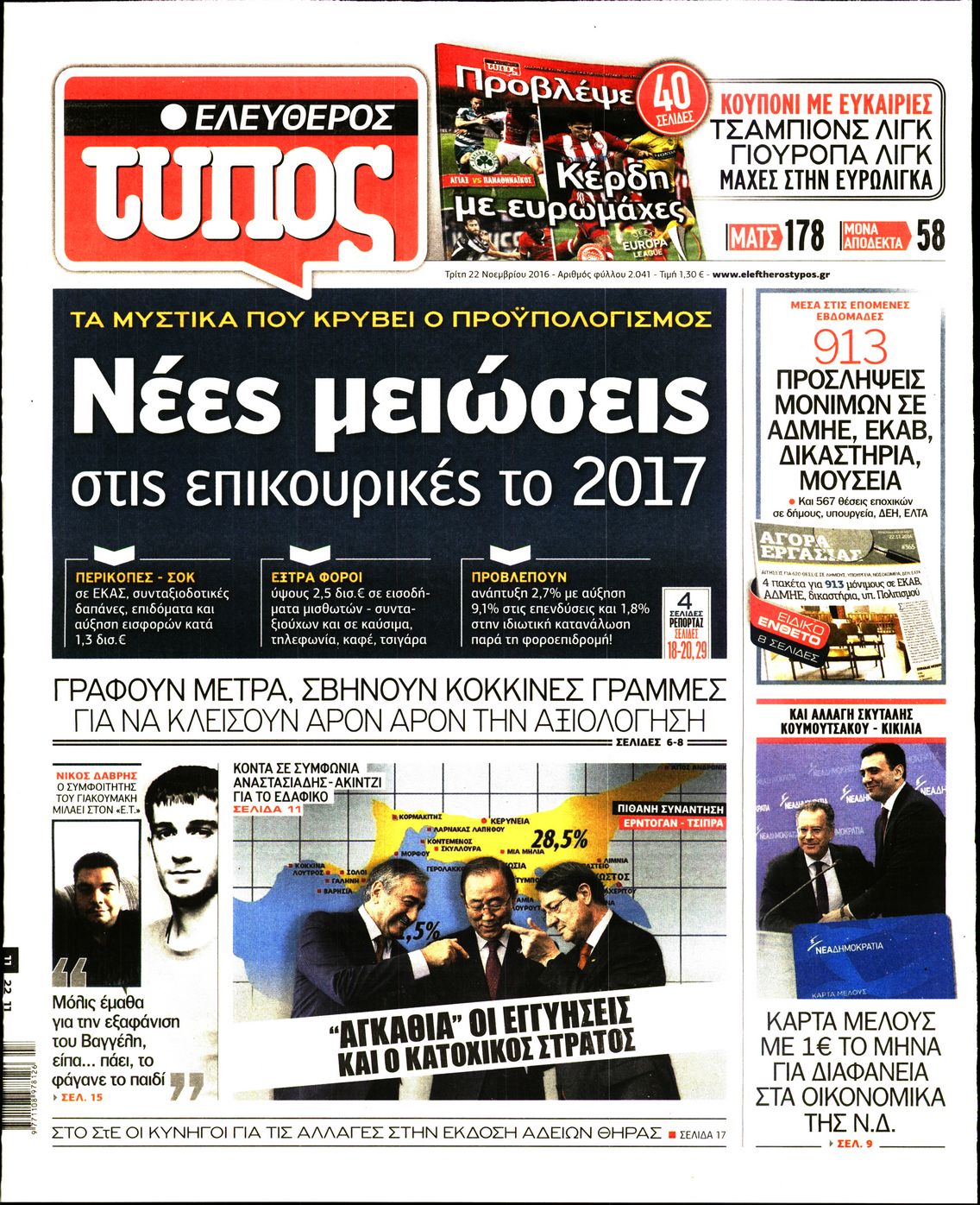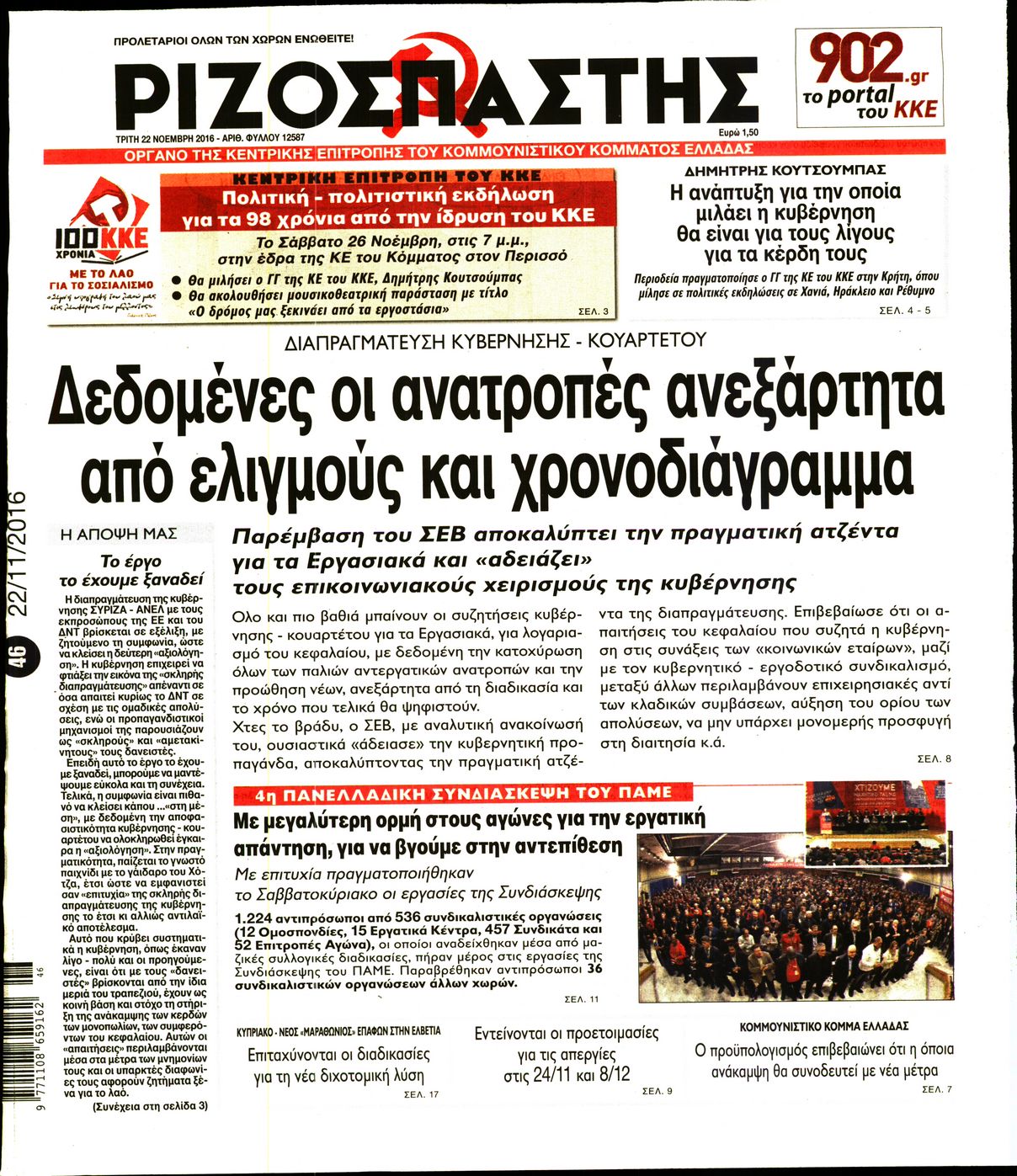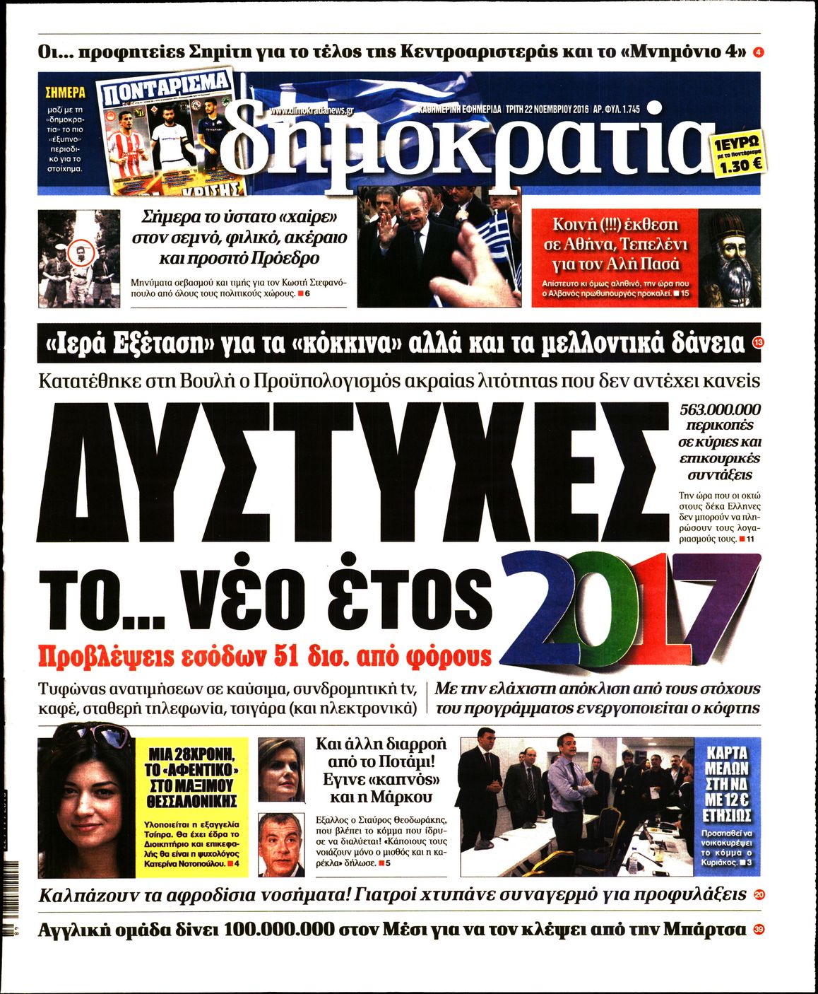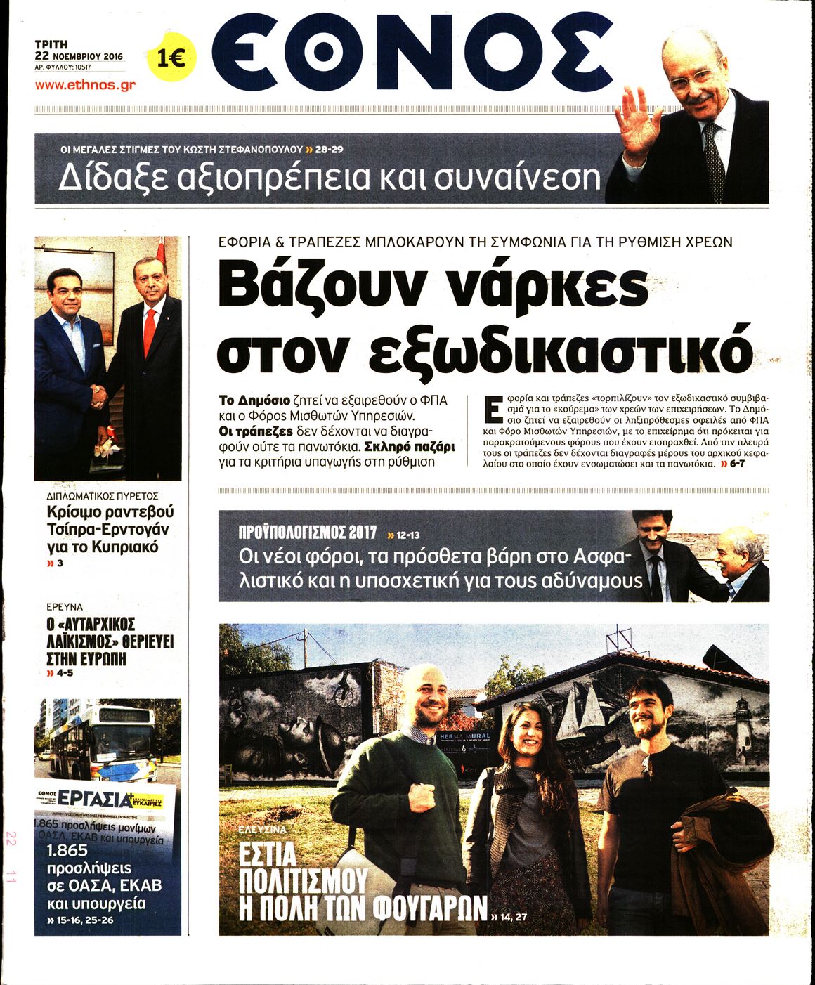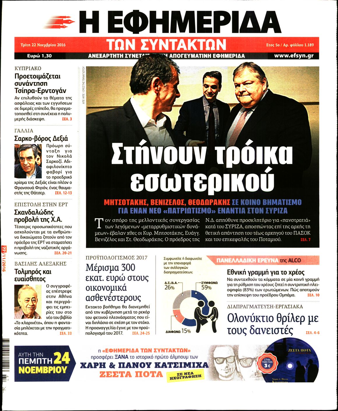 Οι πολιτικές εφημερίδες 22/11/2016 Enikos Newsroom 01:14, Τρίτη 22 Νοεμβρίου 2016 Media Διαβάστε τα σημερινά πρωτοσέλιδα των πολιτικών εφημερίδων: ΠΟΛΙΤΙΚΕΣ ΕΦΗΜΕΡΙΔΕΣ ΠΡΩΤΟΣΕΛΙΔΑ Μοιράσου το: σχολίασε κι εσύ (0 σχόλια) Ακολουθήστε το enikos.gr στο Google News και μάθετε πρώτοι όλες τις ειδήσεις Δείτε όλες τις τελευταίες ειδήσεις από την Ελλάδα και τον Κόσμο στο enikos.gr Ειδήσεις Ροή Ειδήσεων 2 ώρες πριν Ακίλα Σάλεχ: «Άκυρο» το τουρκολιβυκό μνημόνιο λέει ο πρόεδρος της λιβυκής Βουλής – Ανοίγει ο διάλογος με Ελλάδα, Αίγυπτο και Τουρκία 6 ώρες πριν Αγρότες: Την Τρίτη η απόφαση για διάλογο ή κλιμάκωση των κινητοποιήσεών τους – Πώς χαρακτηρίζουν τις ανακοινώσεις Τσιάρα και οι επόμενες κινήσεις 6 ώρες πριν Τραμπ για Ουκρανία: «Είμαστε πιο κοντά σε συμφωνία από ποτέ» – «Πολυεθνική δύναμη» προτείνουν οι Ευρωπαίοι 6 ώρες πριν Κυψέλη: Η 16χρονη που μαχαίρωσε την 14χρονη είχε συλληφθεί 3 φορές στο παρελθόν – Έβριζε καθηγητές, έβαζε φωτιές σε κάδους και εκβίαζε συμμαθητές της 5 ώρες πριν Τρομοκρατική επίθεση στο Σίδνεϊ: Θλίψη για τα 15 θύματα – Οργή στην εβραϊκή κοινότητα που προειδοποιούσε επί δύο χρόνια 6 ώρες πριν Επιστήμονες ίσως έλυσαν το μυστήριο γύρω από τα Χόμπιτ – Νέα έρευνα αποκαλύπτει πώς εξαφανίστηκαν 7 ώρες πριν Ύπνος: Η αρχαία μορφή άσκησης που αποδεικνύεται αποτελεσματική στην αντιμετώπιση της αϋπνίας, σύμφωνα με μελέτη 8 ώρες πριν Αριθμολογία: Ο τυχερός σας αριθμός, ανάλογα με τον μήνα γέννησής σας 9 ώρες πριν Πώς να μην μαραίνονται γρήγορα τα κομμένα λουλούδια: Το λάθος στην τοποθέτηση του βάζου που πρέπει να αποφεύγετε 12 λεπτά πριν Νεοκλής Αβδάλας: Συνεχίζει να εντυπωσιάζει τους Αμερικάνους – Αναδείχθηκε Rookie of the week στην περιφέρειά του στο NCAA 23 λεπτά πριν Άντονι Αλμπανέζι: Κίνητρο της φονικής επίθεσης στην παραλία Μπόνταϊ μοιάζει να ήταν η ιδεολογία του Ισλαμικού Κράτους 31 λεπτά πριν Ντόναλντ Τραμπ: Κατέθεσε αγωγή 10 δισ. δολαρίων κατά του BBC, για συκοφαντική δυσφήμιση 41 λεπτά πριν ΗΠΑ: «Όπλο μαζικής καταστροφής» xαρακτήρισε ο Ντόναλντ Τραμπ τη φαιντανύλη 56 λεπτά πριν Στέλλα Κονιτοπούλου: «Η κόρη μου με έστειλε για ψυχοθεραπεία για να μπορέσω να το διαχειριστώ» ENIKOS NETWORK Πότε το χρόνιο ροχαλητό να αποτελέσει ένδειξη κινδύνου για την καρδιά; Τι λένε οι ειδικοί Μάριος Θεμιστοκλέους: Το ΕΣΥ ενισχύεται, εκσυγχρονίζεται, αλλάζει ΕΒΕΠ για αγροτικές κινητοποιήσεις: Κάθε επιπλέον εβδομάδα προσθέτει περίπου 200 εκατ. ευρώ ζημιά Τι προβλέπει το νομοσχέδιο του υπουργείου Εθνικής Άμυνας – Oι αλλαγές στους μισθούς Σύγχρονος Νοστράδαμος: Προειδοποιεί για «μεγάλο γεγονός» τους επόμενους μήνες που θα συγκλονίσει τη Βρετανία και τον κόσμο Τεστ παρατηρητικότητας: Μπορείτε να βρείτε τις 3 διαφορές στις εικόνες με έναν πιγκουίνο σε 14 δευτερόλεπτα περισσότερα 21:35 , Δευτέρα 15 Δεκεμβρίου 2025 Το Σπίτι Δίπλα Στο Ποτάμι: Η Ιουλία και ο Φωκάς μετακομίζουν στη Ρόδο – Δύο νέοι χαρακτήρες μπαίνουν στη σειρά Δύο νέοι, κομβικοί χαρακτήρες κάνουν την εμφάνισή τους αυτή την εβδομάδα στην αγαπημένη σειρά ... 19:46 , Δευτέρα 15 Δεκεμβρίου 2025 Άγιος έρωτας: Η Χριστίνα λέει την αλήθεια στον Αντρέα Ο Βασίλης δέχεται επίθεση από τους συμμαθητές του, η Αναστασία είναι συντετριμμένη με την απώλ... 18:45 , Δευτέρα 15 Δεκεμβρίου 2025 Συνέδριο «Ελληνικός Τουρισμός 2025, Μια εθνική υπόθεση!» – «Ο Θαλάσσιος Πυλώνας ως Ενιαία Στρατηγική: Συνέργειες σε Λιμάνια, Μαρίνες, Ακτοπλοΐα, Κρουαζιέρα και Yachting» Στο πλαίσιο της τέτα
