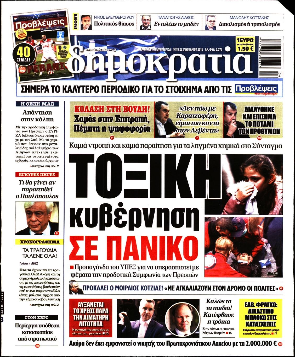 Οι πολιτικές εφημερίδες 22/1/19 Enikos Newsroom 06:30, Τρίτη 22 Ιανουαρίου 2019 Media Διαβάστε τα πρωτοσέλιδα των πολιτικών εφημερίδων: ΠΟΛΙΤΙΚΕΣ ΕΦΗΜΕΡΙΔΕΣ ΠΡΩΤΟΣΕΛΙΔΑ Μοιράσου το: σχολίασε κι εσύ (0 σχόλια) Ακολουθήστε το enikos.gr στο Google News και μάθετε πρώτοι όλες τις ειδήσεις Δείτε όλες τις τελευταίες ειδήσεις από την Ελλάδα και τον Κόσμο στο enikos.gr Ειδήσεις Ροή Ειδήσεων 3 ώρες πριν Υπόθεση Έπσταϊν: Το Υπουργείο Δικαιοσύνης δημοσιοποίησε μια σειρά από εξαιρετικά επεξεργασμένα αρχεία – «Λείπουν τα πιο σημαντικά έγγραφα», λένε οι Δημοκρατικοί 26 λεπτά πριν Γιορτές με μπλόκα για τους αγρότες: Ανοίγουν διόδια και μοιράζουν προϊόντα στους ταξιδιώτες 59 λεπτά πριν Εξαφάνιση 33χρονου γιατρού στην Κρήτη: «Άναψα τα φώτα, τρόμαξε και άρχισε να τρέχει στα χωράφια» – Η τελευταία διαδρομή και η μαρτυρία «κλειδί» 2 ώρες πριν Ο «χάρτης» με τις αυξήσεις και τις φοροελαφρύνσεις του 2026 – Ποιοι και πόσα κερδίζουν 42 λεπτά πριν Τα αρχεία του Έπσταϊν αποκαλύπτουν φωτογραφία του έκπτωτου πρίγκιπα Άντριου – Είναι ξαπλωμένος στην αγκαλιά 5 γυναικών 49 λεπτά πριν Μία νέα «χρυσή» περίοδος αρχίζει για 3 ζώδια από σήμερα – «Μία αναπάντεχη ευκαιρία οδηγεί στην επιτυχία» 5 ώρες πριν Αυγά: Πόσα μπορείτε να τρώτε την ημέρα με ασφάλεια για μέγιστη πρόσληψη πρωτεΐνης 3 ώρες πριν Αρχαιολόγοι ανακάλυψαν σε χωράφι απεικόνιση 600 ετών ενός Αγίου – Τα στοιχεία που δείχνουν ότι μαρτύρησε 2 ώρες πριν Αγχώνεται για το χριστουγεννιάτικο δώρο που πήρε στην πλούσια σύντροφό του – «Φοβάμαι πως θα το βρει φθηνιάρικο, φοράει βραχιόλια Cartier» 3 λεπτά πριν Τηλεθέαση (19/12): Ανατροπές και πρωτιές στην πρωινή ζώνη 10 λεπτά πριν Πώς η κλιματική αλλαγή επηρεάζει εγκύους και βρέφη – Οι επιπτώσεις των υψηλών θερμοκρασιών 18 λεπτά πριν e-ΕΦΚΑ και ΔΥΠΑ: Οι πληρωμές από 22 έως 24 Δεκεμβρίου – Ποιοι θα δουν χρήματα στους λογαριασμούς τους 26 λεπτά πριν Συνελήφθη οδηγός μηχανής που έτρεχε με 161 χλμ στη Συγγρού – Τον έπιασε το ραντάρ της Τροχαίας 26 λεπτά πριν Γιορτές με μπλόκα για τους αγρότες: Ανοίγουν διόδια και μοιράζουν προϊόντα στους ταξιδιώτες ENIKOS NETWORK Είστε μόνιμα απρόσεκτοι; 3 σημάδια που δείχνουν ότι μπορεί να είναι σύμπτωμα πάθησης Πόσα κιλά παίρνουμε πραγματικά τα Χριστούγεννα, σύμφωνα με την επιστήμη – Πώς να το αποτρέψουμε; Επίδομα παιδιού: Τι αλλάζει από το 2026 – Το όφελος από τις φορολογικές ελαφρύνσεις Mega χριστουγεννιάτικη φορολοταρία: «Κλείδωσε» η ημερομηνία για την κλήρωση – Ερωτήσεις και απαντήσεις Χαρτογραφώντας το «σημείο χωρίς επιστροφή»: Για πρώτη φορά αποκαλύπτεται με λεπτομέρεια το ακανθώδες όριο της ατμόσφαιρας τ... Η Google καταργεί τη λειτουργία «dark web report» – Πώς θα μπορούν οι χρήστες να διαγράφουν τα δεδομένα τους περισσότερα 09:30 , Σάββατο 20 Δεκεμβρίου 2025 «Porto Leone: Στη γειτονιά με τα κόκκινα φανάρια» – Ο Χρόνης αποκαλύπτει στην Αλεξάνδρα το μυστικό για το παιδί της Λένας Η μεγάλη δραματική σειρά του Apha «Porto Leone: Στη γειτονιά με τα κόκκινα φανάρια» μας μεταφέ... 08:14 , Σάββατο 20 Δεκεμβρίου 2025 Τρομεροί γονείς: Η Μαρία Καβογιάννη εισβάλλει στο σπίτι της οικογένειας Στεφανίδη Όσα θα δούμε στο νέο διπλό επεισόδιο της σειράς «Τρομεροί γονείς», σήμερα Σάββατο 20 Δεκεμβρίο... 05:48 , Σάββατο 20 Δεκεμβρίου 2025 Οι οικονομικές εφημερίδες 20/12/2025 Διαβάστε τα πρωτοσέλιδα από τις οικονομικές εφημερίδες, σήμερα 20/12/2025. 05:43 , Σάββατο 20 Δεκεμβρίου 2025 Οι αθλητικές εφημερίδες 20/12/2025 Διαβάστε τα πρωτοσέλιδα από τις αθλητικές εφημ