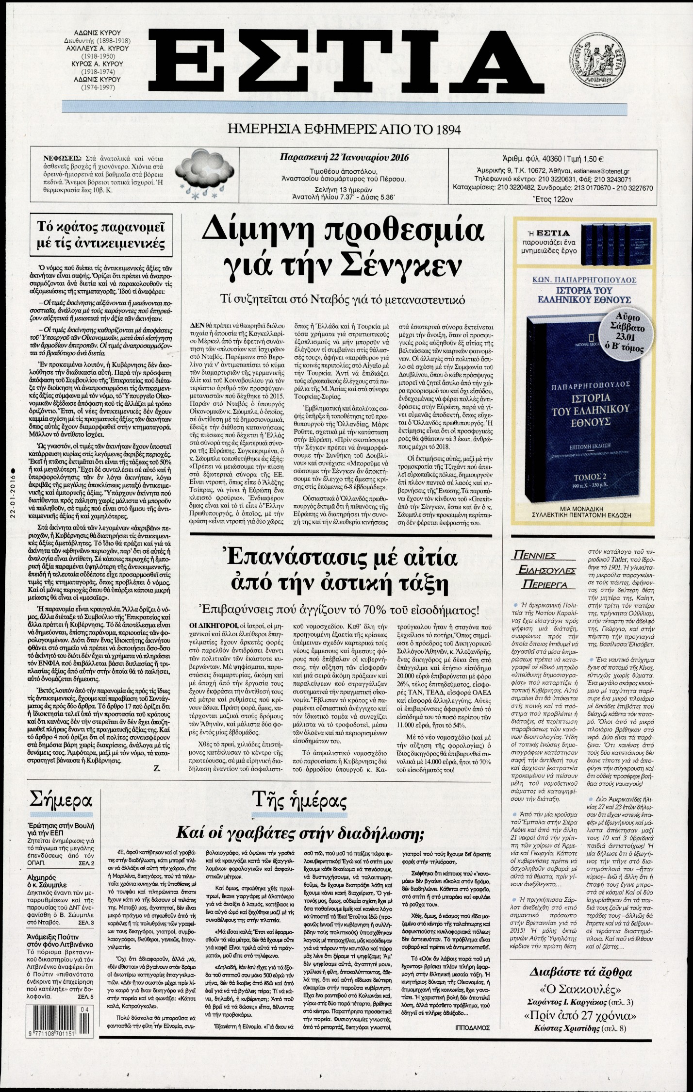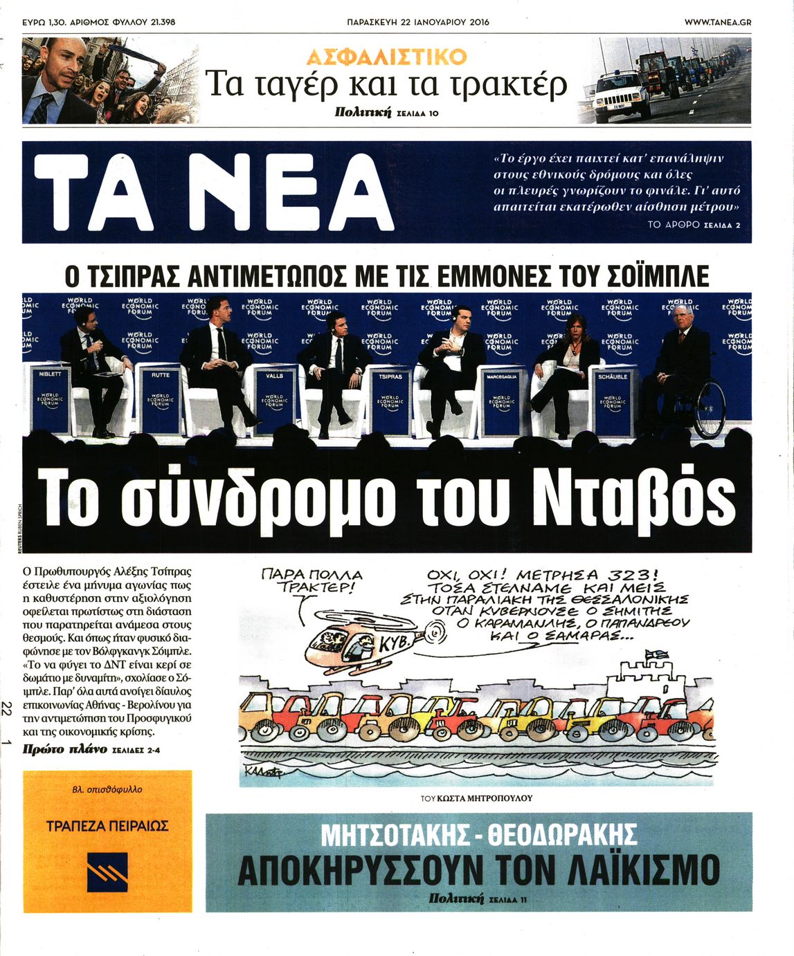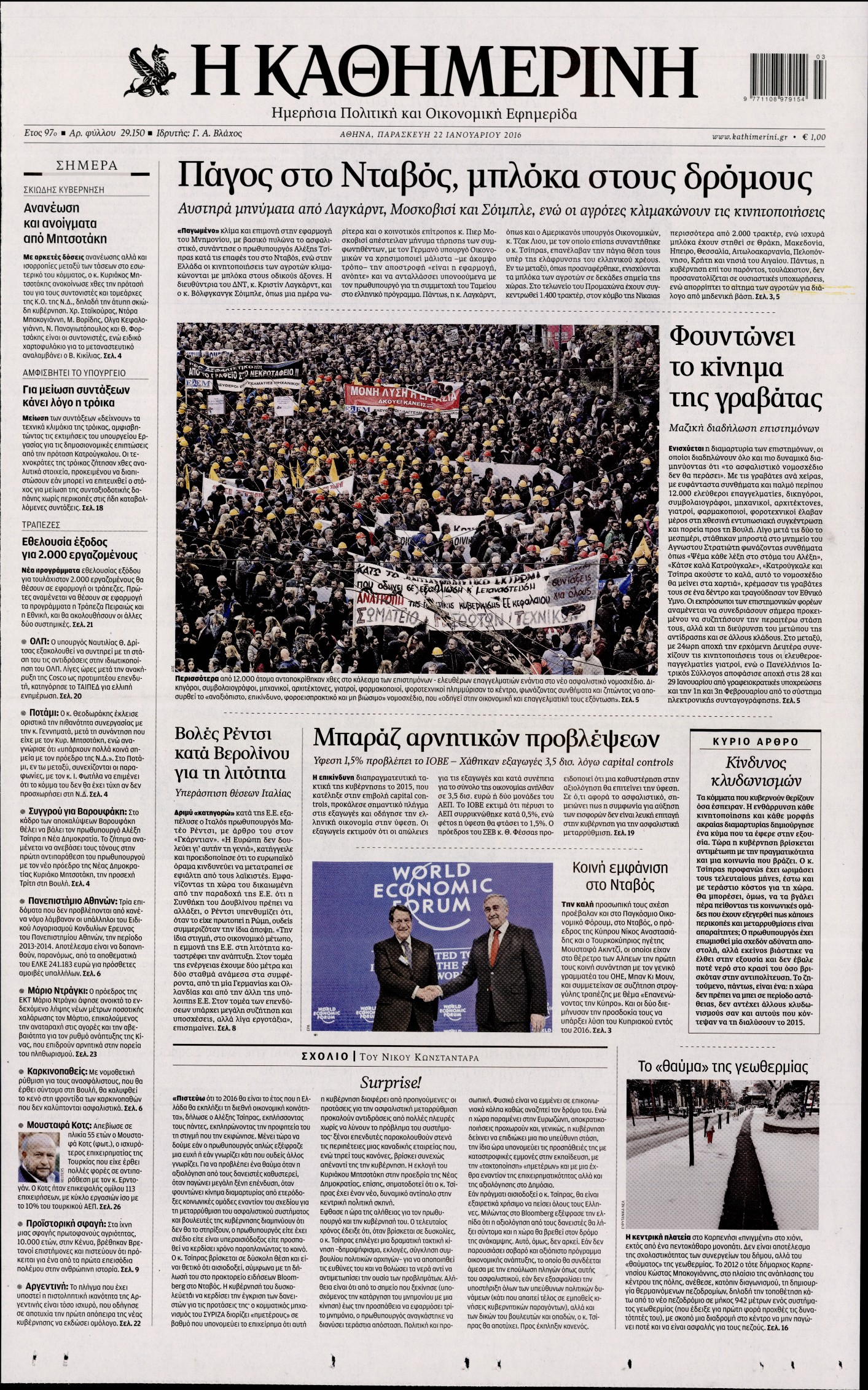Οι πολιτικές εφημερίδες 22/1/2016 Enikos Newsroom 06:20, Παρασκευή 22 Ιανουαρίου 2016 Media Διαβάστε τα σημερινά πρωτοσέλιδα των πολιτικών εφημερίδων: ΠΟΛΙΤΙΚΕΣ ΕΦΗΜΕΡΙΔΕΣ ΠΡΩΤΟΣΕΛΙΔΑ Μοιράσου το: σχολίασε κι εσύ (0 σχόλια) Ακολουθήστε το enikos.gr στο Google News και μάθετε πρώτοι όλες τις ειδήσεις Δείτε όλες τις τελευταίες ειδήσεις από την Ελλάδα και τον Κόσμο στο enikos.gr Ειδήσεις Ροή Ειδήσεων 1 ώρα πριν Αγρότες από το μπλόκο Νίκαιας κλείνουν τη Δευτέρα τις σήραγγες των Τεμπών για τα φορτηγά – Τι αποφάσισαν 5 ώρες πριν Μητσοτάκης σε αγρότες: Είμαστε ανοιχτοί στον διάλογο, αλλά όχι στο παράλογο – Η διεκδίκηση αιτημάτων οφείλει να γίνεται με σεβασμό στο κοινωνικό σύνολο 4 ώρες πριν Κηφισιά: Δύο συλλήψεις για ληστεία με λεία 180.000 ευρώ – Βίντεο ντοκουμέντα από τη δράση των συλληφθέντων 53 λεπτά πριν Ζελένσκι: Τάχθηκε σήμερα υπέρ της διεξαγωγής ευρύτερων διαβουλεύσεων με Ευρωπαίους εταίρους 2 ώρες πριν Θεσσαλονίκη: Με Αγιοβασίληδες γέμισε ο Θερμαϊκός στο 5ο Santa SUP 5 ώρες πριν Τα άστρα ευνοούν σκανδαλωδώς 4 ζώδια – «Εμφανίζονται ξαφνικά ευκαιρίες γιατί αποφασίζετε να αφήσετε πίσω το παρελθόν» 4 ώρες πριν Προπονήτρια γυμναστικής που έχασε 9 κιλά αποκαλύπτει: «Αυτοί είναι οι 5 παράγοντες που εμποδίζουν την απώλεια βάρους» 3 ώρες πριν Οι άνθρωποι που στρώνουν το κρεβάτι τους κάθε πρωί, διαθέτουν αυτές τις 8 κρυφές δυνάμεις 1 ημέρα πριν Enerwave: Το νέο «ρεύμα» στη λιανική ενέργειας που αλλάζει την εμπειρία του καταναλωτή 4 λεπτά πριν Αγρότες: Ανοιχτός ο Προμαχώνας για όλα τα οχήματα την Παραμονή και την ημέρα των Χριστουγέννων 9 λεπτά πριν Βελόπουλος: Ο πρωθυπουργός επαναλαμβάνει συνεχώς τα ίδια ψέματα 17 λεπτά πριν Μια νύχτα μόνο: Η Αρετή και ο Οδυσσέας έρχονται και πάλι κοντά 24 λεπτά πριν Ένα πλάσμα στα βάθη της θάλασσας απορροφά άνθρακα από την ατμόσφαιρα – «Δεν είχαμε ιδέα για την ύπαρξή του» 24 λεπτά πριν Στο «μικροσκόπιο» των Αρχών ο αγροτοσυνδικαλιστής Κωνσταντίνος Ανεστίδης – Υπό διερεύνηση για επιδοτήσεις 122.000 ευρώ ENIKOS NETWORK Ο εγκέφαλός μας ξεπερνά ακόμα σε εξυπνάδα το ΑΙ – Ποιο είναι αυτό στο οποίο είμαστε καλύτεροι Φοράτε ψηλοτάκουνα παπούτσια; Ποδίατροι συμβουλεύουν πόσο ψηλά επιτρέπεται να είναι και πώς να τα επιλέξετε IRIS: Διπλασιάζεται το όριο μεταφοράς χρημάτων μεταξύ ιδιωτών – Οι νέες αλλαγές και πότε θα εφαρμοστούν Η επόμενη ημέρα για τις ελληνικές τράπεζες -Τι λένε κορυφαία στελέχη του κλάδου Χαρτογραφώντας το «σημείο χωρίς επιστροφή»: Για πρώτη φορά αποκαλύπτεται με λεπτομέρεια το ακανθώδες όριο της ατμόσφαιρας τ... Η Google καταργεί τη λειτουργία «dark web report» – Πώς θα μπορούν οι χρήστες να διαγράφουν τα δεδομένα τους περισσότερα 15:08 , Κυριακή 21 Δεκεμβρίου 2025 Μια νύχτα μόνο: Η Αρετή και ο Οδυσσέας έρχονται και πάλι κοντά Το νέο επεισόδιο της δραματικής σειράς του MEGA «Μια νύχτα μόνο», θα προβληθεί απόψε Κυριακή 2... 14:24 , Κυριακή 21 Δεκεμβρίου 2025 IQ 160: Ο φάκελος με το τεστ πατρότητας ανοίγει, απόψε στις 21:00 στο Star Ανατρεπτικό το νέο διπλό επεισόδιο της σειράς “IQ 160” στις 21:00 στο Star. Ο Τηλέ... 09:43 , Κυριακή 21 Δεκεμβρίου 2025 Το λάθος στην ταινία Die Hard που άφησε άναυδους τους θαυμαστές του Μπρους Γουίλις Ένας φανατικός των ταινιών άφησε άναυδους τους θαυμαστές του Die Hard, επισημαίνοντας τρία βασ... 08:13 , Κυριακή 21 Δεκεμβρίου 2025 Άγιος έρωτας: Ένας καταστροφικός σεισμός χτυπά τη Στέρνα Καταιγιστικές είναι οι εξελίξεις στα δυο τελευταία, συγκλονιστικά επεισόδια του 2025 της σειρά... ΤΕΛ