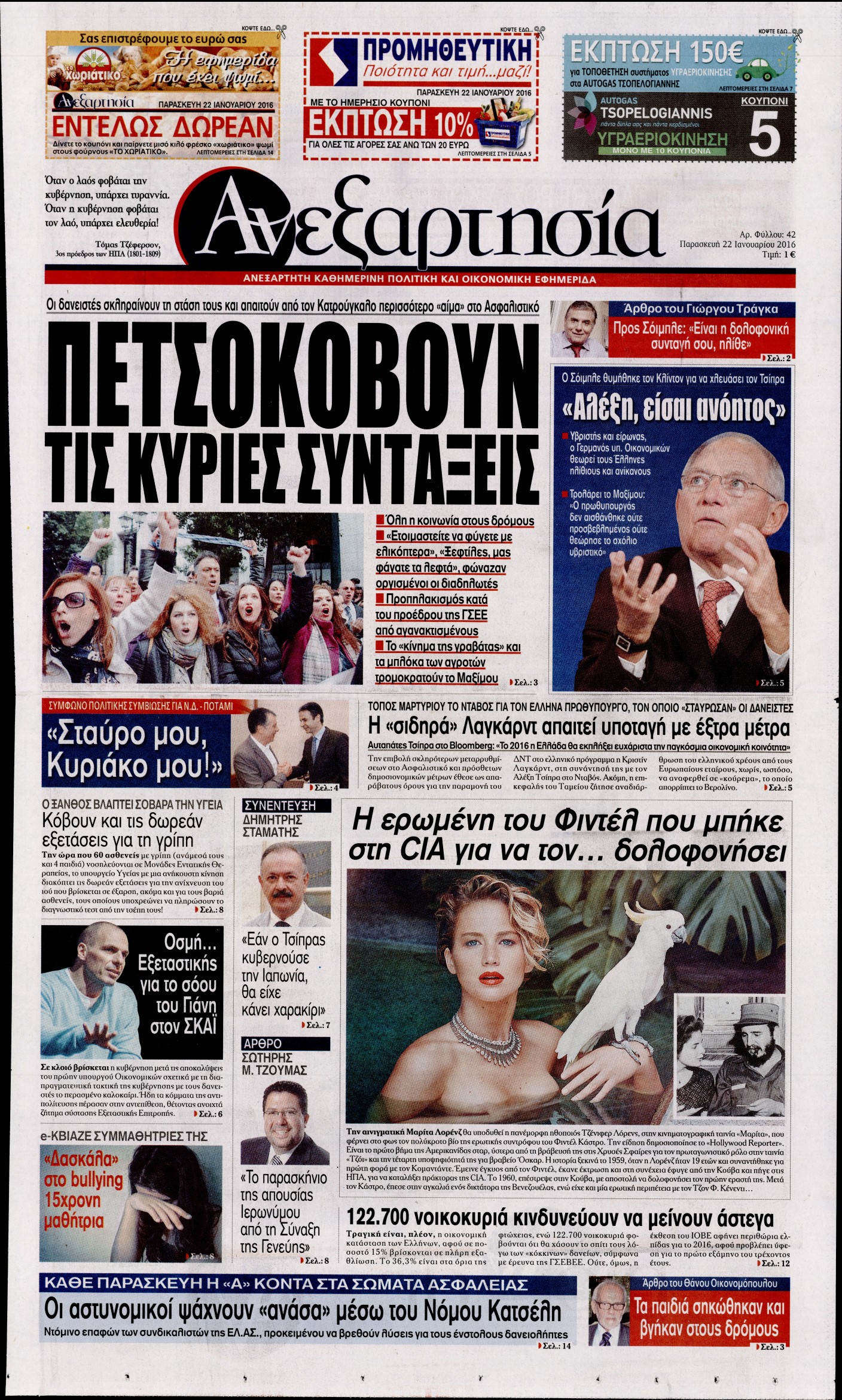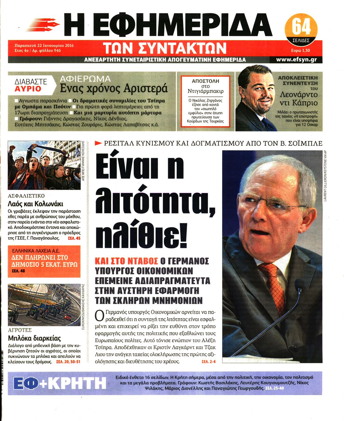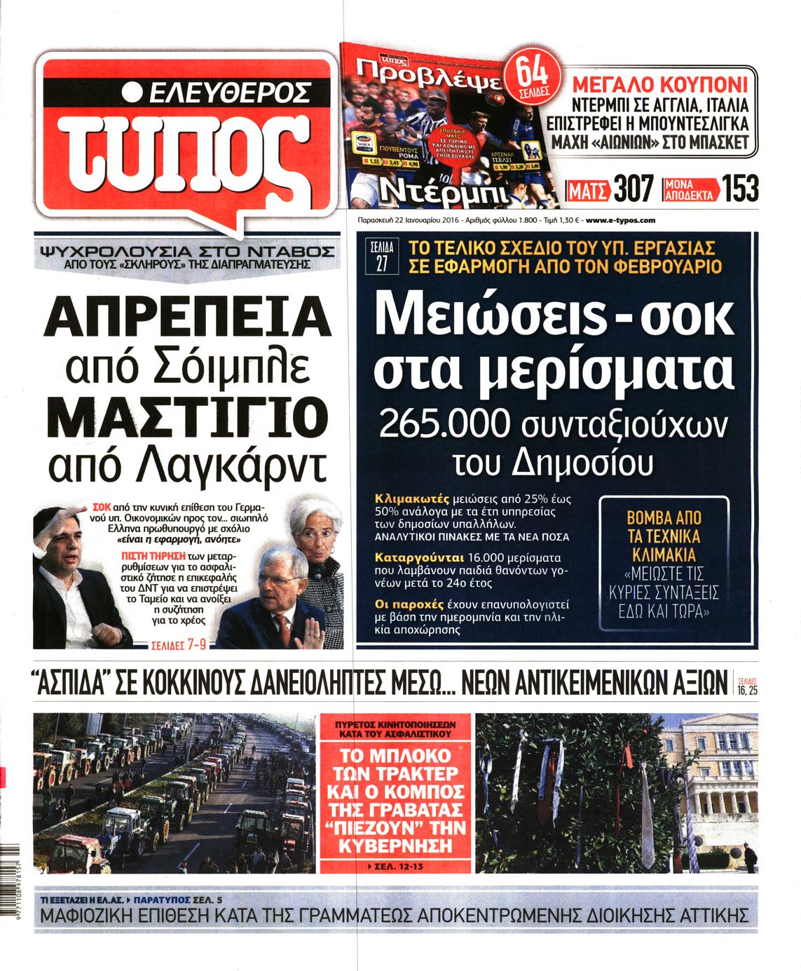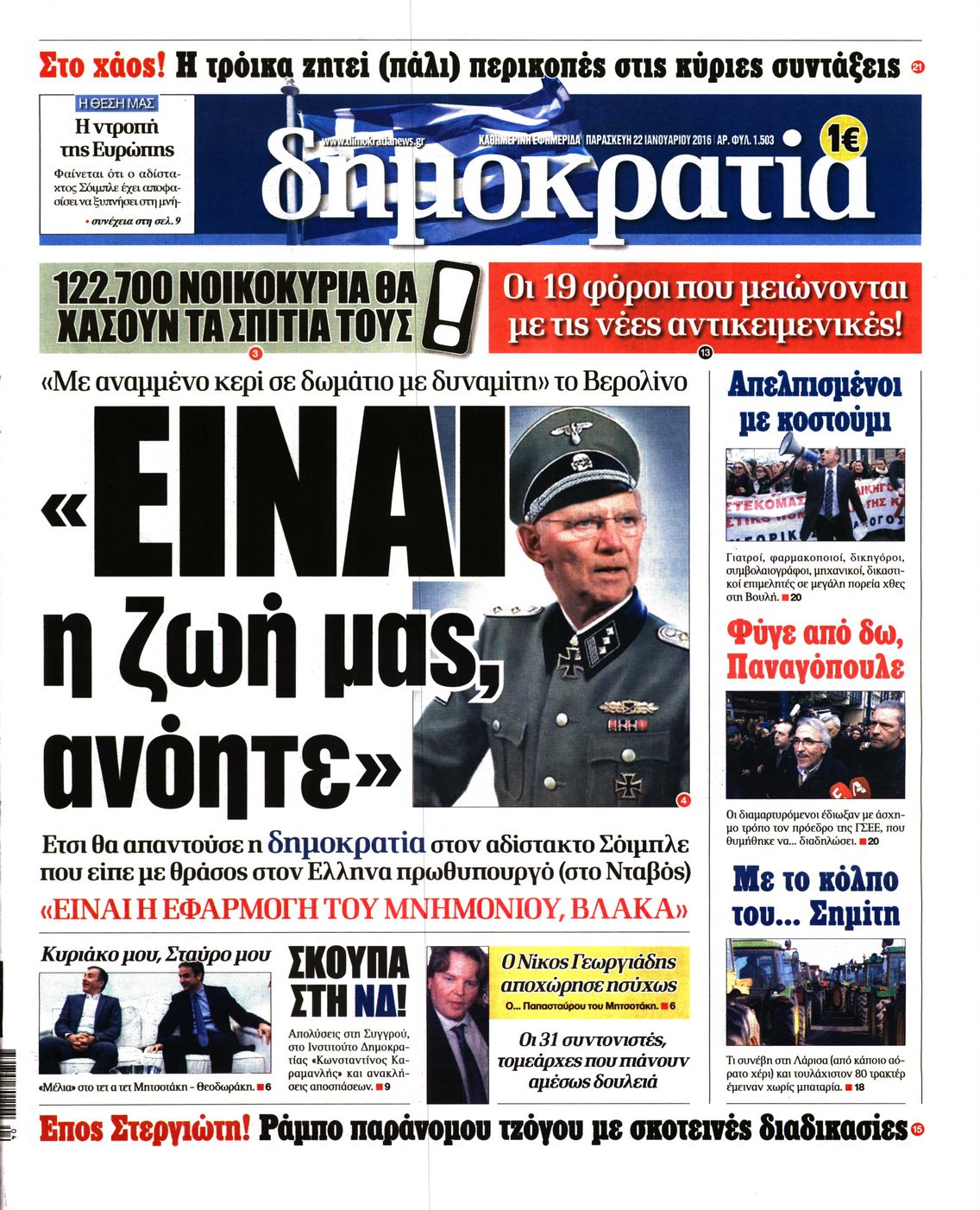 Οι πολιτικές εφημερίδες 22/1/2016 Enikos Newsroom 06:20, Παρασκευή 22 Ιανουαρίου 2016 Media Διαβάστε τα σημερινά πρωτοσέλιδα των πολιτικών εφημερίδων: ΠΟΛΙΤΙΚΕΣ ΕΦΗΜΕΡΙΔΕΣ ΠΡΩΤΟΣΕΛΙΔΑ Μοιράσου το: σχολίασε κι εσύ (0 σχόλια) Ακολουθήστε το enikos.gr στο Google News και μάθετε πρώτοι όλες τις ειδήσεις Δείτε όλες τις τελευταίες ειδήσεις από την Ελλάδα και τον Κόσμο στο enikos.gr Ειδήσεις Ροή Ειδήσεων 1 ώρα πριν Αγρότες από το μπλόκο Νίκαιας κλείνουν τη Δευτέρα τις σήραγγες των Τεμπών για τα φορτηγά – Τι αποφάσισαν 5 ώρες πριν Μητσοτάκης σε αγρότες: Είμαστε ανοιχτοί στον διάλογο, αλλά όχι στο παράλογο – Η διεκδίκηση αιτημάτων οφείλει να γίνεται με σεβασμό στο κοινωνικό σύνολο 4 ώρες πριν Κηφισιά: Δύο συλλήψεις για ληστεία με λεία 180.000 ευρώ – Βίντεο ντοκουμέντα από τη δράση των συλληφθέντων 53 λεπτά πριν Ζελένσκι: Τάχθηκε σήμερα υπέρ της διεξαγωγής ευρύτερων διαβουλεύσεων με Ευρωπαίους εταίρους 2 ώρες πριν Θεσσαλονίκη: Με Αγιοβασίληδες γέμισε ο Θερμαϊκός στο 5ο Santa SUP 5 ώρες πριν Τα άστρα ευνοούν σκανδαλωδώς 4 ζώδια – «Εμφανίζονται ξαφνικά ευκαιρίες γιατί αποφασίζετε να αφήσετε πίσω το παρελθόν» 4 ώρες πριν Προπονήτρια γυμναστικής που έχασε 9 κιλά αποκαλύπτει: «Αυτοί είναι οι 5 παράγοντες που εμποδίζουν την απώλεια βάρους» 3 ώρες πριν Οι άνθρωποι που στρώνουν το κρεβάτι τους κάθε πρωί, διαθέτουν αυτές τις 8 κρυφές δυνάμεις 1 ημέρα πριν Enerwave: Το νέο «ρεύμα» στη λιανική ενέργειας που αλλάζει την εμπειρία του καταναλωτή 4 λεπτά πριν Αγρότες: Ανοιχτός ο Προμαχώνας για όλα τα οχήματα την Παραμονή και την ημέρα των Χριστουγέννων 9 λεπτά πριν Βελόπουλος: Ο πρωθυπουργός επαναλαμβάνει συνεχώς τα ίδια ψέματα 17 λεπτά πριν Μια νύχτα μόνο: Η Αρετή και ο Οδυσσέας έρχονται και πάλι κοντά 24 λεπτά πριν Ένα πλάσμα στα βάθη της θάλασσας απορροφά άνθρακα από την ατμόσφαιρα – «Δεν είχαμε ιδέα για την ύπαρξή του» 24 λεπτά πριν Στο «μικροσκόπιο» των Αρχών ο αγροτοσυνδικαλιστής Κωνσταντίνος Ανεστίδης – Υπό διερεύνηση για επιδοτήσεις 122.000 ευρώ ENIKOS NETWORK Ο εγκέφαλός μας ξεπερνά ακόμα σε εξυπνάδα το ΑΙ – Ποιο είναι αυτό στο οποίο είμαστε καλύτεροι Φοράτε ψηλοτάκουνα παπούτσια; Ποδίατροι συμβουλεύουν πόσο ψηλά επιτρέπεται να είναι και πώς να τα επιλέξετε IRIS: Διπλασιάζεται το όριο μεταφοράς χρημάτων μεταξύ ιδιωτών – Οι νέες αλλαγές και πότε θα εφαρμοστούν Η επόμενη ημέρα για τις ελληνικές τράπεζες -Τι λένε κορυφαία στελέχη του κλάδου Χαρτογραφώντας το «σημείο χωρίς επιστροφή»: Για πρώτη φορά αποκαλύπτεται με λεπτομέρεια το ακανθώδες όριο της ατμόσφαιρας τ... Η Google καταργεί τη λειτουργία «dark web report» – Πώς θα μπορούν οι χρήστες να διαγράφουν τα δεδομένα τους περισσότερα 15:08 , Κυριακή 21 Δεκεμβρίου 2025 Μια νύχτα μόνο: Η Αρετή και ο Οδυσσέας έρχονται και πάλι κοντά Το νέο επεισόδιο της δραματικής σειράς του MEGA «Μια νύχτα μόνο», θα προβληθεί απόψε Κυριακή 2... 14:24 , Κυριακή 21 Δεκεμβρίου 2025 IQ 160: Ο φάκελος με το τεστ πατρότητας ανοίγει, απόψε στις 21:00 στο Star Ανατρεπτικό το νέο διπλό επεισόδιο της σειράς “IQ 160” στις 21:00 στο Star. Ο Τηλέ... 09:43 , Κυριακή 21 Δεκεμβρίου 2025 Το λάθος στην ταινία Die Hard που άφησε άναυδους τους θαυμαστές του Μπρους Γουίλις Ένας φανατικός των ταινιών άφησε άναυδους τους θαυμαστές του Die Hard, επισημαίνοντας τρία βασ... 08:13 , Κυριακή 21 Δεκεμβρίου 2025 Άγιος έρωτας: Ένας καταστροφικός σεισμός χτυπά τη Στέρνα Καταιγιστικές είναι οι εξελίξεις στα δυο τελευταία, συγκλονιστικά επεισόδια του 2025 της σειρά... ΤΕΛ