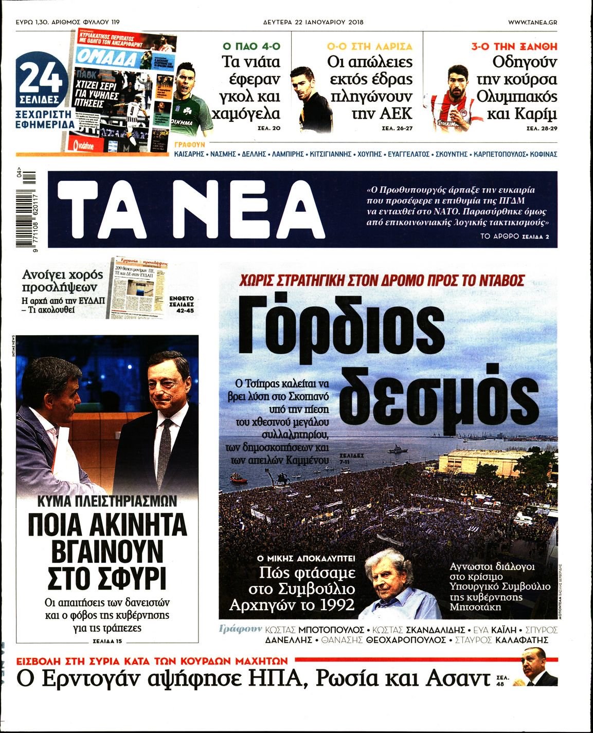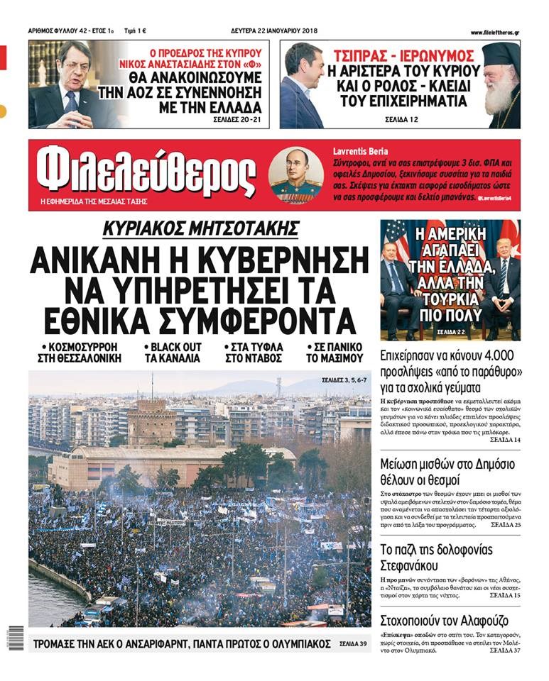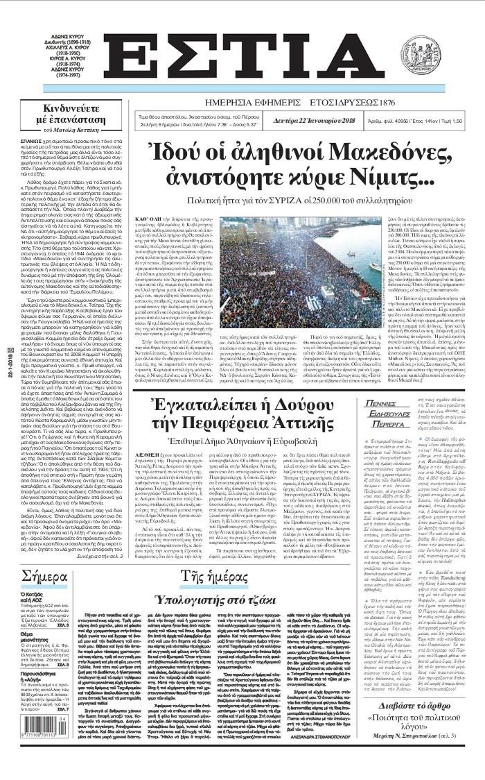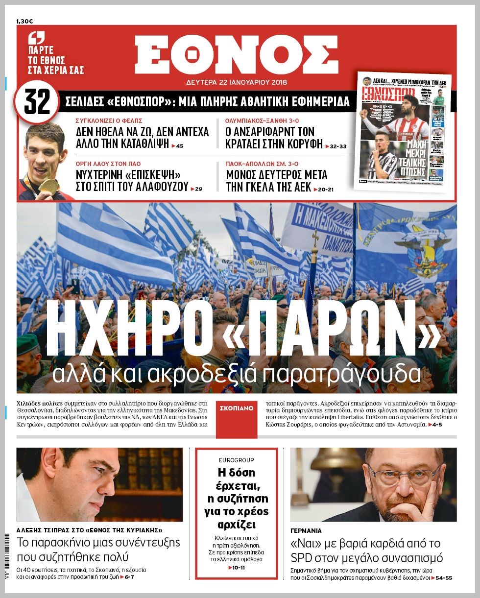 Οι πολιτικές εφημερίδες 22/1/2018 Κώστας Τεό 06:14, Δευτέρα 22 Ιανουαρίου 2018 Media Διαβάστε τα σημερινά πρωτοσέλιδα των πολιτικών εφημερίδων: ΠΟΛΙΤΙΚΕΣ ΕΦΗΜΕΡΙΔΕΣ ΠΡΩΤΟΣΕΛΙΔΑ Μοιράσου το: σχολίασε κι εσύ (0 σχόλια) Ακολουθήστε το enikos.gr στο Google News και μάθετε πρώτοι όλες τις ειδήσεις Δείτε όλες τις τελευταίες ειδήσεις από την Ελλάδα και τον Κόσμο στο enikos.gr Ειδήσεις Ροή Ειδήσεων 3 ώρες πριν Χριστούγεννα στα μπλόκα: Επιμένουν στις κινητοποιήσεις τους οι αγρότες – Ανοίγουν τα διόδια το Σαββατοκύριακο 3 ώρες πριν Ουκρανία: Η άνευ προηγουμένου επίθεση σε ρωσικό τάνκερ στη Μεσόγειο και το μήνυμα προς στον Πούτιν – Το «μακρύ χέρι» του Κιέβου 2 ώρες πριν Πούτιν: Τα μηνύματα σε Ευρώπη και ΝΑΤΟ από το μαραθώνιο «σόου» του – Η απαίτηση για «σεβασμό» και η ειρήνη «με τους όρους» της Μόσχας 3 ώρες πριν Τραμπ: Δεν αποκλείει την πιθανότητα ενός πολέμου στη Βενεζουέλα – «Ο Μαδούρο ξέρει καλύτερα από τον καθένα τι ακριβώς θέλω» 4 ώρες πριν Συνεχίζει να προκαλεί ο Μίτσκοσκι: «Για μένα το όνομα Μακεδονία είναι ιερό» 2 ώρες πριν Ανακαλύφθηκαν αρχαία χρυσά νομίσματα 2.200 ετών που απεικονίζουν τον θεό Απόλλωνα – Η άγνωστη σύνδεση με τον Φίλιππο Β΄ της Μακεδονίας 3 ώρες πριν Ύπνος: Μια κρυφή κατάσταση του εγκεφάλου πριν από τον ύπνο μπορεί να είναι το “κλειδί” για υψηλή ευφυΐα και δημιουργικότητα 4 ώρες πριν Αριθμολογία: Οι άνθρωποι που έχουν γεννηθεί αυτές τις 4 ημερομηνίες, συχνά παρεξηγούνται – «Η καλοσύνη τους κρύβει τεράστια δύναμη» 5 ώρες πριν Ξεχάστε το καθάρισμα το Σαββατοκύριακο: Ο «κανόνας των 20 λεπτών» που θα σας λύσει τα χέρια 4 λεπτά πριν Συρία: Μαζικά πλήγματα των ΗΠΑ σε θέσεις του Ισλαμικού Κράτους – Χέγκσεθ: «Δεν είναι αρχή πολέμου, είναι μια δήλωση εκδίκησης» για το θάνατο των στρατιωτών μας 17 λεπτά πριν Ουκρανία: Ολοκληρώθηκαν οι συνομιλίες με τους Αμερικανούς κι Ευρωπαίους διαπραγματευτές 32 λεπτά πριν Μπαρτσελόνα – Μπασκόνια 134-124: Οι «μπλαουγκράνα» πήραν το ματς της χρονιάς ύστερα από τρεις παρατάσεις 47 λεπτά πριν Φαίη Σκορδά: «Παλιότερα τα κομπλιμέντα τα προσπερνούσα, τώρα τα έχω ανάγκη» 1 ώρα πριν Βασίλης Σπανούλης: Δεν εμφανίστηκε ούτε ένας δημοσιογράφος στην συνέντευξη Τύπου – «Καλησπέρα στον… κανέναν», δείτε βίντεο ENIKOS NETWORK Το ΕΚΑΒ τιμήθηκε από την Ακαδημία Αθηνών για τα 40 χρόνια προσφοράς του Έχετε πραγματικά μεγάλη καρδιά; 10 χαρακτηριστικά όσων έχουν καλοσύνη Αναστολή μέτρων αναγκαστικής εκτέλεσης για κτηνοτρόφους που πλήττονται από την ευλογιά των αιγοπροβάτων Πλήρης επάρκεια προϊόντων στις λαϊκές της Αττικής, παρά τις αγροτικές κινητοποιήσεις – Τι απαντούν οι πωλητές Χαρτογραφώντας το «σημείο χωρίς επιστροφή»: Για πρώτη φορά αποκαλύπτεται με λεπτομέρεια το ακανθώδες όριο της ατμόσφαιρας τ... Η Google καταργεί τη λειτουργία «dark web report» – Πώς θα μπορούν οι χρήστες να διαγράφουν τα δεδομένα τους περισσότερα 22:42 , Παρασκευή 19 Δεκεμβρίου 2025 Γιώργος Γιαννόπουλος για “Το σόι σου”: “Είναι ευτυχία και ευλογία αυτή η σειρά” «Είναι ευτυχία και ευλογία η συγκυρία αυτής της σειράς», θα πει ο Γιώργος Γιαννόπουλος -ο αγαπ... 20:37 , Παρασκευή 19 Δεκεμβρίου 2025 Don’t Forget The Lyrics: Η Έλλη Κοκκίνου υποδέχεται 4 παίκτες που θα κάνουν τα πάντα για να μη χάσουν ούτε… μισή λέξη από τους στίχους Το «Don’t Forget The Lyrics» επιστρέφει απόψε, Παρασκευή 19 Δεκεμβρίου, στις 21:00 με νέο επει... 19:31 , Παρασκευή 19 Δεκεμβρίου 2025 GNTM: Απόψε ο μεγάλος τελικός για τους 4 φιναλίστ Έπειτα από μήνες 