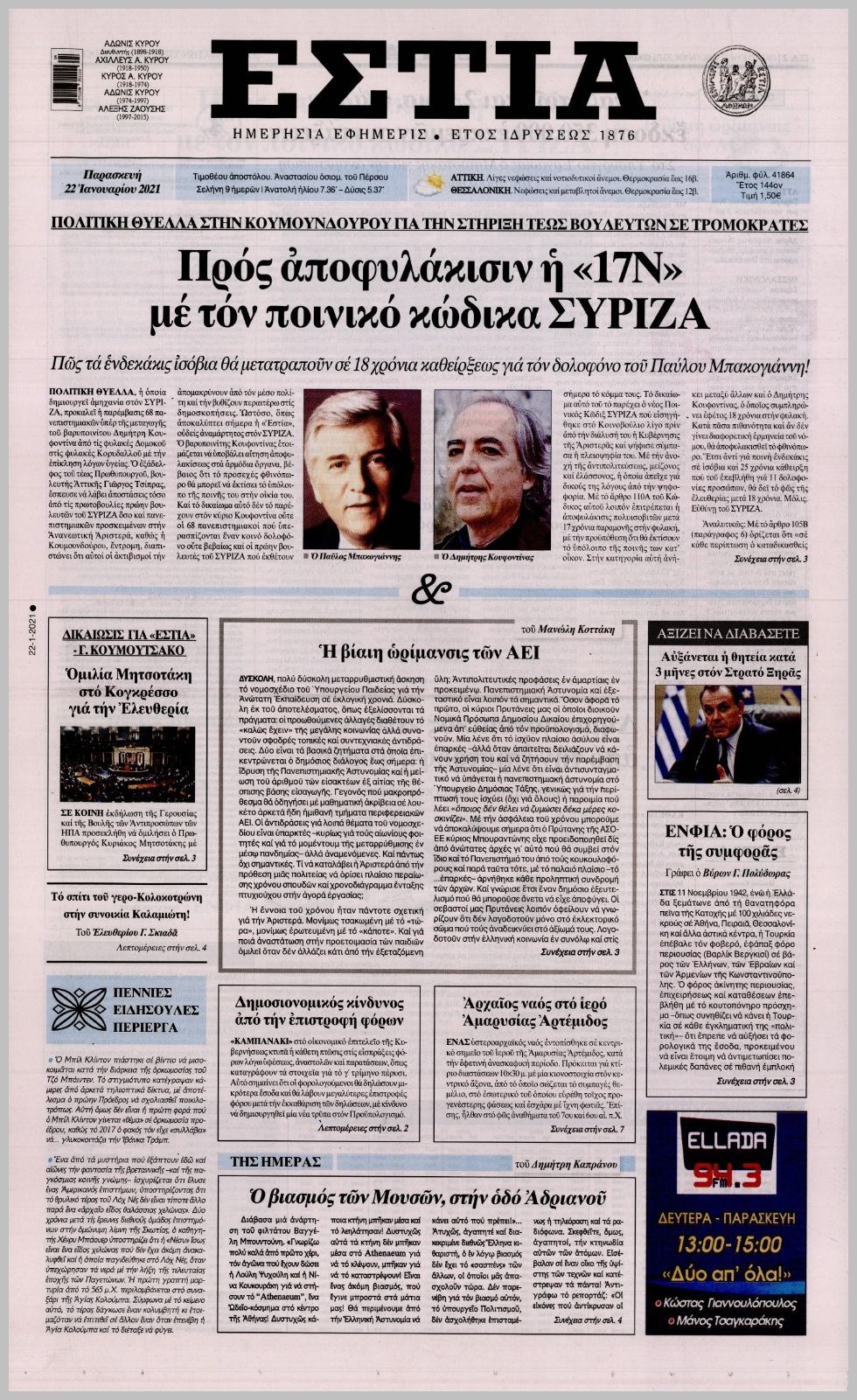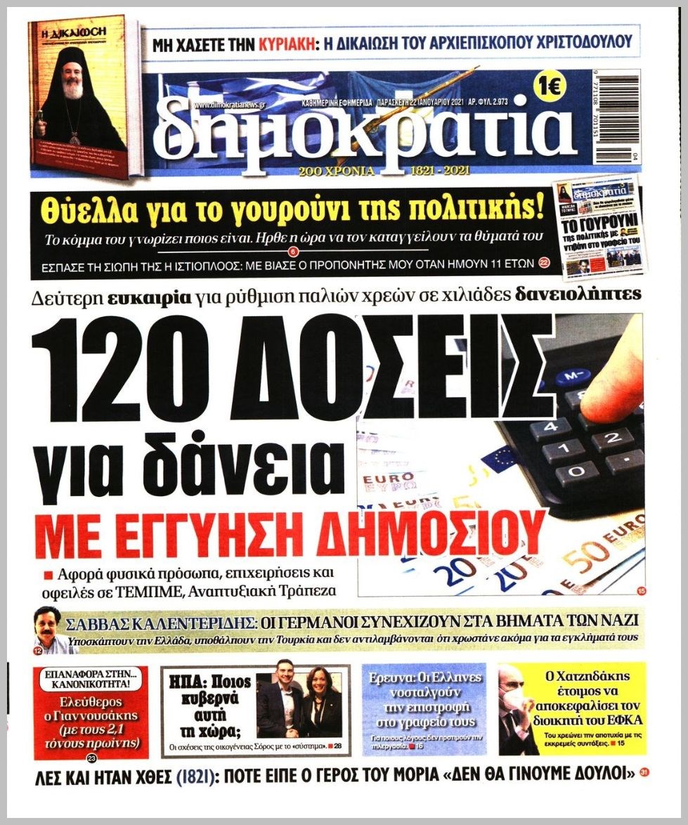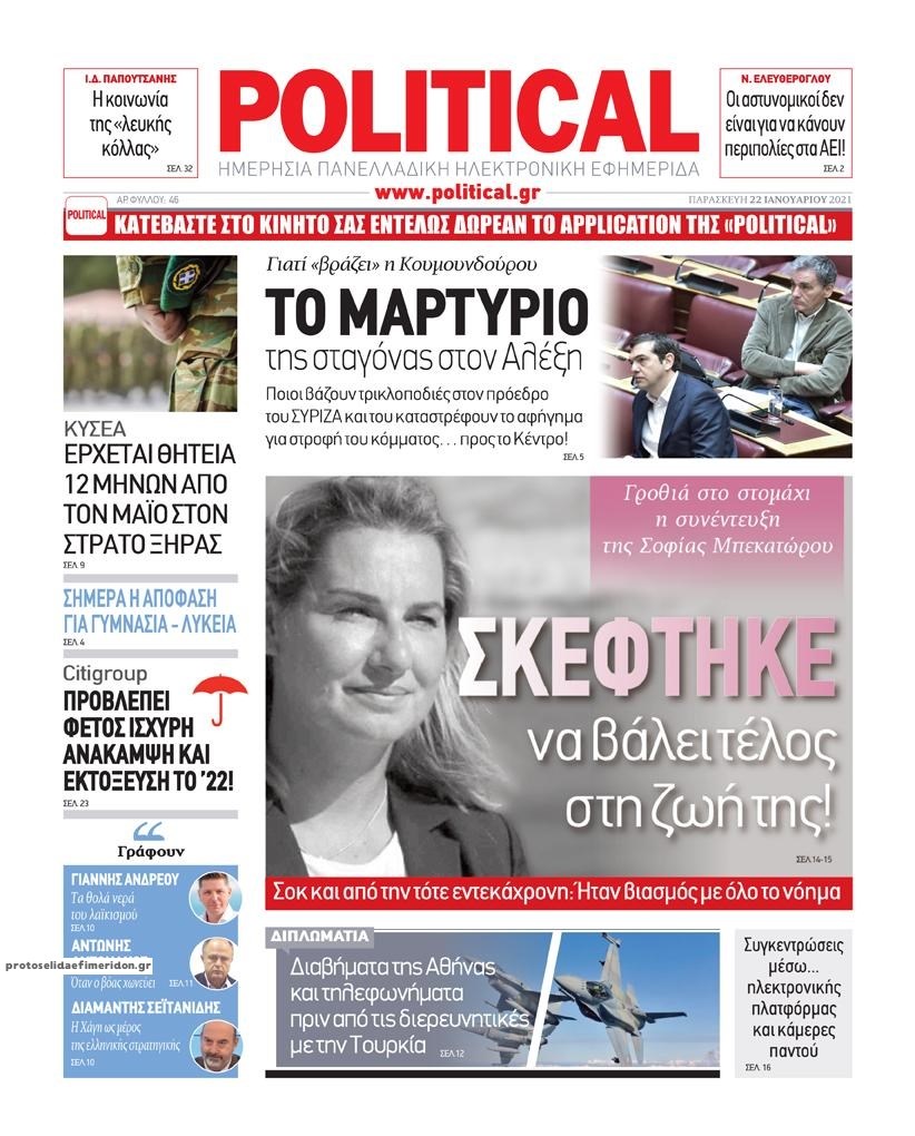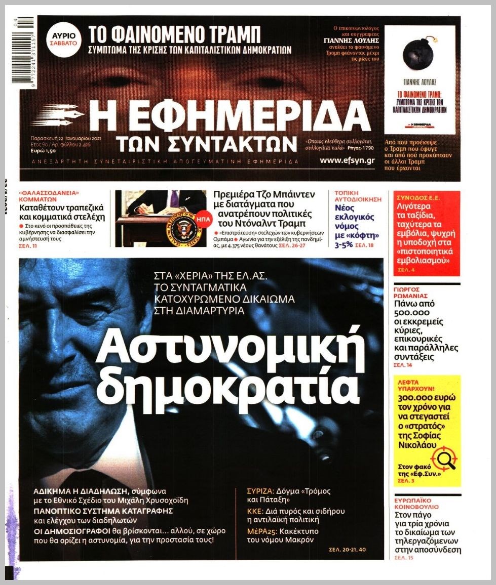 Οι πολιτικές εφημερίδες 22/1/2021 Διονύσης Νίκκας 06:13, Παρασκευή 22 Ιανουαρίου 2021 Media Διαβάστε τα πρωτοσέλιδα των πολιτικών εφημερίδων… ΕΦΗΜΕΡΙΔΕΣ ΠΟΛΙΤΙΚΕΣ ΕΦΗΜΕΡΙΔΕΣ ΠΡΩΤΟΣΕΛΙΔΑ Μοιράσου το: σχολίασε κι εσύ (0 σχόλια) Ακολουθήστε το enikos.gr στο Google News και μάθετε πρώτοι όλες τις ειδήσεις Δείτε όλες τις τελευταίες ειδήσεις από την Ελλάδα και τον Κόσμο στο enikos.gr Ειδήσεις Ροή Ειδήσεων 3 ώρες πριν Χριστούγεννα στα μπλόκα: Επιμένουν στις κινητοποιήσεις τους οι αγρότες – Ανοίγουν τα διόδια το Σαββατοκύριακο 3 ώρες πριν Ουκρανία: Η άνευ προηγουμένου επίθεση σε ρωσικό τάνκερ στη Μεσόγειο και το μήνυμα προς στον Πούτιν – Το «μακρύ χέρι» του Κιέβου 3 ώρες πριν Πούτιν: Τα μηνύματα σε Ευρώπη και ΝΑΤΟ από το μαραθώνιο «σόου» του – Η απαίτηση για «σεβασμό» και η ειρήνη «με τους όρους» της Μόσχας 3 ώρες πριν Τραμπ: Δεν αποκλείει την πιθανότητα ενός πολέμου στη Βενεζουέλα – «Ο Μαδούρο ξέρει καλύτερα από τον καθένα τι ακριβώς θέλω» 4 ώρες πριν Συνεχίζει να προκαλεί ο Μίτσκοσκι: «Για μένα το όνομα Μακεδονία είναι ιερό» 3 ώρες πριν Ανακαλύφθηκαν αρχαία χρυσά νομίσματα 2.200 ετών που απεικονίζουν τον θεό Απόλλωνα – Η άγνωστη σύνδεση με τον Φίλιππο Β΄ της Μακεδονίας 4 ώρες πριν Ύπνος: Μια κρυφή κατάσταση του εγκεφάλου πριν από τον ύπνο μπορεί να είναι το “κλειδί” για υψηλή ευφυΐα και δημιουργικότητα 5 ώρες πριν Αριθμολογία: Οι άνθρωποι που έχουν γεννηθεί αυτές τις 4 ημερομηνίες, συχνά παρεξηγούνται – «Η καλοσύνη τους κρύβει τεράστια δύναμη» 6 ώρες πριν Ξεχάστε το καθάρισμα το Σαββατοκύριακο: Ο «κανόνας των 20 λεπτών» που θα σας λύσει τα χέρια 13 λεπτά πριν Euroleague: Επέστρεψε στις νίκες ο Ολυμπιακός, πήρε την ματσάρα της χρονιάς η Μπάρτσα – Τα αποτελέσματα και η βαθμολογία 28 λεπτά πριν Συρία: Μαζικά πλήγματα των ΗΠΑ σε θέσεις του Ισλαμικού Κράτους – Χέγκσεθ: «Δεν είναι αρχή πολέμου, είναι μια δήλωση εκδίκησης» για το θάνατο των στρατιωτών μας 41 λεπτά πριν Ουκρανία: Ολοκληρώθηκαν οι συνομιλίες με τους Αμερικανούς κι Ευρωπαίους διαπραγματευτές 56 λεπτά πριν Μπαρτσελόνα – Μπασκόνια 134-124: Οι «μπλαουγκράνα» πήραν το ματς της χρονιάς ύστερα από τρεις παρατάσεις 1 ώρα πριν Φαίη Σκορδά: «Παλιότερα τα κομπλιμέντα τα προσπερνούσα, τώρα τα έχω ανάγκη» ENIKOS NETWORK Το ΕΚΑΒ τιμήθηκε από την Ακαδημία Αθηνών για τα 40 χρόνια προσφοράς του Έχετε πραγματικά μεγάλη καρδιά; 10 χαρακτηριστικά όσων έχουν καλοσύνη Αναστολή μέτρων αναγκαστικής εκτέλεσης για κτηνοτρόφους που πλήττονται από την ευλογιά των αιγοπροβάτων Πλήρης επάρκεια προϊόντων στις λαϊκές της Αττικής, παρά τις αγροτικές κινητοποιήσεις – Τι απαντούν οι πωλητές Χαρτογραφώντας το «σημείο χωρίς επιστροφή»: Για πρώτη φορά αποκαλύπτεται με λεπτομέρεια το ακανθώδες όριο της ατμόσφαιρας τ... Η Google καταργεί τη λειτουργία «dark web report» – Πώς θα μπορούν οι χρήστες να διαγράφουν τα δεδομένα τους περισσότερα 22:42 , Παρασκευή 19 Δεκεμβρίου 2025 Γιώργος Γιαννόπουλος για “Το σόι σου”: “Είναι ευτυχία και ευλογία αυτή η σειρά” «Είναι ευτυχία και ευλογία η συγκυρία αυτής της σειράς», θα πει ο Γιώργος Γιαννόπουλος -ο αγαπ... 20:37 , Παρασκευή 19 Δεκεμβρίου 2025 Don’t Forget The Lyrics: Η Έλλη Κοκκίνου υποδέχεται 4 παίκτες που θα κάνουν τα πάντα για να μη χάσουν ούτε… μισή λέξη από τους στίχους Το «Don’t Forget The Lyrics» επιστρέφει απόψε, Παρασκευή 19 Δεκεμβρίου, στις 21:00 με νέο επει... 19:31 , Παρασκευή 19 Δεκεμβρίου 2025 GNTM: Απόψε ο μεγάλος τελικός για τους 4 φιναλίστ Έπειτα από μήνε