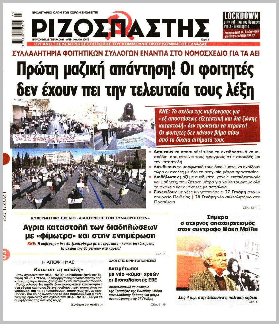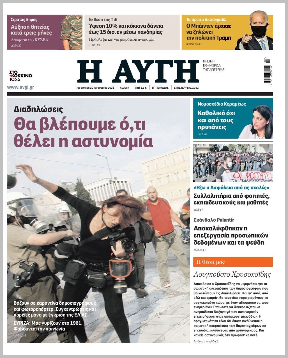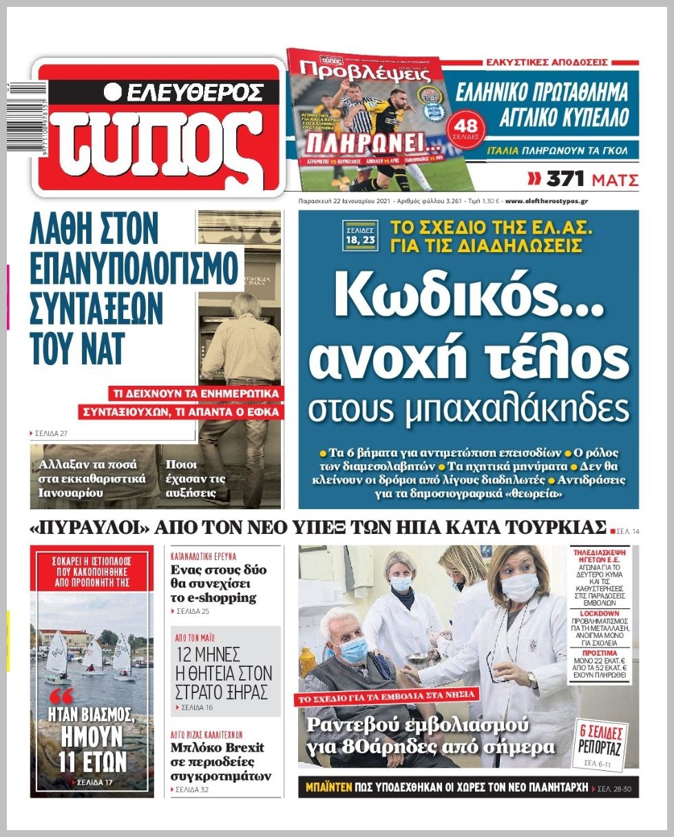 Οι πολιτικές εφημερίδες 22/1/2021 Διονύσης Νίκκας 06:13, Παρασκευή 22 Ιανουαρίου 2021 Media Διαβάστε τα πρωτοσέλιδα των πολιτικών εφημερίδων… ΕΦΗΜΕΡΙΔΕΣ ΠΟΛΙΤΙΚΕΣ ΕΦΗΜΕΡΙΔΕΣ ΠΡΩΤΟΣΕΛΙΔΑ Μοιράσου το: σχολίασε κι εσύ (0 σχόλια) Ακολουθήστε το enikos.gr στο Google News και μάθετε πρώτοι όλες τις ειδήσεις Δείτε όλες τις τελευταίες ειδήσεις από την Ελλάδα και τον Κόσμο στο enikos.gr Ειδήσεις Ροή Ειδήσεων 3 ώρες πριν Χριστούγεννα στα μπλόκα: Επιμένουν στις κινητοποιήσεις τους οι αγρότες – Ανοίγουν τα διόδια το Σαββατοκύριακο 3 ώρες πριν Ουκρανία: Η άνευ προηγουμένου επίθεση σε ρωσικό τάνκερ στη Μεσόγειο και το μήνυμα προς στον Πούτιν – Το «μακρύ χέρι» του Κιέβου 3 ώρες πριν Πούτιν: Τα μηνύματα σε Ευρώπη και ΝΑΤΟ από το μαραθώνιο «σόου» του – Η απαίτηση για «σεβασμό» και η ειρήνη «με τους όρους» της Μόσχας 3 ώρες πριν Τραμπ: Δεν αποκλείει την πιθανότητα ενός πολέμου στη Βενεζουέλα – «Ο Μαδούρο ξέρει καλύτερα από τον καθένα τι ακριβώς θέλω» 4 ώρες πριν Συνεχίζει να προκαλεί ο Μίτσκοσκι: «Για μένα το όνομα Μακεδονία είναι ιερό» 3 ώρες πριν Ανακαλύφθηκαν αρχαία χρυσά νομίσματα 2.200 ετών που απεικονίζουν τον θεό Απόλλωνα – Η άγνωστη σύνδεση με τον Φίλιππο Β΄ της Μακεδονίας 4 ώρες πριν Ύπνος: Μια κρυφή κατάσταση του εγκεφάλου πριν από τον ύπνο μπορεί να είναι το “κλειδί” για υψηλή ευφυΐα και δημιουργικότητα 5 ώρες πριν Αριθμολογία: Οι άνθρωποι που έχουν γεννηθεί αυτές τις 4 ημερομηνίες, συχνά παρεξηγούνται – «Η καλοσύνη τους κρύβει τεράστια δύναμη» 6 ώρες πριν Ξεχάστε το καθάρισμα το Σαββατοκύριακο: Ο «κανόνας των 20 λεπτών» που θα σας λύσει τα χέρια 13 λεπτά πριν Euroleague: Επέστρεψε στις νίκες ο Ολυμπιακός, πήρε την ματσάρα της χρονιάς η Μπάρτσα – Τα αποτελέσματα και η βαθμολογία 28 λεπτά πριν Συρία: Μαζικά πλήγματα των ΗΠΑ σε θέσεις του Ισλαμικού Κράτους – Χέγκσεθ: «Δεν είναι αρχή πολέμου, είναι μια δήλωση εκδίκησης» για το θάνατο των στρατιωτών μας 41 λεπτά πριν Ουκρανία: Ολοκληρώθηκαν οι συνομιλίες με τους Αμερικανούς κι Ευρωπαίους διαπραγματευτές 56 λεπτά πριν Μπαρτσελόνα – Μπασκόνια 134-124: Οι «μπλαουγκράνα» πήραν το ματς της χρονιάς ύστερα από τρεις παρατάσεις 1 ώρα πριν Φαίη Σκορδά: «Παλιότερα τα κομπλιμέντα τα προσπερνούσα, τώρα τα έχω ανάγκη» ENIKOS NETWORK Το ΕΚΑΒ τιμήθηκε από την Ακαδημία Αθηνών για τα 40 χρόνια προσφοράς του Έχετε πραγματικά μεγάλη καρδιά; 10 χαρακτηριστικά όσων έχουν καλοσύνη Αναστολή μέτρων αναγκαστικής εκτέλεσης για κτηνοτρόφους που πλήττονται από την ευλογιά των αιγοπροβάτων Πλήρης επάρκεια προϊόντων στις λαϊκές της Αττικής, παρά τις αγροτικές κινητοποιήσεις – Τι απαντούν οι πωλητές Χαρτογραφώντας το «σημείο χωρίς επιστροφή»: Για πρώτη φορά αποκαλύπτεται με λεπτομέρεια το ακανθώδες όριο της ατμόσφαιρας τ... Η Google καταργεί τη λειτουργία «dark web report» – Πώς θα μπορούν οι χρήστες να διαγράφουν τα δεδομένα τους περισσότερα 22:42 , Παρασκευή 19 Δεκεμβρίου 2025 Γιώργος Γιαννόπουλος για “Το σόι σου”: “Είναι ευτυχία και ευλογία αυτή η σειρά” «Είναι ευτυχία και ευλογία η συγκυρία αυτής της σειράς», θα πει ο Γιώργος Γιαννόπουλος -ο αγαπ... 20:37 , Παρασκευή 19 Δεκεμβρίου 2025 Don’t Forget The Lyrics: Η Έλλη Κοκκίνου υποδέχεται 4 παίκτες που θα κάνουν τα πάντα για να μη χάσουν ούτε… μισή λέξη από τους στίχους Το «Don’t Forget The Lyrics» επιστρέφει απόψε, Παρασκευή 19 Δεκεμβρίου, στις 21:00 με νέο επει... 19:31 , Παρασκευή 19 Δεκεμβρίου 2025 GNTM: Απόψε ο μεγάλος τελικός για τους 4 φιναλίστ Έπειτα από μήνε