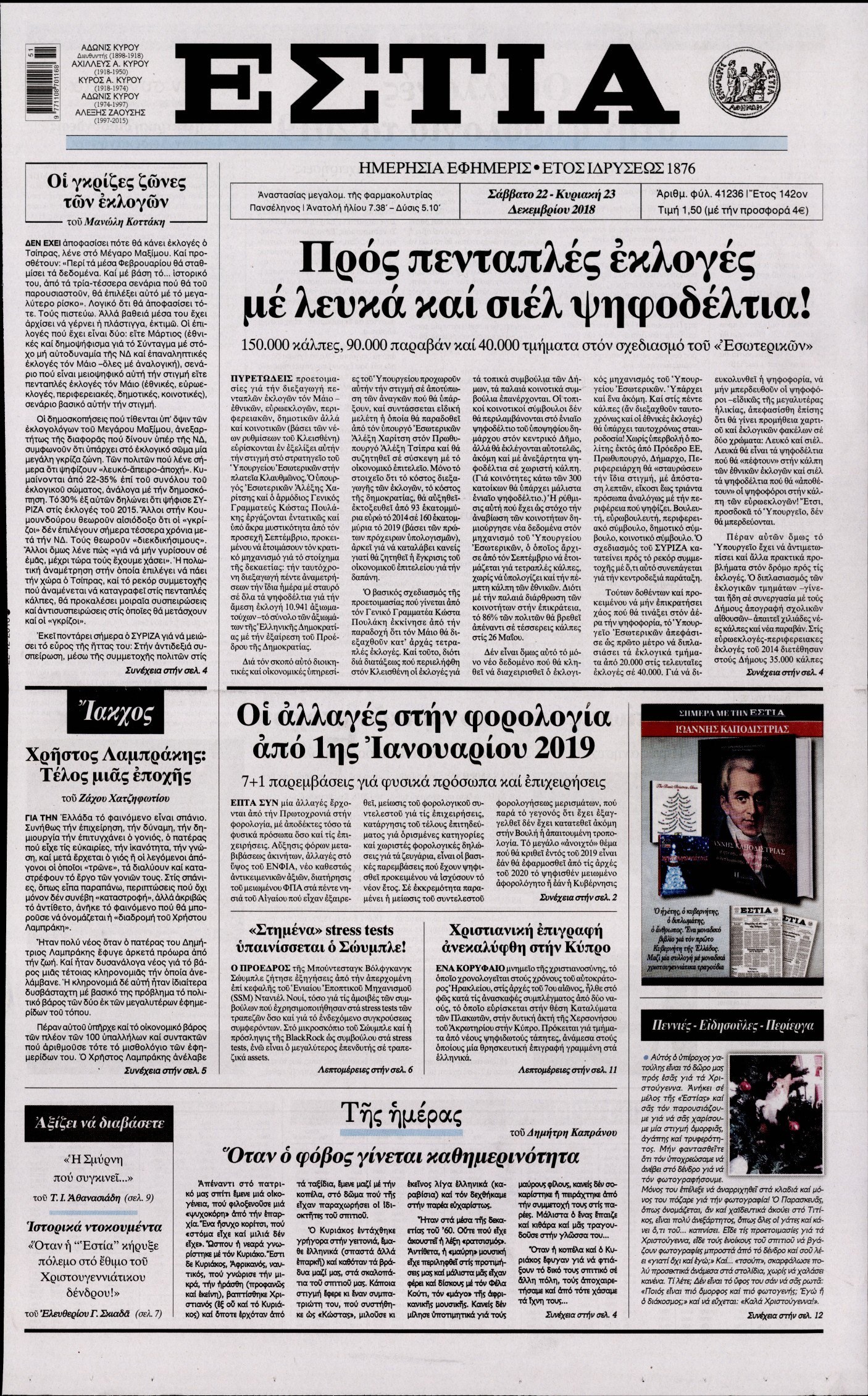 Οι πολιτικές εφημερίδες 22/12/18 Enikos Newsroom 06:19, Σάββατο 22 Δεκεμβρίου 2018 Media Διαβάστε τα πρωτοσέλιδα: ΠΟΛΙΤΙΚΕΣ ΕΦΗΜΕΡΙΔΕΣ ΠΡΩΤΟΣΕΛΙΔΑ Μοιράσου το: σχολίασε κι εσύ (0 σχόλια) Ακολουθήστε το enikos.gr στο Google News και μάθετε πρώτοι όλες τις ειδήσεις Δείτε όλες τις τελευταίες ειδήσεις από την Ελλάδα και τον Κόσμο στο enikos.gr Ειδήσεις Ροή Ειδήσεων 1 ώρα πριν Υπόθεση Έπσταϊν: Το Υπουργείο Δικαιοσύνης δημοσιοποίησε μια σειρά από εξαιρετικά επεξεργασμένα αρχεία – «Λείπουν τα πιο σημαντικά έγγραφα», λένε οι Δημοκρατικοί 37 λεπτά πριν Ο «χάρτης» με τις αυξήσεις και τις φοροελαφρύνσεις του 2026 – Ποιοι και πόσα κερδίζουν 11 ώρες πριν Χριστούγεννα στα μπλόκα: Επιμένουν στις κινητοποιήσεις τους οι αγρότες – Ανοίγουν τα διόδια το Σαββατοκύριακο 2 ώρες πριν ΟΝΕΧ – MEGATUGS: Ξεκίνησε η ναυπήγηση ρυμουλκών στην Ελλάδα – Προθάλαμος πολεμικών πλοίων – Δείτε φωτογραφίες και βίντεο 2 ώρες πριν Καιρός: Αλλαγή σκηνικού σήμερα με βροχές και πτώση της θερμοκρασίας – Οι προβλέψεις των μετεωρολόγων για τα Χριστούγεννα 3 ώρες πριν Αυγά: Πόσα μπορείτε να τρώτε την ημέρα με ασφάλεια για μέγιστη πρόσληψη πρωτεΐνης 4 ώρες πριν Τα ζώδια σήμερα, Σάββατο 20 Δεκεμβρίου: Παρθένοι, το σύμπαν σας δίνει το κλειδί 3 ώρες πριν Οπτική ψευδαίσθηση: Μόνο αν είσαι ο Σέρλοκ Χολμς θα βρεις τον αριθμό «87» σε 7 δευτερόλεπτα 1 ώρα πριν Αρχαιολόγοι ανακάλυψαν σε χωράφι απεικόνιση 600 ετών ενός Αγίου – Τα στοιχεία που δείχνουν ότι μαρτύρησε 42 δευτερόλεπτα πριν Ουκρανία: Drones έπληξαν εξέδρα πετρελαίου και πολεμικό πλοίο της Ρωσίας στην Κασπία 9 λεπτά πριν Παιδική υπέρταση: Μια σιωπηλή απειλή που αυξάνεται διεθνώς 10 λεπτά πριν Αγχώνεται για το χριστουγεννιάτικο δώρο που πήρε στην πλούσια σύντροφό του – «Φοβάμαι πως θα το βρει φθηνιάρικο, φοράει βραχιόλια Cartier» 17 λεπτά πριν Enerwave: Το νέο «ρεύμα» στη λιανική ενέργειας που αλλάζει την εμπειρία του καταναλωτή 21 λεπτά πριν Γιώργος Μαζωνάκης: Τη Δευτέρα η μήνυση του τραγουδιστή κατά του 22χρονου ENIKOS NETWORK Πόσα κιλά παίρνουμε πραγματικά τα Χριστούγεννα, σύμφωνα με την επιστήμη – Πώς να το αποτρέψουμε; Το δημοφιλές ρόφημα που αυξάνει την πίεση πιο γρήγορα και από το αλάτι Mega χριστουγεννιάτικη φορολοταρία: «Κλείδωσε» η ημερομηνία για την κλήρωση – Ερωτήσεις και απαντήσεις Αναστολή μέτρων αναγκαστικής εκτέλεσης για κτηνοτρόφους που πλήττονται από την ευλογιά των αιγοπροβάτων Χαρτογραφώντας το «σημείο χωρίς επιστροφή»: Για πρώτη φορά αποκαλύπτεται με λεπτομέρεια το ακανθώδες όριο της ατμόσφαιρας τ... Η Google καταργεί τη λειτουργία «dark web report» – Πώς θα μπορούν οι χρήστες να διαγράφουν τα δεδομένα τους περισσότερα 08:14 , Σάββατο 20 Δεκεμβρίου 2025 Τρομεροί γονείς: Η Μαρία Καβογιάννη εισβάλλει στο σπίτι της οικογένειας Στεφανίδη Όσα θα δούμε στο νέο διπλό επεισόδιο της σειράς «Τρομεροί γονείς», σήμερα Σάββατο 20 Δεκεμβρίο... 05:48 , Σάββατο 20 Δεκεμβρίου 2025 Οι οικονομικές εφημερίδες 20/12/2025 Διαβάστε τα πρωτοσέλιδα από τις οικονομικές εφημερίδες, σήμερα 20/12/2025. 05:43 , Σάββατο 20 Δεκεμβρίου 2025 Οι αθλητικές εφημερίδες 20/12/2025 Διαβάστε τα πρωτοσέλιδα από τις αθλητικές εφημερίδες, σήμερα 20/12/2025. 05:38 , Σάββατο 20 Δεκεμβρίου 2025 Οι πολιτικές εφημερίδες 20/12/2025 Διαβάστε τα πρωτοσέλιδα από τις πολιτικές εφημερίδες, σήμερα 20/12/2025. ΤΕΛΕΥΤΑΙΕΣ ΕΙΔΗΣΕΙΣ 9 λεπτά πριν Παιδική υπέρταση: Μια σιωπηλή απειλή που αυξάνεται... 10 λεπτά πριν Αγχώνεται για το χριστουγεννιάτικο δώρο που πήρε στην... 17 λεπτά πριν Enerwave: