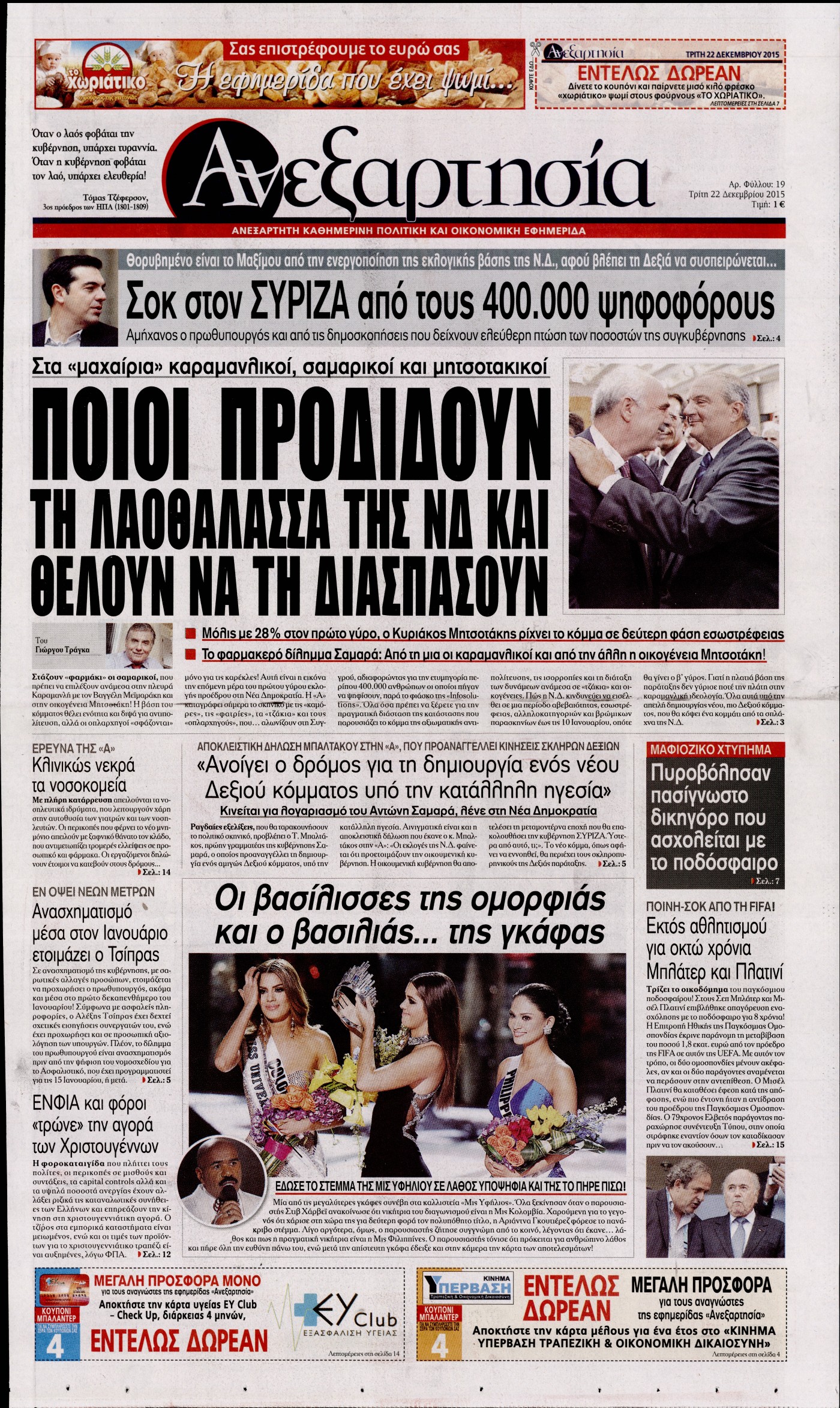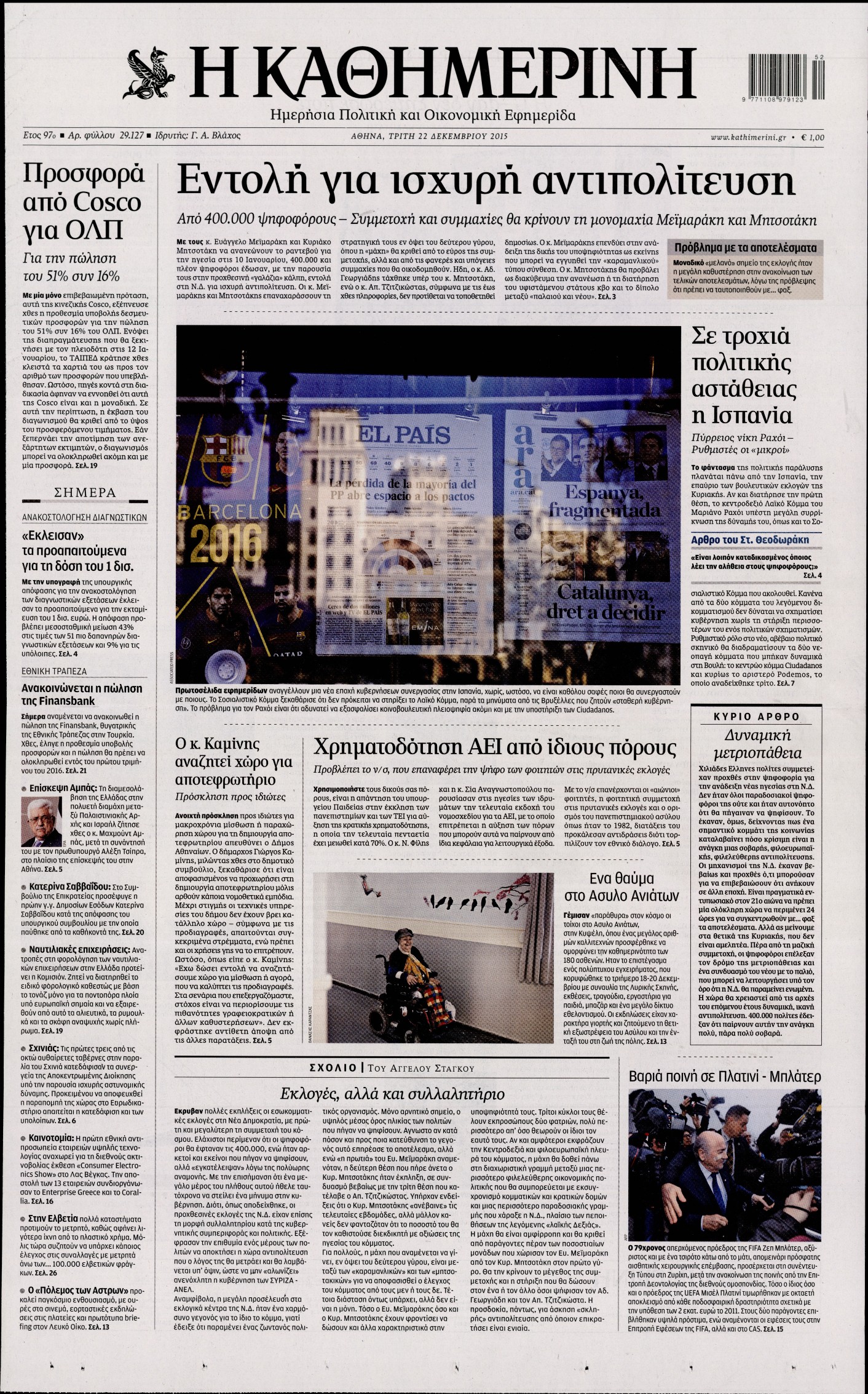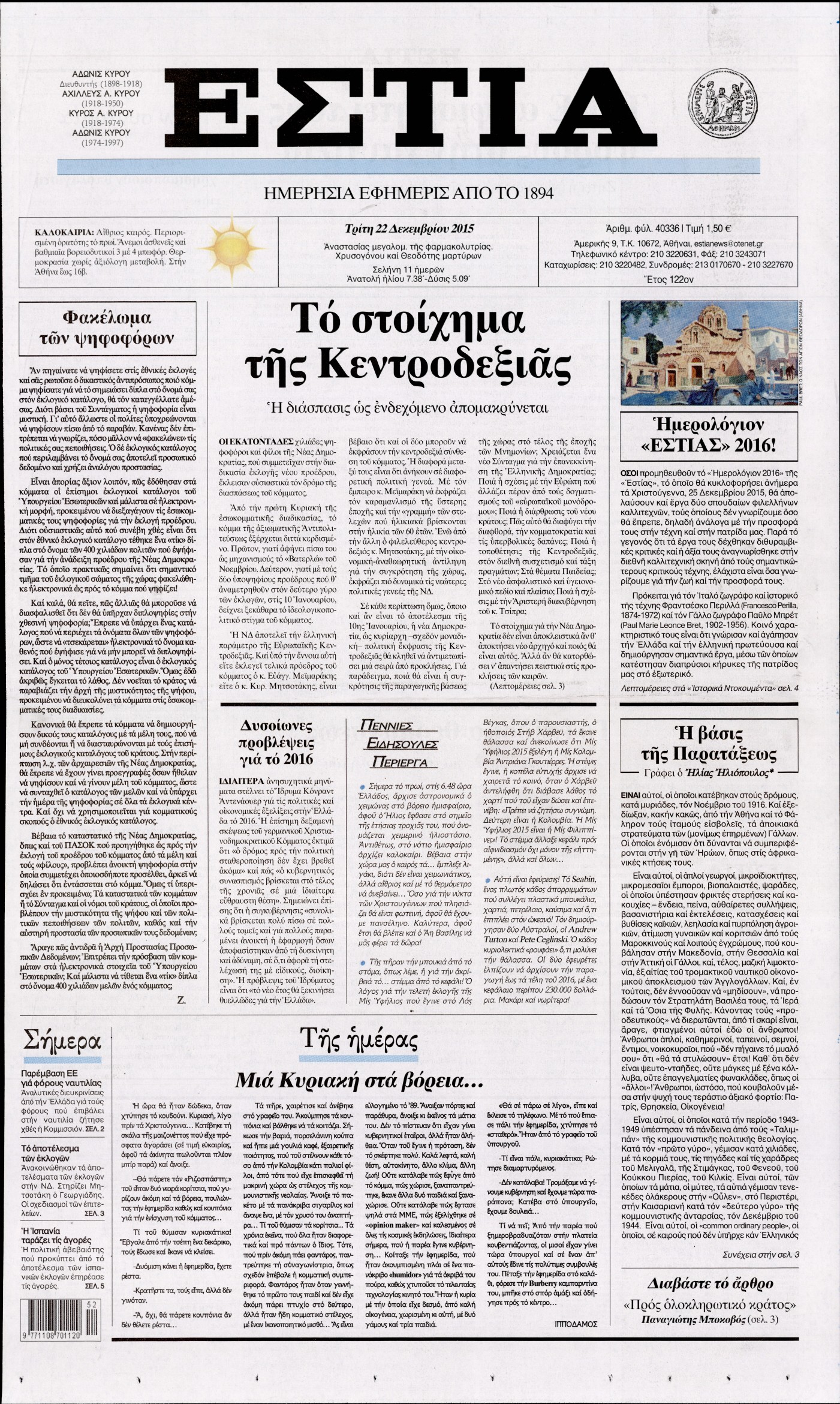 Οι πολιτικές εφημερίδες 22/12/2015 Enikos Newsroom 06:11, Τρίτη 22 Δεκεμβρίου 2015 Media Διαβάστε τα σημερινά πρωτοσέλιδα των πολιτικών εφημερίδων: ΠΟΛΙΤΙΚΕΣ ΕΦΗΜΕΡΙΔΕΣ ΠΡΩΤΟΣΕΛΙΔΑ Μοιράσου το: σχολίασε κι εσύ (0 σχόλια) Ακολουθήστε το enikos.gr στο Google News και μάθετε πρώτοι όλες τις ειδήσεις Δείτε όλες τις τελευταίες ειδήσεις από την Ελλάδα και τον Κόσμο στο enikos.gr Ειδήσεις Ροή Ειδήσεων 2 ώρες πριν Πώς δρούσε το κύκλωμα που διακινούσε ναρκωτικά σε σχολεία – Υπέβαλαν σε βασανιστήρια όσους δεν τηρούσαν τους «κανόνες πειθαρχίας» 3 ώρες πριν Αγρότες: Γιορτές στα μπλόκα με ανοιχτά διόδια – Δικογραφία στα Ιωάννινα για το σήκωμα των μπαρών 2 ώρες πριν Ζελένσκι: Οι Αμερικανοί πρότειναν συνάντηση Ουκρανίας, ΗΠΑ, Ρωσίας στο Μαϊάμι 2 ώρες πριν Αττική: Εξαρθρώθηκε εγκληματική οργάνωση που έκλεβε οχήματα, τα παραποιούσε και τα μεταπωλούσε σε πολίτες – Πώς δρούσε το κύκλωμα 1 ώρα πριν Μικαέλα Μπέντχαους: Ο πρώτος άνθρωπος σε αναπηρικό αμαξίδιο που ταξίδεψε στο διάστημα – ΒΙΝΤΕΟ 3 ώρες πριν Η τύχη χαμογελά σε 3 ζώδια έως τις 28 Δεκεμβρίου – «Προσέξτε τις επιλογές σας και η επιμονή σας θα ανταμειφθεί» 7 ώρες πριν Διαιτολόγος αποκαλύπτει 9 πρωινές συνήθειες που «λιώνουν» το κοιλιακό λίπος – «Υποστηρίζουν την υγιεινή απώλεια βάρους» 4 ώρες πριν Μία ανεκμετάλλευτη πηγή θα μπορούσε να προσφέρει ανεξάντλητη ενέργεια – Οι επιστήμονες ίσως γνωρίζουν πώς να την ξεκλειδώσουν 10 ώρες πριν Enerwave: Το νέο «ρεύμα» στη λιανική ενέργειας που αλλάζει την εμπειρία του καταναλωτή 4 λεπτά πριν Φωτιά σε αυτοκίνητο στην Λεωφόρο Κηφισίας στο ύψος της Φιλοθέης – Μεγάλο μποτιλιάρισμα στο σημείο 8 λεπτά πριν Πηνελόπη Πλάκα: Η εξομολόγηση για την προσωπική της ζωή – «Γούσταρα πάρα πολύ την ελευθερία μου» 19 λεπτά πριν Λούλα: Προειδοποιεί πως μια επέμβαση των ΗΠΑ στη Βενεζουέλα θα μπορούσε να είναι καταστροφική 28 λεπτά πριν Τραμπ: Πώς περνάει τις γιορτές των Χριστουγέννων – Τα δώρα που κάνει στα εγγόνια του 41 λεπτά πριν HOTΕΛ ΕΛVIRA: Η Ελβίρα μαθαίνει πως ο Χάρι μένει κρυφά στο ξενοδοχείο του Παντελή ENIKOS NETWORK Οι γυναίκες αποκαλύπτουν το πιο ελκυστικό πράγμα που μπορεί να κάνει ένας άνδρας Ομορφιά και αντιγήρανση: Ειδικοί μιλούν για συσκευές περιποίησης του δέρματος Ολοκληρώθηκαν πληρωμές 22,16 εκατ. ευρώ για το μεταφορικό ισοδύναμο – Κικίλιας: Στηρίζουμε τη νησιωτικότητα Η Realnews στο www.pressreader.com Χαρτογραφώντας το «σημείο χωρίς επιστροφή»: Για πρώτη φορά αποκαλύπτεται με λεπτομέρεια το ακανθώδες όριο της ατμόσφαιρας τ... Η Google καταργεί τη λειτουργία «dark web report» – Πώς θα μπορούν οι χρήστες να διαγράφουν τα δεδομένα τους περισσότερα 18:19 , Σάββατο 20 Δεκεμβρίου 2025 HOTΕΛ ΕΛVIRA: Η Ελβίρα μαθαίνει πως ο Χάρι μένει κρυφά στο ξενοδοχείο του Παντελή Συνεχίζονται οι εκλογές για πρόεδρο, στο νέο επεισόδιο της κωμικής σειράς του MEGA, HOTΕΛ ΕΛVI... 14:04 , Σάββατο 20 Δεκεμβρίου 2025 Η Realnews αυτής της Κυριακής (21/12/2025) Με τίτλο: «Ασπίδα προστασίας για την Ελλάδα» κυκλοφορεί, αυτήν την Κυριακή, η Realnews. Σημαντ... 12:53 , Σάββατο 20 Δεκεμβρίου 2025 Να μ’ αγαπάς: Το παρελθόν έρχεται στο φως – Καταιγιστικές εξελίξεις στα τελευταία επεισόδια του 2025 Ο Άγγελος αποκαλύπτεται, η Φωτεινή ανησυχεί για τον Λευτέρη και η Ζωή έρχεται αντιμέτωπη με το... 11:41 , Σάββατο 20 Δεκεμβρίου 2025 «Η αγάπη δεν χάνεται ποτέ»: Η μικρού μήκους ταινία κινουμένων σχεδίων που θέτει ερωτήματα για τη ζωή και τον θάνατο Ο θάνατος είναι ένα από τα πιο σκληρά θέματα που καλείται να διαχειρι