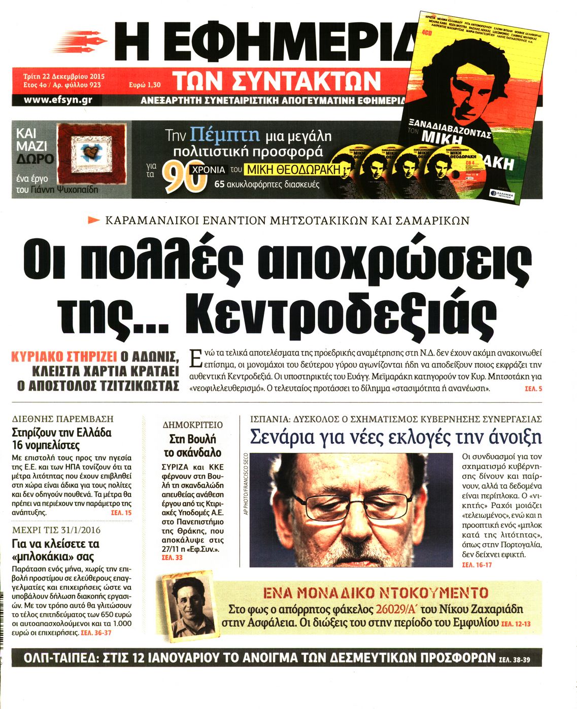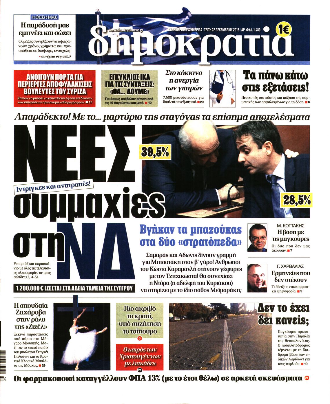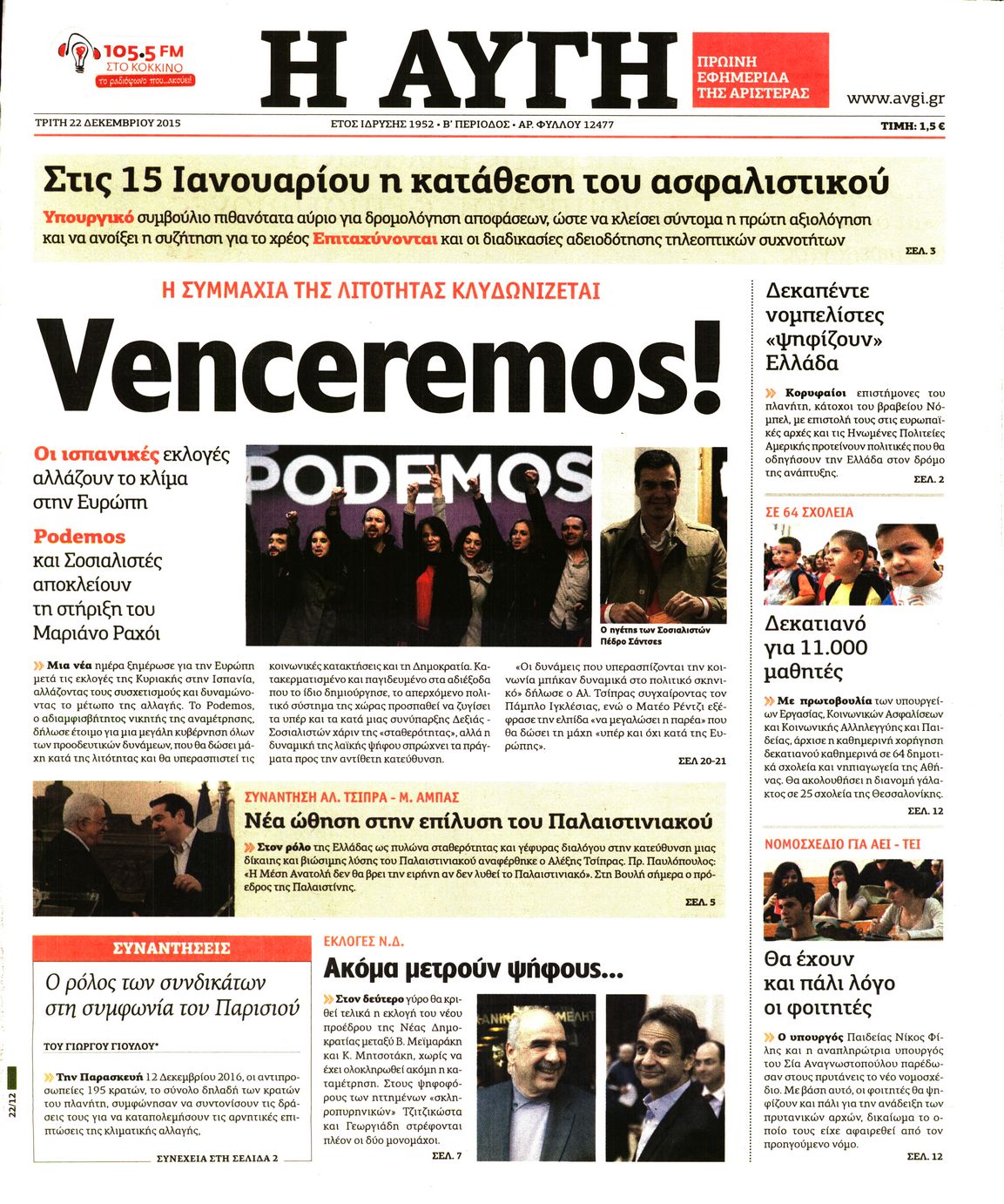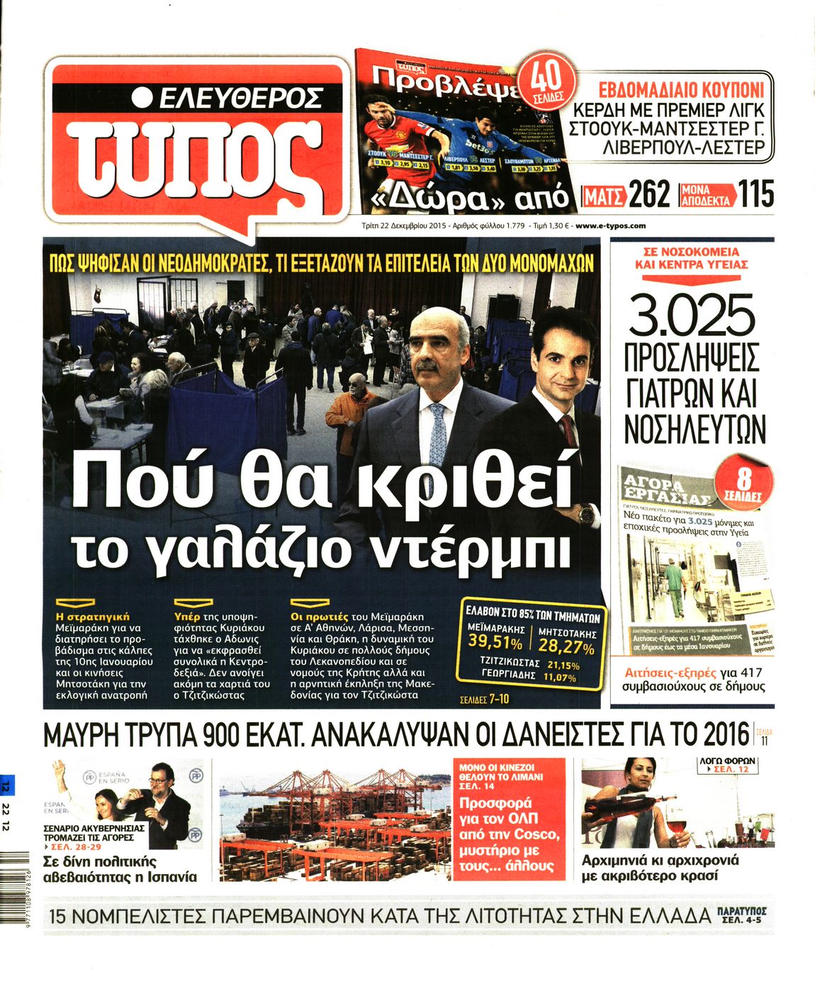 Οι πολιτικές εφημερίδες 22/12/2015 Enikos Newsroom 06:11, Τρίτη 22 Δεκεμβρίου 2015 Media Διαβάστε τα σημερινά πρωτοσέλιδα των πολιτικών εφημερίδων: ΠΟΛΙΤΙΚΕΣ ΕΦΗΜΕΡΙΔΕΣ ΠΡΩΤΟΣΕΛΙΔΑ Μοιράσου το: σχολίασε κι εσύ (0 σχόλια) Ακολουθήστε το enikos.gr στο Google News και μάθετε πρώτοι όλες τις ειδήσεις Δείτε όλες τις τελευταίες ειδήσεις από την Ελλάδα και τον Κόσμο στο enikos.gr Ειδήσεις Ροή Ειδήσεων 2 ώρες πριν Πώς δρούσε το κύκλωμα που διακινούσε ναρκωτικά σε σχολεία – Υπέβαλαν σε βασανιστήρια όσους δεν τηρούσαν τους «κανόνες πειθαρχίας» 3 ώρες πριν Αγρότες: Γιορτές στα μπλόκα με ανοιχτά διόδια – Δικογραφία στα Ιωάννινα για το σήκωμα των μπαρών 2 ώρες πριν Ζελένσκι: Οι Αμερικανοί πρότειναν συνάντηση Ουκρανίας, ΗΠΑ, Ρωσίας στο Μαϊάμι 2 ώρες πριν Αττική: Εξαρθρώθηκε εγκληματική οργάνωση που έκλεβε οχήματα, τα παραποιούσε και τα μεταπωλούσε σε πολίτες – Πώς δρούσε το κύκλωμα 1 ώρα πριν Μικαέλα Μπέντχαους: Ο πρώτος άνθρωπος σε αναπηρικό αμαξίδιο που ταξίδεψε στο διάστημα – ΒΙΝΤΕΟ 3 ώρες πριν Η τύχη χαμογελά σε 3 ζώδια έως τις 28 Δεκεμβρίου – «Προσέξτε τις επιλογές σας και η επιμονή σας θα ανταμειφθεί» 7 ώρες πριν Διαιτολόγος αποκαλύπτει 9 πρωινές συνήθειες που «λιώνουν» το κοιλιακό λίπος – «Υποστηρίζουν την υγιεινή απώλεια βάρους» 4 ώρες πριν Μία ανεκμετάλλευτη πηγή θα μπορούσε να προσφέρει ανεξάντλητη ενέργεια – Οι επιστήμονες ίσως γνωρίζουν πώς να την ξεκλειδώσουν 10 ώρες πριν Enerwave: Το νέο «ρεύμα» στη λιανική ενέργειας που αλλάζει την εμπειρία του καταναλωτή 4 λεπτά πριν Φωτιά σε αυτοκίνητο στην Λεωφόρο Κηφισίας στο ύψος της Φιλοθέης – Μεγάλο μποτιλιάρισμα στο σημείο 8 λεπτά πριν Πηνελόπη Πλάκα: Η εξομολόγηση για την προσωπική της ζωή – «Γούσταρα πάρα πολύ την ελευθερία μου» 19 λεπτά πριν Λούλα: Προειδοποιεί πως μια επέμβαση των ΗΠΑ στη Βενεζουέλα θα μπορούσε να είναι καταστροφική 28 λεπτά πριν Τραμπ: Πώς περνάει τις γιορτές των Χριστουγέννων – Τα δώρα που κάνει στα εγγόνια του 41 λεπτά πριν HOTΕΛ ΕΛVIRA: Η Ελβίρα μαθαίνει πως ο Χάρι μένει κρυφά στο ξενοδοχείο του Παντελή ENIKOS NETWORK Οι γυναίκες αποκαλύπτουν το πιο ελκυστικό πράγμα που μπορεί να κάνει ένας άνδρας Ομορφιά και αντιγήρανση: Ειδικοί μιλούν για συσκευές περιποίησης του δέρματος Ολοκληρώθηκαν πληρωμές 22,16 εκατ. ευρώ για το μεταφορικό ισοδύναμο – Κικίλιας: Στηρίζουμε τη νησιωτικότητα Η Realnews στο www.pressreader.com Χαρτογραφώντας το «σημείο χωρίς επιστροφή»: Για πρώτη φορά αποκαλύπτεται με λεπτομέρεια το ακανθώδες όριο της ατμόσφαιρας τ... Η Google καταργεί τη λειτουργία «dark web report» – Πώς θα μπορούν οι χρήστες να διαγράφουν τα δεδομένα τους περισσότερα 18:19 , Σάββατο 20 Δεκεμβρίου 2025 HOTΕΛ ΕΛVIRA: Η Ελβίρα μαθαίνει πως ο Χάρι μένει κρυφά στο ξενοδοχείο του Παντελή Συνεχίζονται οι εκλογές για πρόεδρο, στο νέο επεισόδιο της κωμικής σειράς του MEGA, HOTΕΛ ΕΛVI... 14:04 , Σάββατο 20 Δεκεμβρίου 2025 Η Realnews αυτής της Κυριακής (21/12/2025) Με τίτλο: «Ασπίδα προστασίας για την Ελλάδα» κυκλοφορεί, αυτήν την Κυριακή, η Realnews. Σημαντ... 12:53 , Σάββατο 20 Δεκεμβρίου 2025 Να μ’ αγαπάς: Το παρελθόν έρχεται στο φως – Καταιγιστικές εξελίξεις στα τελευταία επεισόδια του 2025 Ο Άγγελος αποκαλύπτεται, η Φωτεινή ανησυχεί για τον Λευτέρη και η Ζωή έρχεται αντιμέτωπη με το... 11:41 , Σάββατο 20 Δεκεμβρίου 2025 «Η αγάπη δεν χάνεται ποτέ»: Η μικρού μήκους ταινία κινουμένων σχεδίων που θέτει ερωτήματα για τη ζωή και τον θάνατο Ο θάνατος είναι ένα από τα πιο σκληρά θέματα που καλείται να διαχειρι