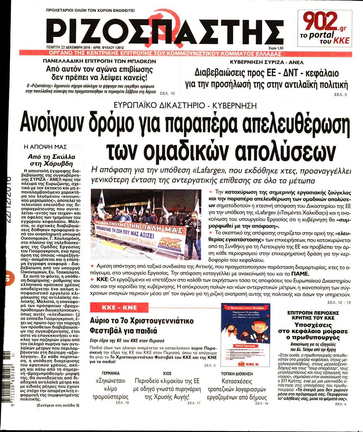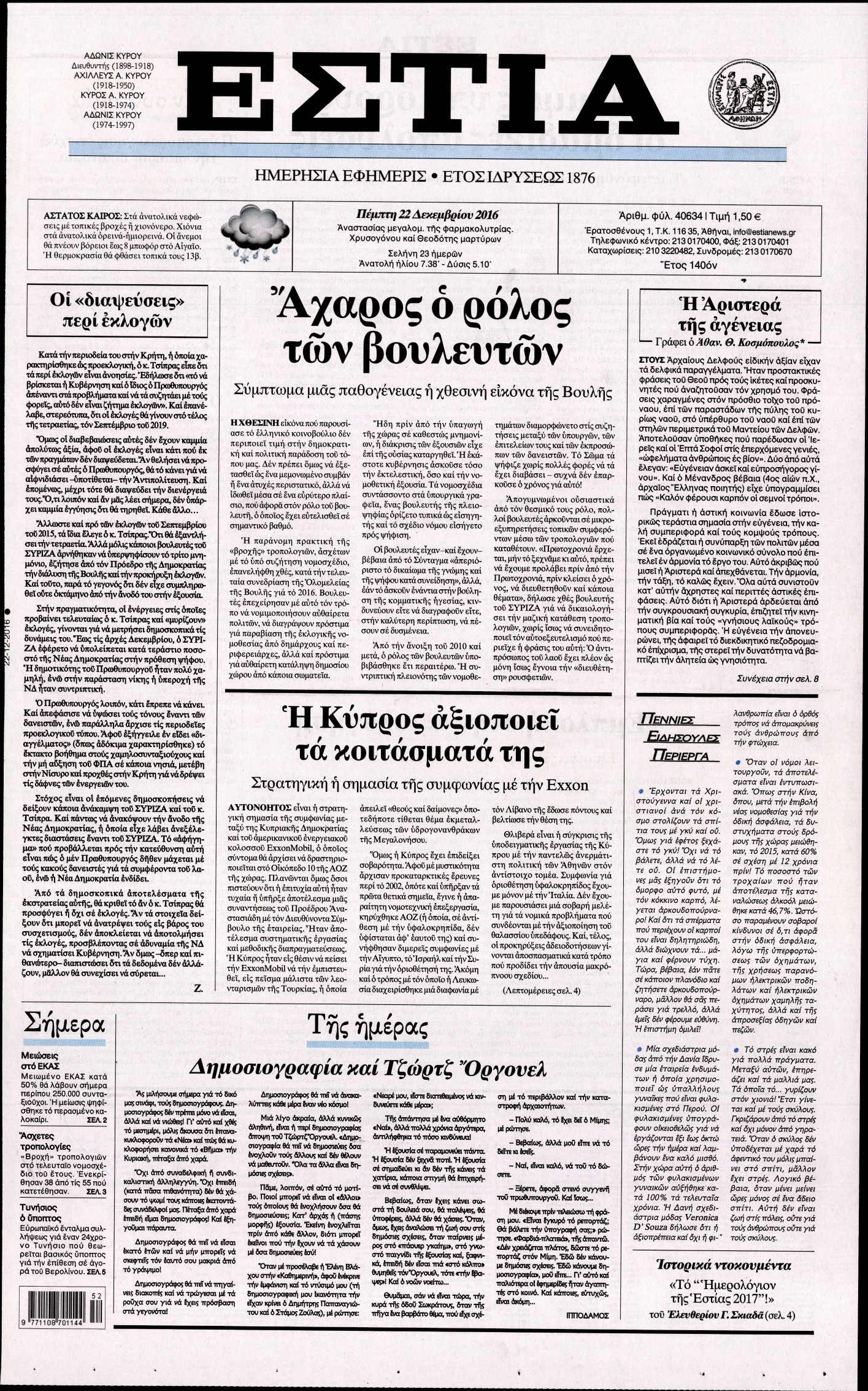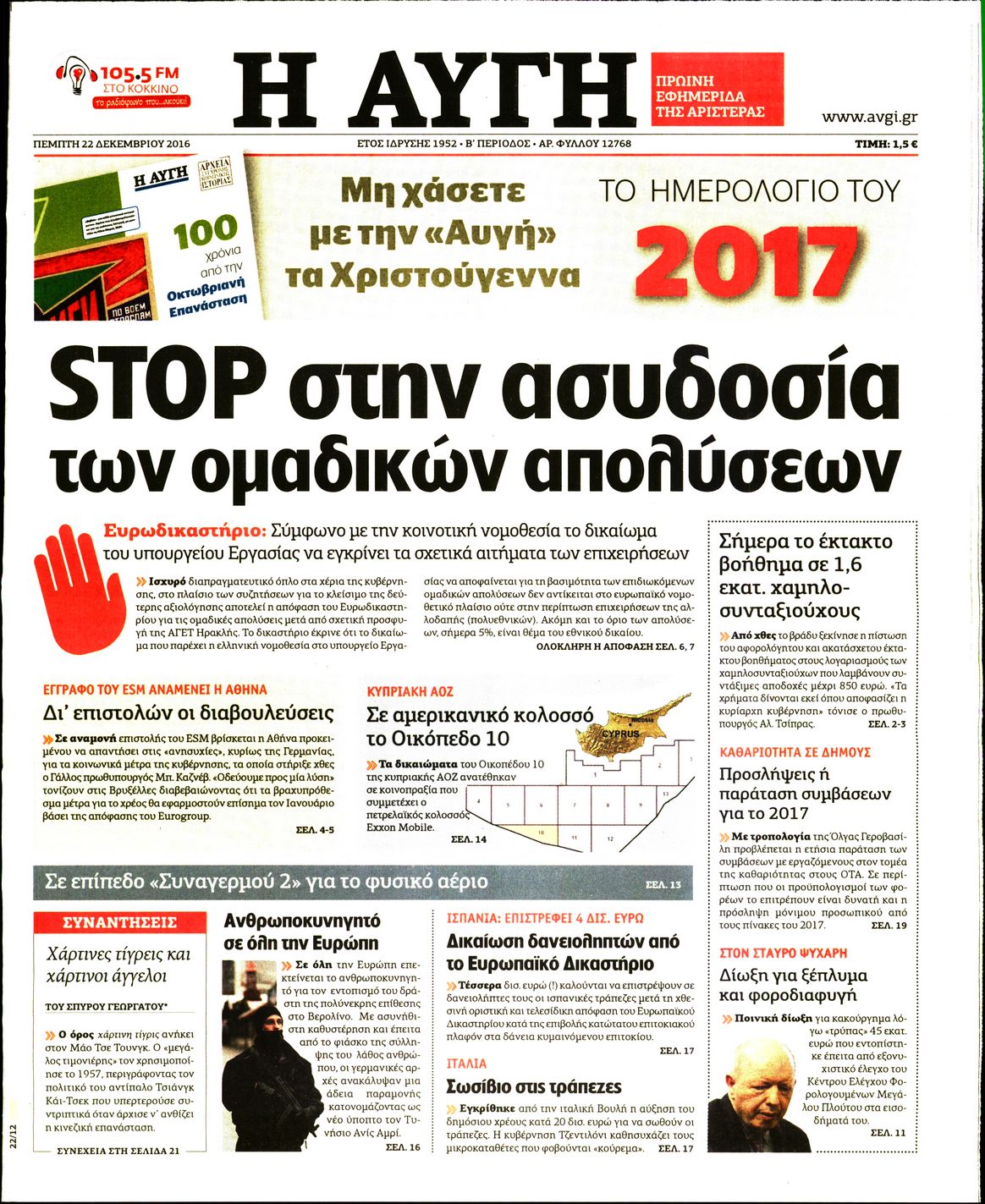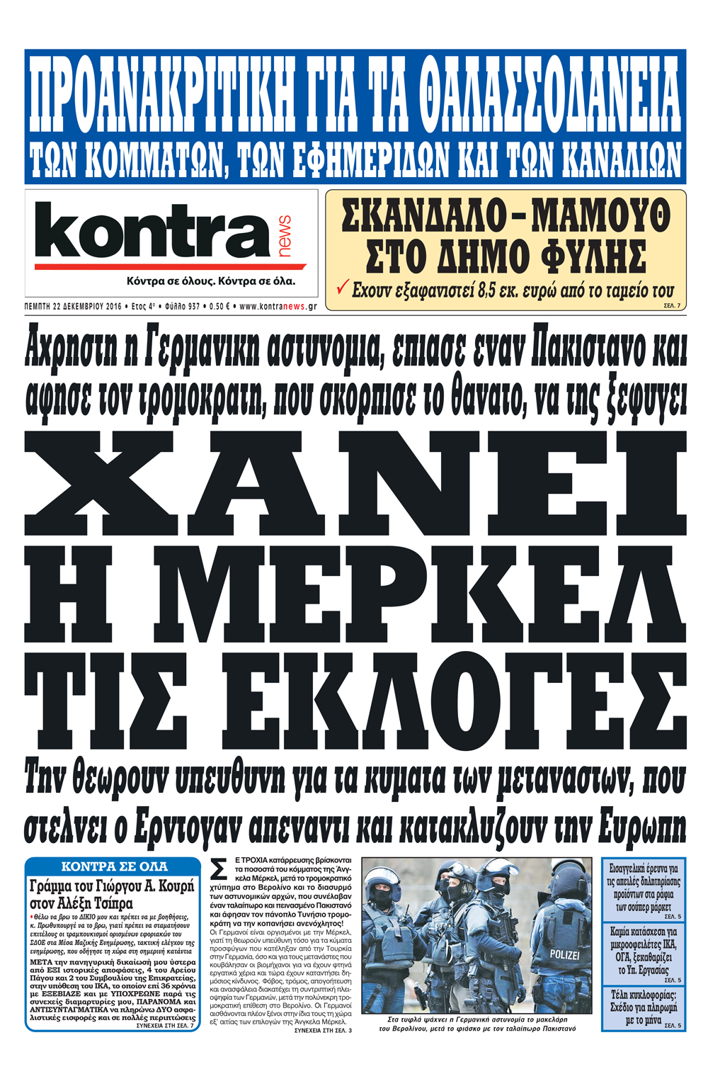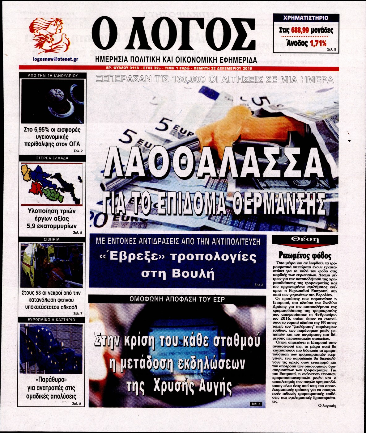 Οι πολιτικές εφημερίδες 22/12/2016 Enikos Newsroom 01:54, Πέμπτη 22 Δεκεμβρίου 2016 Media Διαβάστε τα σημερινά πρωτοσέλιδα των πολιτικών εφημερίδων: ΠΟΛΙΤΙΚΕΣ ΕΦΗΜΕΡΙΔΕΣ ΠΡΩΤΟΣΕΛΙΔΑ Μοιράσου το: σχολίασε κι εσύ (0 σχόλια) Ακολουθήστε το enikos.gr στο Google News και μάθετε πρώτοι όλες τις ειδήσεις Δείτε όλες τις τελευταίες ειδήσεις από την Ελλάδα και τον Κόσμο στο enikos.gr Ειδήσεις Ροή Ειδήσεων 6 ώρες πριν Εκτός ευρωομάδας ΣΥΡΙΖΑ ο Νίκος Παππάς μετά την επίθεση στον δημοσιογράφο Νίκο Γιαννόπουλο – Η μήνυση και οι νέες δηλώσεις 7 ώρες πριν «Αγριεύουν» οι αγρότες: «Δεν συντρέχει λόγος συνάντησης με τον πρωθυπουργό» – Ώρα αποφάσεων στη σύσκεψη της Πέμπτης 7 ώρες πριν Κυψέλη: Χωρίς την οικογένειά της δίπλα της απολογήθηκε η 16χρονη – «Της είχε επιτεθεί κάποιος για να την βιάσει, φοβήθηκε και κυκλοφορούσε με μαχαίρι» 6 ώρες πριν Politico: Το πρόβλημα της Ευρώπης δεν είναι το Βέλγιο αλλά ο Ντόναλντ Τραμπ 8 ώρες πριν Αλεξανδρούπολη: Πολυοργανική ανεπάρκεια λόγω υποσιτισμού η αιτία θανάτου του 3χρονου αγοριού 6 ώρες πριν Μυστήριο με τεράστιες κυκλικές πέτρες 200 κιλών – Ανακαλύφθηκαν τυχαία κατά τη διάρκεια οδικών έργων και κανείς δεν ξέρει από πού προέρχονται 7 ώρες πριν Ύπνος: Ειδικός εξηγεί τον πραγματικό λόγο που ξυπνάτε στις 4 τα ξημερώματα – Ο ρόλος των ορμονών και του κιρκάδιου ρυθμού 8 ώρες πριν Αριθμολογία: Οι άνθρωποι που έχουν γεννηθεί αυτές τις 4 ημερομηνίες, είναι τρυφεροί και αγαπούν ανιδιοτελώς 20 ώρες πριν 20 χρόνια τα Χριστούγεννα ξεκινούν στα Public με μεγάλη ποικιλία σε δώρα! 44 δευτερόλεπτα πριν Το Ποντίκι σήμερα Πέμπτη 18/12/2025 5 λεπτά πριν Εφημερεύοντα φαρμακεία σε Αθήνα και Θεσσαλονίκη (18/12) 8 λεπτά πριν Αλεξάνδρα Ούστα: «Αυτό που με τρέλανε στον σύζυγό μου ήταν η ορθολογική του σκέψη» 15 λεπτά πριν Μιχάλης Αεράκης: «Της είπα “θέλω να κάνουμε σπιτικό, αλλά υπάρχουν τρεις προϋποθέσεις…”» 22 λεπτά πριν Αυστραλία: Κυβερνητική δέσμευση για αυστηρότερα μέτρα κατά της υποκίνησης μίσους ENIKOS NETWORK Αϋπνία: Το κόλπο που θα σας βοηθήσει να κοιμηθείτε απόψε – Είναι απλό και έχει αποτέλεσμα 2,6 εκατομμύρια πολίτες έχουν ήδη εμβολιαστεί κατά της γρίπης ΕΛΣΤΑΤ: Τι δείχνουν τα νέα στοιχεία για τις ηλεκτρονικές παραγγελίες των επιχειρήσεων ΚΕΠΕ: Οι 3 διακριτές συμβολές των ΜμΕ και της μεταποίησης στην ελληνική οικονομία Χαρτογραφώντας το «σημείο χωρίς επιστροφή»: Για πρώτη φορά αποκαλύπτεται με λεπτομέρεια το ακανθώδες όριο της ατμόσφαιρας τ... Η Google καταργεί τη λειτουργία «dark web report» – Πώς θα μπορούν οι χρήστες να διαγράφουν τα δεδομένα τους περισσότερα 05:22 , Πέμπτη 18 Δεκεμβρίου 2025 Το Ποντίκι σήμερα Πέμπτη 18/12/2025 Διαβάστε το πρωτοσέλιδο της εφημερίδας «Το Ποντίκι» σήμερα 18/12/2025. 02:30 , Πέμπτη 18 Δεκεμβρίου 2025 Αλ Τσαντίρι Νιουζ: Η κόρη της Πάολα στο κοινό – Η ατάκα Λαζόπουλου που την έκανε να «κοκκινήσει» Γιορτινή διάθεση και ευχάριστες στιγμές γέμισε η αποψινή, τελευταία για το 2025, εκπομπή του «... 22:24 , Τετάρτη 17 Δεκεμβρίου 2025 Το Σπίτι Δίπλα Στο Ποτάμι: Σε κίνδυνο η υγεία του Απόστολου – Τι θα δούμε απόψε “Το Σπίτι Δίπλα στο Ποτάμι” ξετυλίγει το νήμα της ζωής των πέντε αδελφών με καταισ... 21:14 , Τετάρτη 17 Δεκεμβρίου 2025 Παιχνίδια Εκδίκησης: Θα καταφέρει ο Χρήστος να κλονίσει την εμπιστοσύνη της Μάγιας απέναντι στον Άγη; Τα «Παιχνίδια Εκδίκησης» έρχονται απόψε στις 22:30, στον Αντ1, με το τελευταίο επεισόδιο της χ... ΤΕΛΕΥΤΑΙΕΣ ΕΙΔΗΣΕΙΣ 5 λεπτά πριν Εφημερεύοντα φαρμακεία σε Αθήνα και Θεσσαλονίκη 