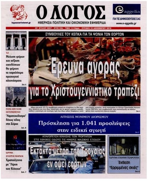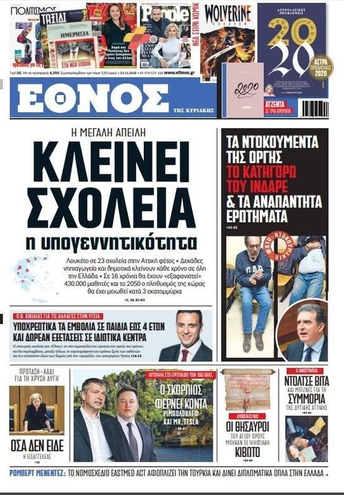 Οι πολιτικές εφημερίδες 22/12/2019 Κώστας Τεό 07:06, Κυριακή 22 Δεκεμβρίου 2019 Media Διαβάστε τα πρωτοσέλιδα των πολιτικών εφημερίδων: ΕΦΗΜΕΡΙΔΕΣ ΠΟΛΙΤΙΚΕΣ ΕΦΗΜΕΡΙΔΕΣ ΠΡΩΤΟΣΕΛΙΔΑ Μοιράσου το: σχολίασε κι εσύ (0 σχόλια) Ακολουθήστε το enikos.gr στο Google News και μάθετε πρώτοι όλες τις ειδήσεις Δείτε όλες τις τελευταίες ειδήσεις από την Ελλάδα και τον Κόσμο στο enikos.gr Ειδήσεις Ροή Ειδήσεων 5 ώρες πριν Χριστούγεννα στα μπλόκα: Επιμένουν στις κινητοποιήσεις τους οι αγρότες – Ανοίγουν τα διόδια το Σαββατοκύριακο 5 ώρες πριν Ουκρανία: Η άνευ προηγουμένου επίθεση σε ρωσικό τάνκερ στη Μεσόγειο και το μήνυμα προς στον Πούτιν – Το «μακρύ χέρι» του Κιέβου 4 ώρες πριν Πούτιν: Τα μηνύματα σε Ευρώπη και ΝΑΤΟ από το μαραθώνιο «σόου» του – Η απαίτηση για «σεβασμό» και η ειρήνη «με τους όρους» της Μόσχας 5 ώρες πριν Τραμπ: Δεν αποκλείει την πιθανότητα ενός πολέμου στη Βενεζουέλα – «Ο Μαδούρο ξέρει καλύτερα από τον καθένα τι ακριβώς θέλω» 6 ώρες πριν Συνεχίζει να προκαλεί ο Μίτσκοσκι: «Για μένα το όνομα Μακεδονία είναι ιερό» 4 ώρες πριν Ανακαλύφθηκαν αρχαία χρυσά νομίσματα 2.200 ετών που απεικονίζουν τον θεό Απόλλωνα – Η άγνωστη σύνδεση με τον Φίλιππο Β΄ της Μακεδονίας 5 ώρες πριν Ύπνος: Μια κρυφή κατάσταση του εγκεφάλου πριν από τον ύπνο μπορεί να είναι το “κλειδί” για υψηλή ευφυΐα και δημιουργικότητα 6 ώρες πριν Αριθμολογία: Οι άνθρωποι που έχουν γεννηθεί αυτές τις 4 ημερομηνίες, συχνά παρεξηγούνται – «Η καλοσύνη τους κρύβει τεράστια δύναμη» 7 ώρες πριν Ξεχάστε το καθάρισμα το Σαββατοκύριακο: Ο «κανόνας των 20 λεπτών» που θα σας λύσει τα χέρια 2 λεπτά πριν Ταμίλα Κουλίεβα: «Δεν θέλω να είμαι κάποια που πορεύεται συνεχώς με τις ίδιες αναφορές» 17 λεπτά πριν Η Ελλάδα προσχωρεί στη Διεθνή Επιτροπή Αποζημιώσεων για την Ουκρανία 31 λεπτά πριν GNTM: Η Ξένια Τσίρκοβα αναδείχθηκε μεγάλη νικήτρια και πήρε τις 50.000 ευρώ – Ποιος βρέθηκε σε απόσταση αναπνοής; 47 λεπτά πριν Θεσσαλονίκη: Εξαφανίστηκε 13χρονος από χώρο φιλοξενίας ασυνόδευτων ανηλίκων στο Ωραιόκαστρο 57 λεπτά πριν Ντόναλντ Τραμπ: «Πολύ βαριά αντίποινα» στη Συρία – «Πλήττουμε πολύ δυνατά οχυρά του Ισλαμικού Κράτους» ENIKOS NETWORK Το ΕΚΑΒ τιμήθηκε από την Ακαδημία Αθηνών για τα 40 χρόνια προσφοράς του Έχετε πραγματικά μεγάλη καρδιά; 10 χαρακτηριστικά όσων έχουν καλοσύνη Αναστολή μέτρων αναγκαστικής εκτέλεσης για κτηνοτρόφους που πλήττονται από την ευλογιά των αιγοπροβάτων Πλήρης επάρκεια προϊόντων στις λαϊκές της Αττικής, παρά τις αγροτικές κινητοποιήσεις – Τι απαντούν οι πωλητές Χαρτογραφώντας το «σημείο χωρίς επιστροφή»: Για πρώτη φορά αποκαλύπτεται με λεπτομέρεια το ακανθώδες όριο της ατμόσφαιρας τ... Η Google καταργεί τη λειτουργία «dark web report» – Πώς θα μπορούν οι χρήστες να διαγράφουν τα δεδομένα τους περισσότερα 02:50 , Σάββατο 20 Δεκεμβρίου 2025 GNTM: Η Ξένια Τσίρκοβα αναδείχθηκε μεγάλη νικήτρια και πήρε τις 50.000 ευρώ – Ποιος βρέθηκε σε απόσταση αναπνοής; Με φαντασμαγορικό τρόπο ολοκληρώθηκε το βράδυ της Παρασκευής ο μεγάλος τελικός του GNTM, μέσα ... 22:42 , Παρασκευή 19 Δεκεμβρίου 2025 Γιώργος Γιαννόπουλος για “Το σόι σου”: “Είναι ευτυχία και ευλογία αυτή η σειρά” «Είναι ευτυχία και ευλογία η συγκυρία αυτής της σειράς», θα πει ο Γιώργος Γιαννόπουλος -ο αγαπ... 20:37 , Παρασκευή 19 Δεκεμβρίου 2025 Don’t Forget The Lyrics: Η Έλλη Κοκκίνου υποδέχεται 4 παίκτες που θα κάνουν τα πάντα για να μη χάσουν ούτε… μισή λέξη από τους στίχους Το «Don’t Forget The Lyrics» επιστρέφε
