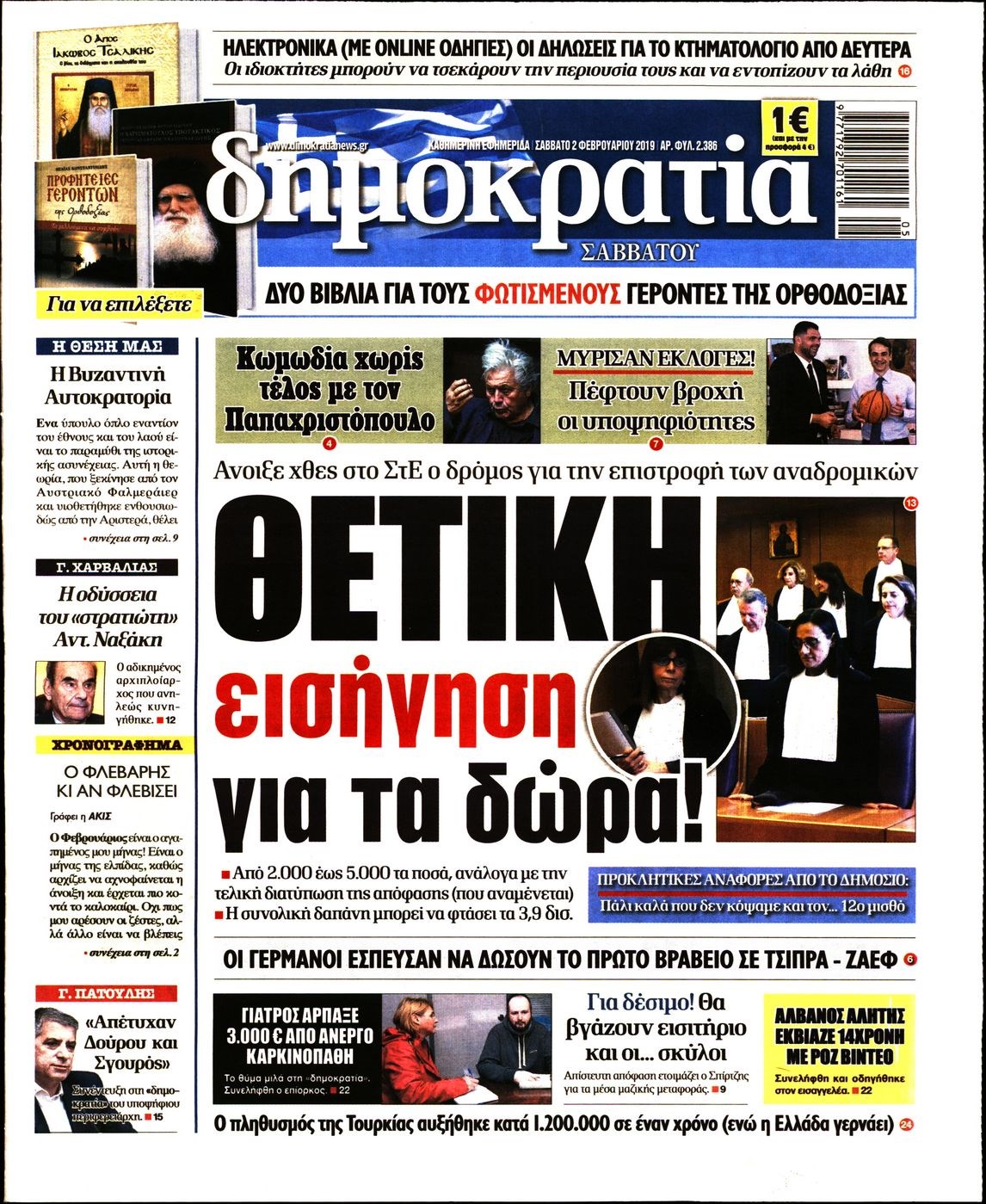 Οι πολιτικές εφημερίδες 2/2/19 Enikos Newsroom 06:50, Σάββατο 02 Φεβρουαρίου 2019 Media Διαβάστε τα πρωτοσέλιδα των πολιτικών εφημερίδων: ΠΟΛΙΤΙΚΕΣ ΕΦΗΜΕΡΙΔΕΣ ΠΡΩΤΟΣΕΛΙΔΑ Μοιράσου το: σχολίασε κι εσύ (0 σχόλια) Ακολουθήστε το enikos.gr στο Google News και μάθετε πρώτοι όλες τις ειδήσεις Δείτε όλες τις τελευταίες ειδήσεις από την Ελλάδα και τον Κόσμο στο enikos.gr Ειδήσεις Ροή Ειδήσεων 5 ώρες πριν Χριστούγεννα στα μπλόκα οι αγρότες: Άνοιξαν στα διόδια και μοίρασαν προϊόντα στους πολίτες – Νέα σύσκεψη την Κυριακή στη Νίκαια 6 ώρες πριν Κύκλωμα διακίνησης ναρκωτικών σε σχολεία: Τηλεφωνούσαν στους ανηλίκους την ώρα του μαθήματος – Οι διάλογοι-σοκ, τα «ψευδώνυμα» και τα βασανιστήρια 5 ώρες πριν Αρχεία Επστάιν: Οι 500 σελίδες που λείπουν, τα αναπάντητα ερωτήματα και οι επώνυμοι – Τι έπεται 7 ώρες πριν Ζελένσκι: Μόνο οι ΗΠΑ και ο Τραμπ μπορούν να πιέσουν τη Ρωσία να βάλει τέλος στον πόλεμο 7 ώρες πριν Φοινικούντα: Προφυλακιστέος ο 30χρονος για συνέργεια στη διπλή δολοφονία – Και άλλα πρόσωπα στο «μικροσκόπιο» 5 ώρες πριν Αποκαλύφθηκε το άγνωστο «GPS» της αρχαιότητας – Πώς οι ναοί «φώτιζαν» τον δρόμο των ναυτικών πριν από την εφεύρεση των φάρων 6 ώρες πριν Ύπνος: Η διατροφή που μπορεί να σας βοηθήσει να κοιμάστε καλύτερα και να ζήσετε περισσότερο 7 ώρες πριν Αριθμολογία: Ο αριθμός του φύλακα αγγέλου σας, με βάση τον μήνα γέννησής σας – «Έτσι σας στέλνει σημάδια το σύμπαν» 19 ώρες πριν Enerwave: Το νέο «ρεύμα» στη λιανική ενέργειας που αλλάζει την εμπειρία του καταναλωτή 1 ώρα πριν Σήμερα με τη Realnews: Δωροεπιταγή 10€ 3 λεπτά πριν Σήμερα με τη Realnews: Ό,τι και αν αγοράσεις, σκανάρεις και κερδίζεις! 5 λεπτά πριν Βενεζουέλα: Προσφέρει βοήθεια στο Ιράν στην σύγκρουση με τις ΗΠΑ 20 λεπτά πριν Μαριλού Κατσαφάδου: «Η απώλεια της με έβαλε σε διαδικασία να δω διαφορετικά τη ζωή, σαν να ωρίμασα 10 χρόνια» 36 λεπτά πριν Ολυμπιακός: Ξέσπασε ο Τζουλιάν Μπιανκόν – «Ο γκολκίπερ της Κηφισιάς έδινε show, ήταν πέναλτι στο τέλος» ENIKOS NETWORK Οι γυναίκες αποκαλύπτουν το πιο ελκυστικό πράγμα που μπορεί να κάνει ένας άνδρας Ομορφιά και αντιγήρανση: Ειδικοί μιλούν για συσκευές περιποίησης του δέρματος «Πολεμική» προετοιμασία από την ευρωπαϊκή βιομηχανία ενέργειας – Η Eurelectric ζητεί «ομπρέλα» προστασίας για τις υποδομές Ακύρωση ΑΦΜ για απάτες – Ποιους βάζει στο στόχαστρο η ΑΑΔΕ Χαρτογραφώντας το «σημείο χωρίς επιστροφή»: Για πρώτη φορά αποκαλύπτεται με λεπτομέρεια το ακανθώδες όριο της ατμόσφαιρας τ... Η Google καταργεί τη λειτουργία «dark web report» – Πώς θα μπορούν οι χρήστες να διαγράφουν τα δεδομένα τους περισσότερα 03:08 , Κυριακή 21 Δεκεμβρίου 2025 Σήμερα με τη Realnews: Instyle, μαζί Drive και Realnews Geopolitics Σήμερα με τη Realnews: Instyle, μαζί Drive και Realnews Geopolitics Instyle Η Άννα Ρεζάν, η Ch... 01:30 , Κυριακή 21 Δεκεμβρίου 2025 Άννα Βίσση: Τα… Social Media «προσκύνησαν» την «απόλυτη» για την συναυλία της στο Καλλιμάρμαρο που προβλήθηκε από το Mega Την ημέρα των γενεθλίων της Άννας Βίσση, το MEGA τίμησε τη διαχρονική παρουσία της «απόλυτης Ε... 00:00 , Κυριακή 21 Δεκεμβρίου 2025 The Voice: Η επιστροφή της Έλενας Παπαρίζου και η ατάκα του Γιώργου Μαζωνάκη μετά τις καταγγελίες Στη φάση των Cross Battles Live μπήκε το The Voice, με την Έλενα Παπαρίζου να επιστρέφει στο π... ΤΕΛΕΥΤΑΙΕΣ ΕΙΔΗΣΕΙΣ 20 λεπτά πριν Μαριλού Κατσαφάδου: «Η απώλεια της με έβαλε σε... 36 λεπτά πριν Ολυμπιακός: Ξέσπασε ο Τζουλιάν Μπιανκόν – «Ο... 51 λεπτά πριν Τρεις Αφγανοί μετανάστες πέθαναν από το κρύο... 57 λεπτά πριν Σήμερα με τη Realnews: Instyle, 